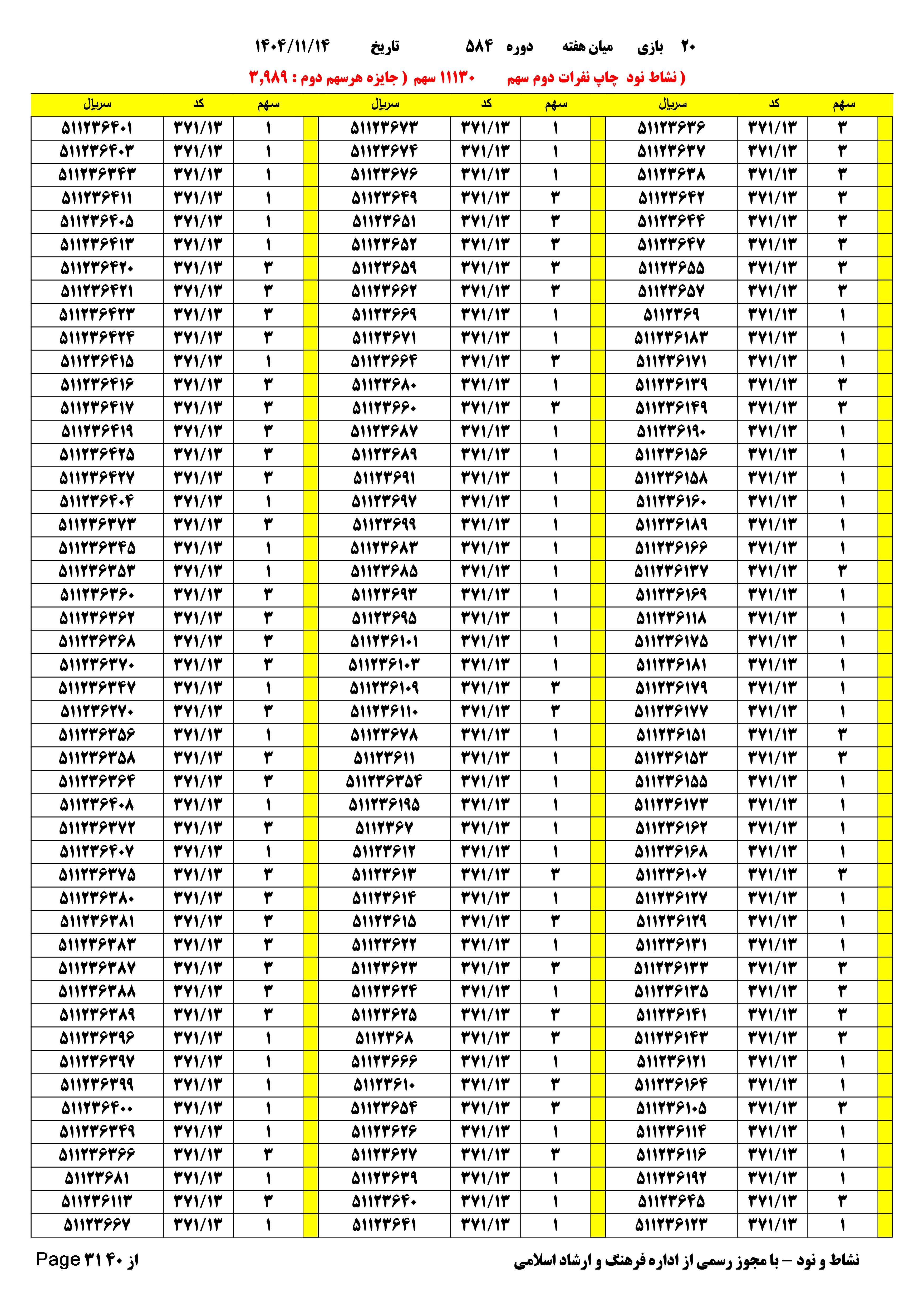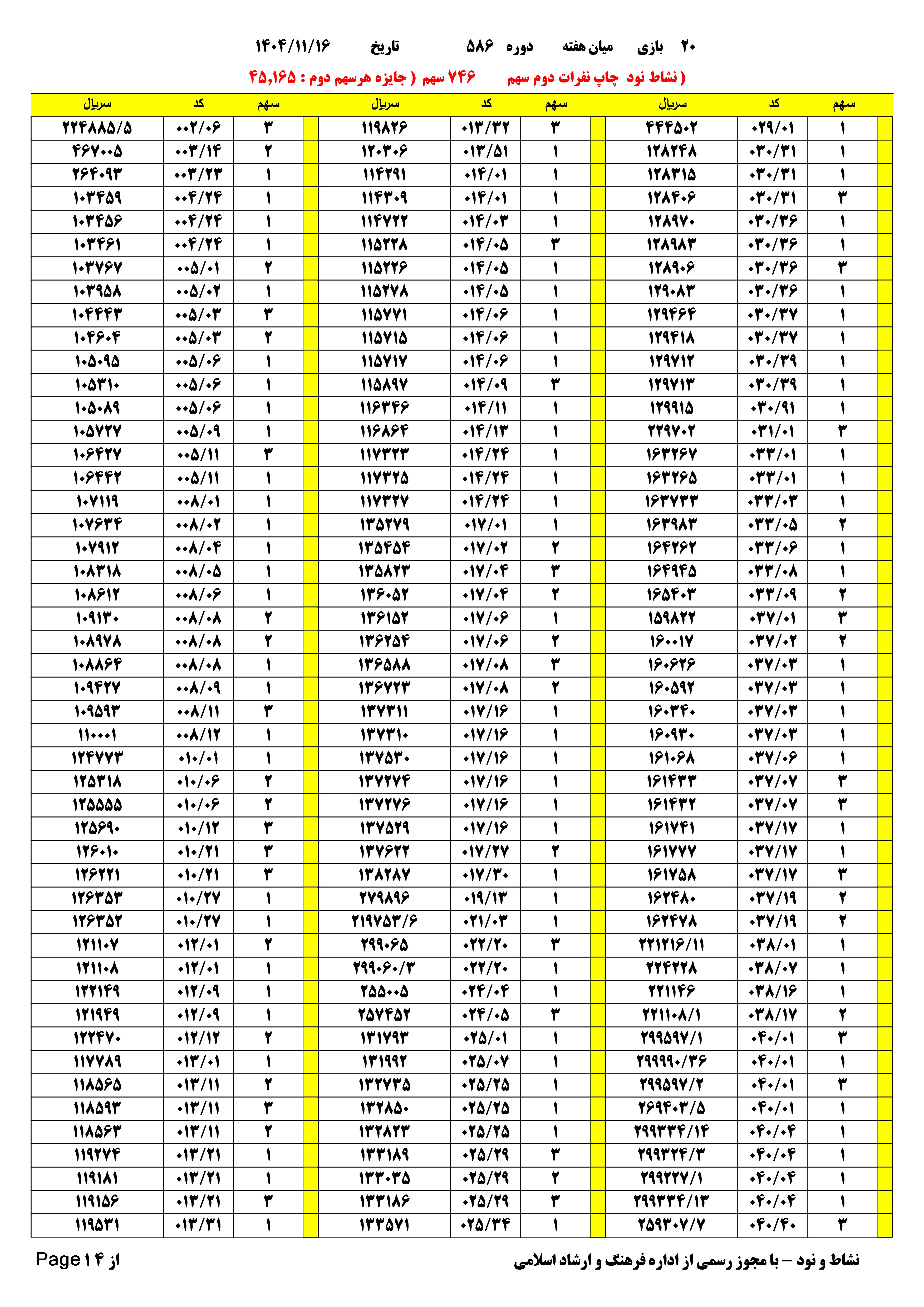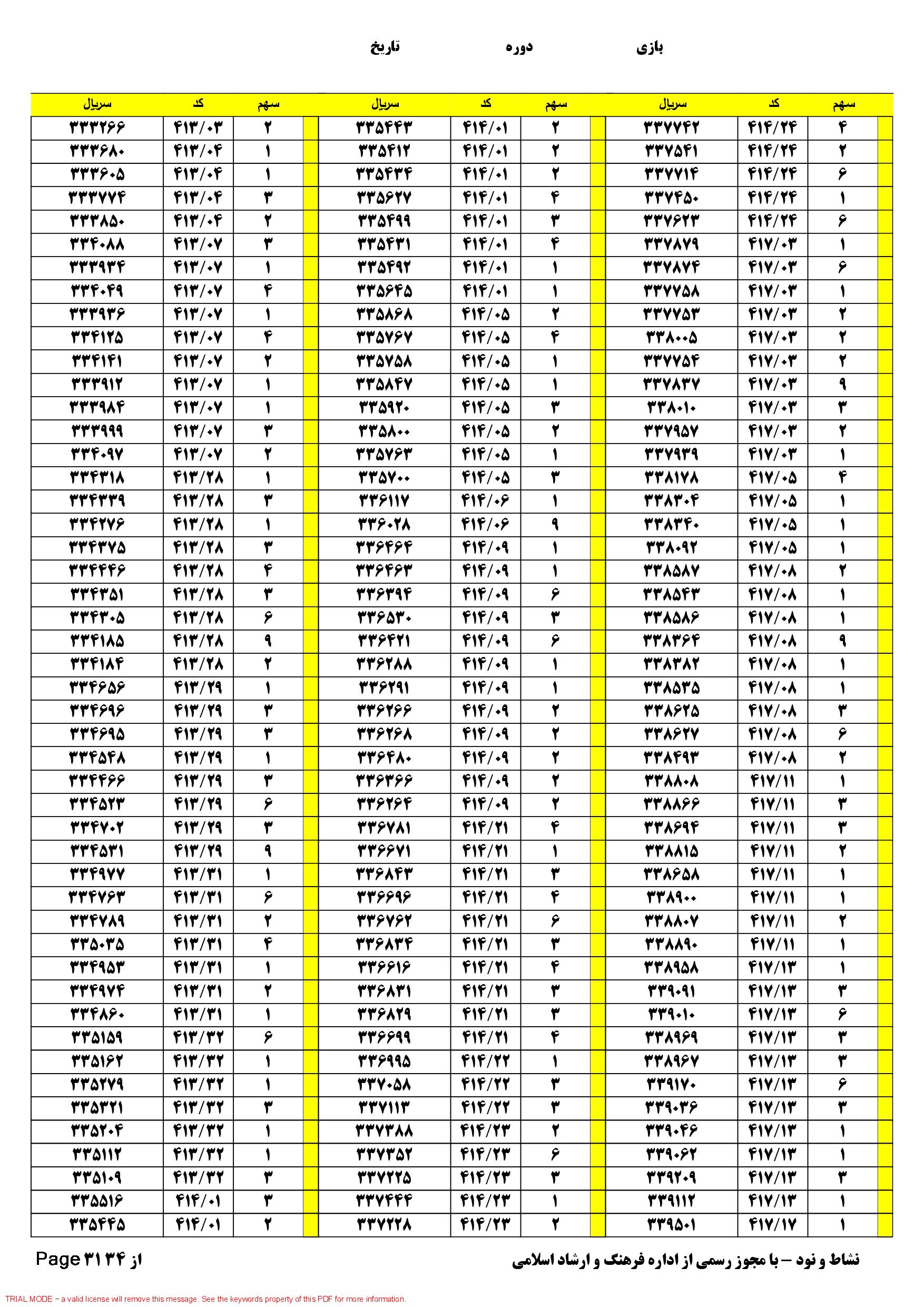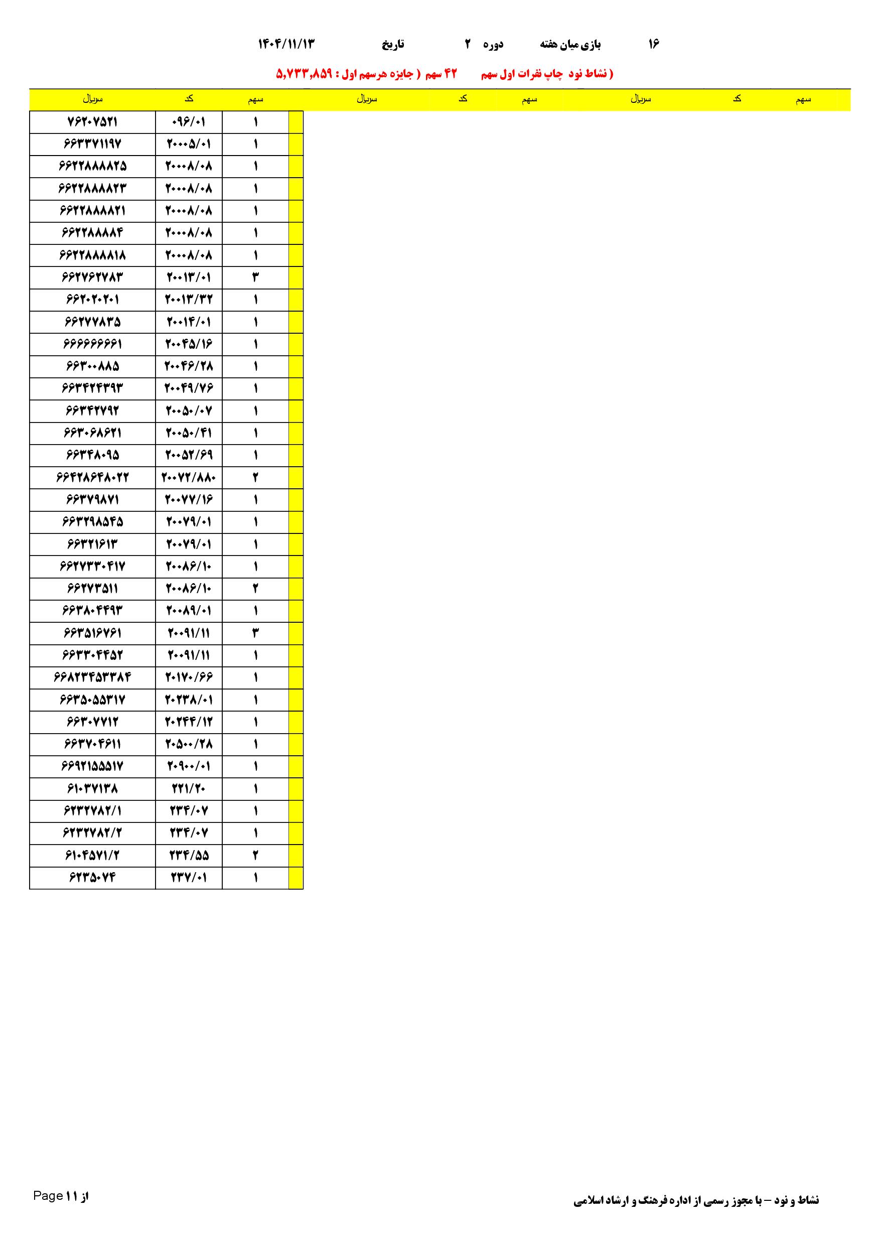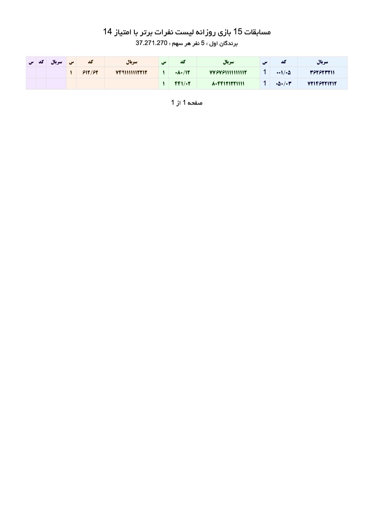 هدایای پرداختی : 0000 تعداد مشارکت : 00