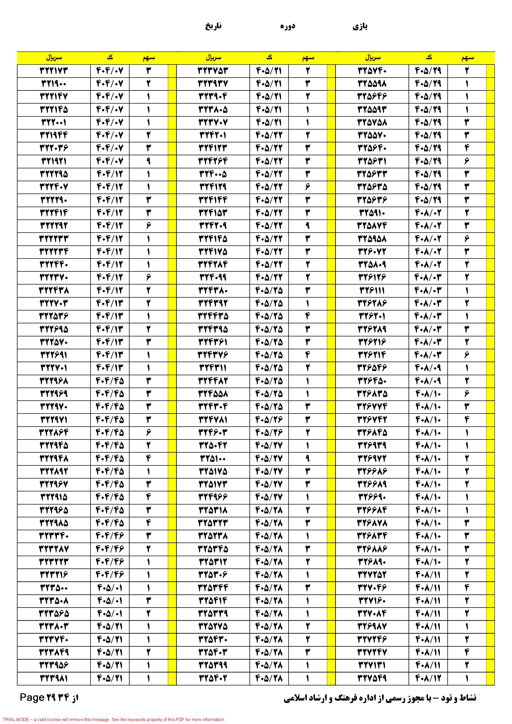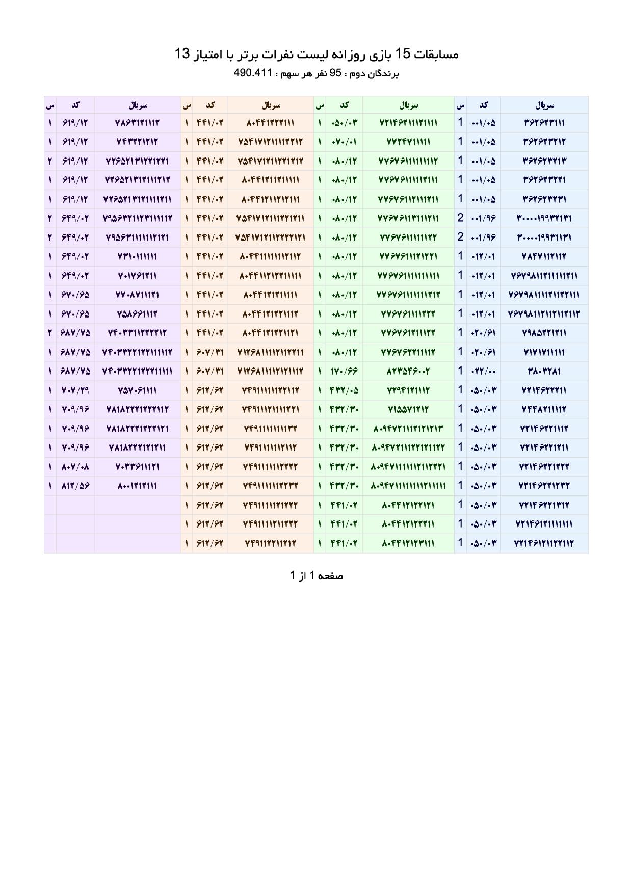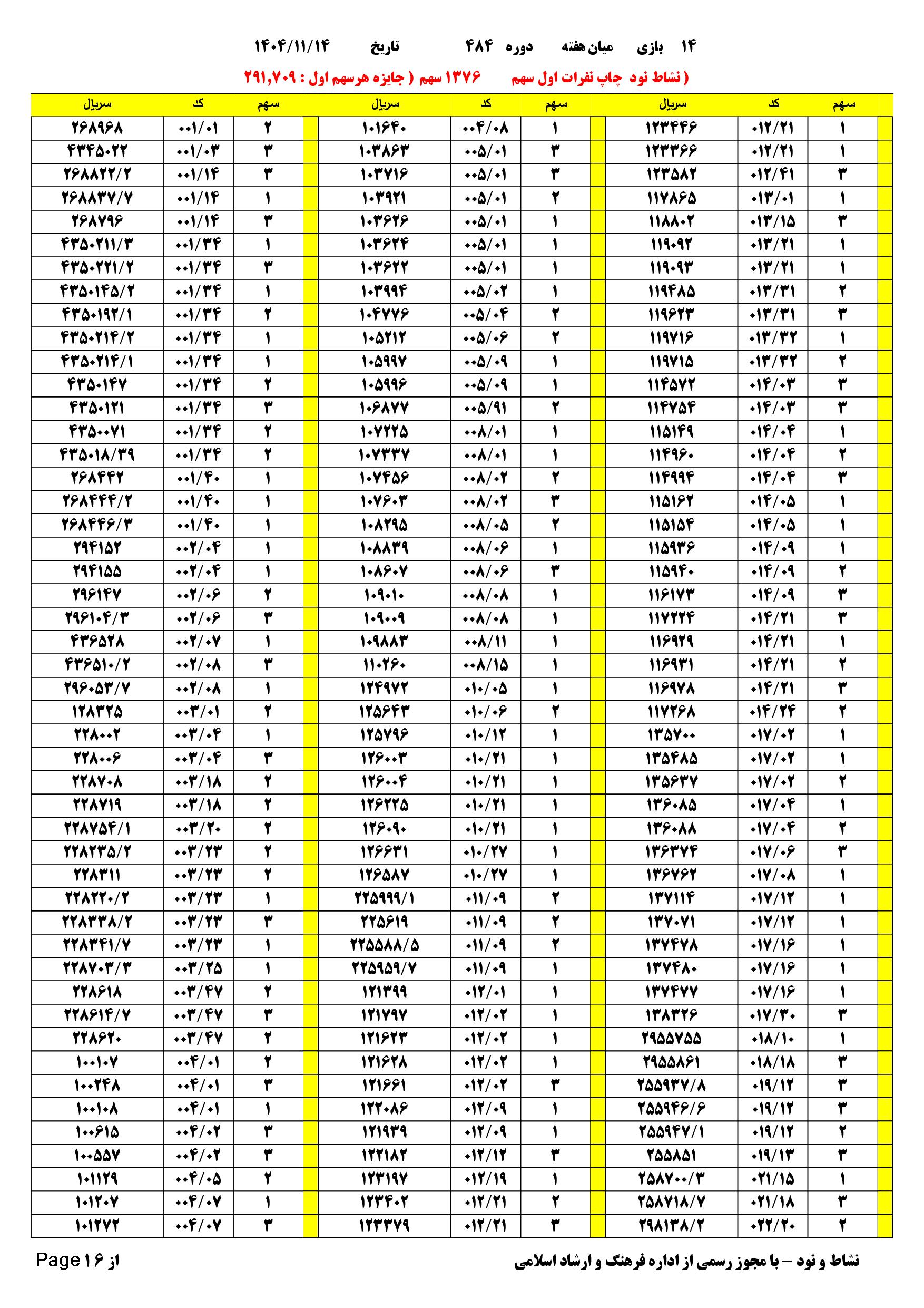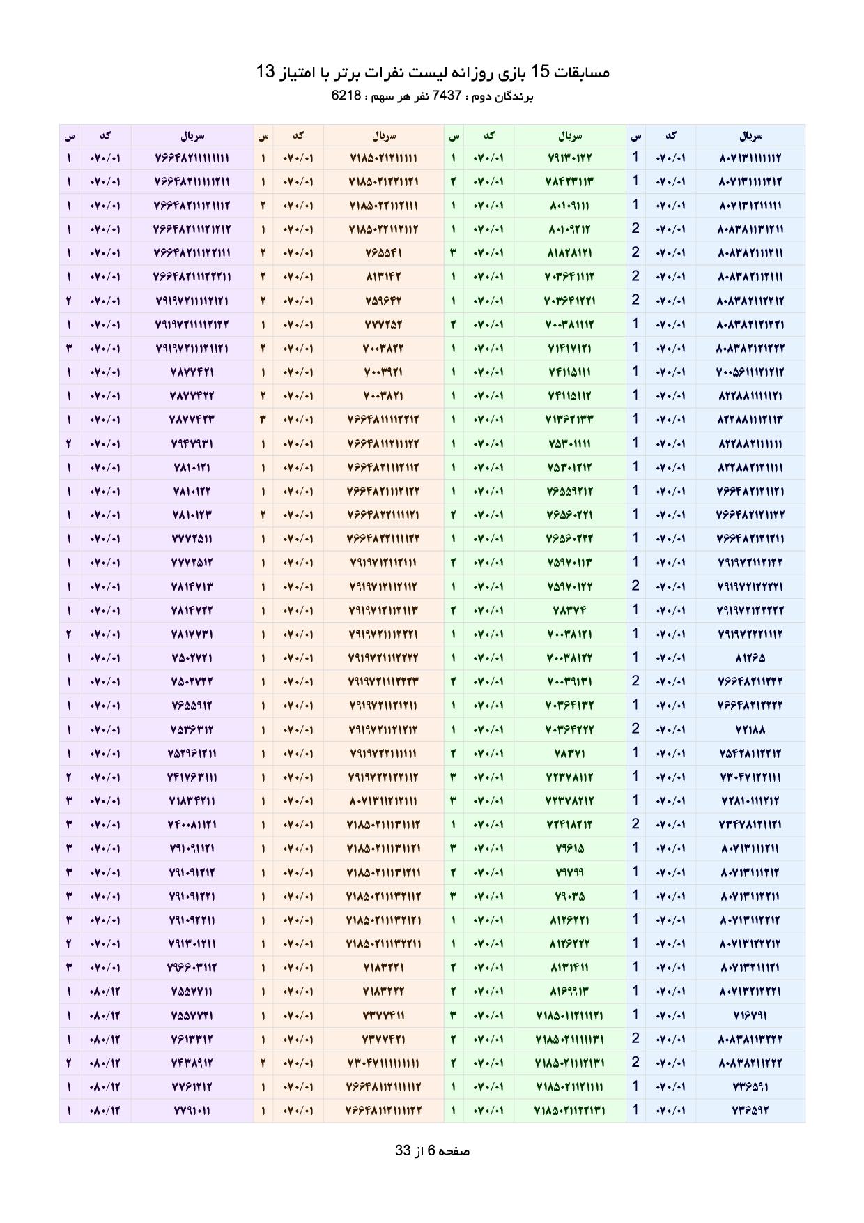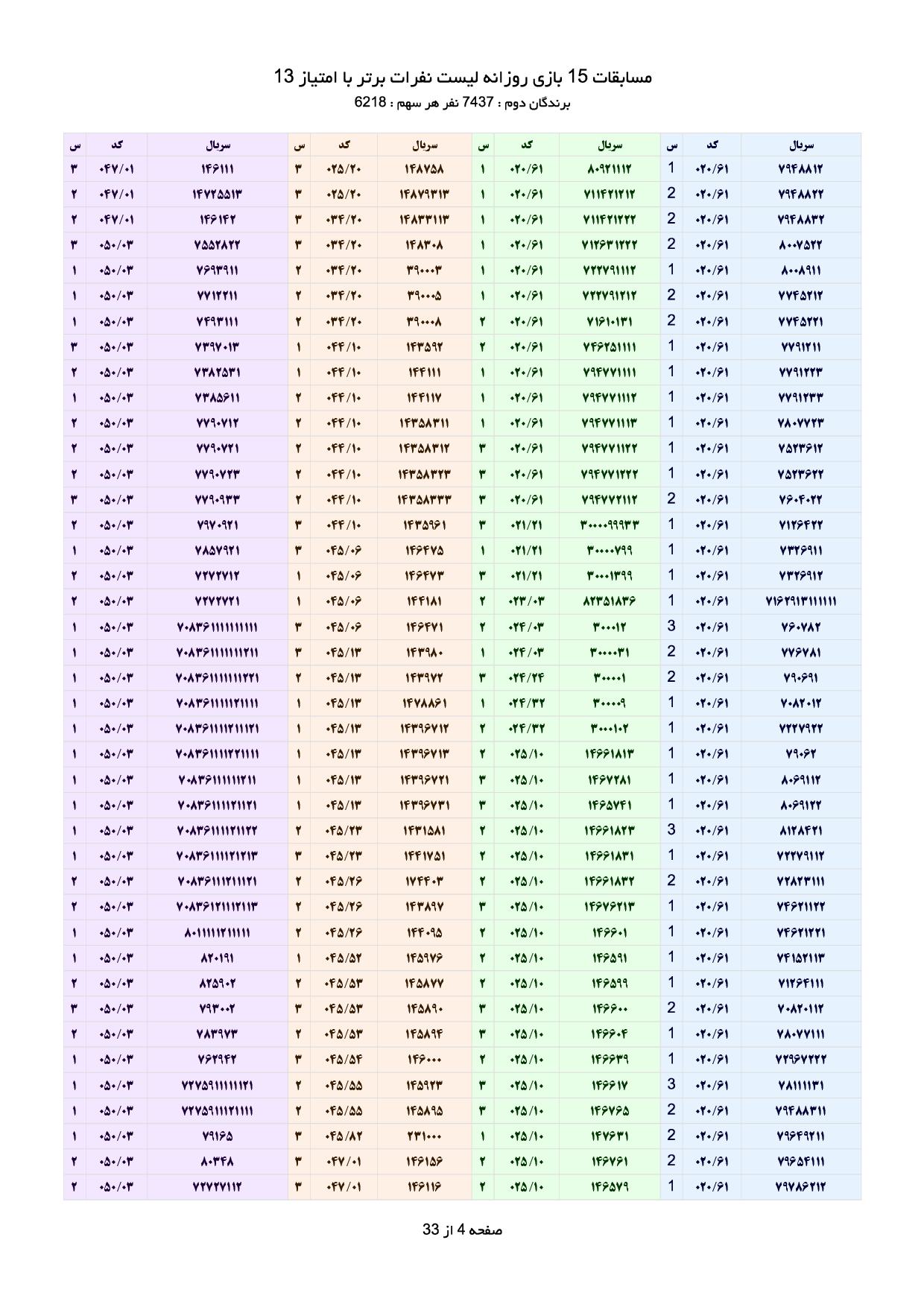 هدایای پرداختی : 0000 تعداد مشارکت : 00