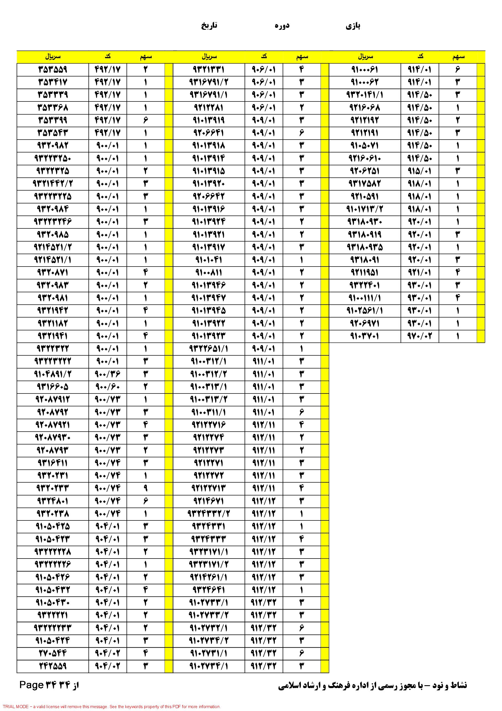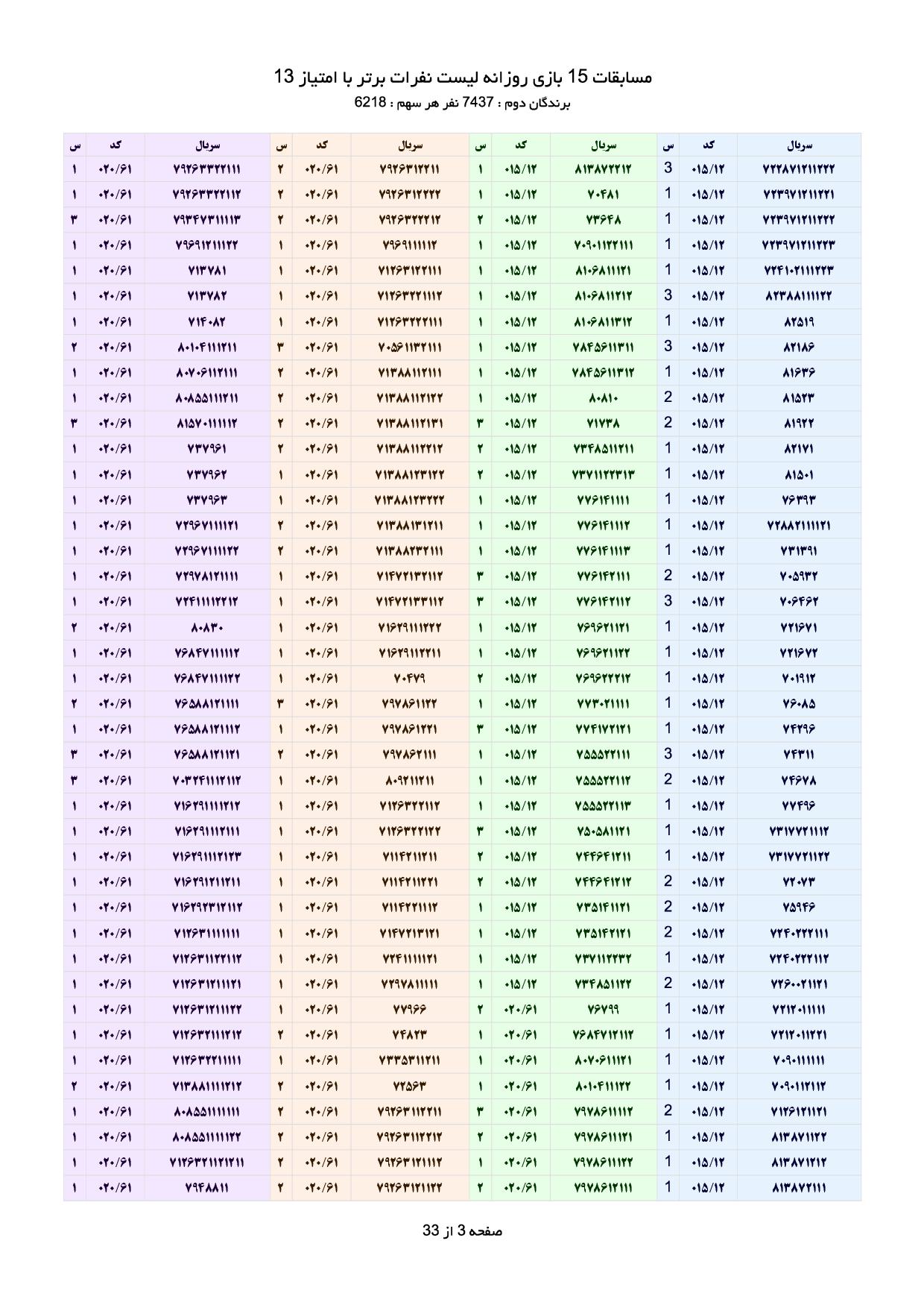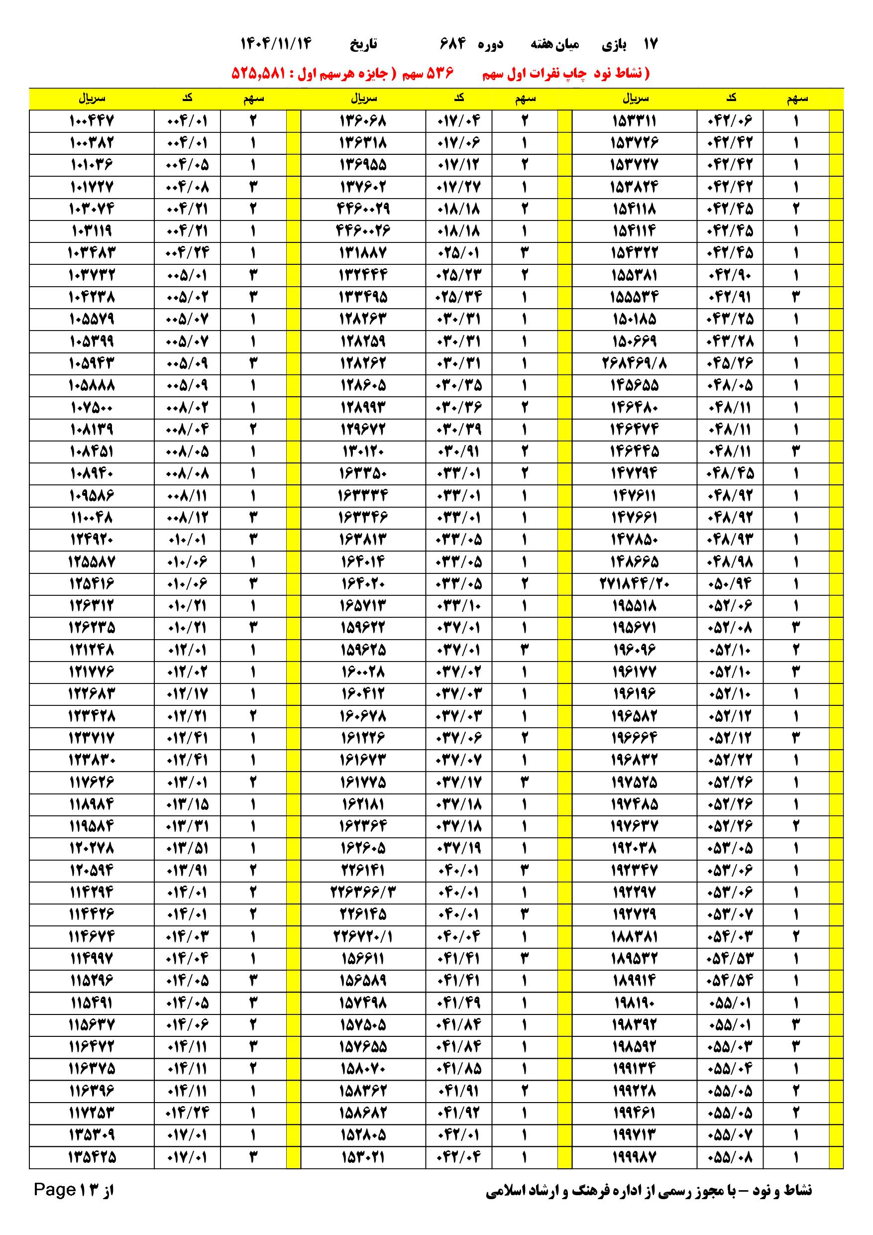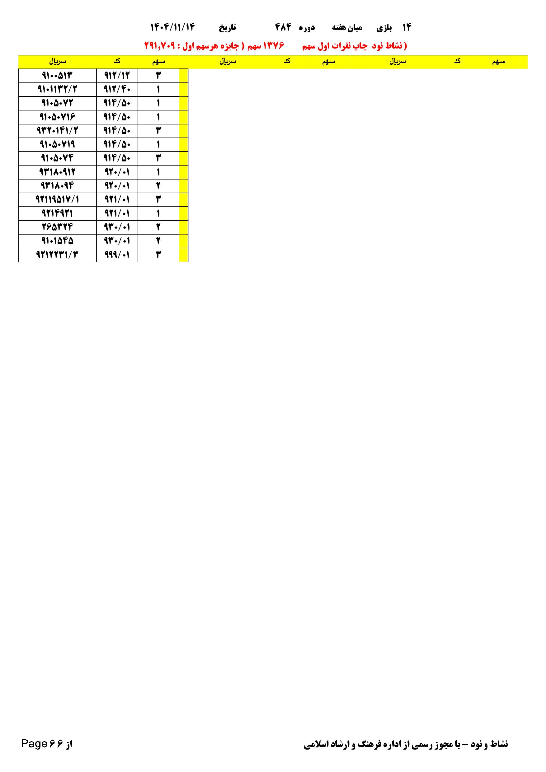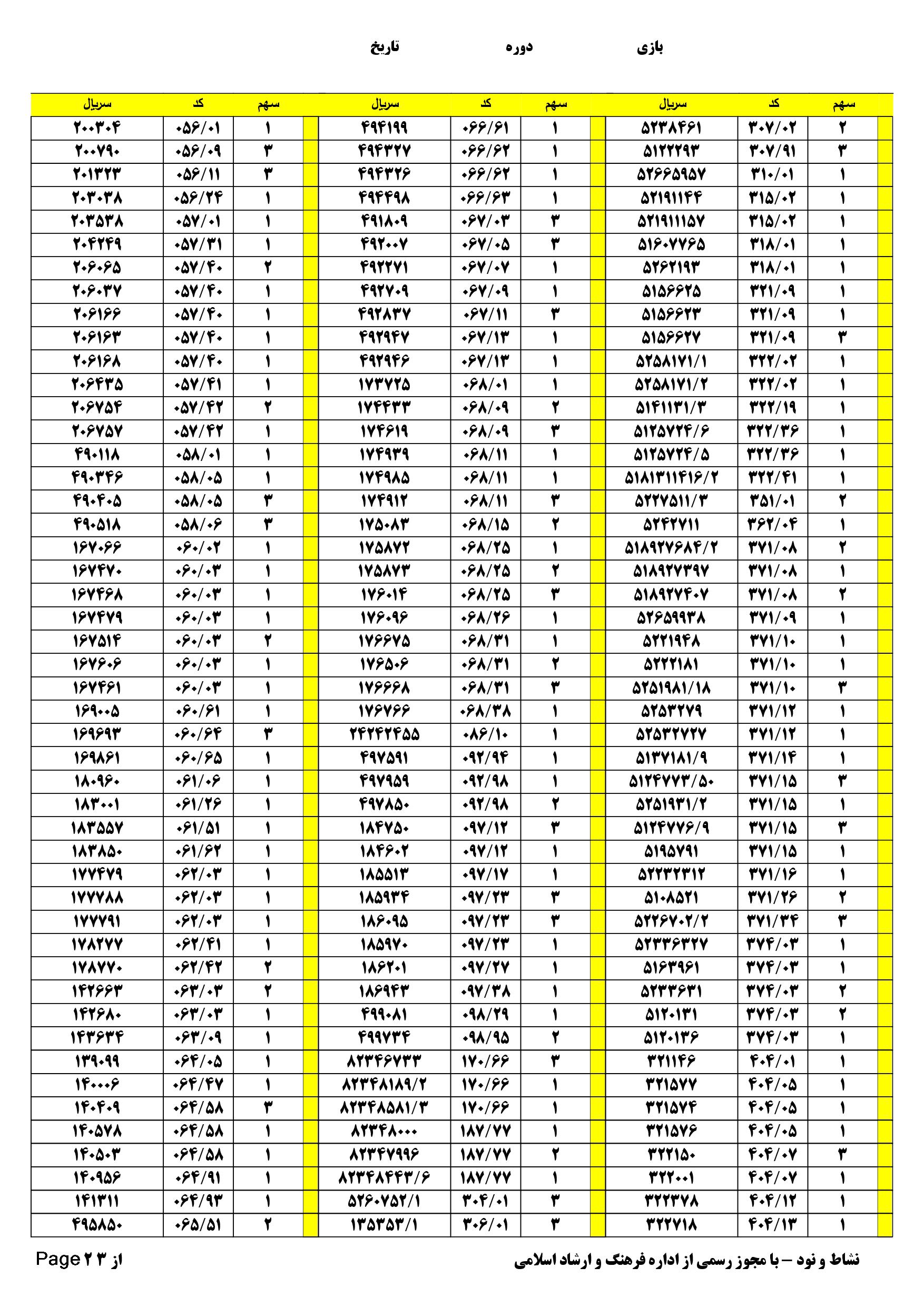هدایای پرداختی : 0000 تعداد مشارکت : 00