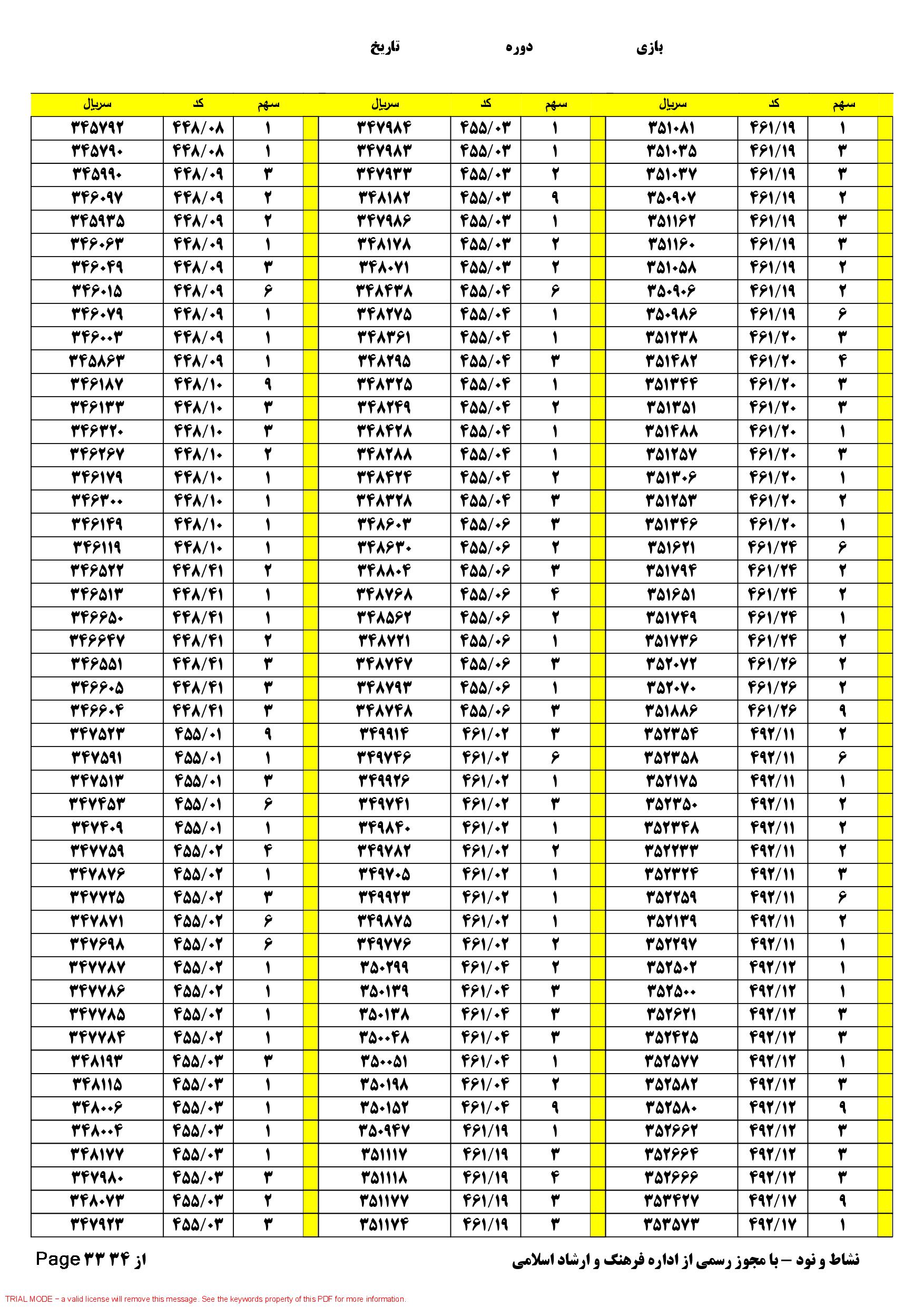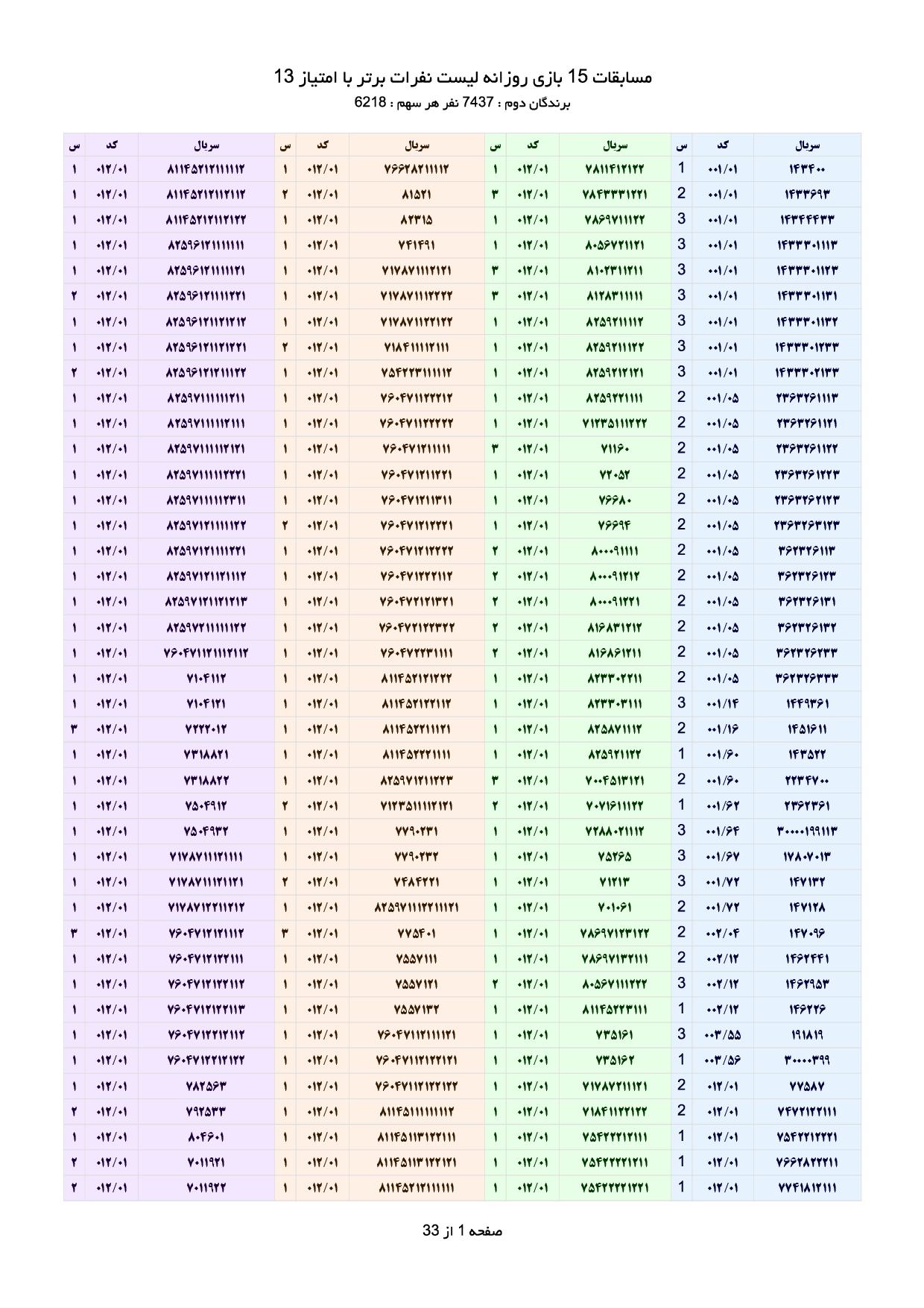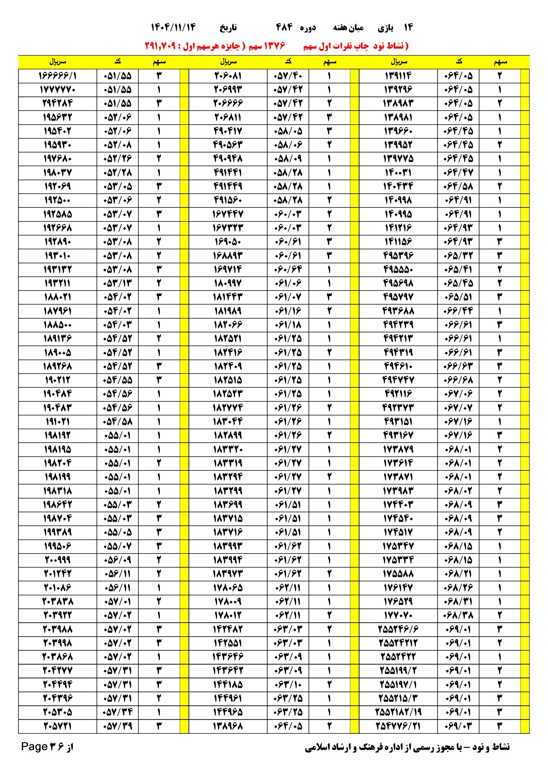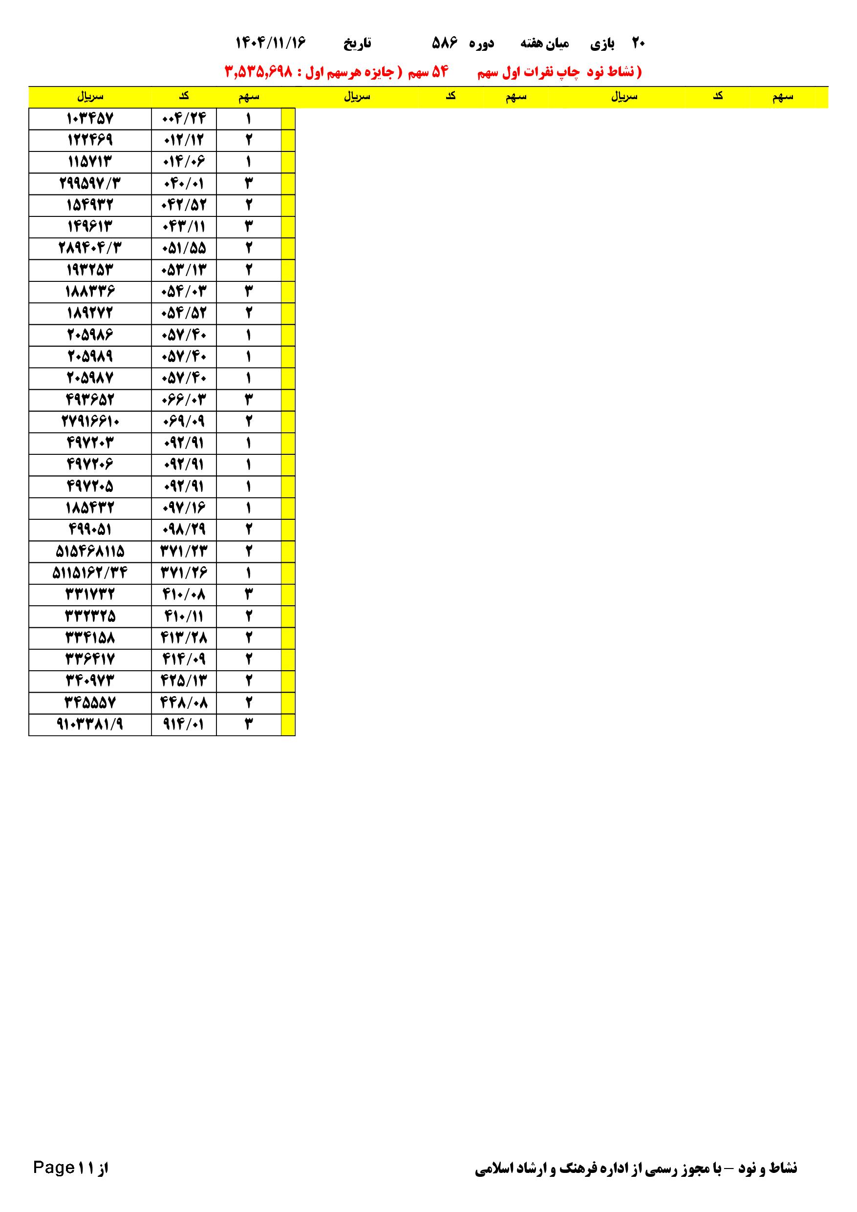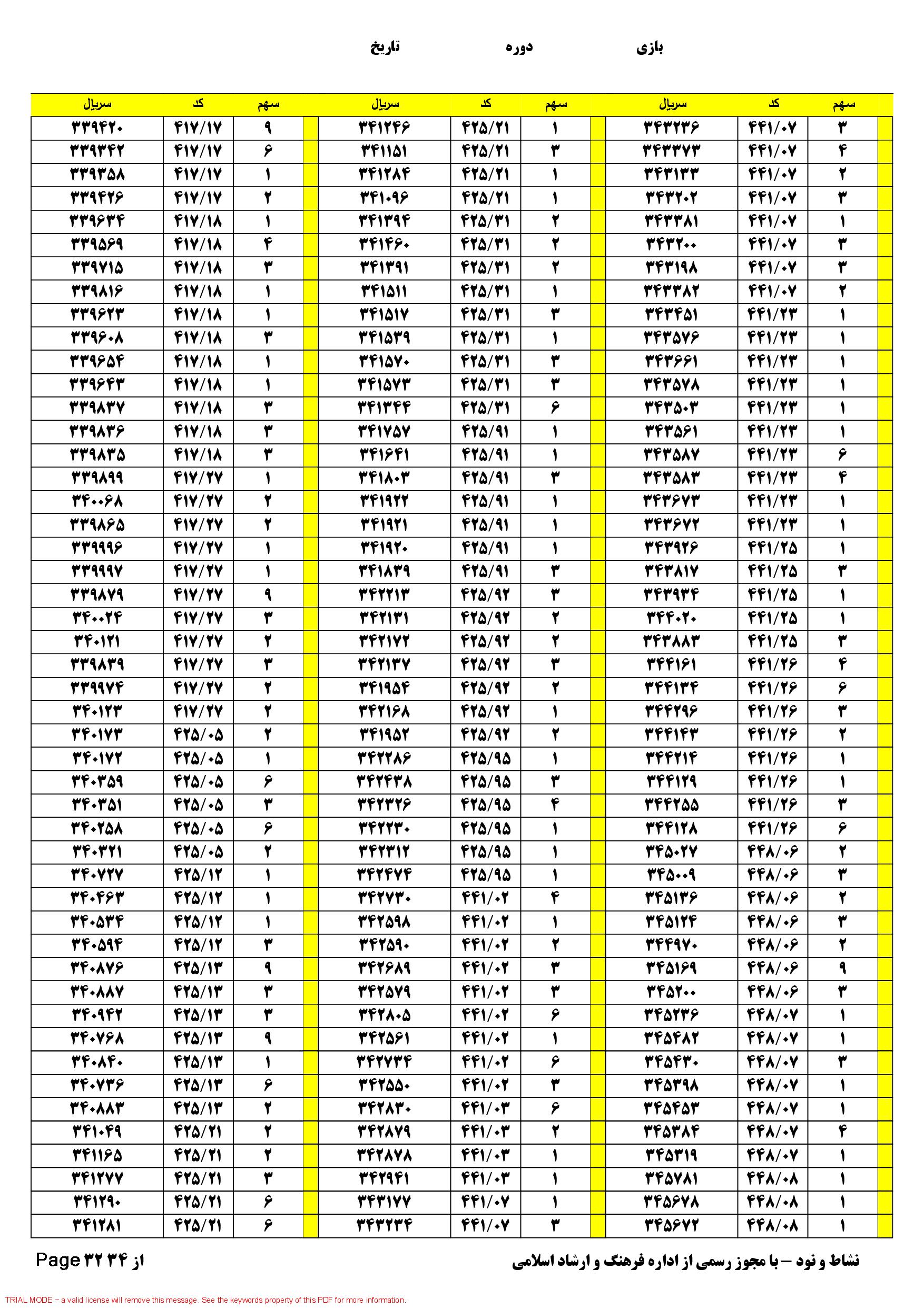 هدایای پرداختی : 0000 تعداد مشارکت : 00