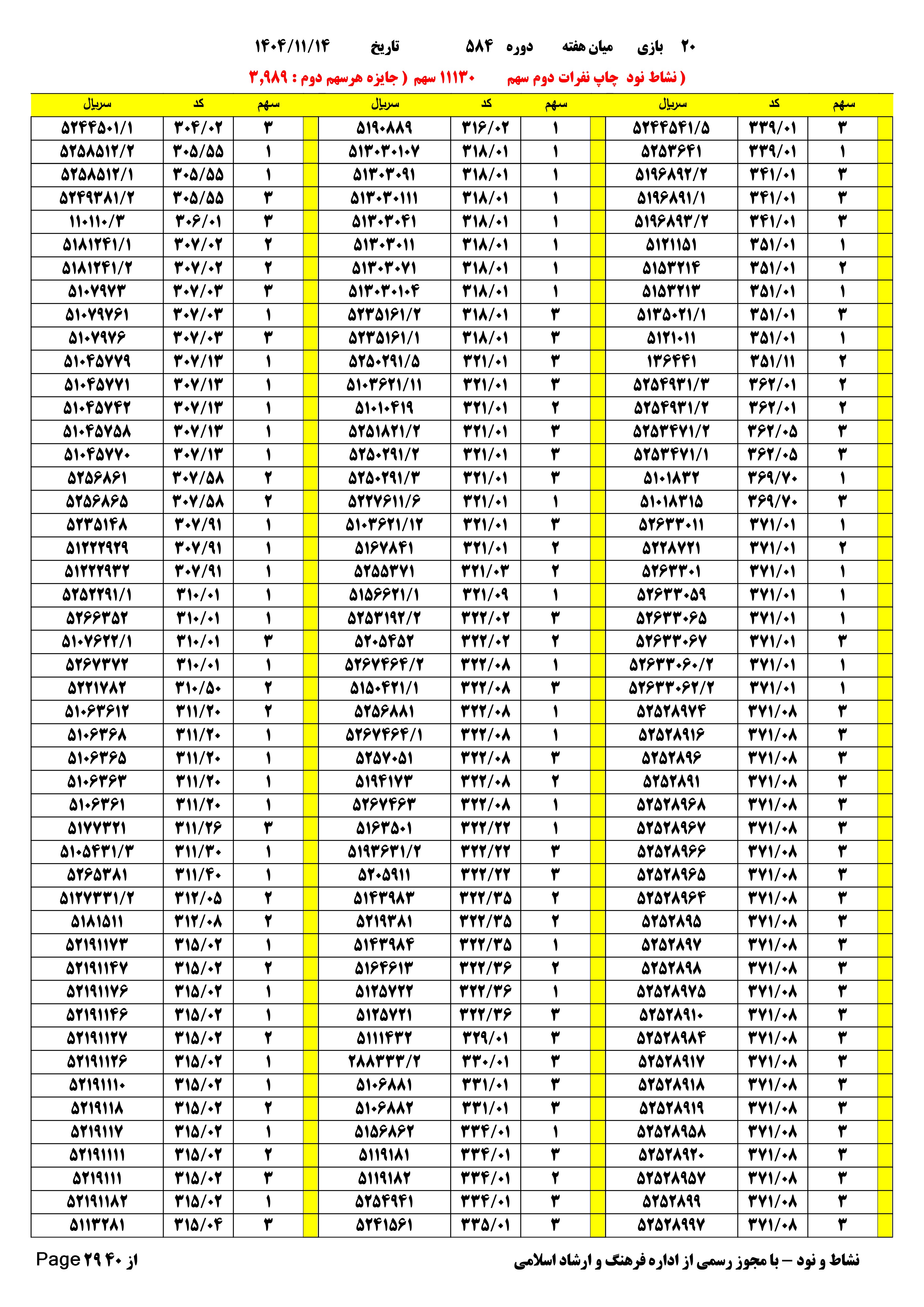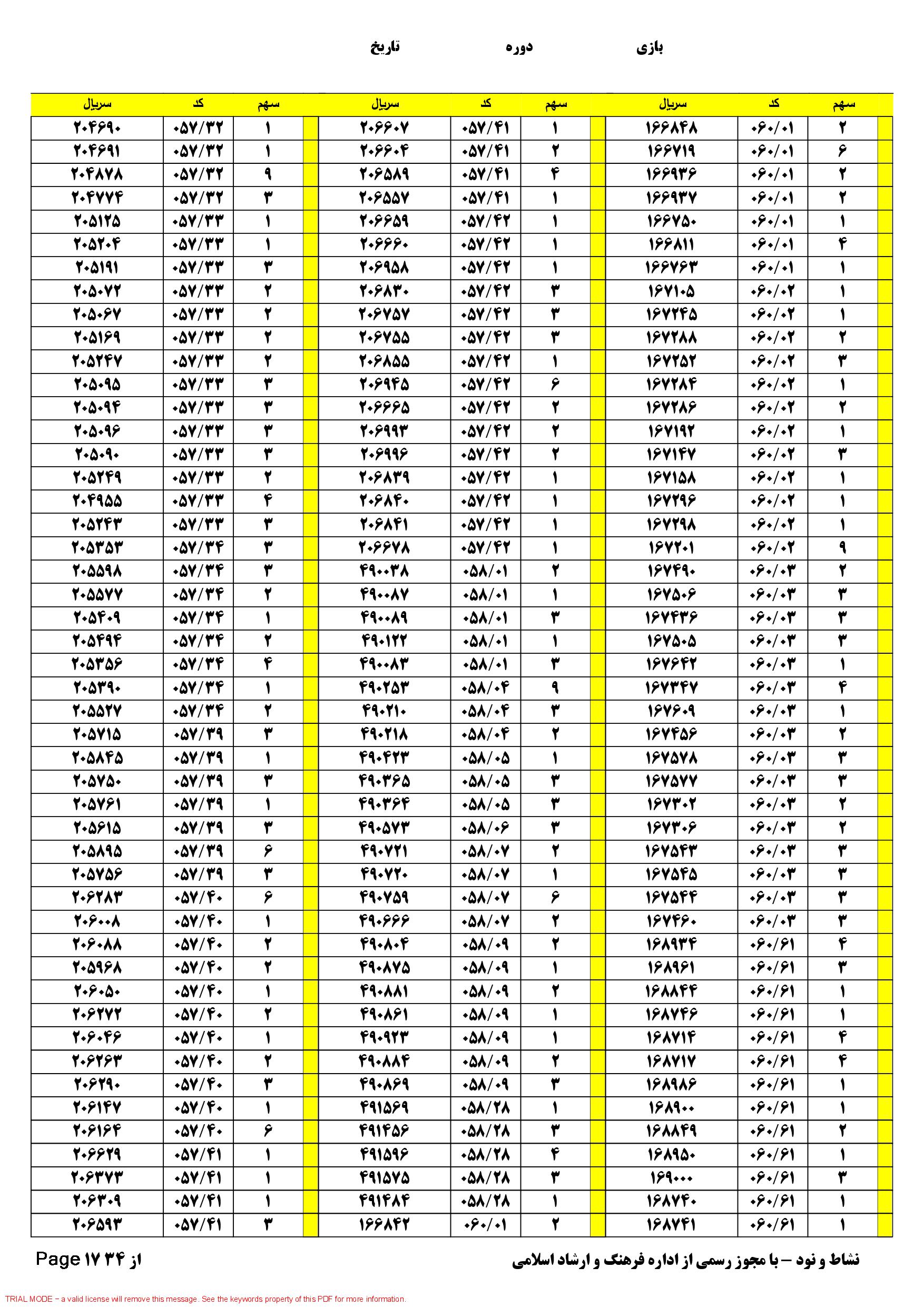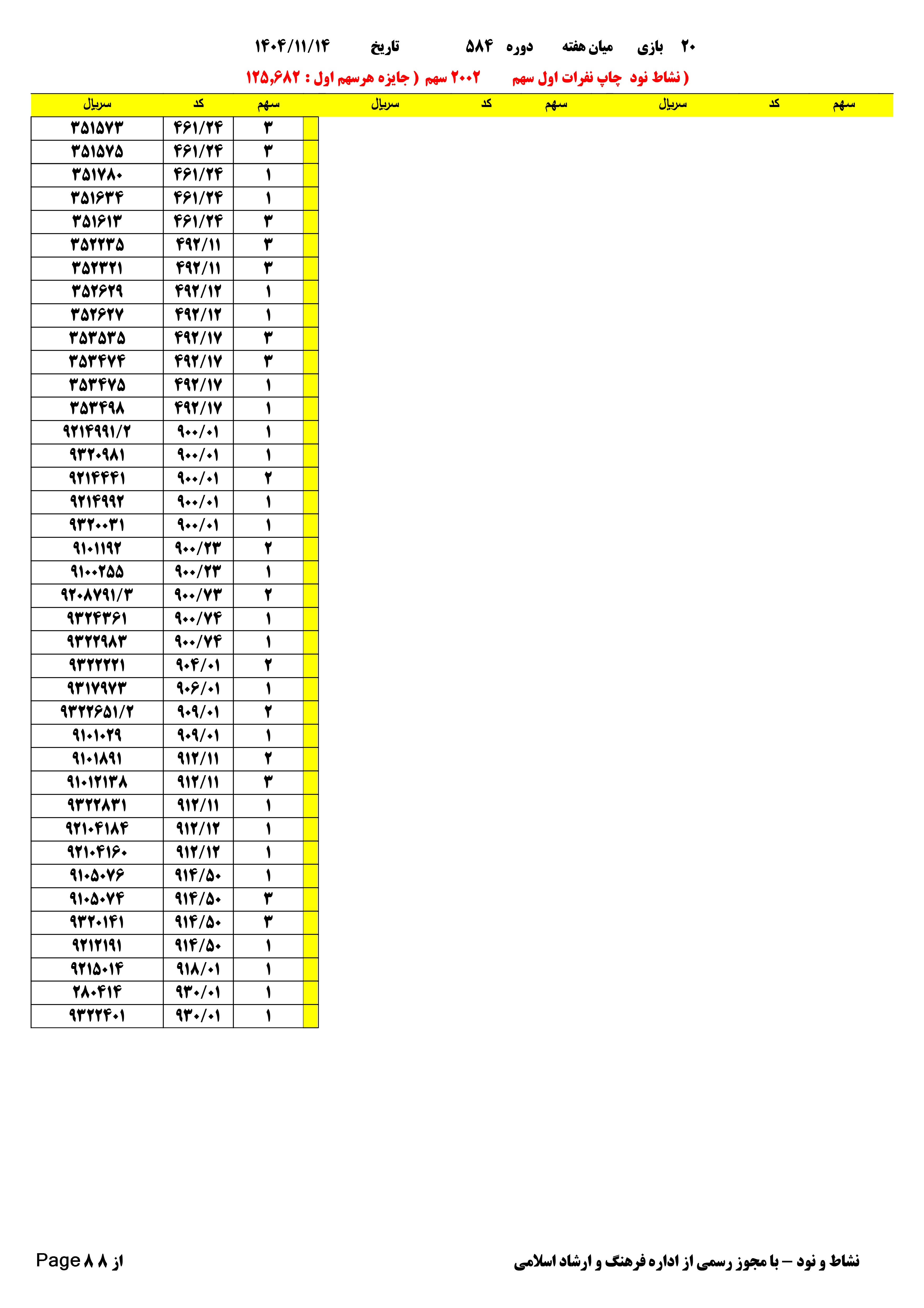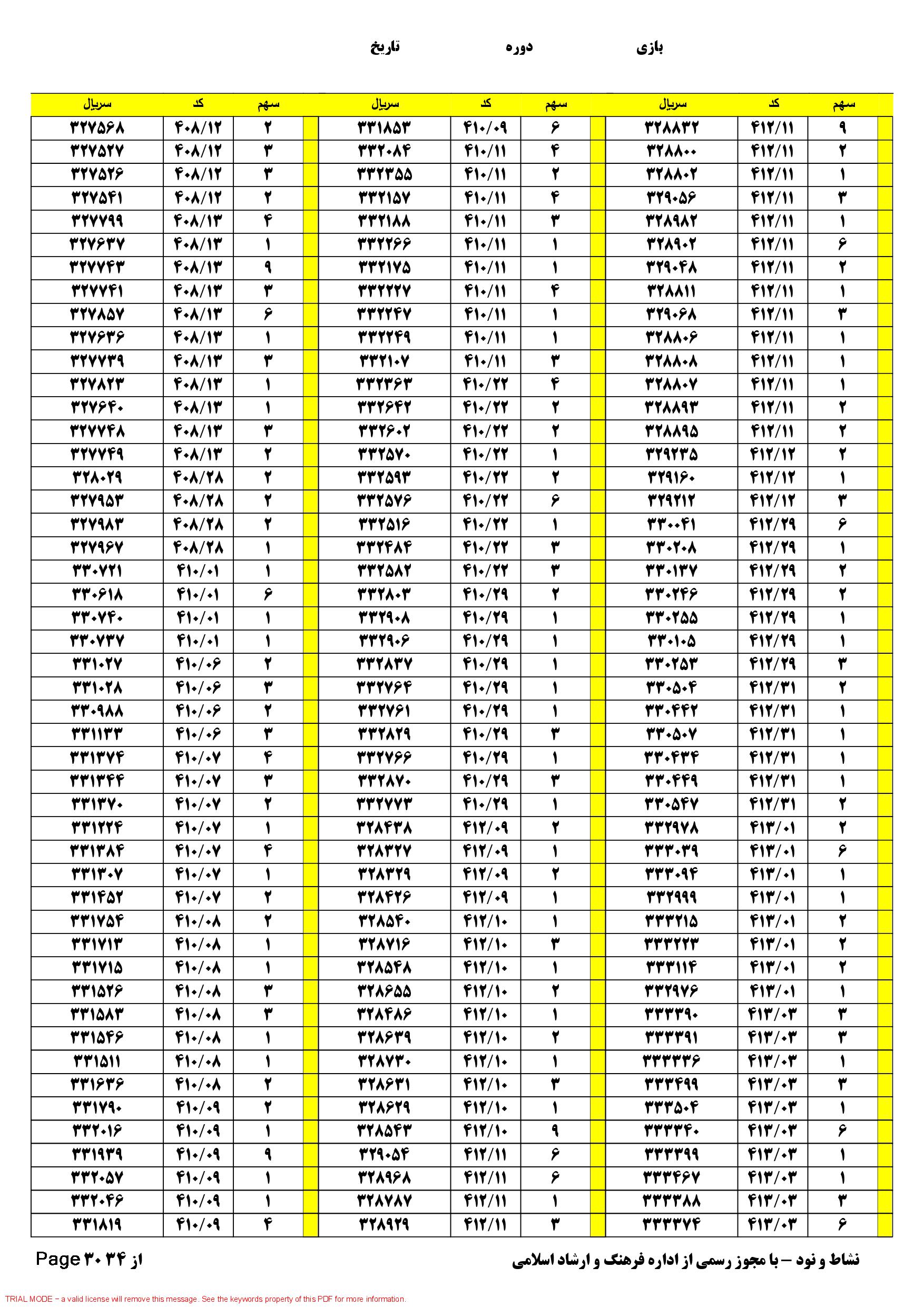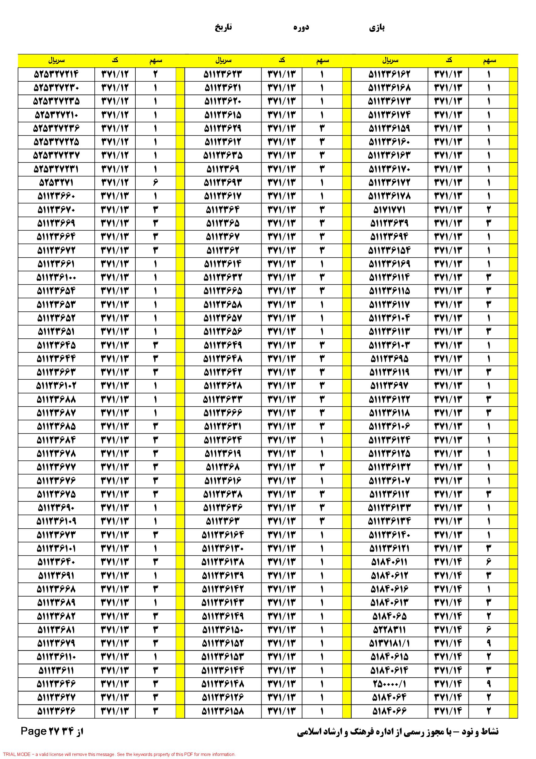 هدایای پرداختی : 0000 تعداد مشارکت : 00