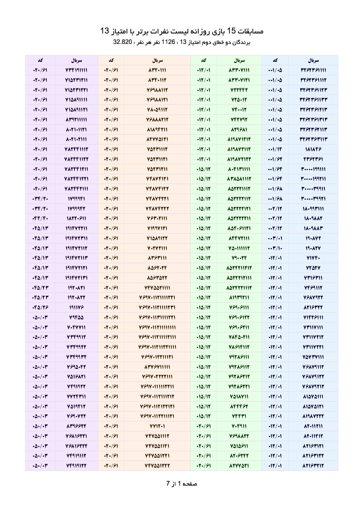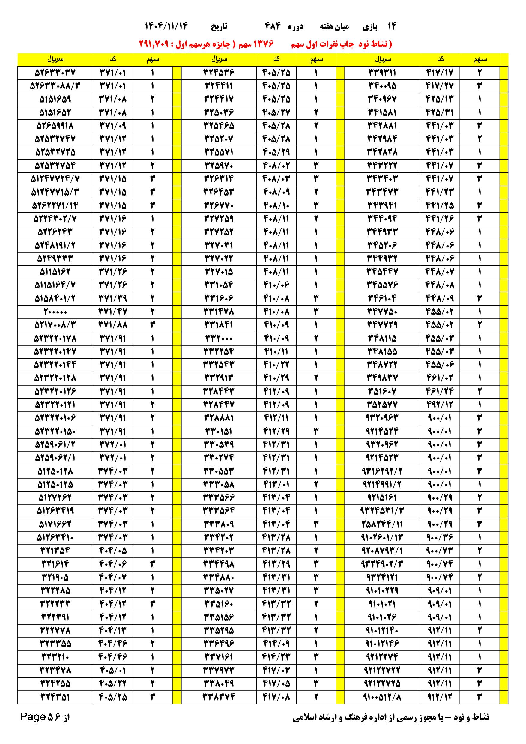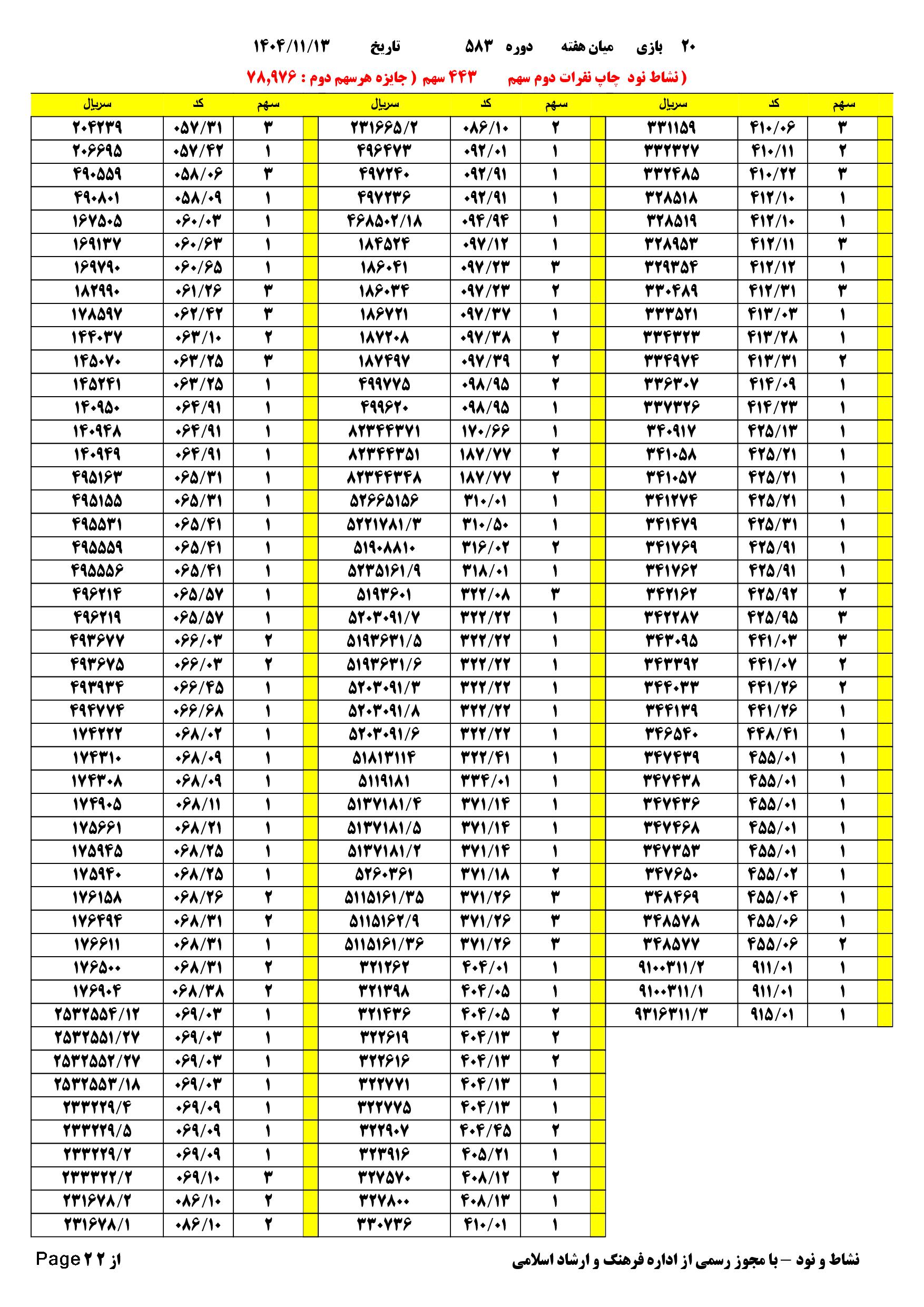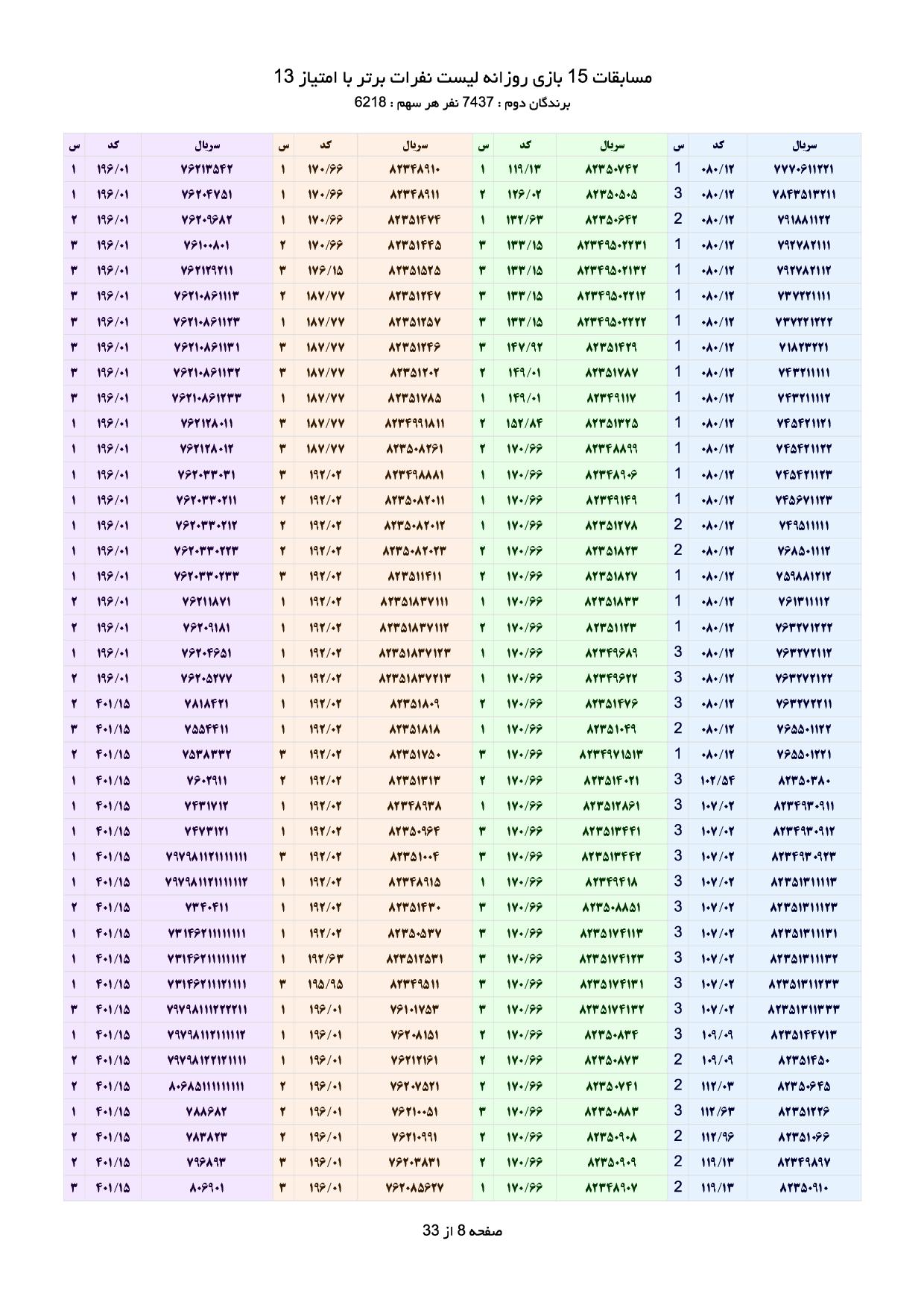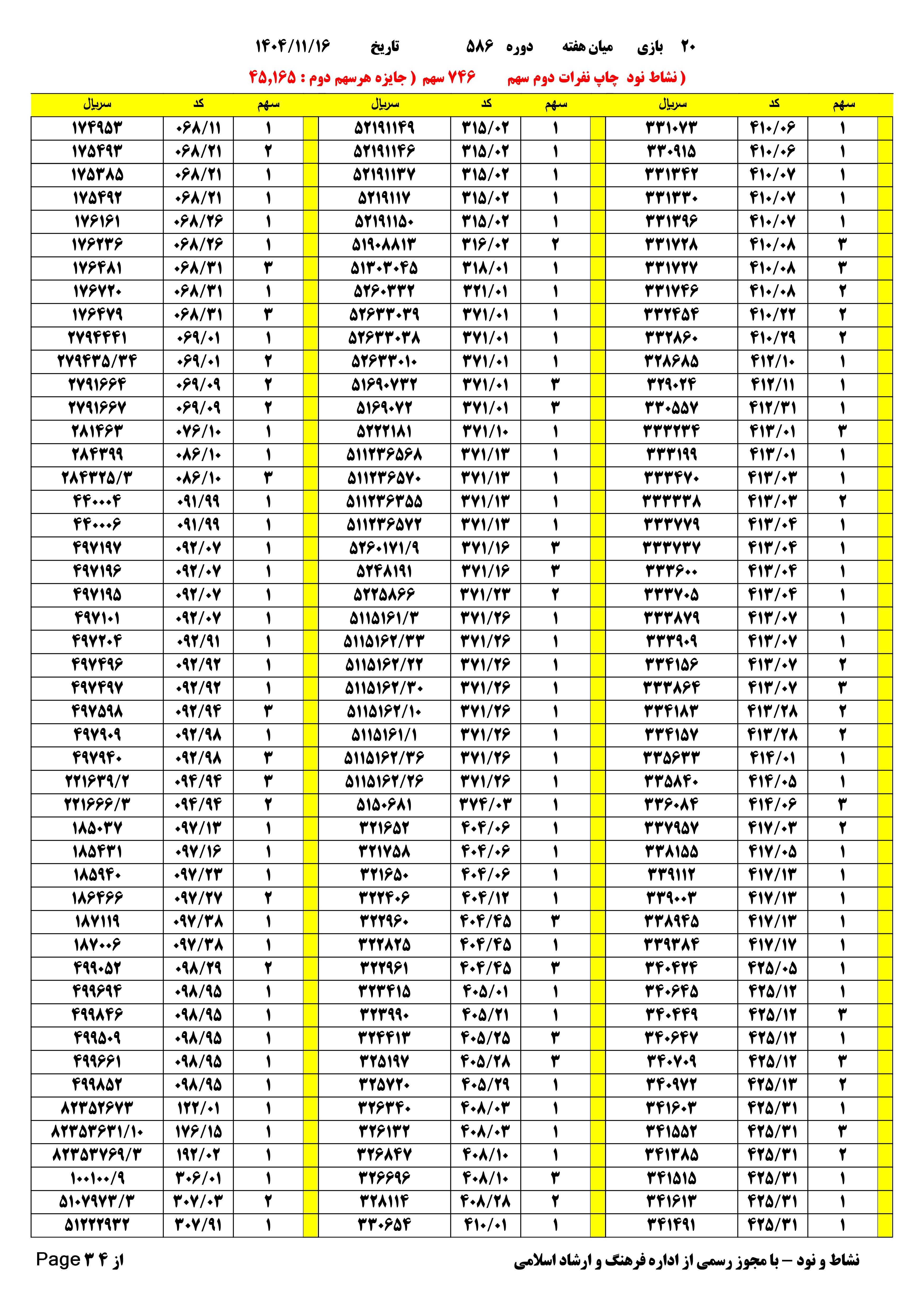 هدایای پرداختی : 0000 تعداد مشارکت : 00
