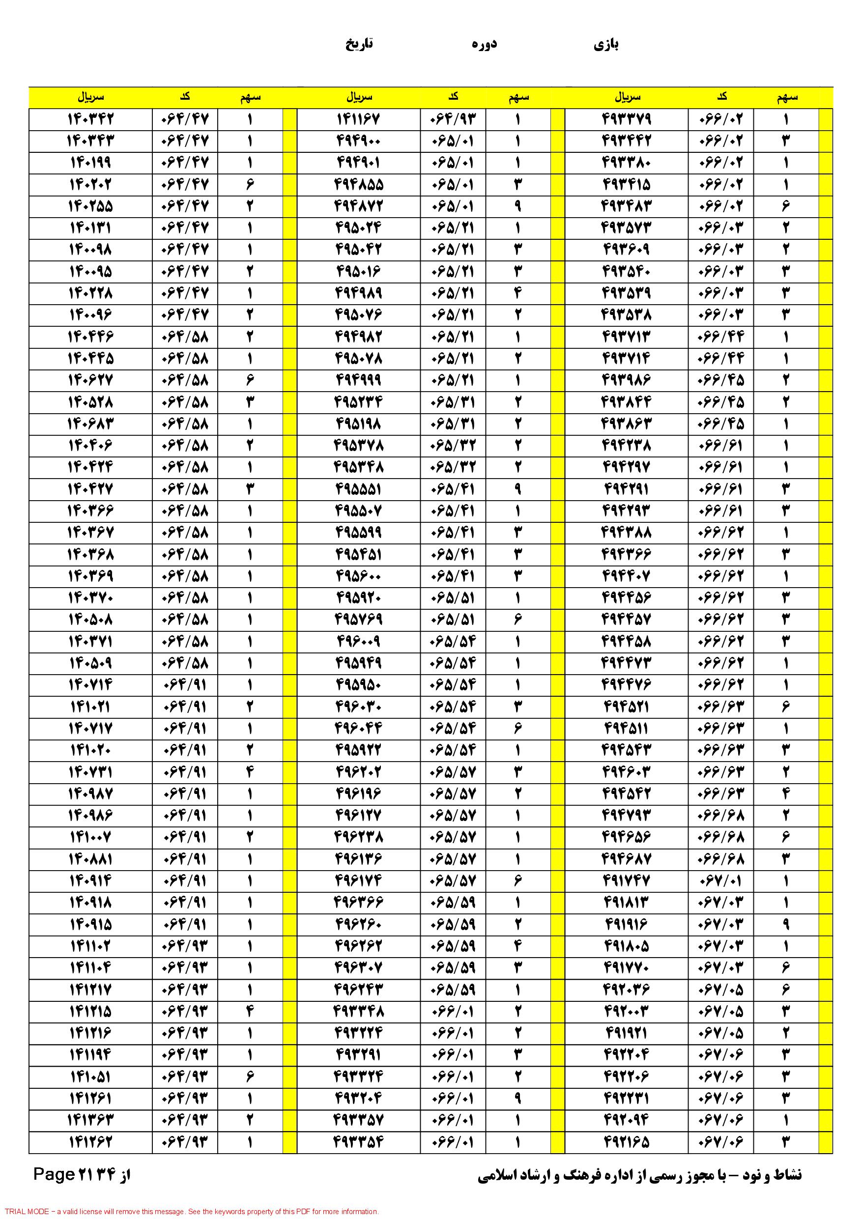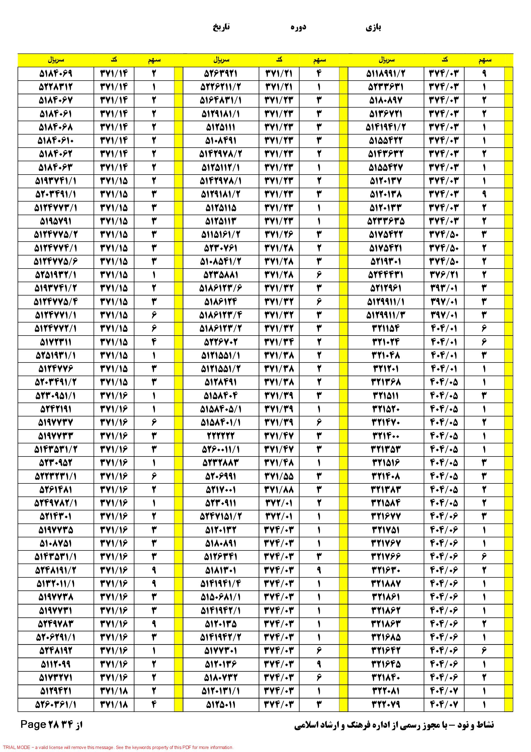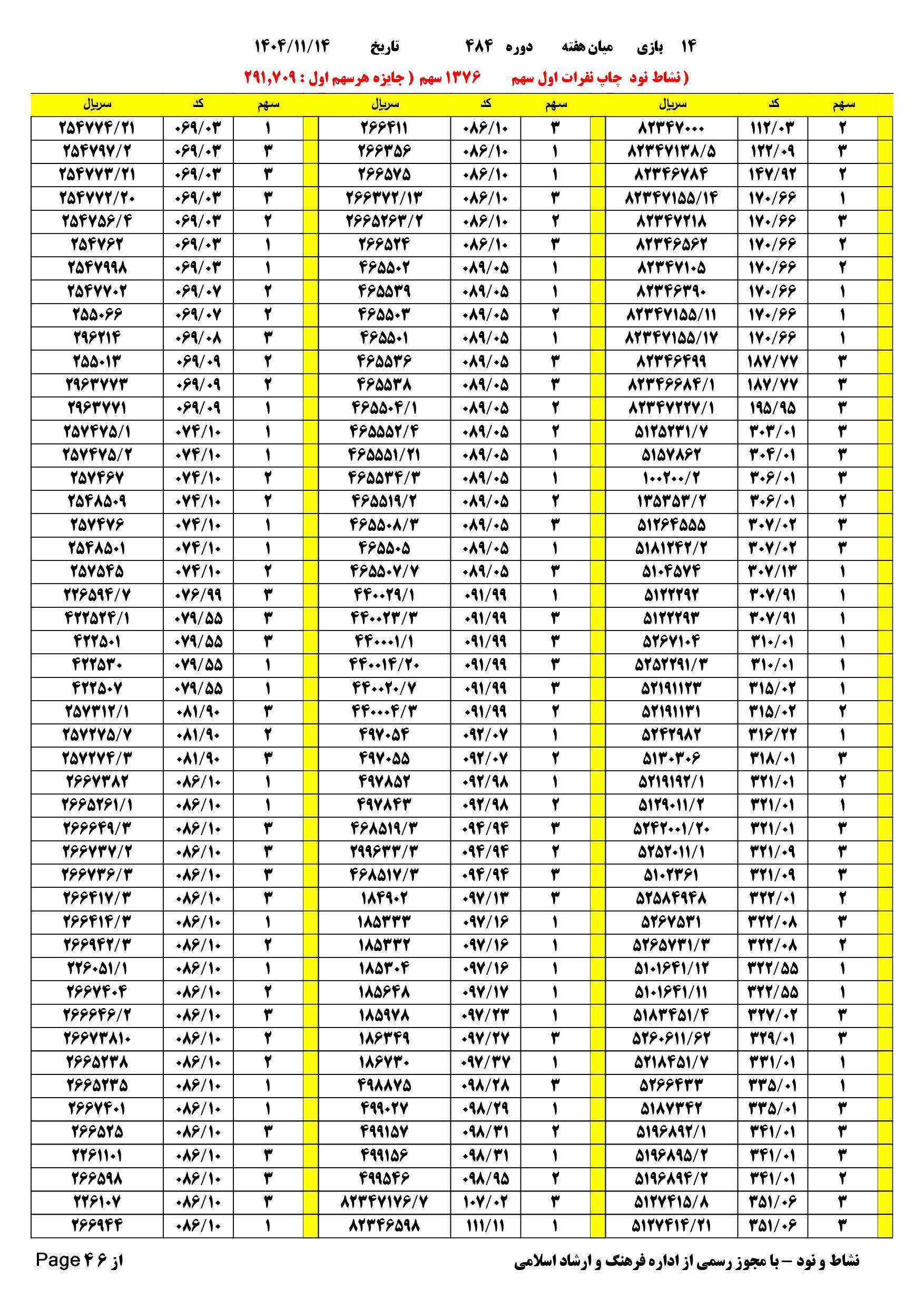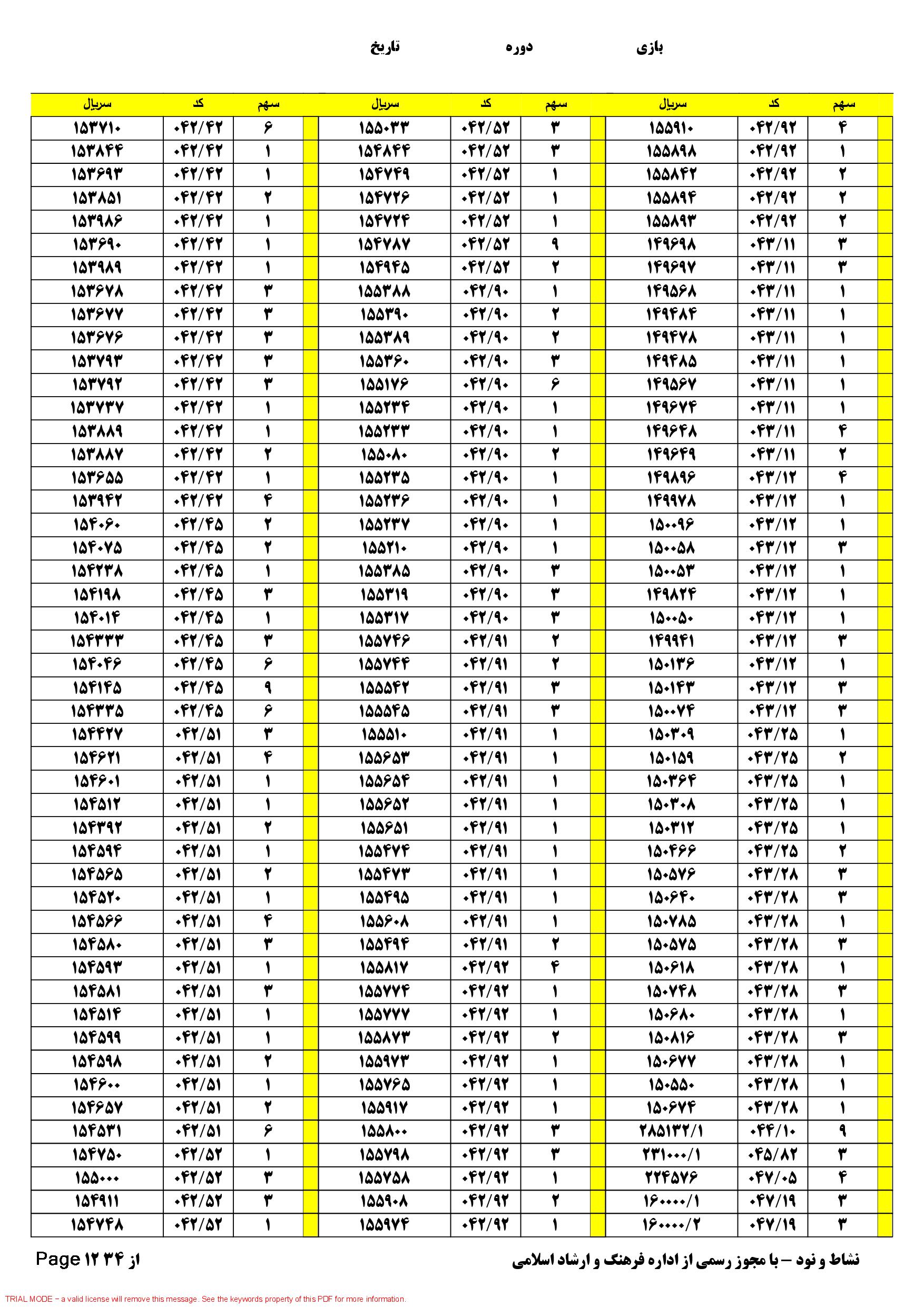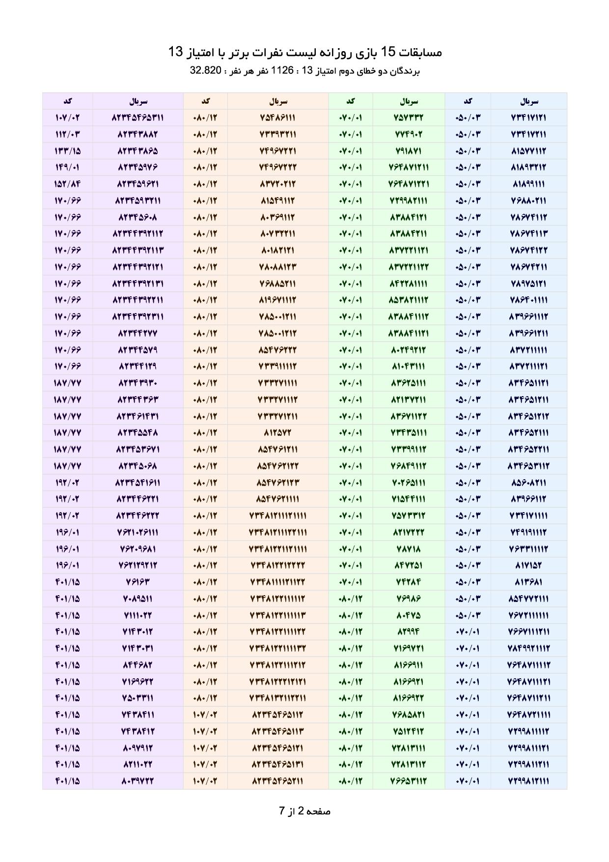 هدایای پرداختی : 0000 تعداد مشارکت : 00