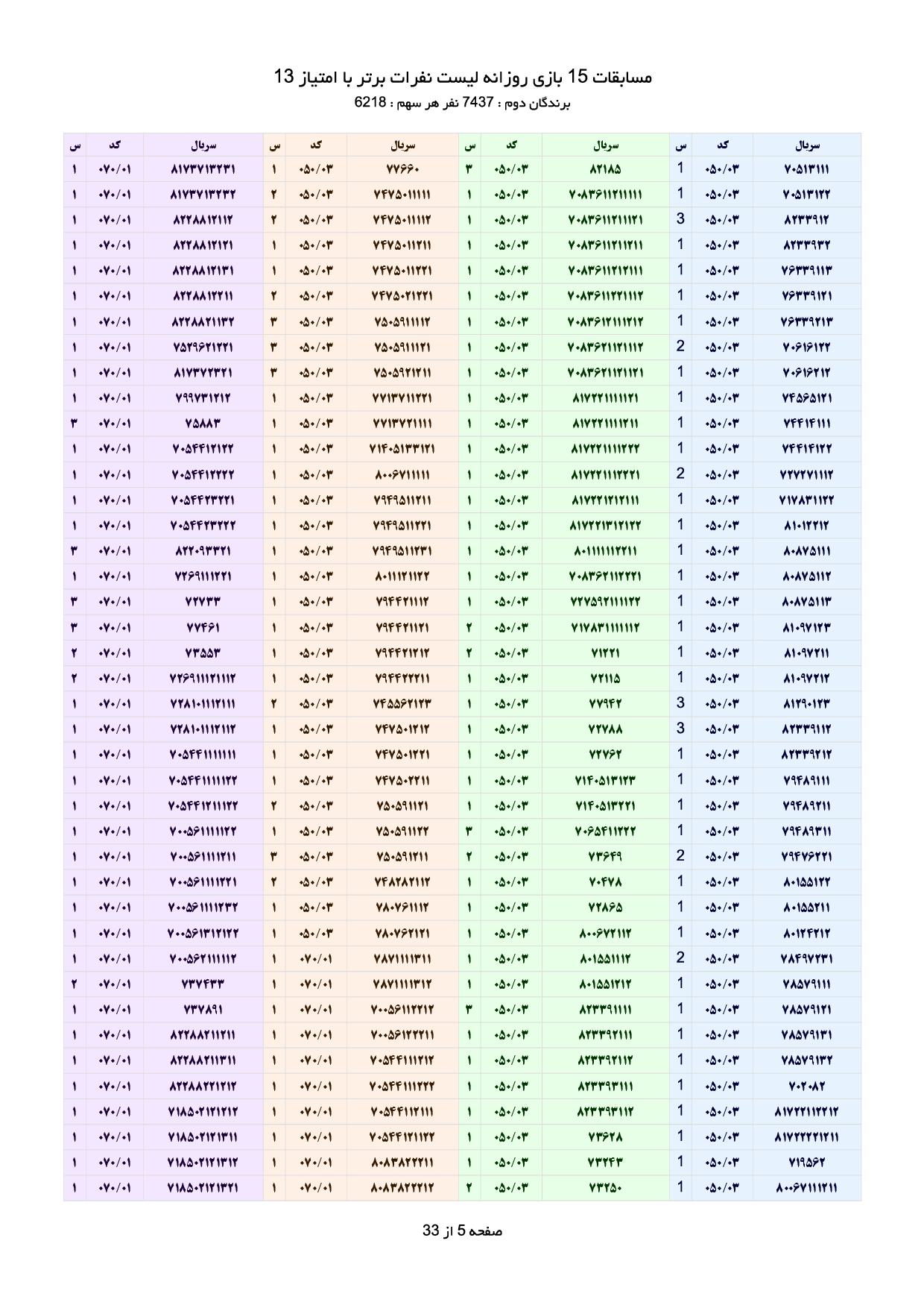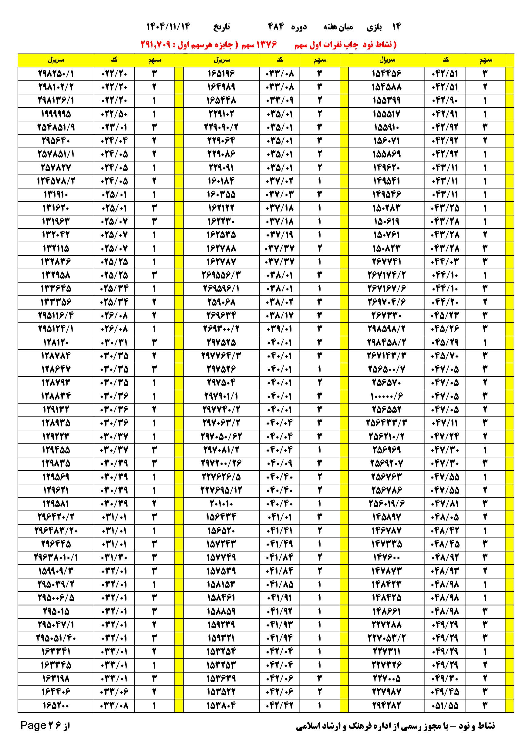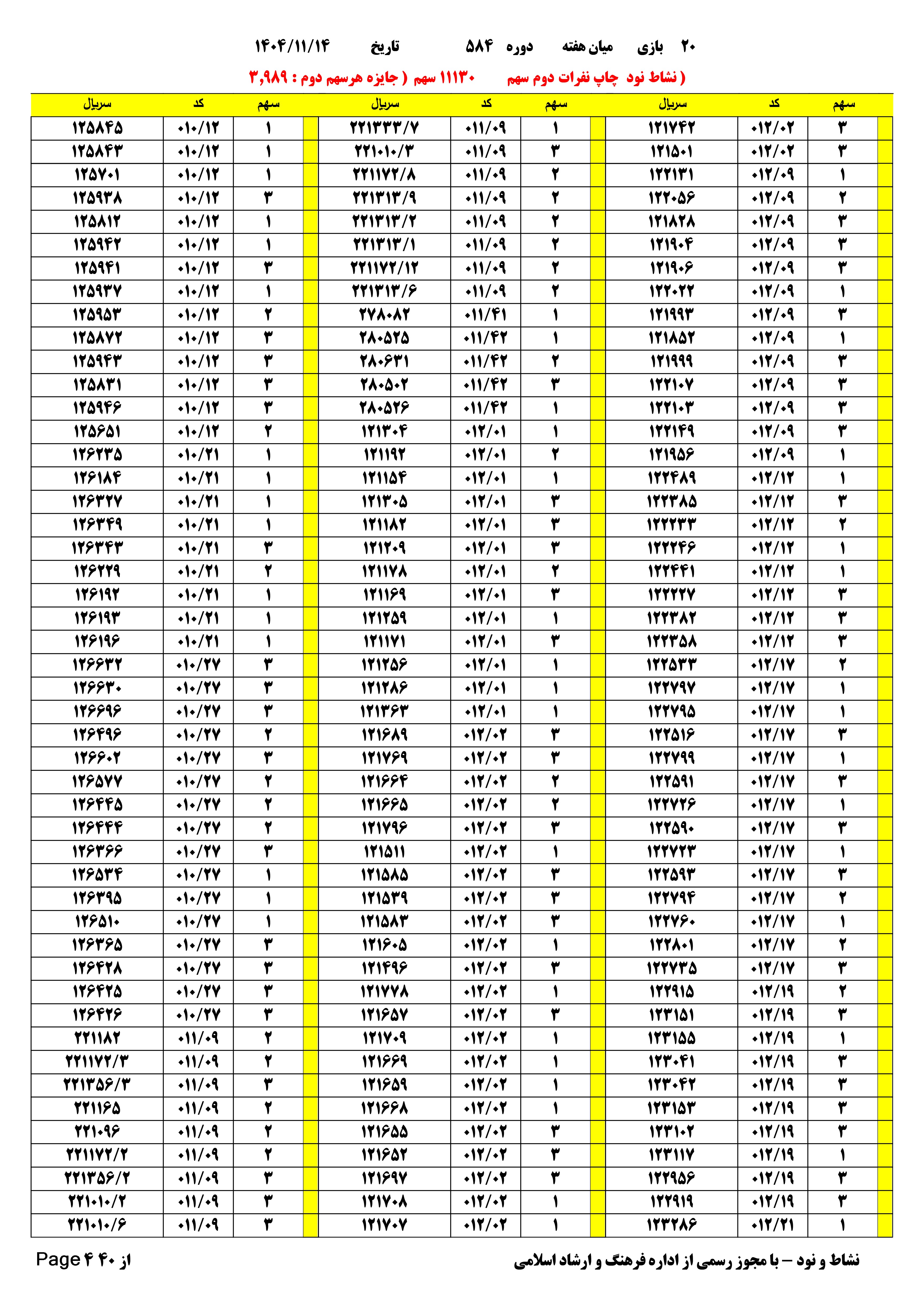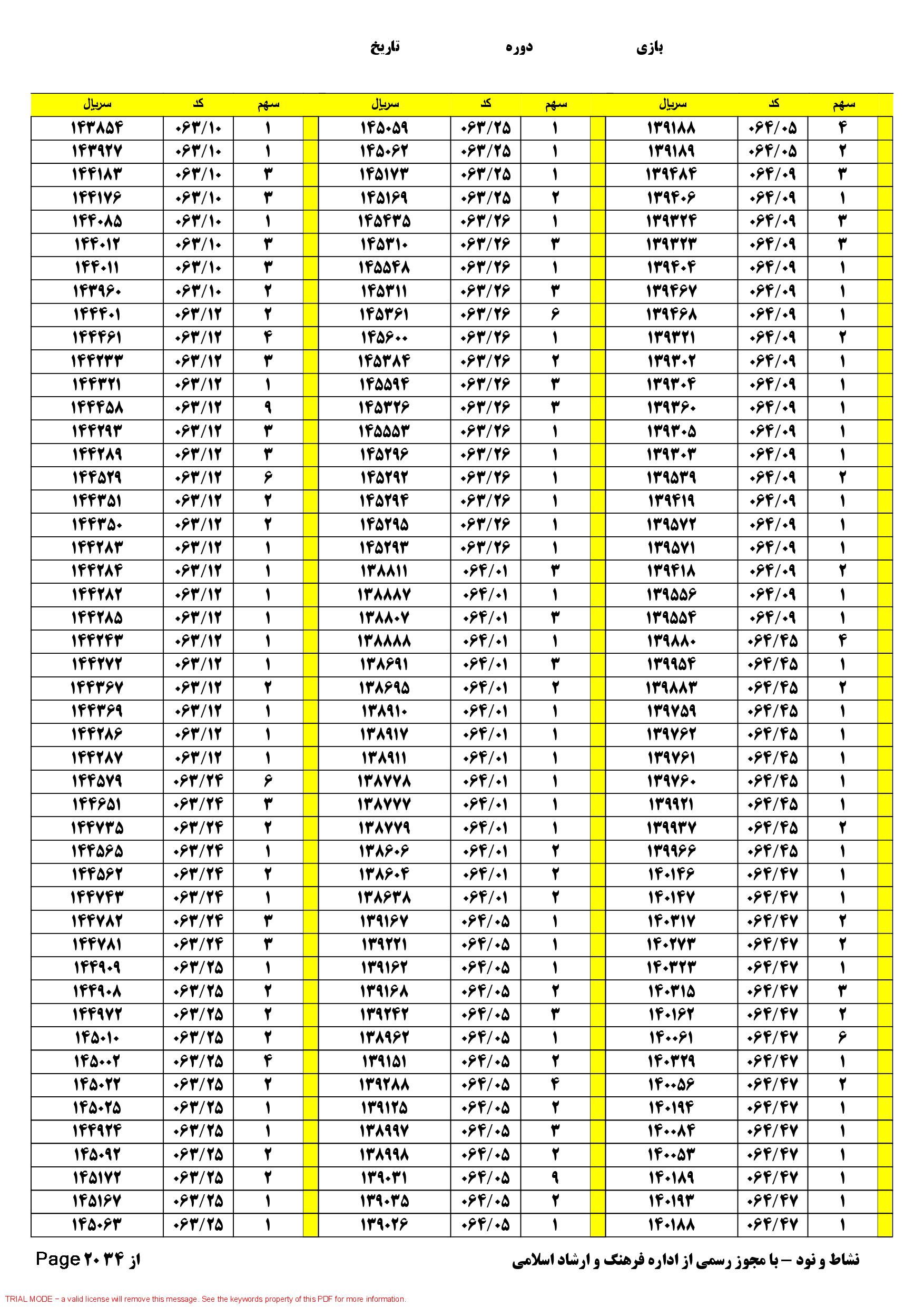 هدایای پرداختی : 0000 تعداد مشارکت : 00