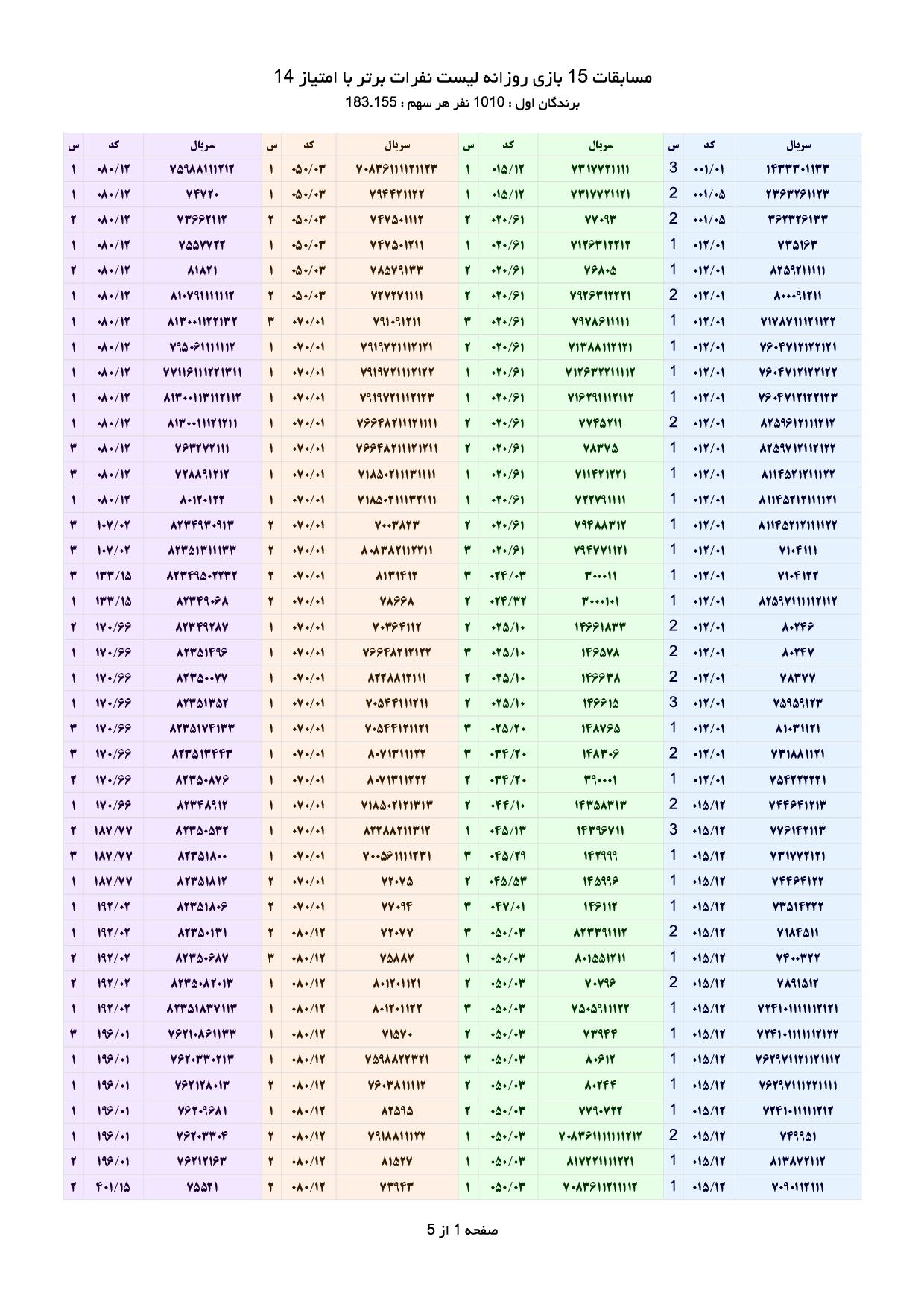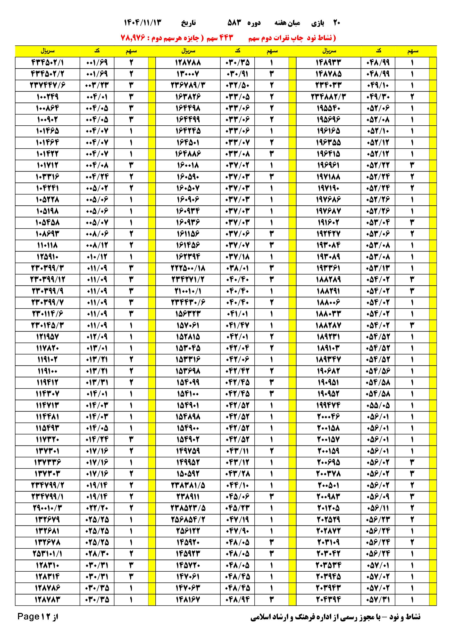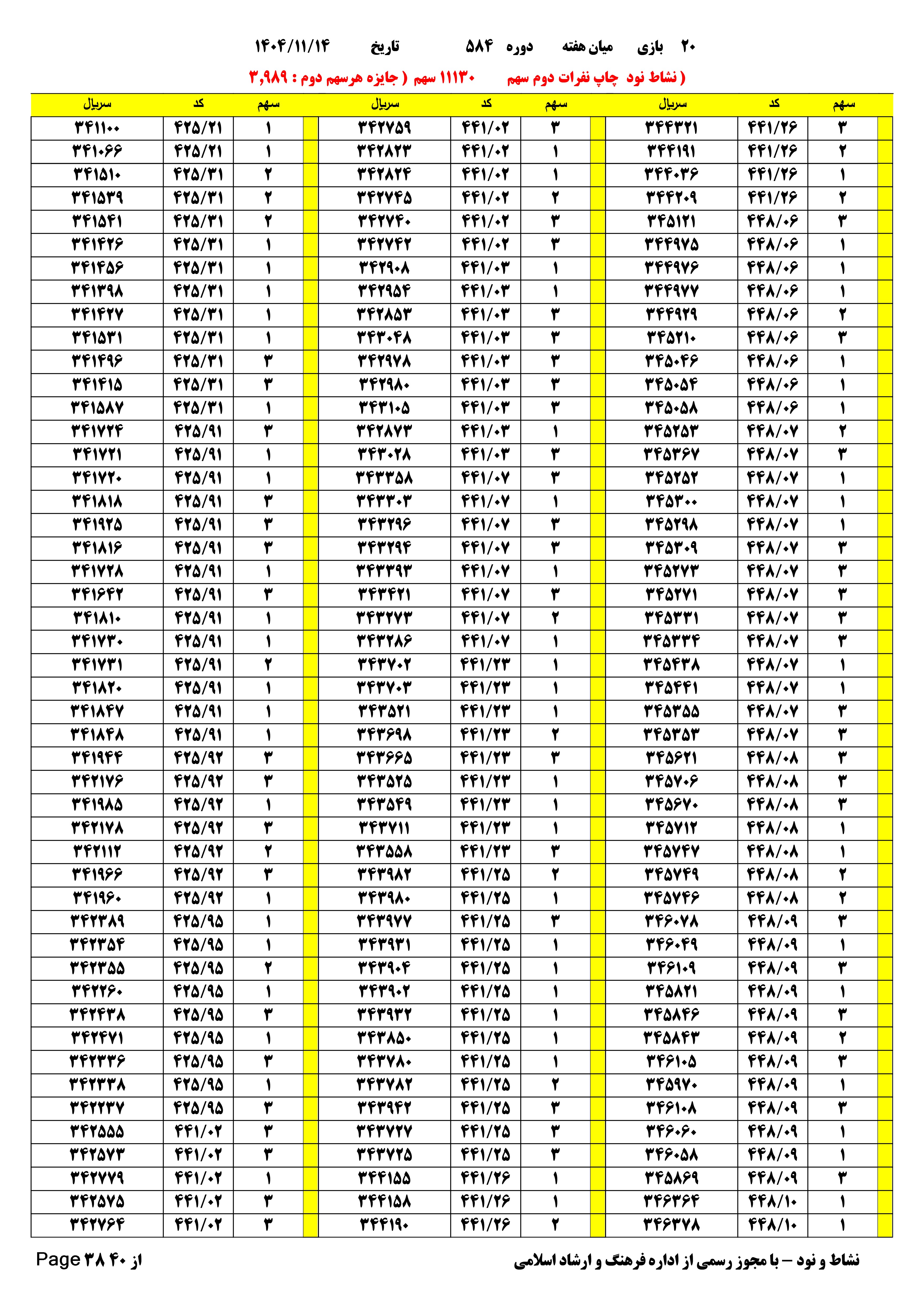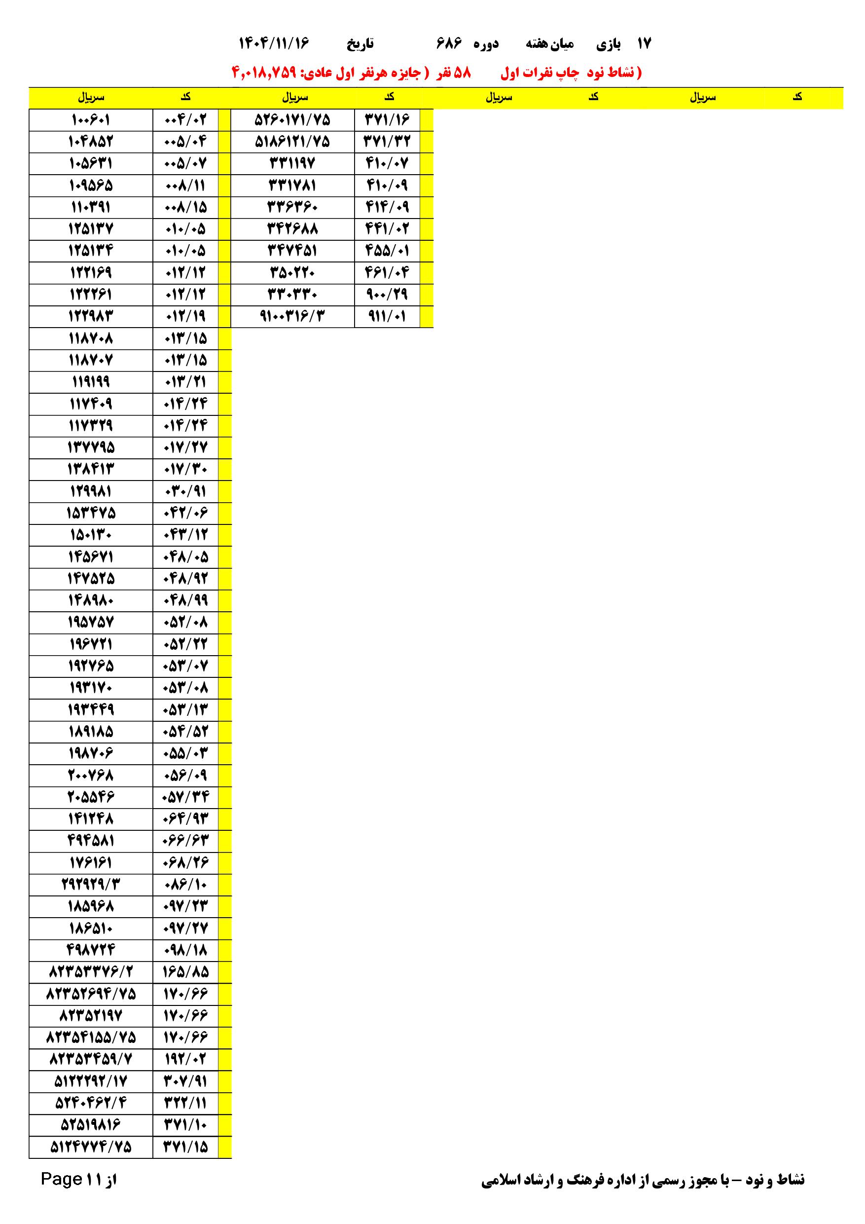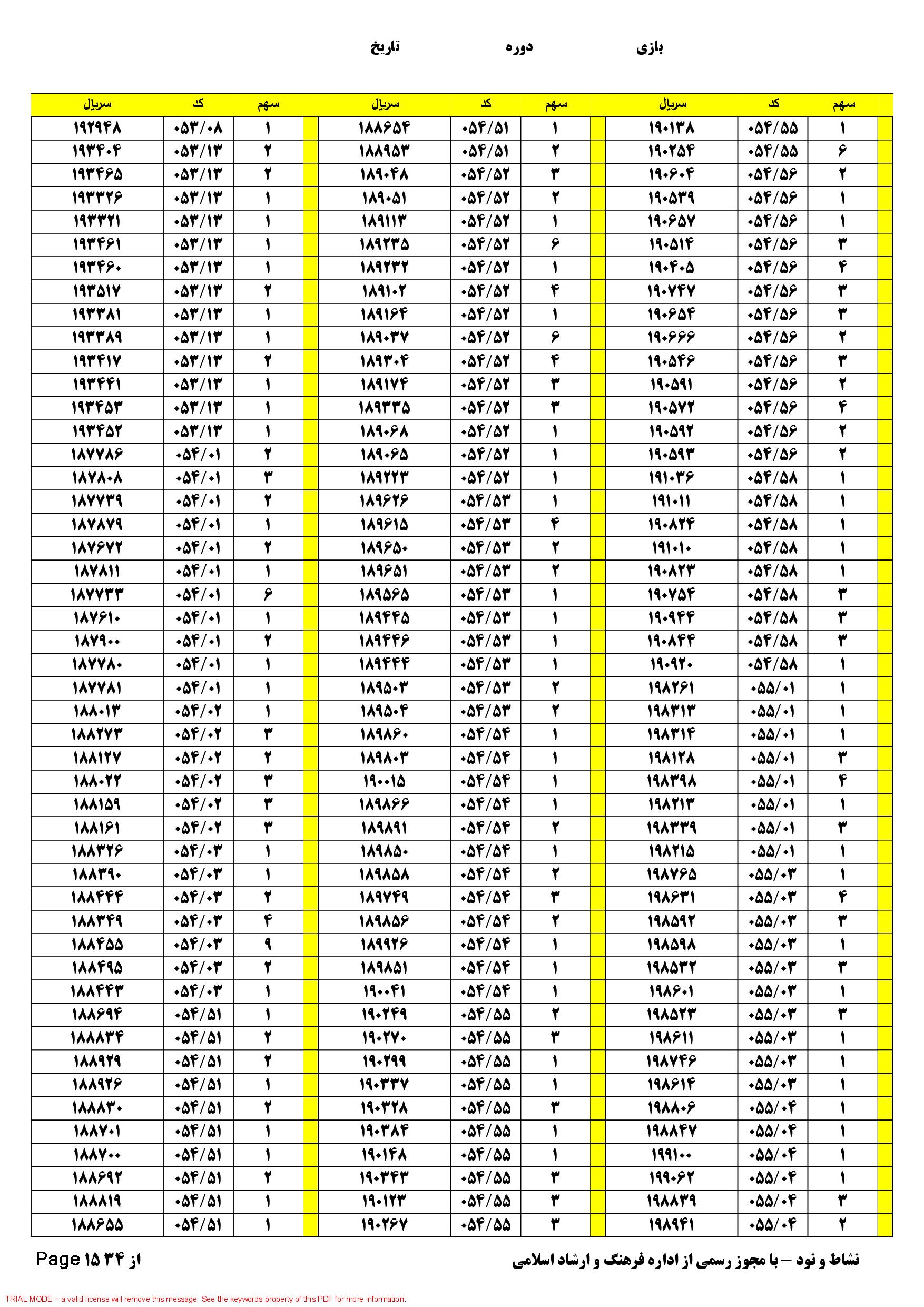 هدایای پرداختی : 0000 تعداد مشارکت : 00