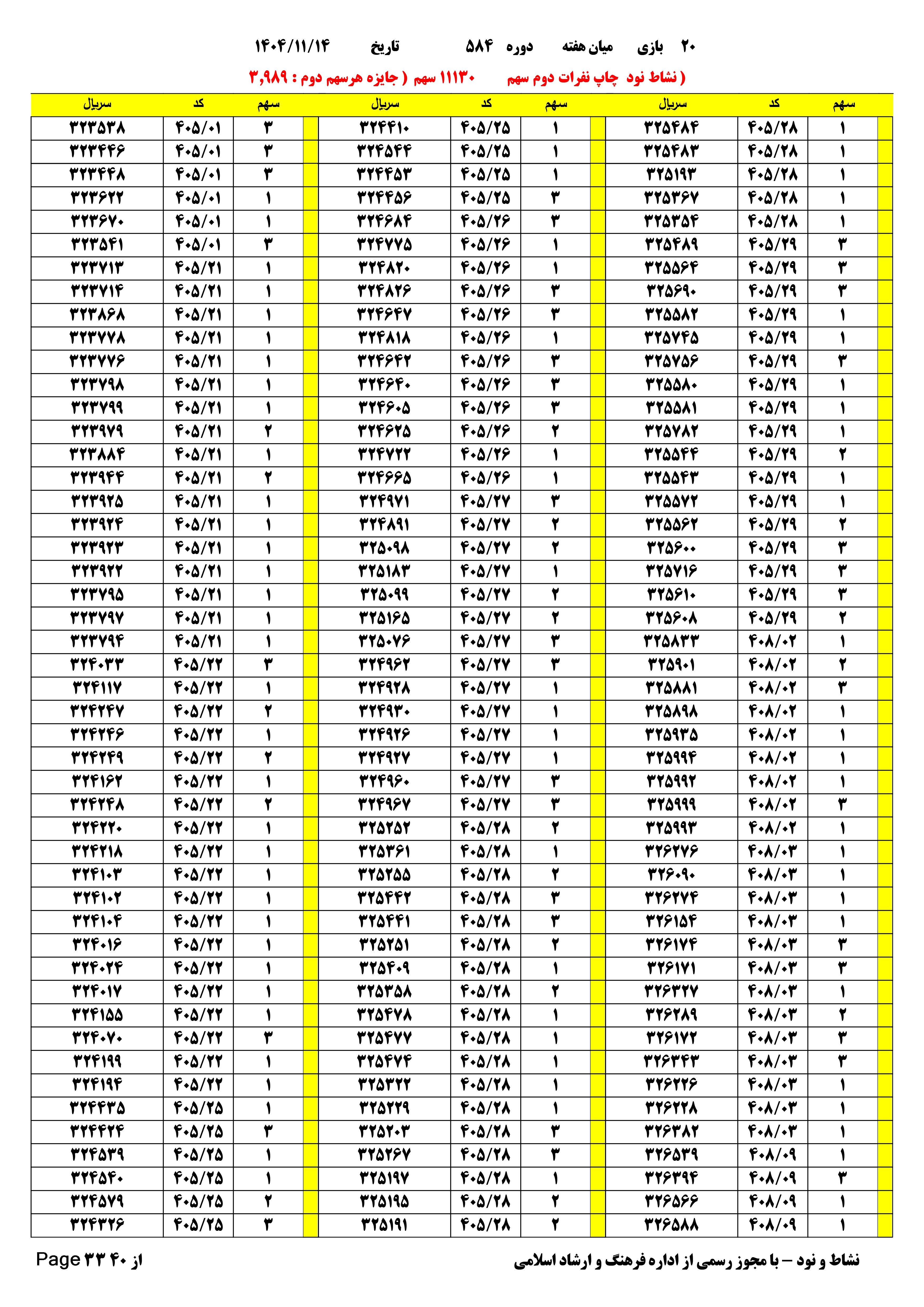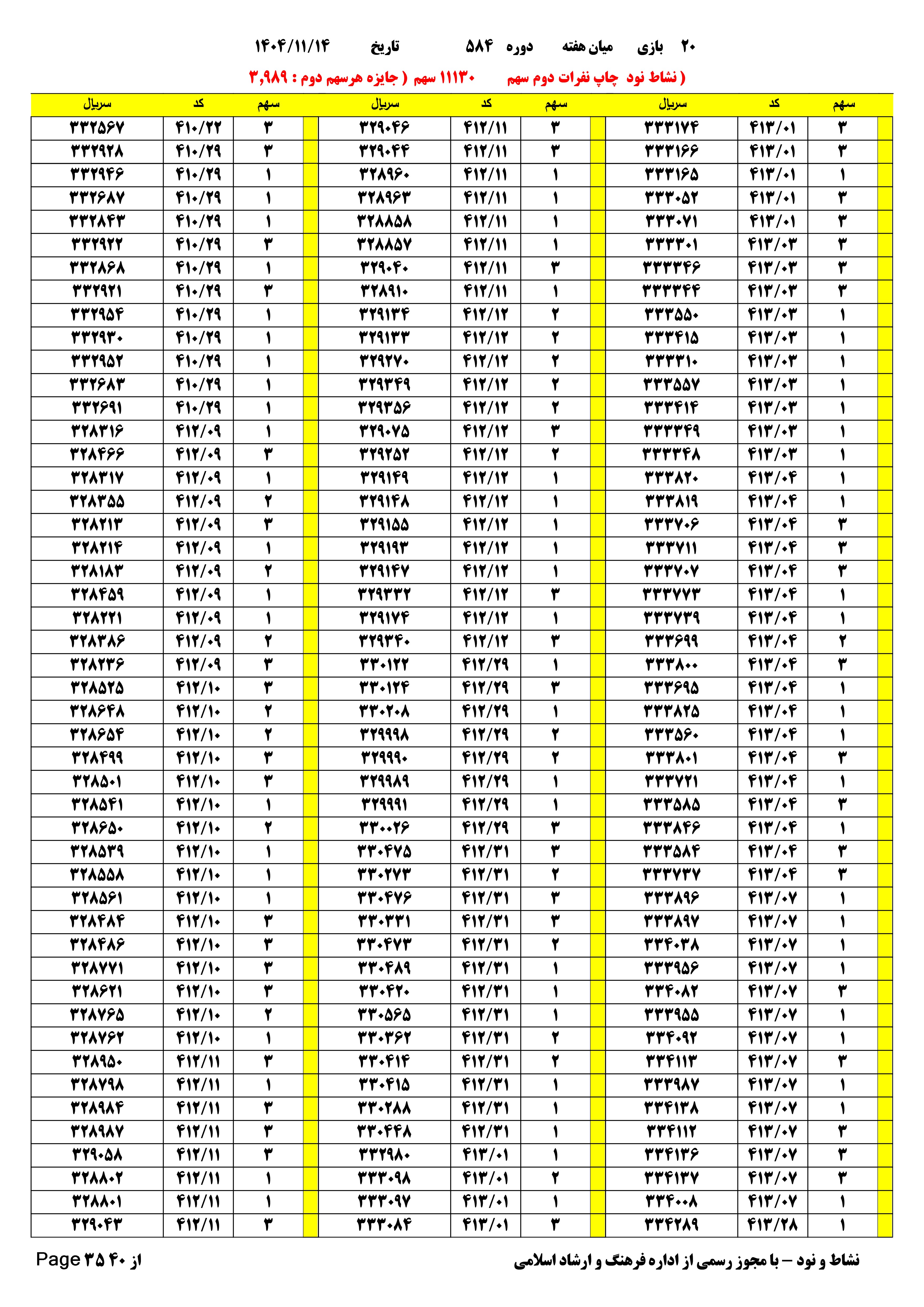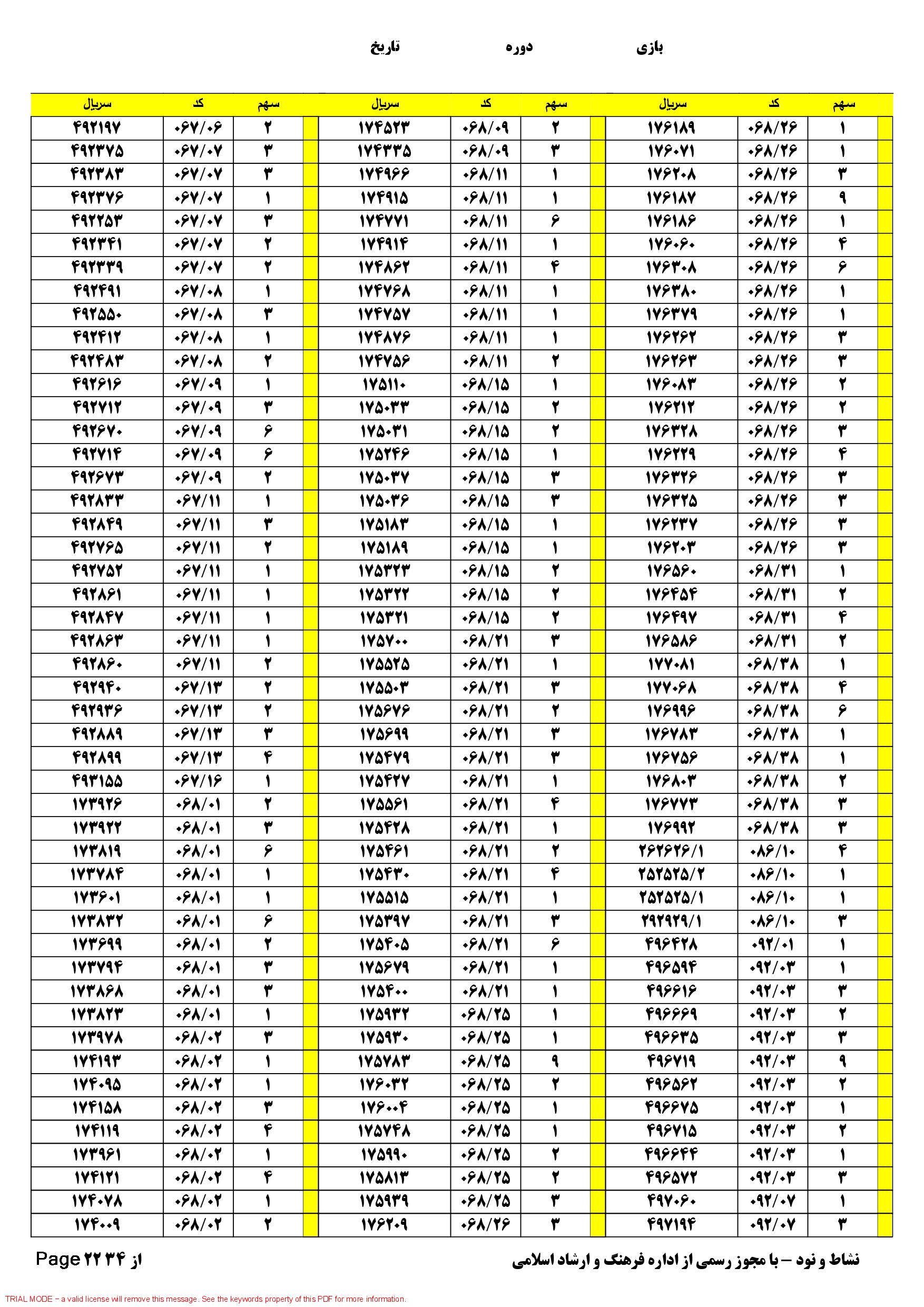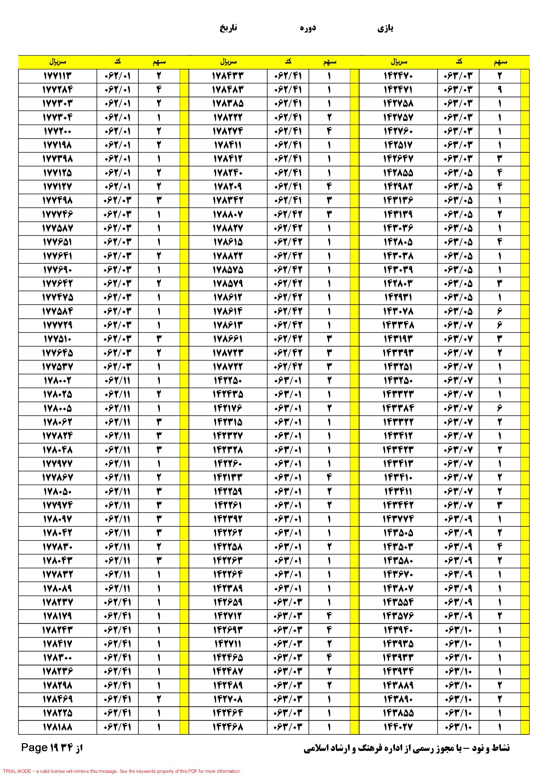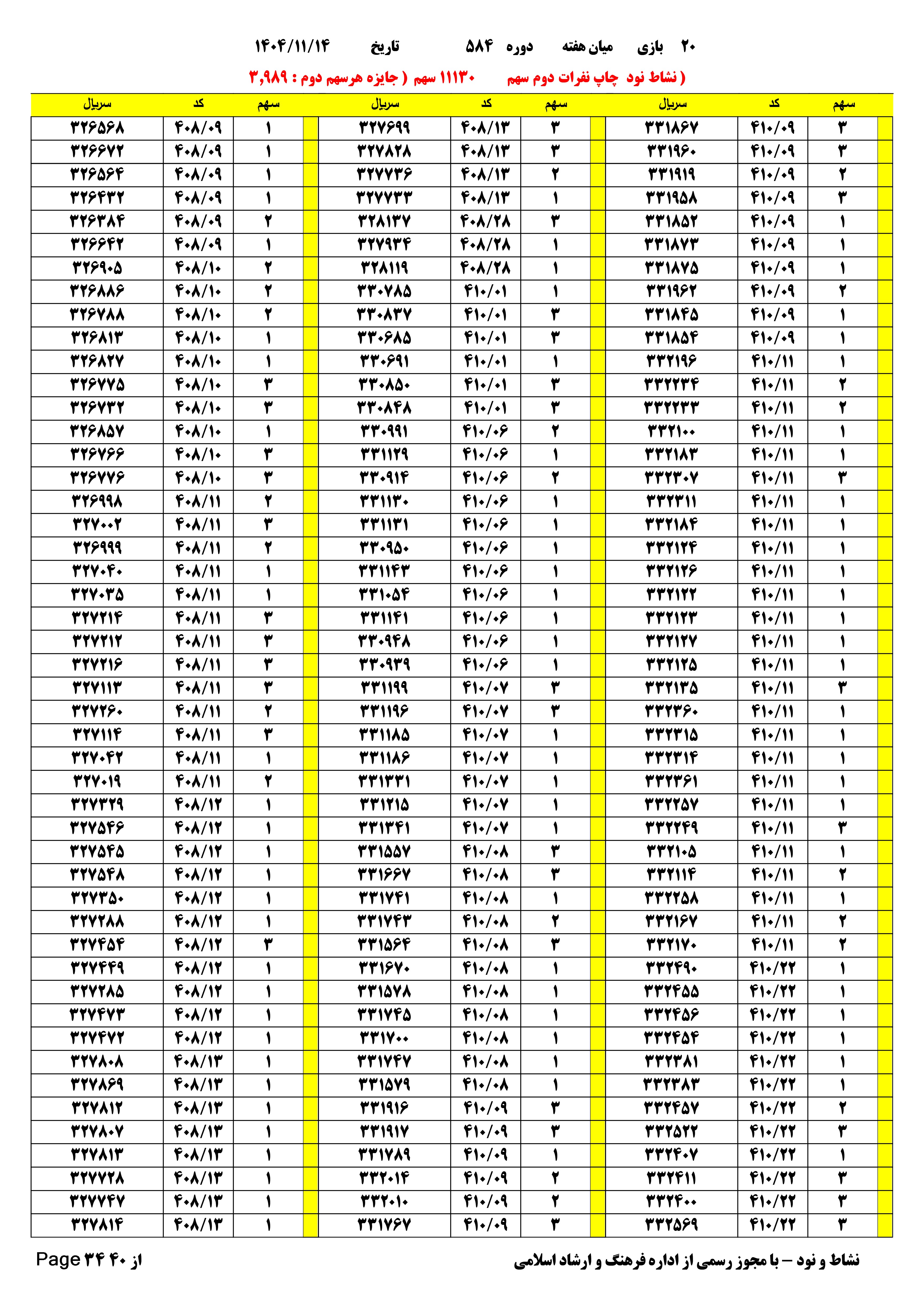 هدایای پرداختی : 0000 تعداد مشارکت : 00