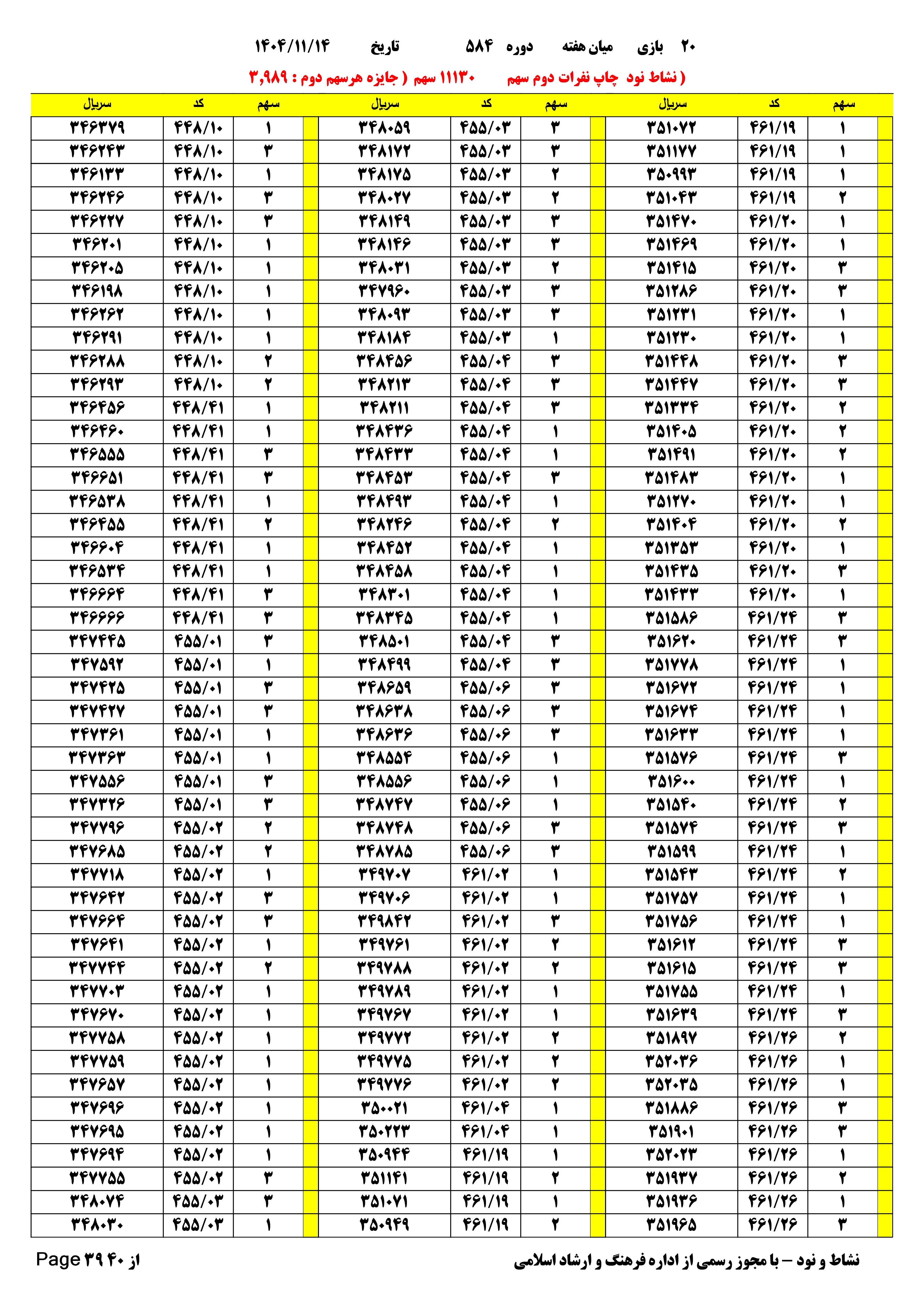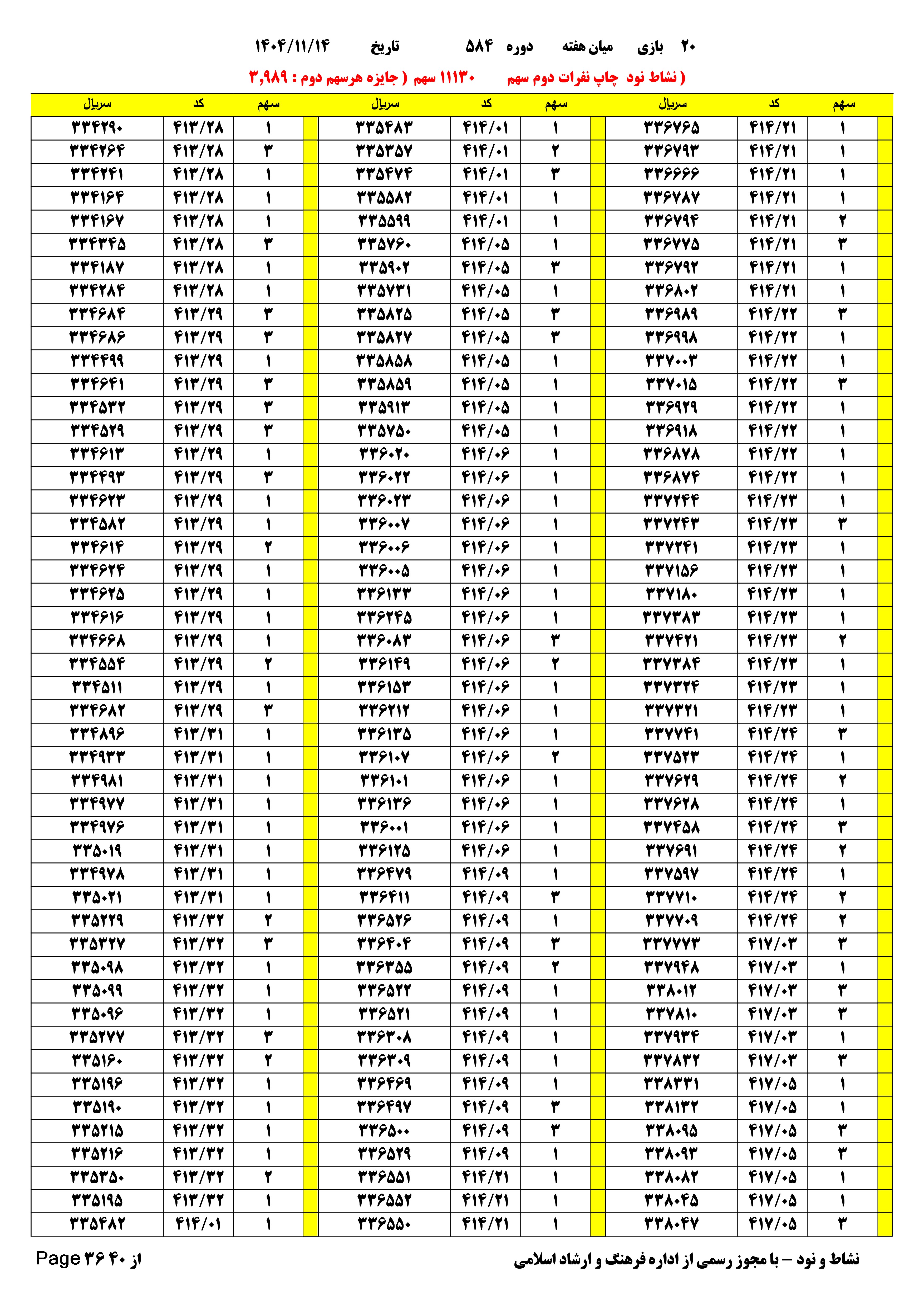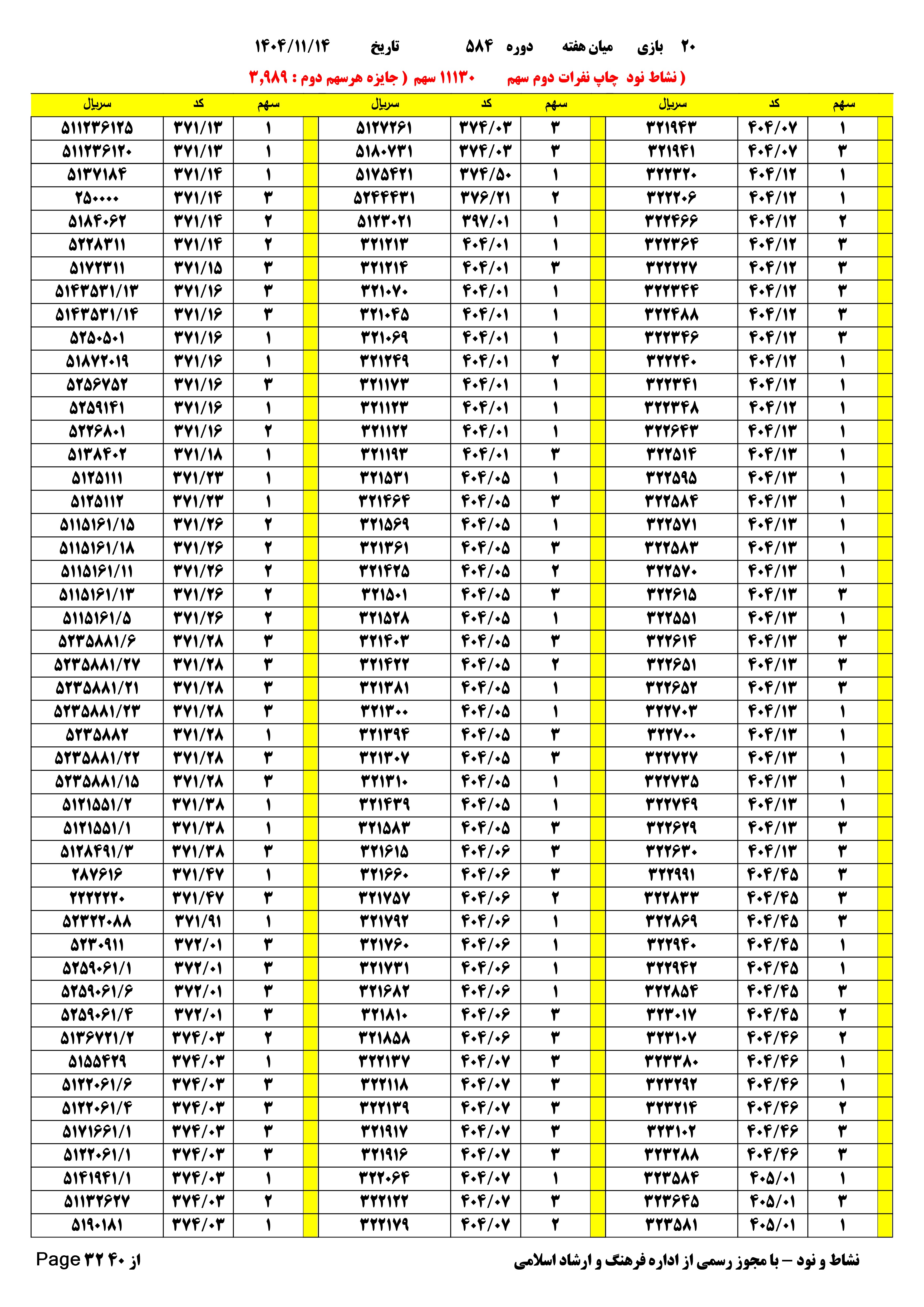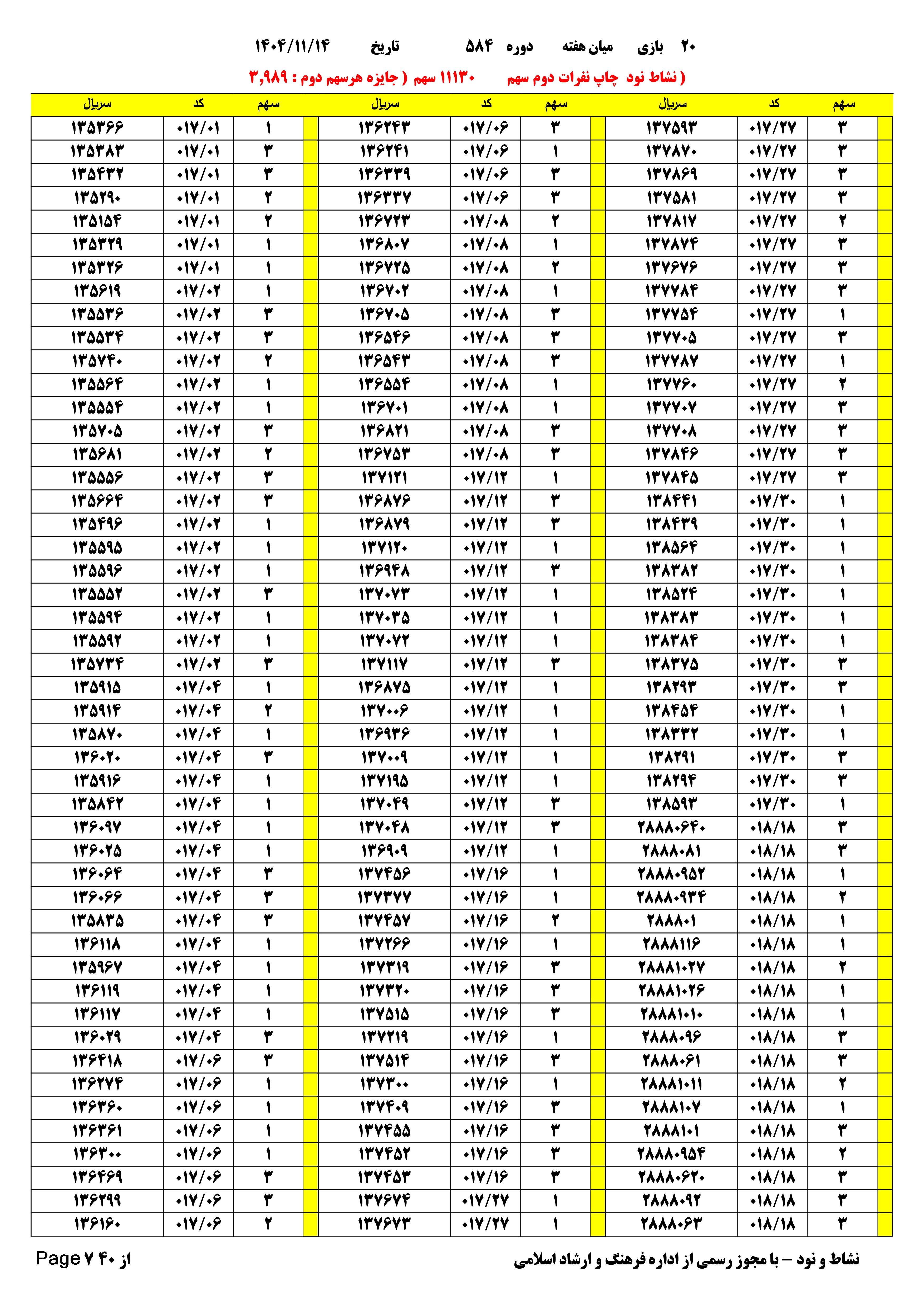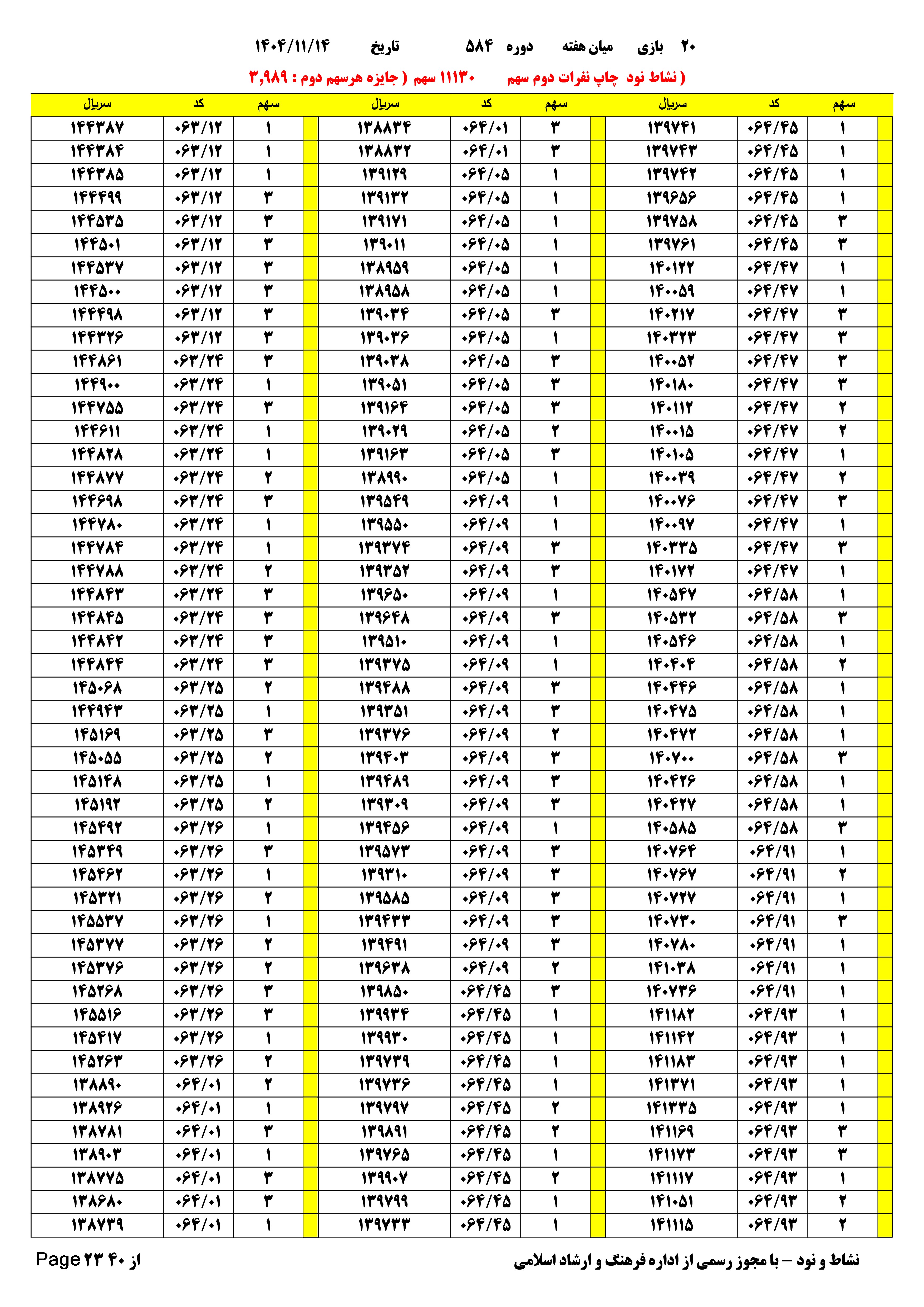هدایای پرداختی : 0000 تعداد مشارکت : 00