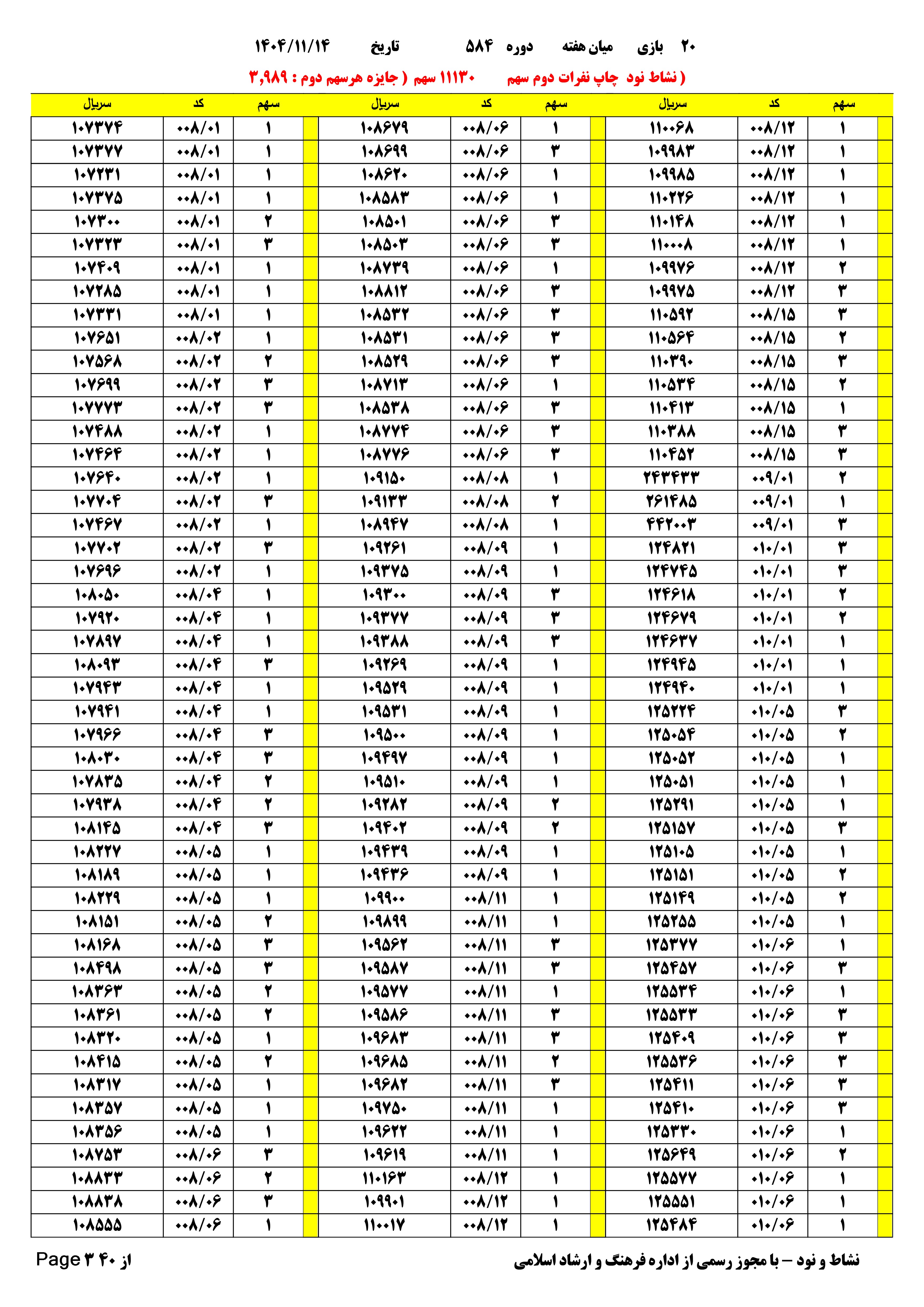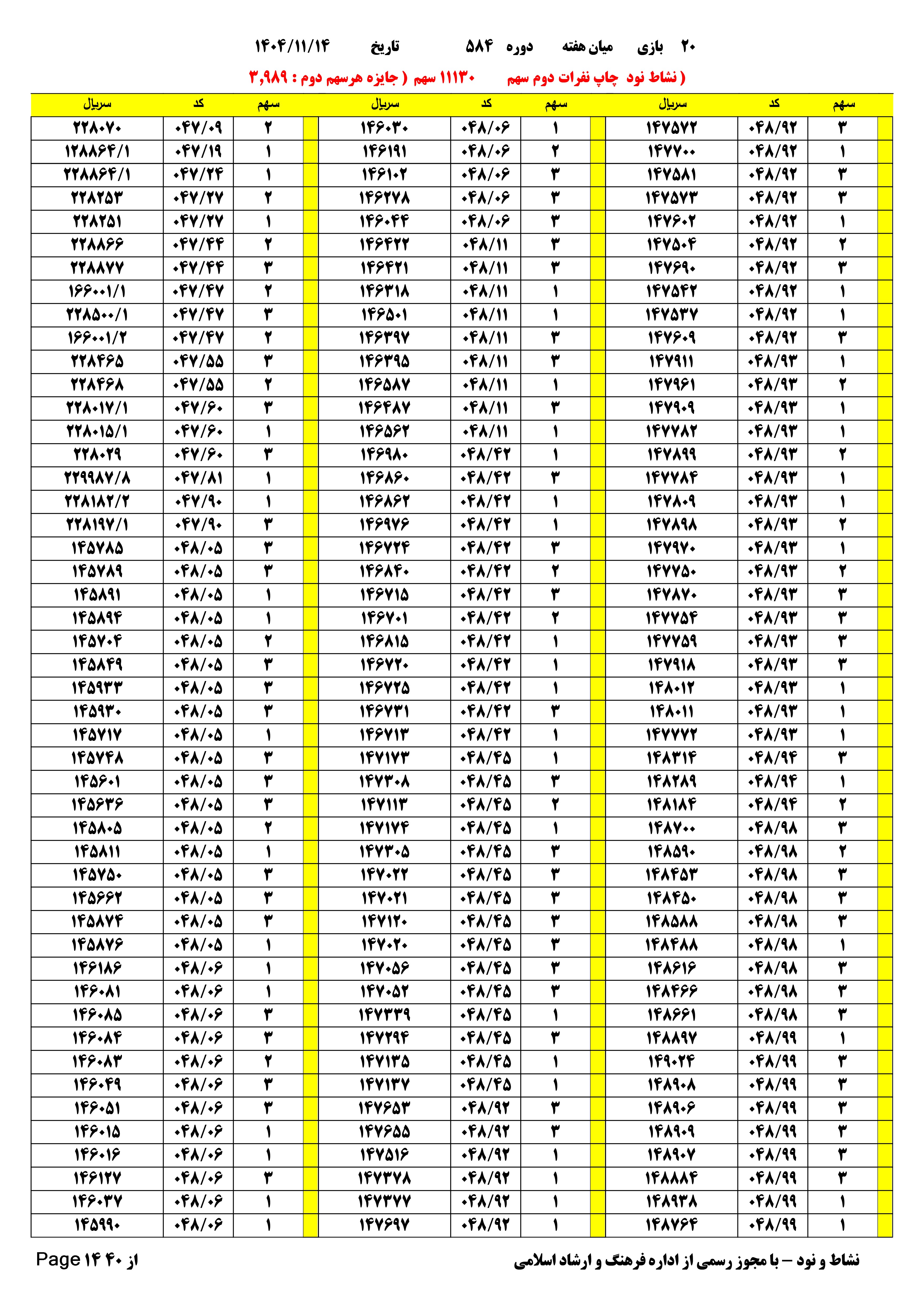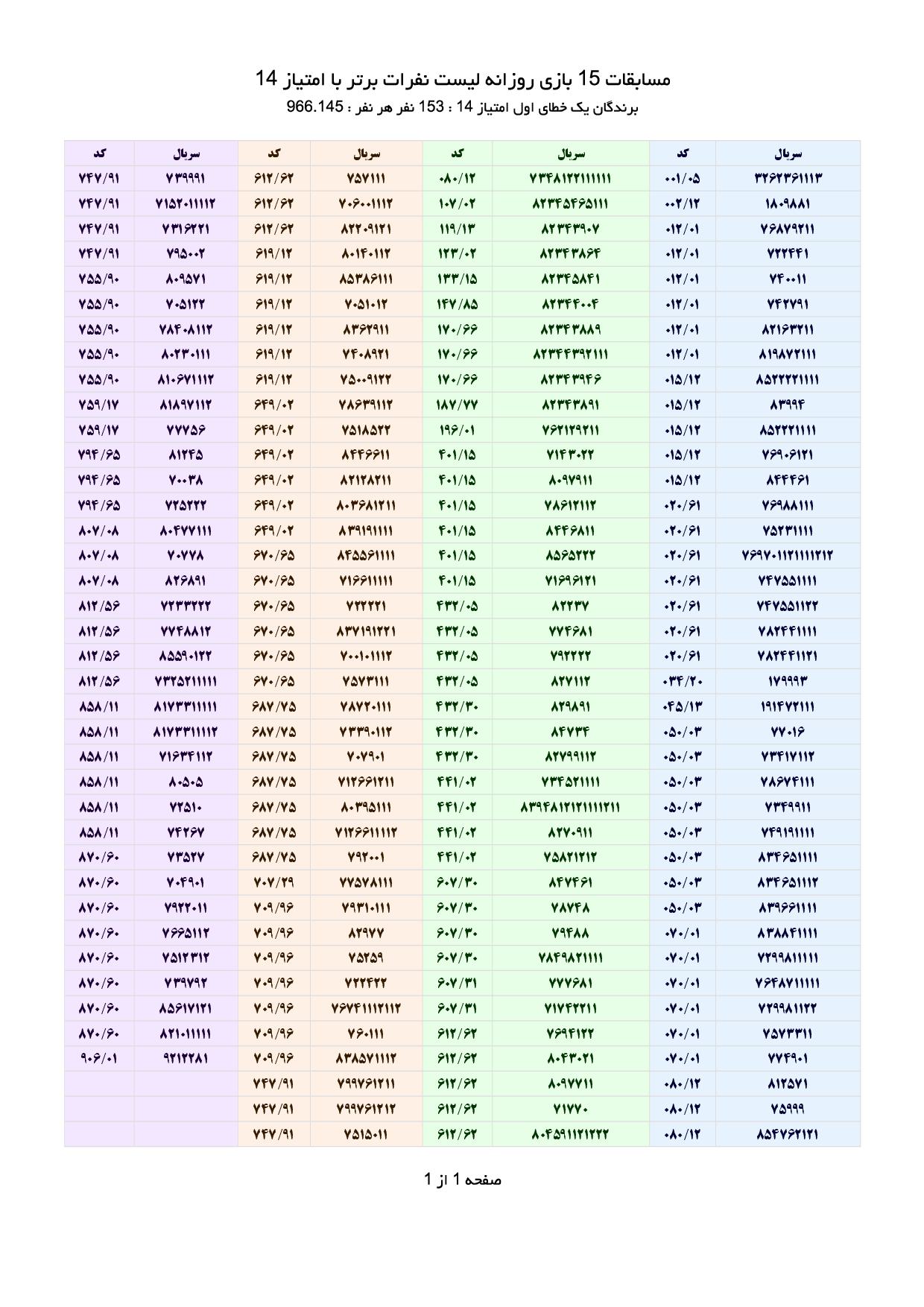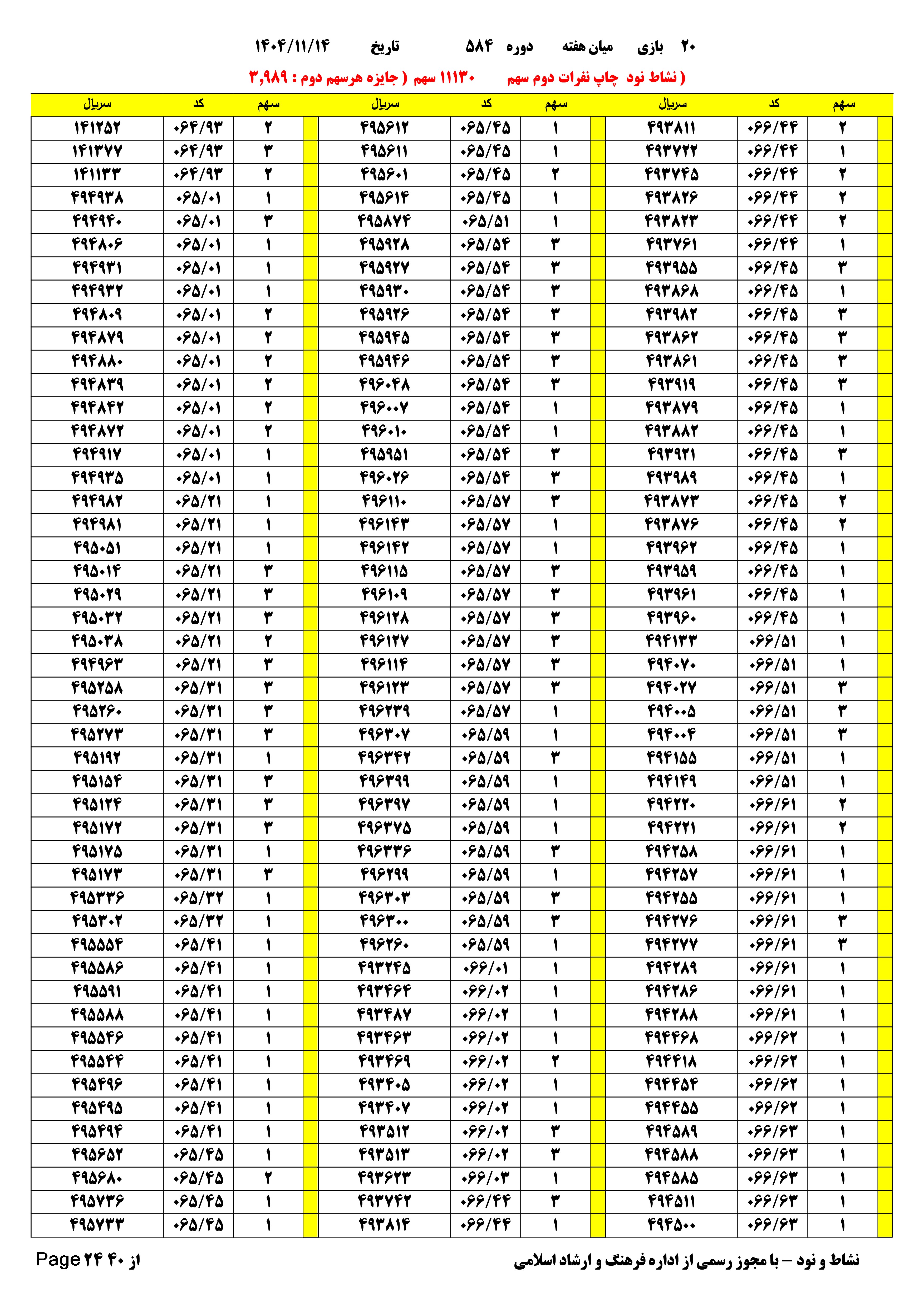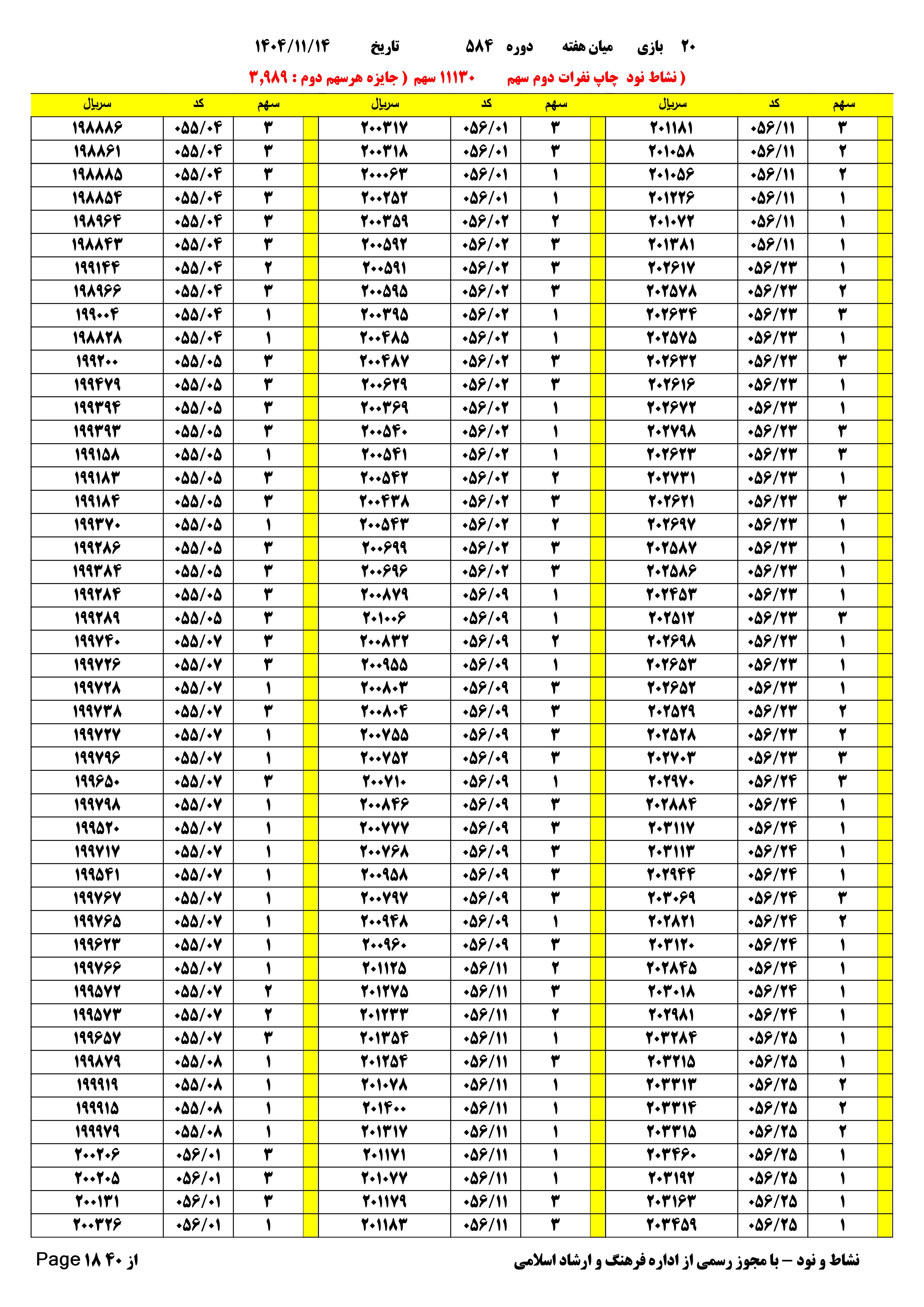 هدایای پرداختی : 0000 تعداد مشارکت : 00