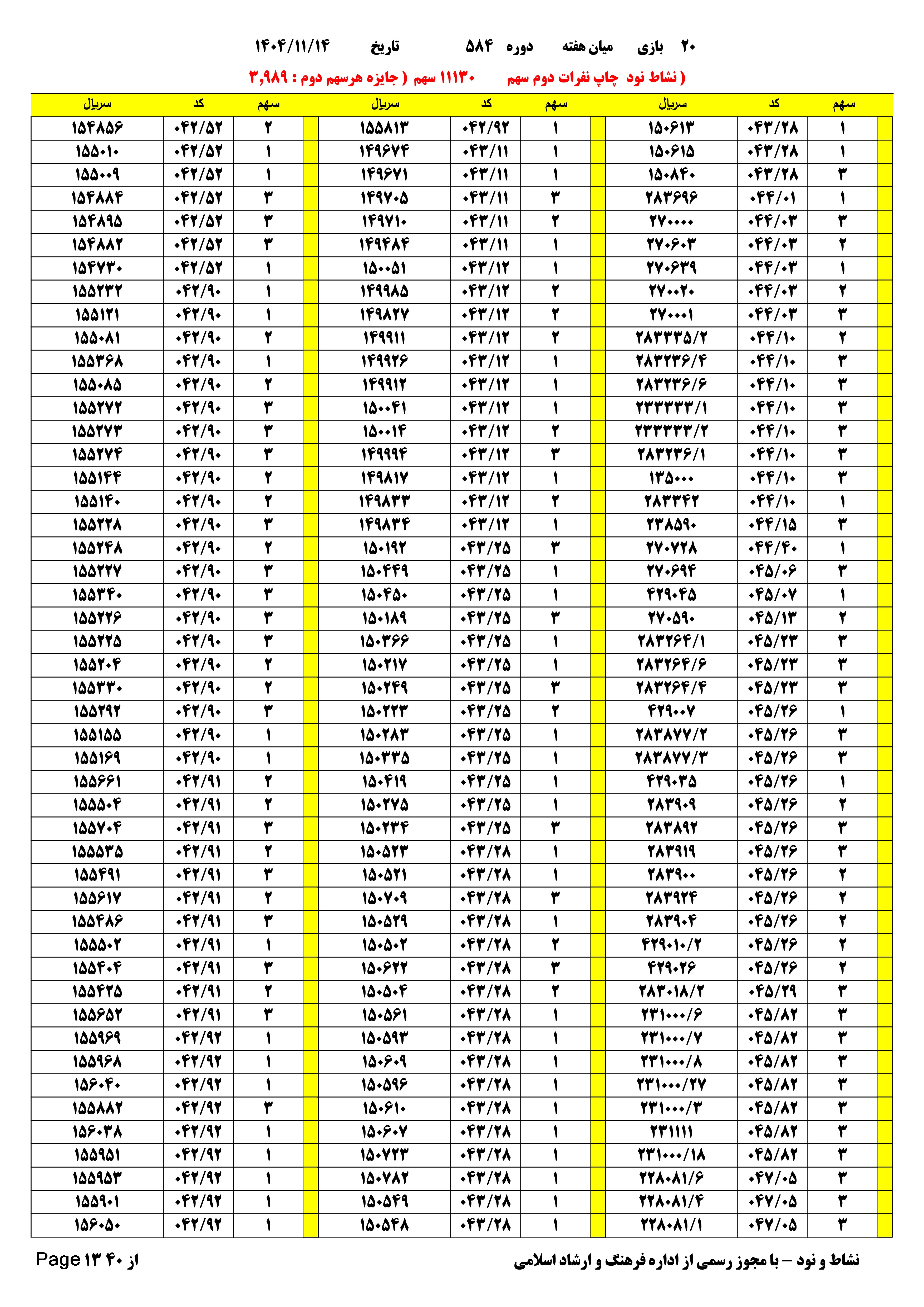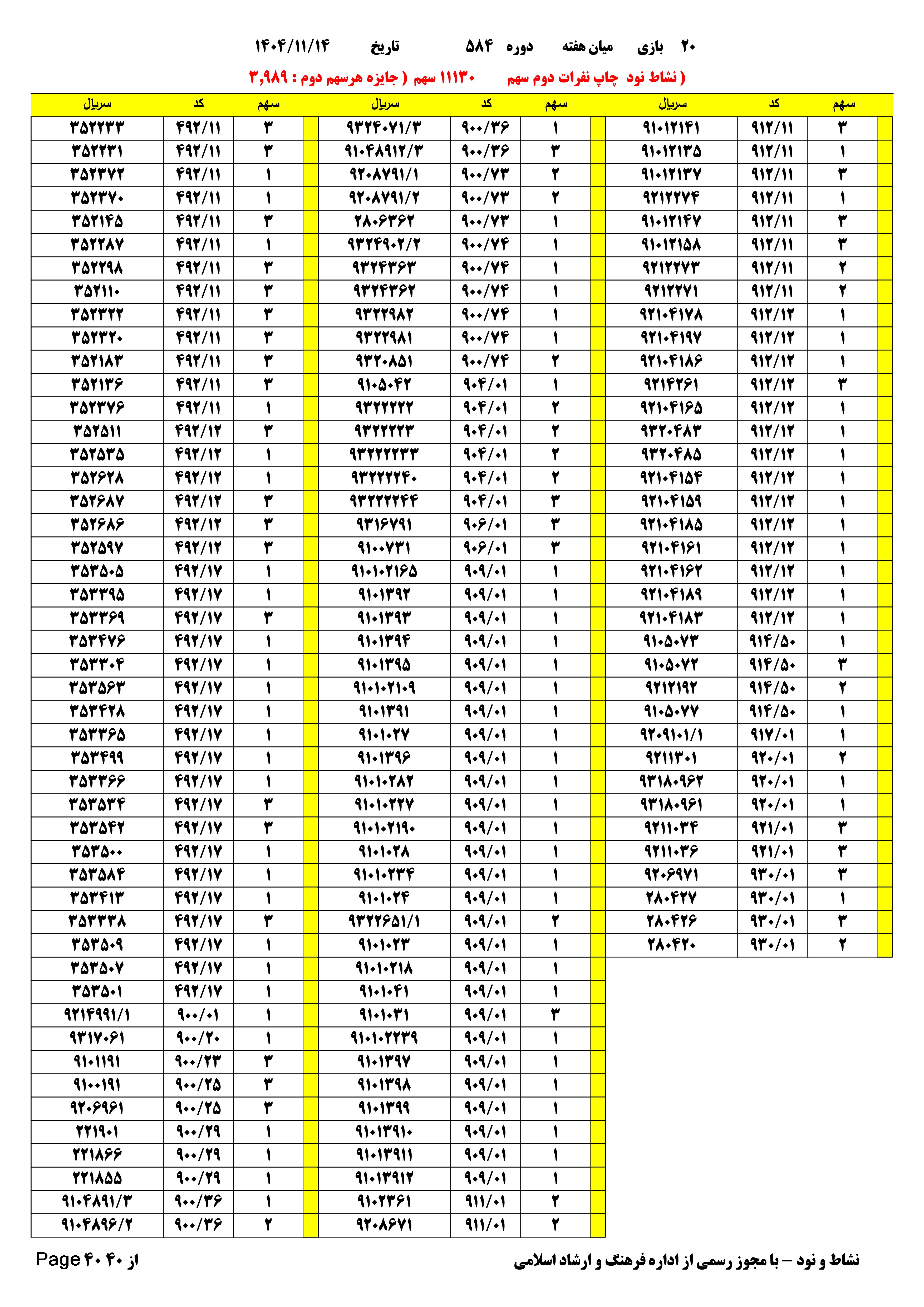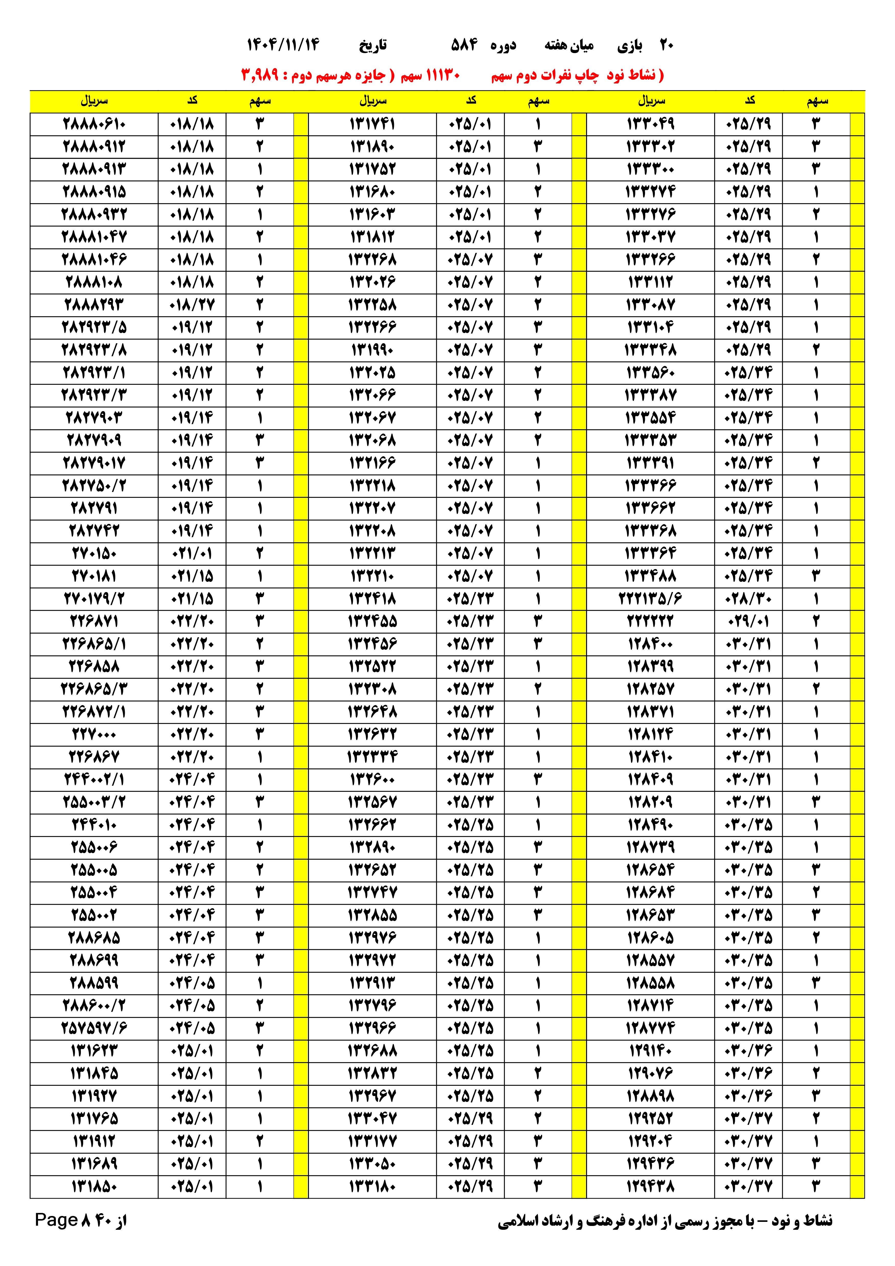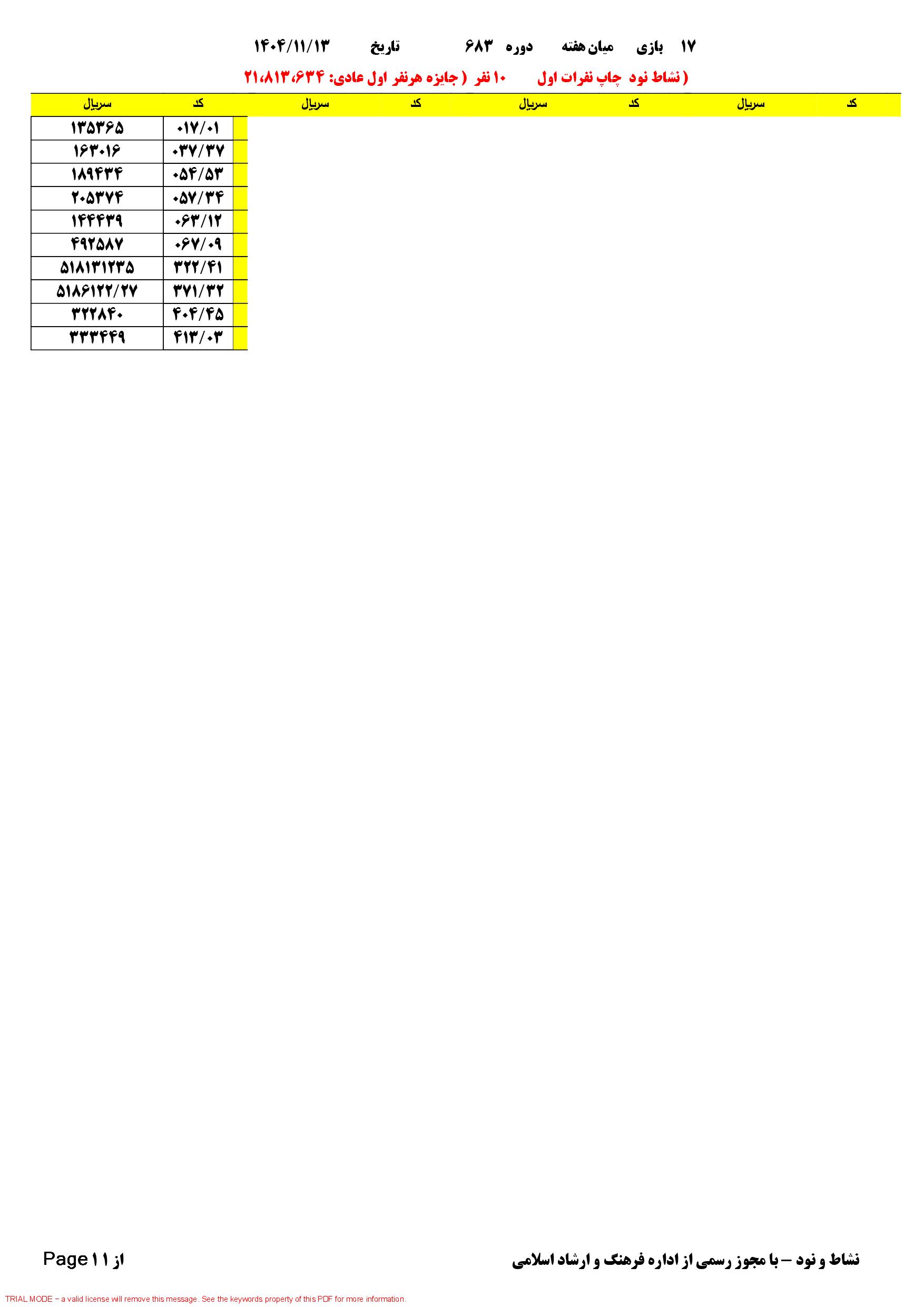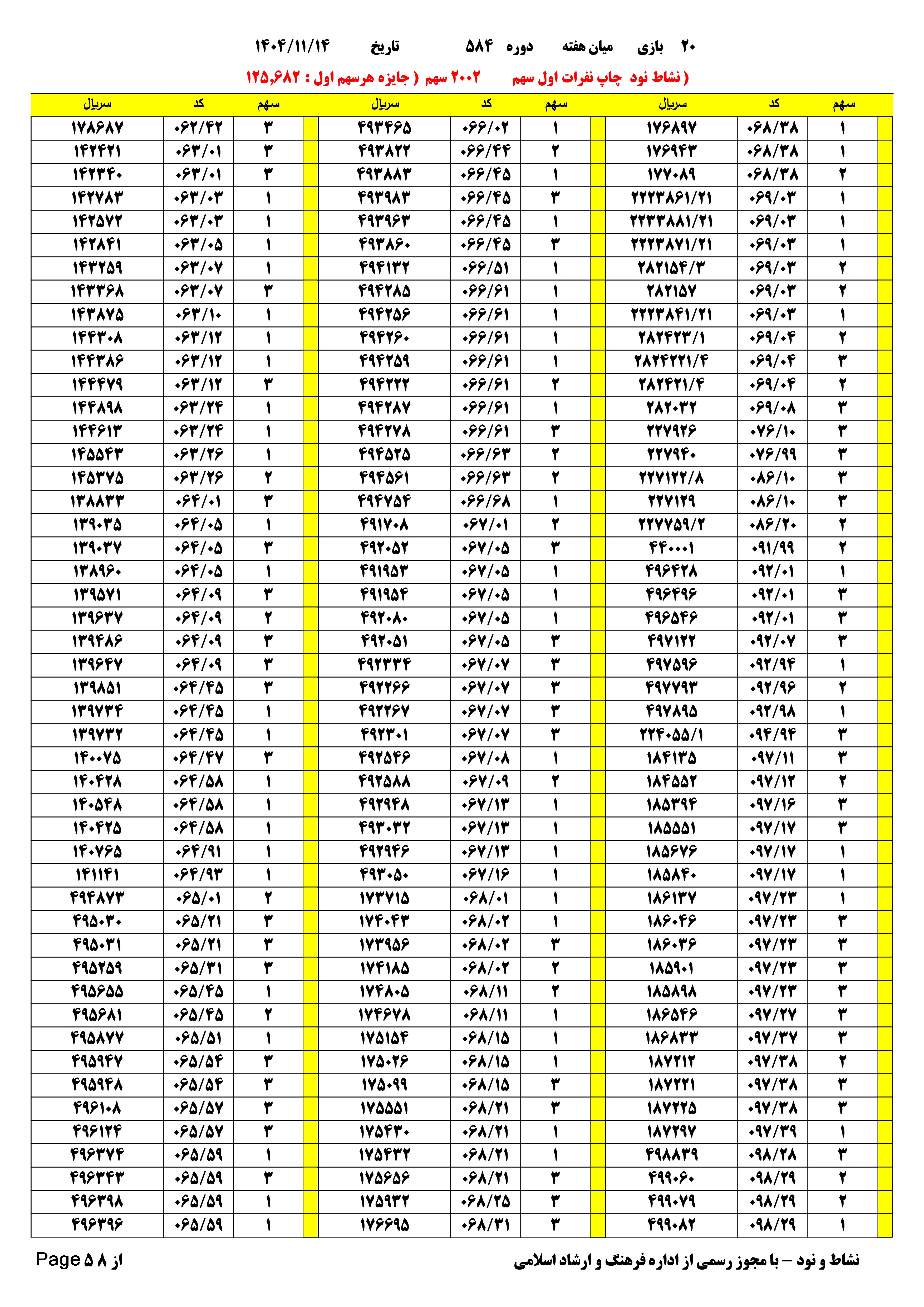 هدایای پرداختی : 0000 تعداد مشارکت : 00
