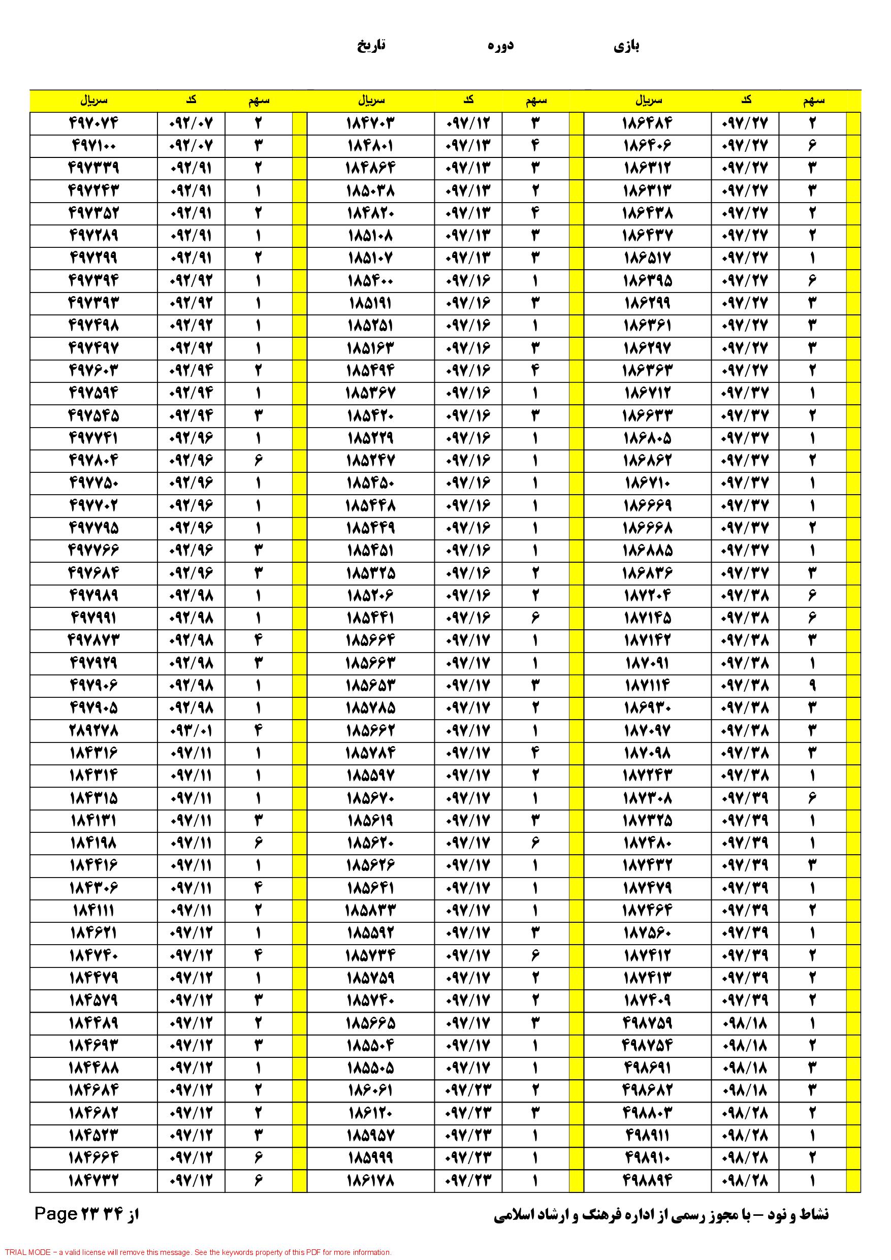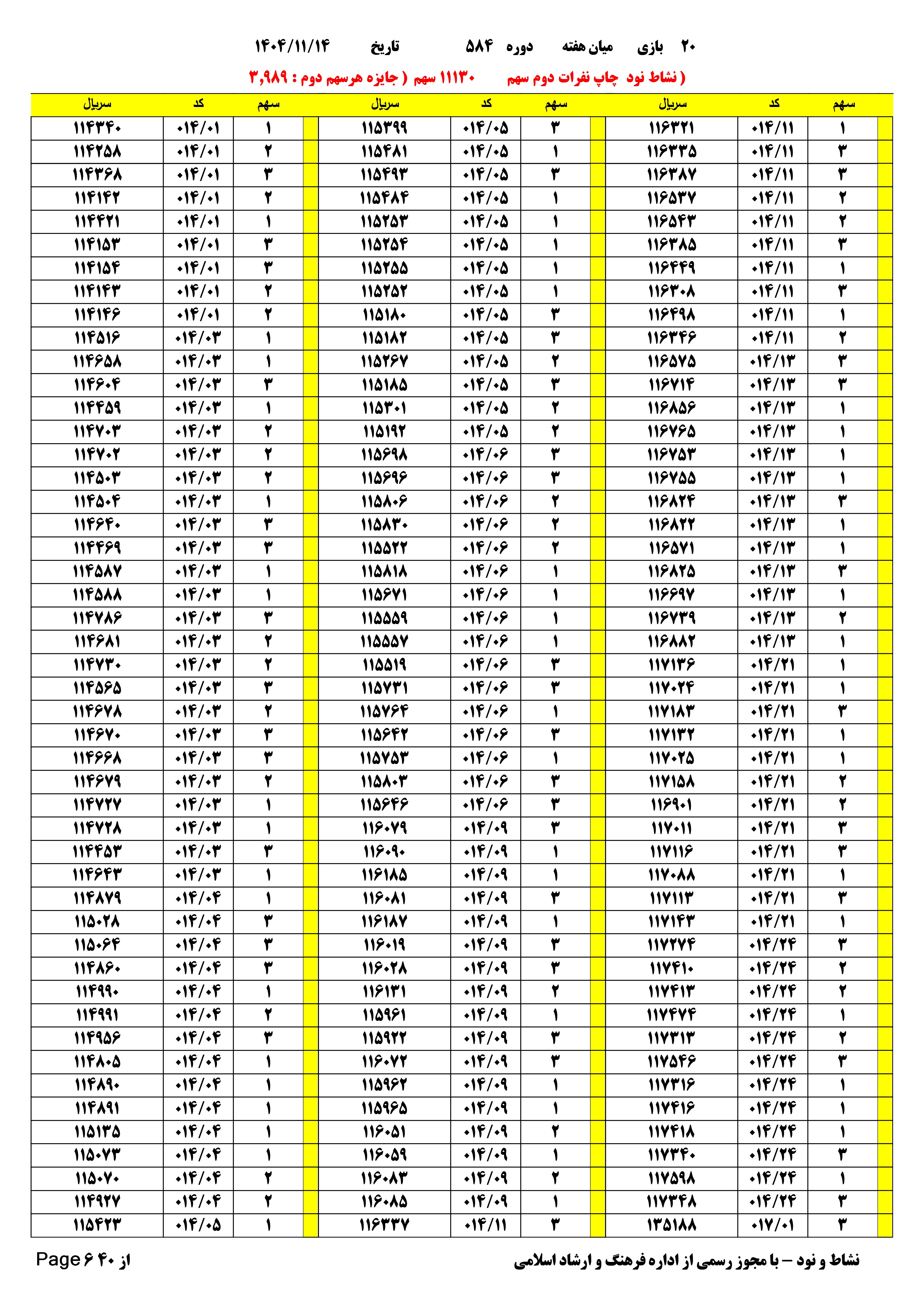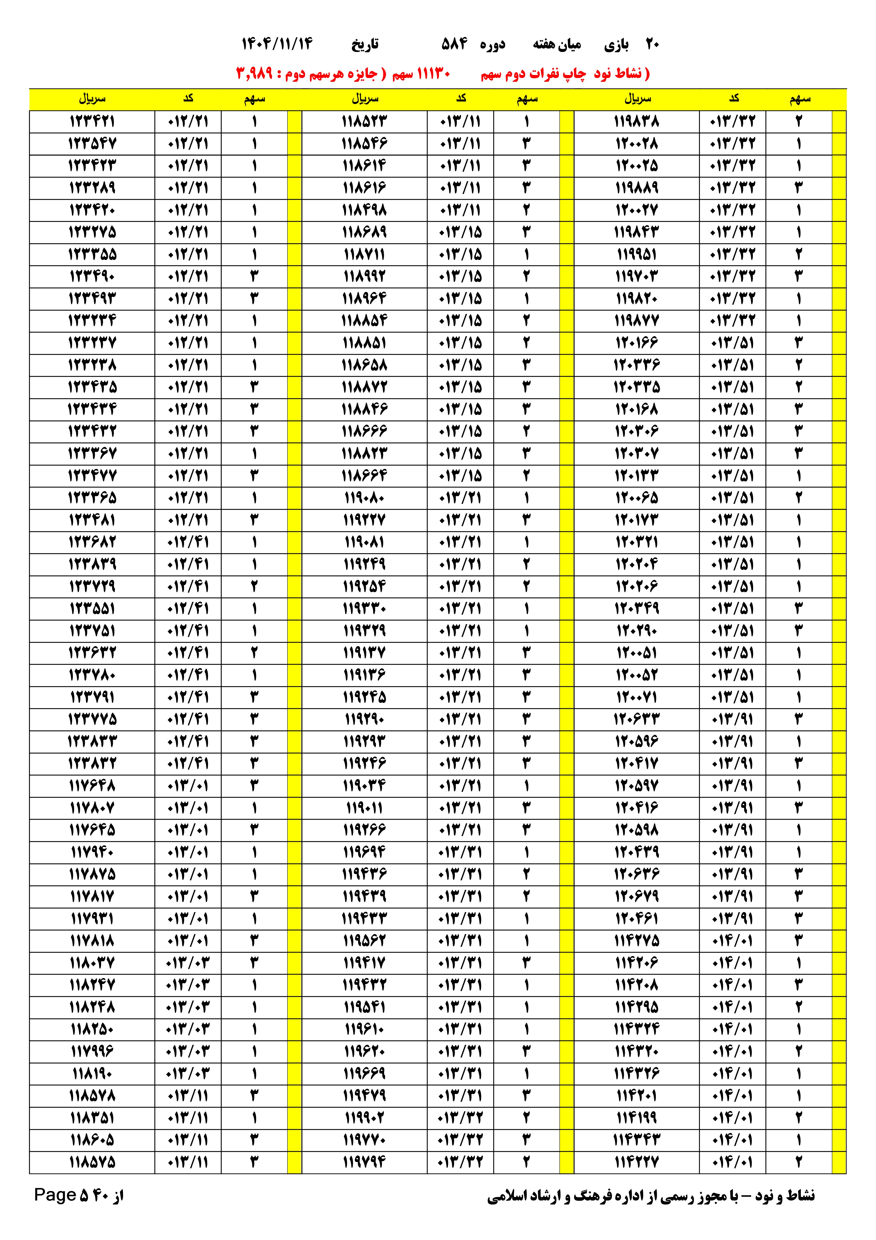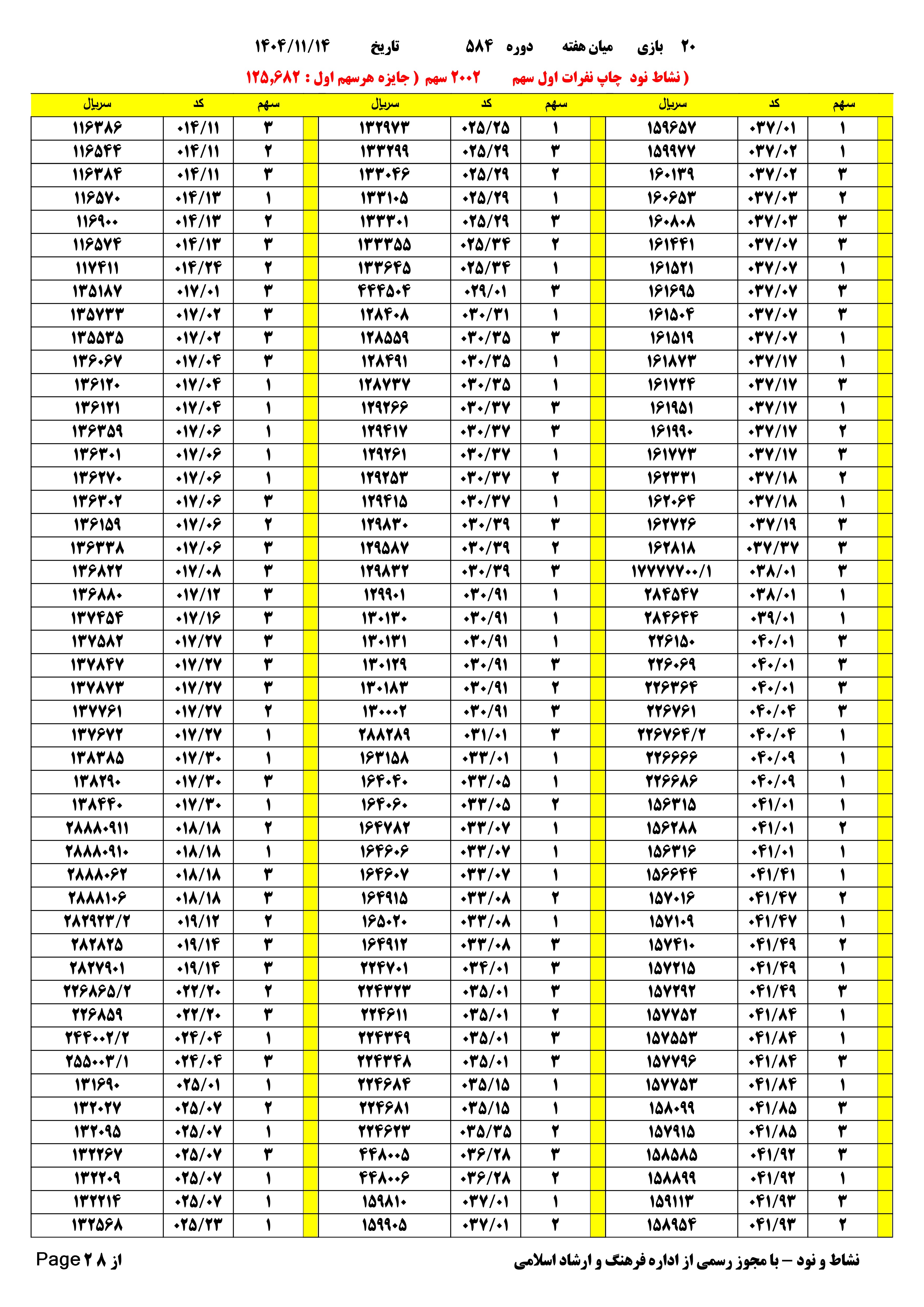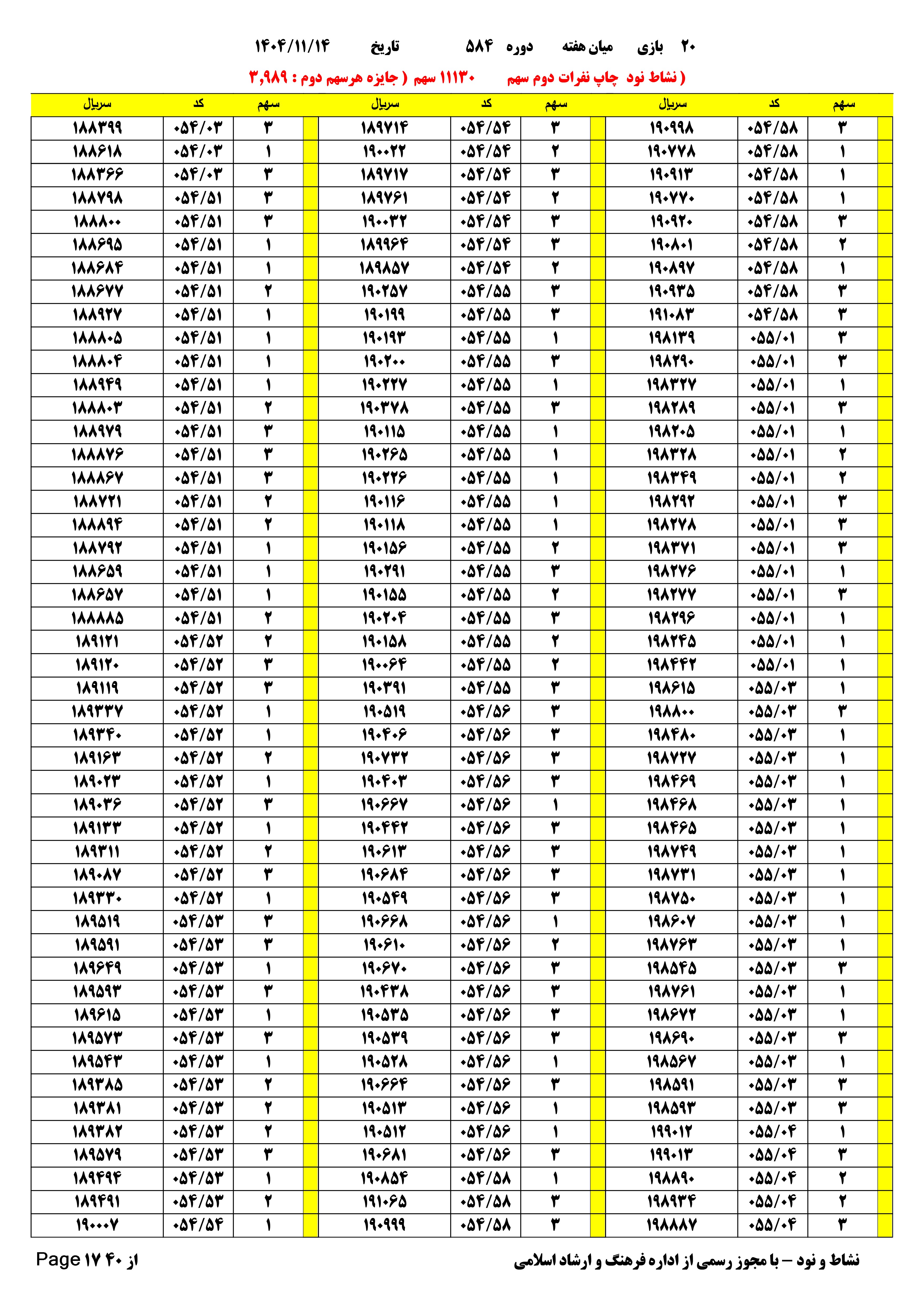 هدایای پرداختی : 0000 تعداد مشارکت : 00