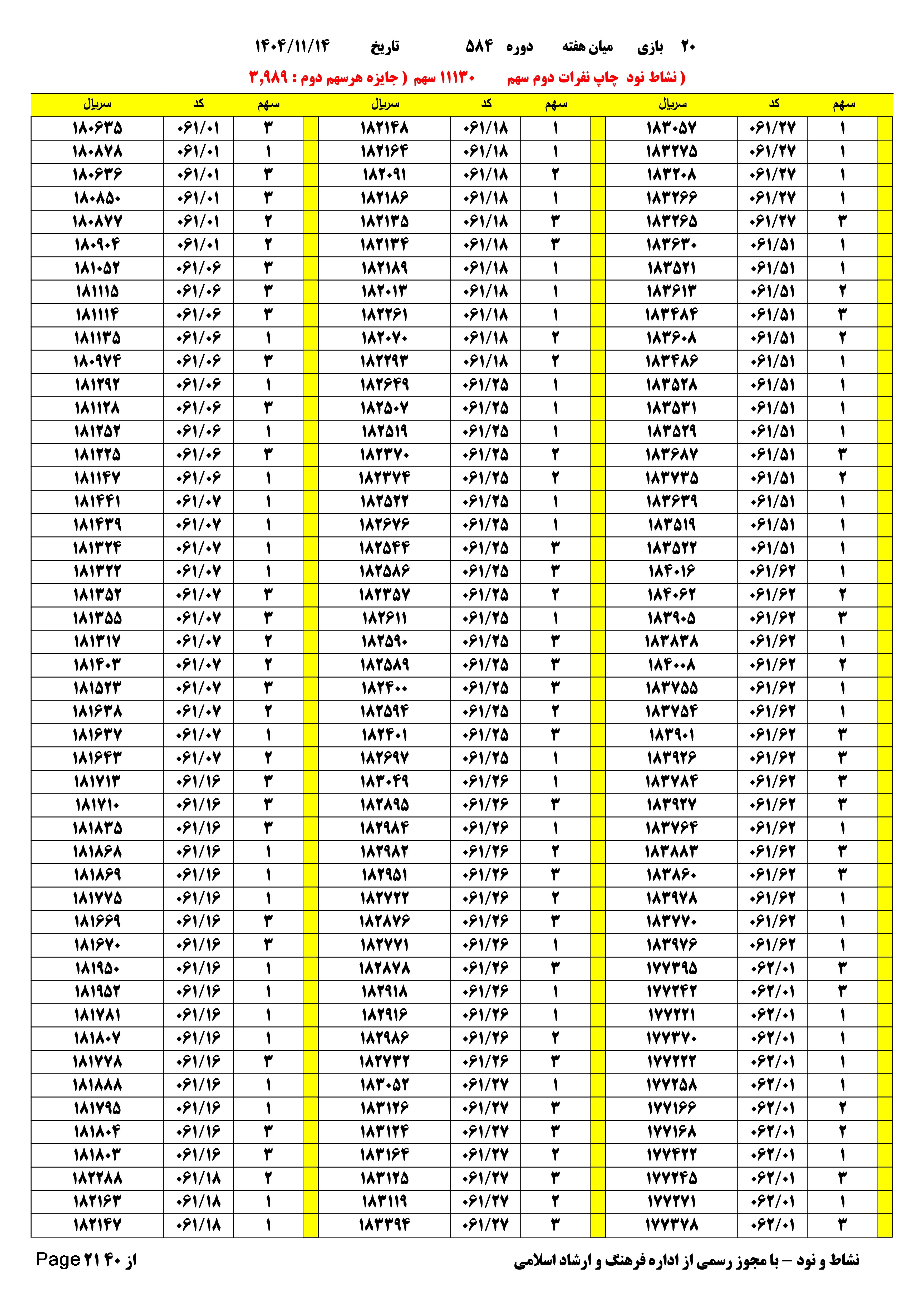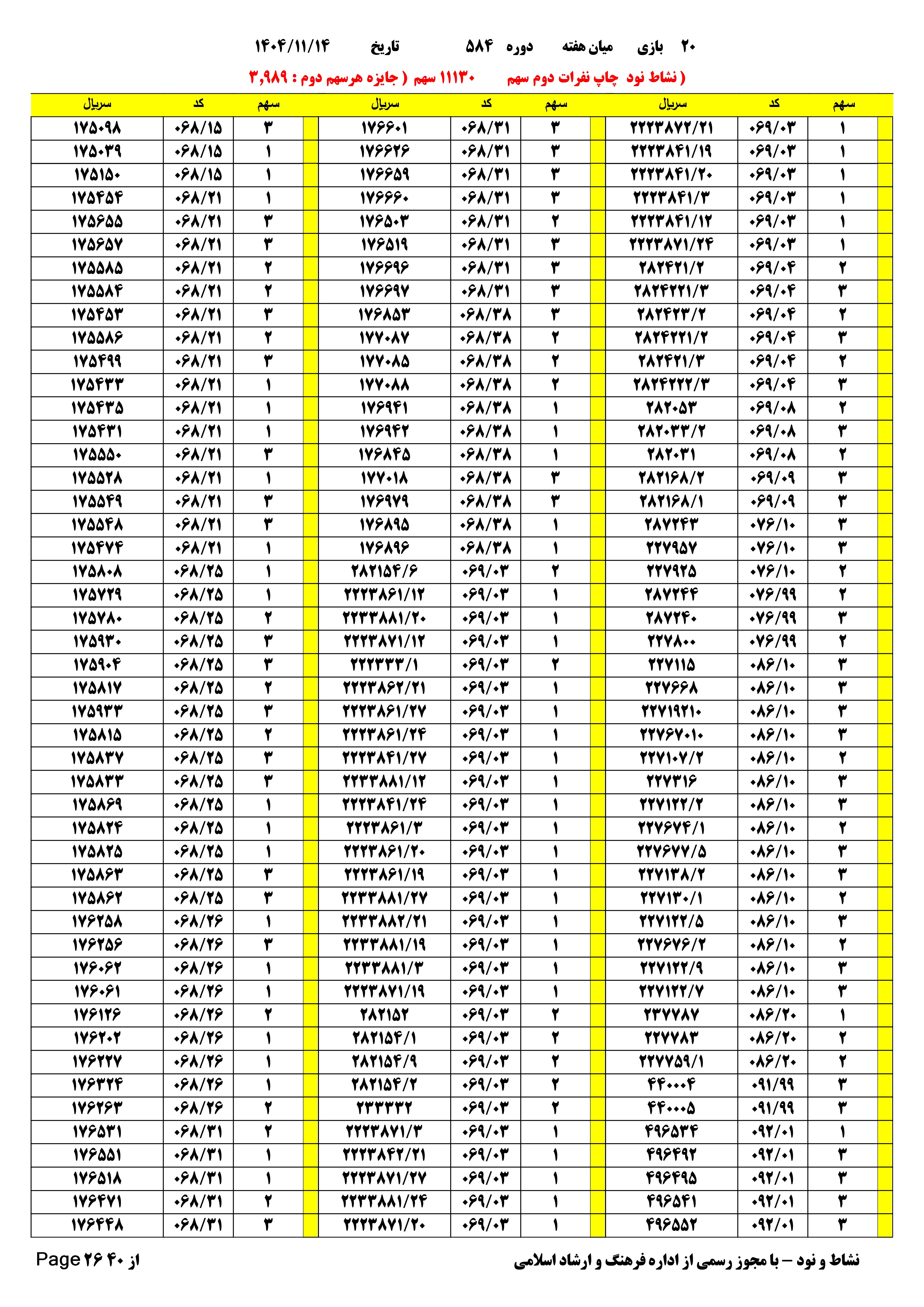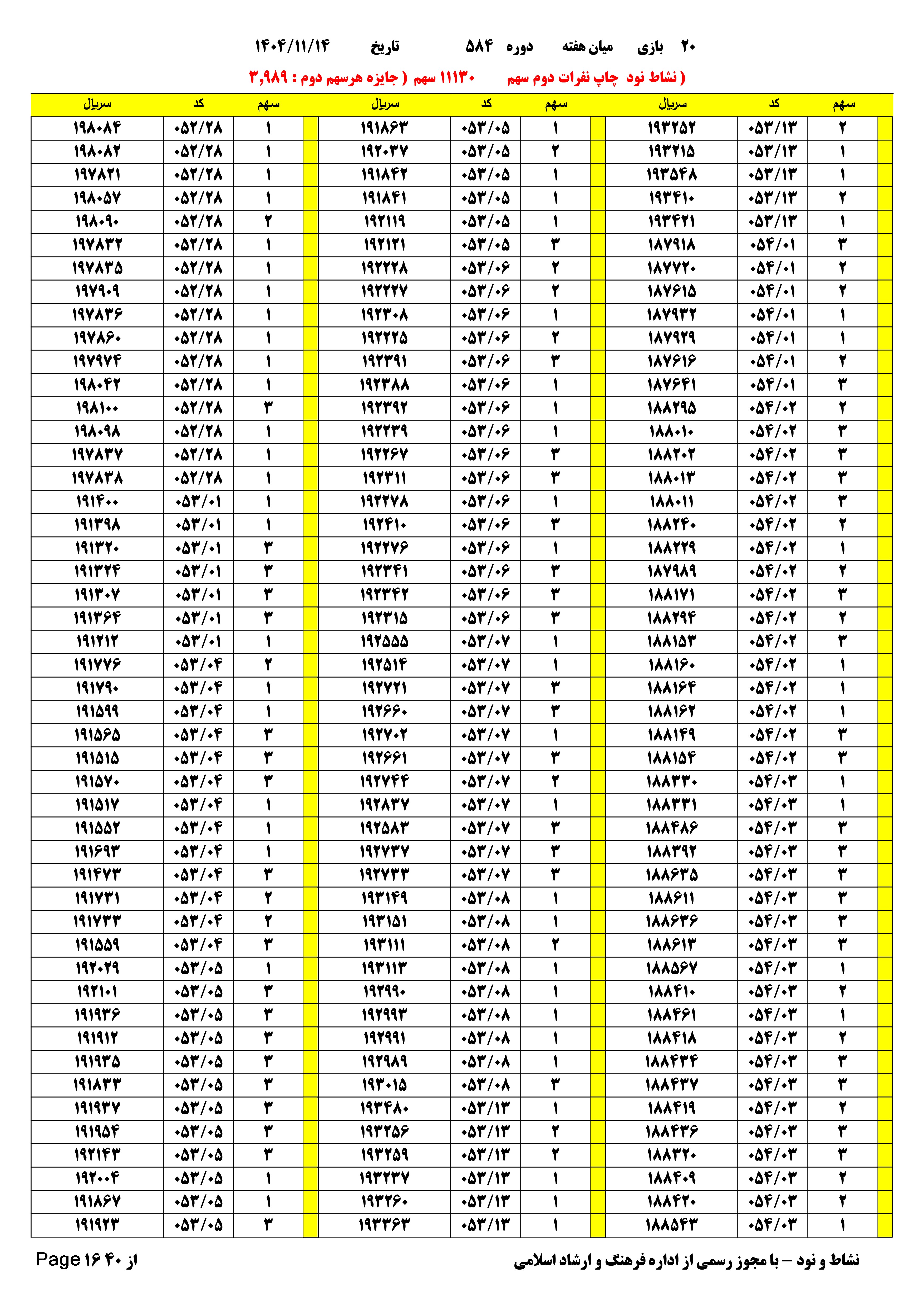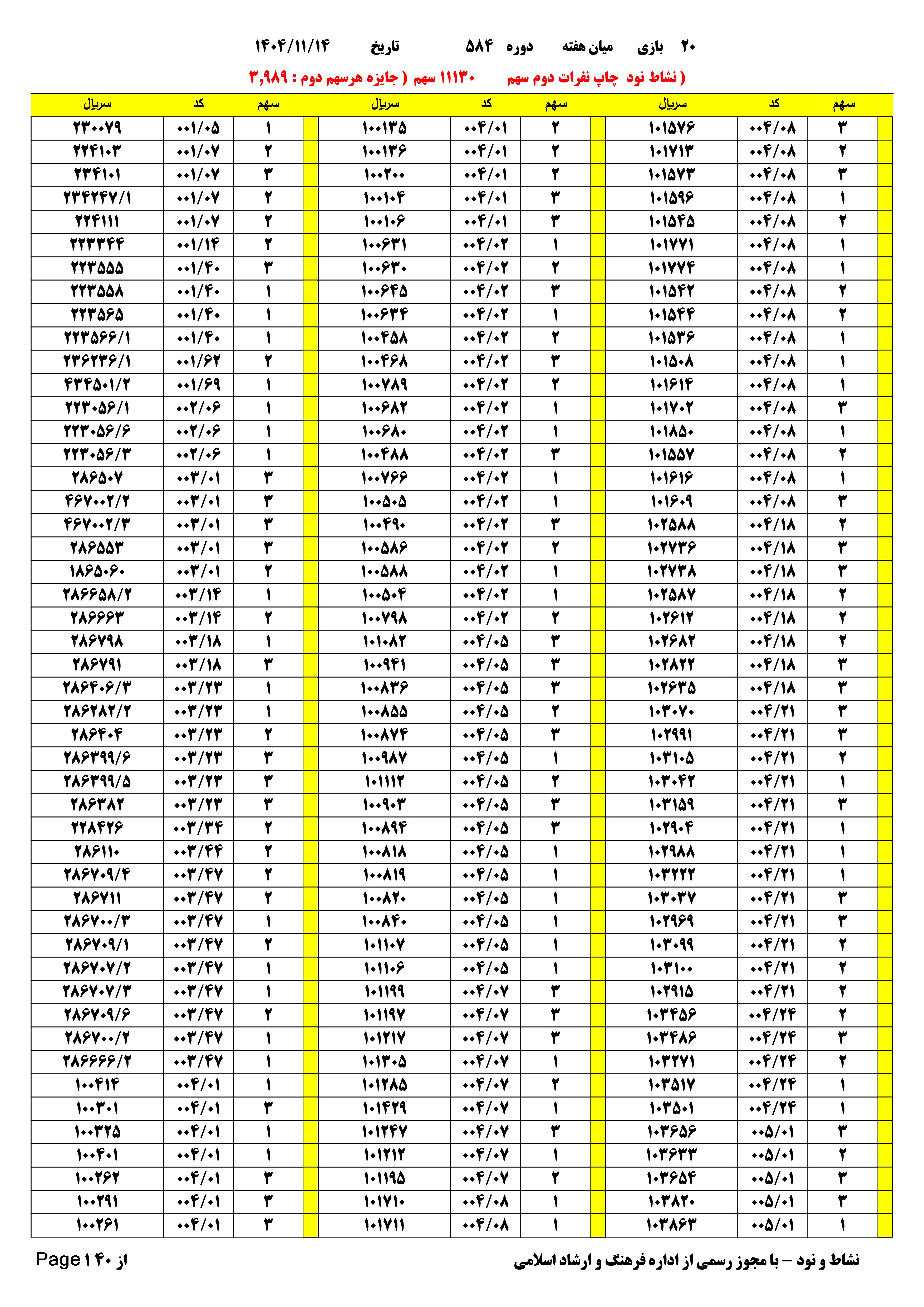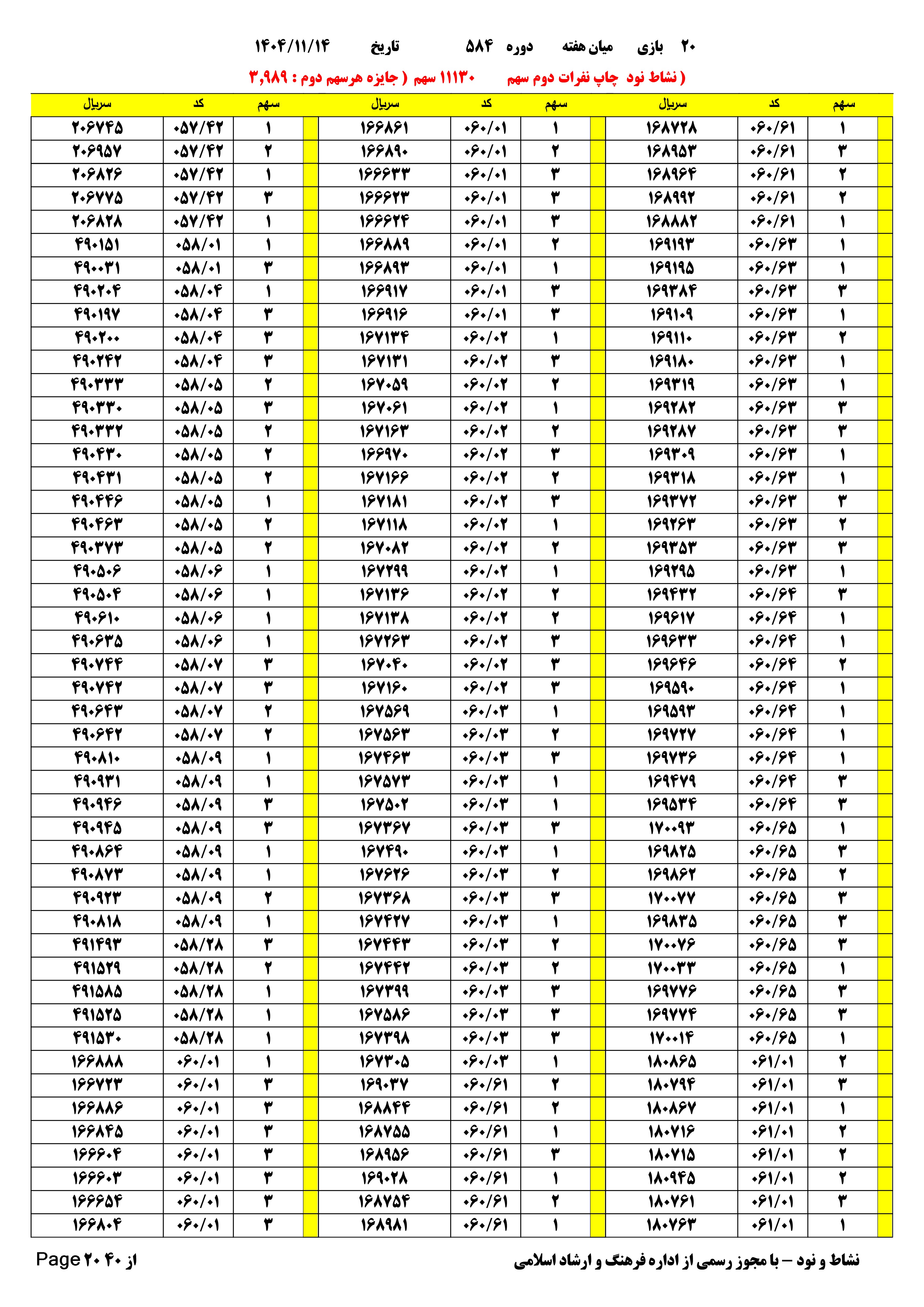 هدایای پرداختی : 0000 تعداد مشارکت : 00