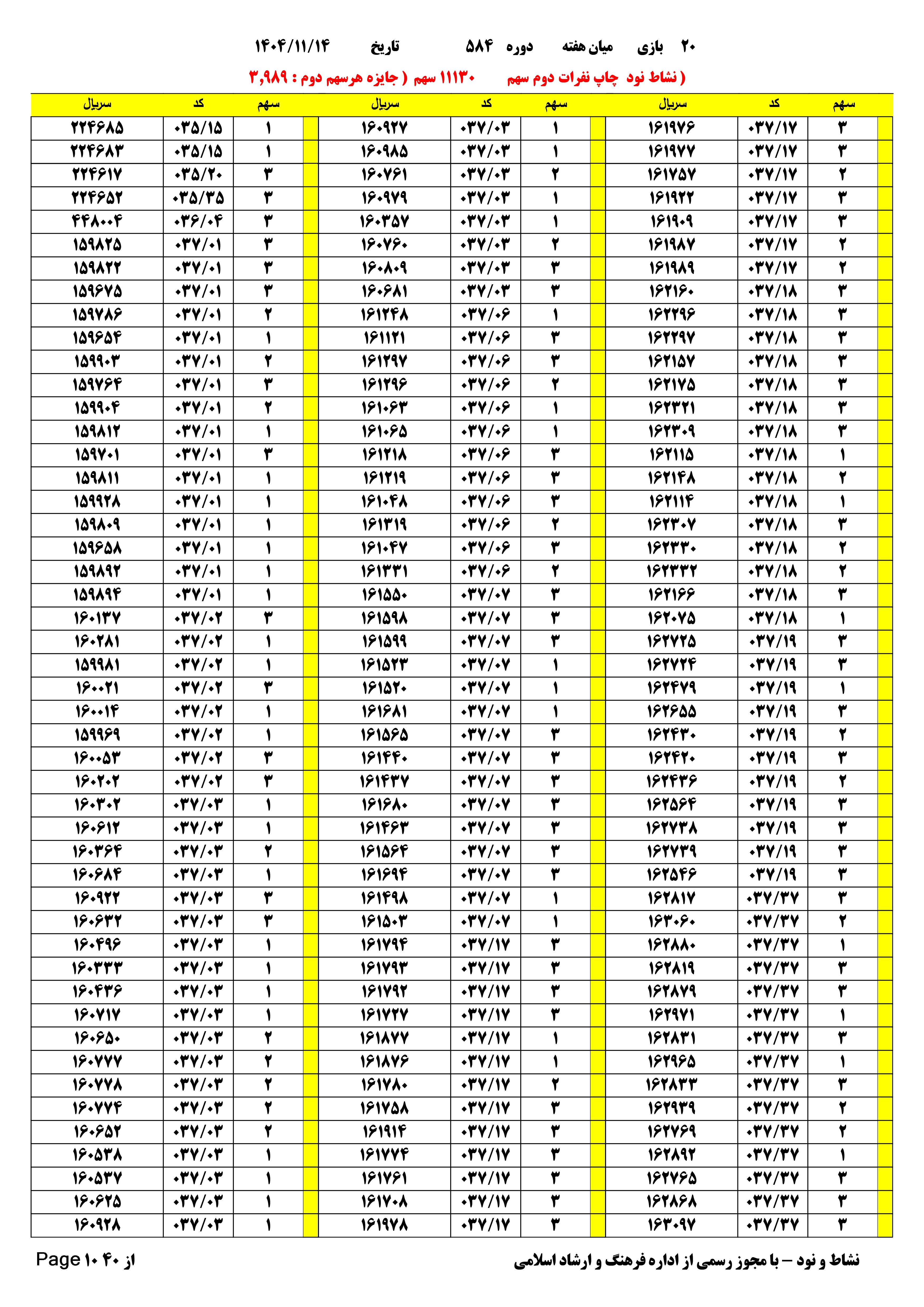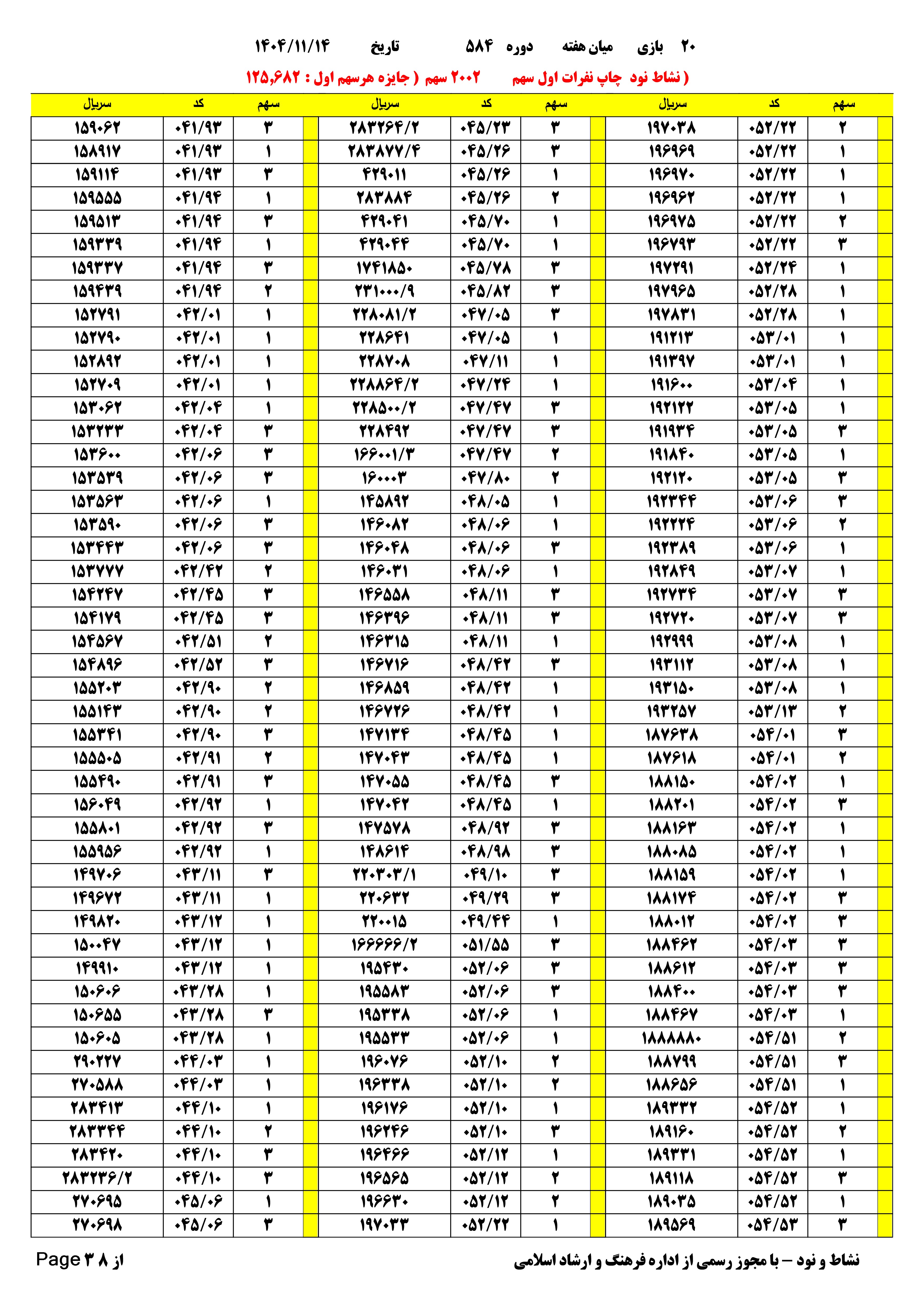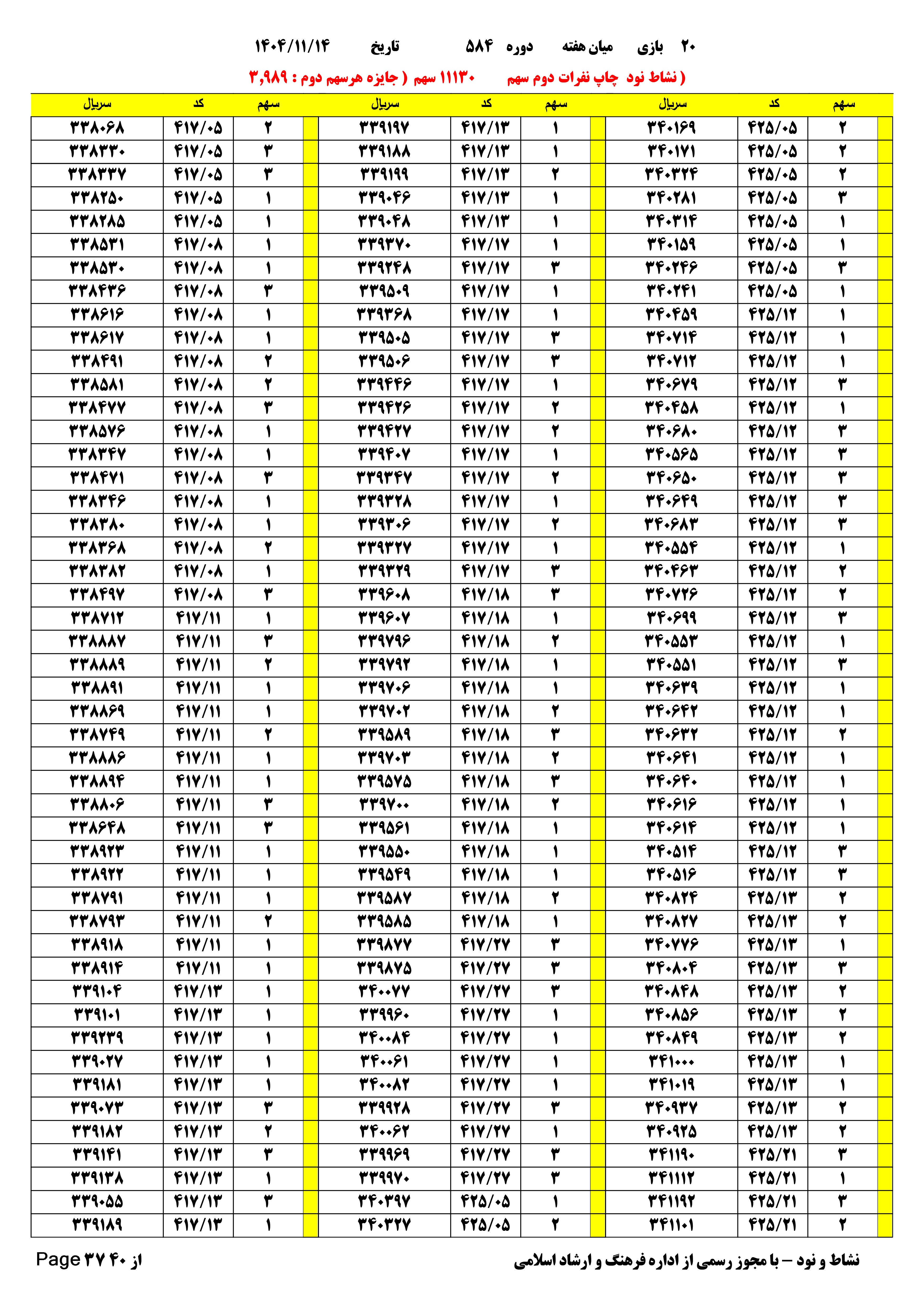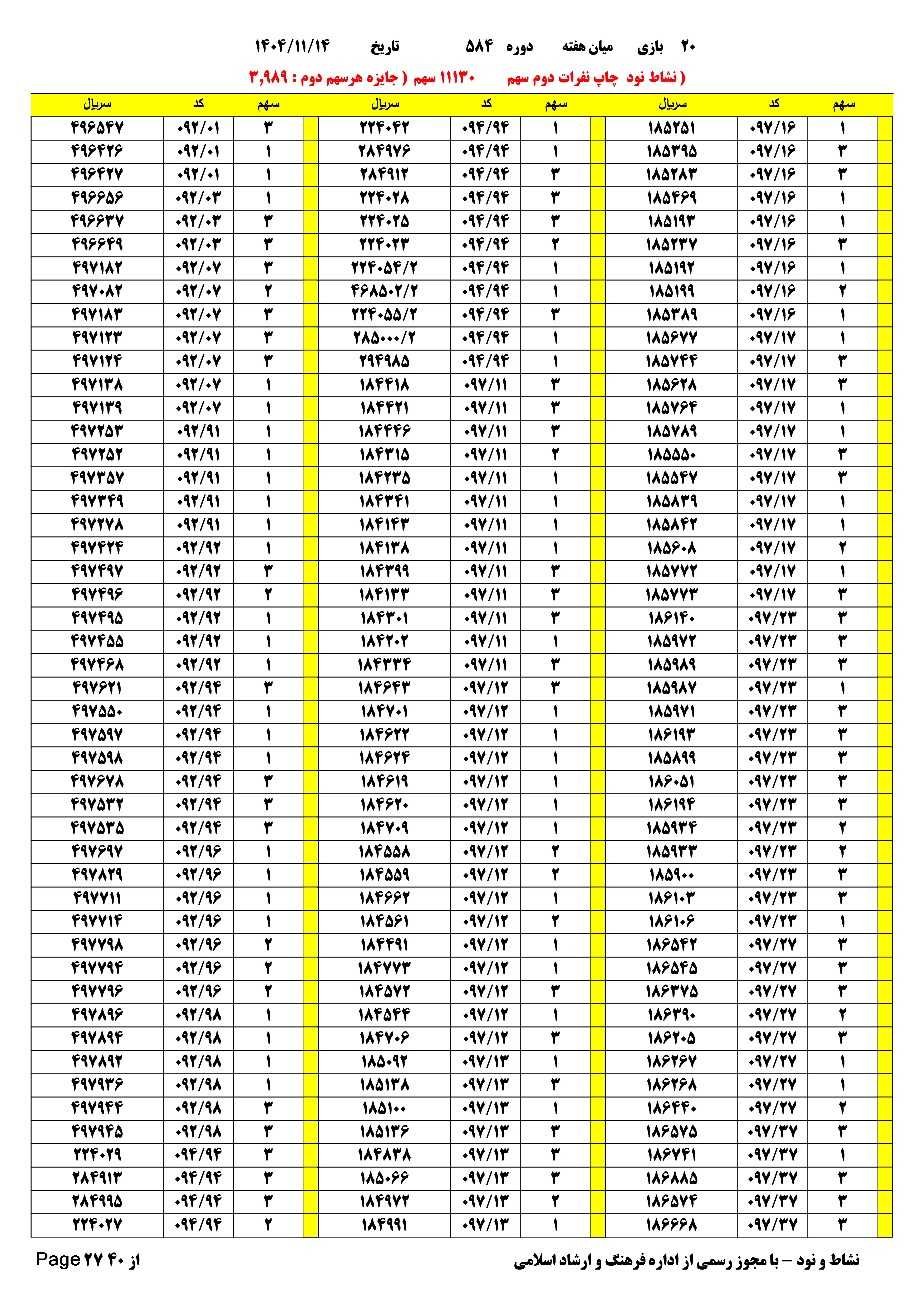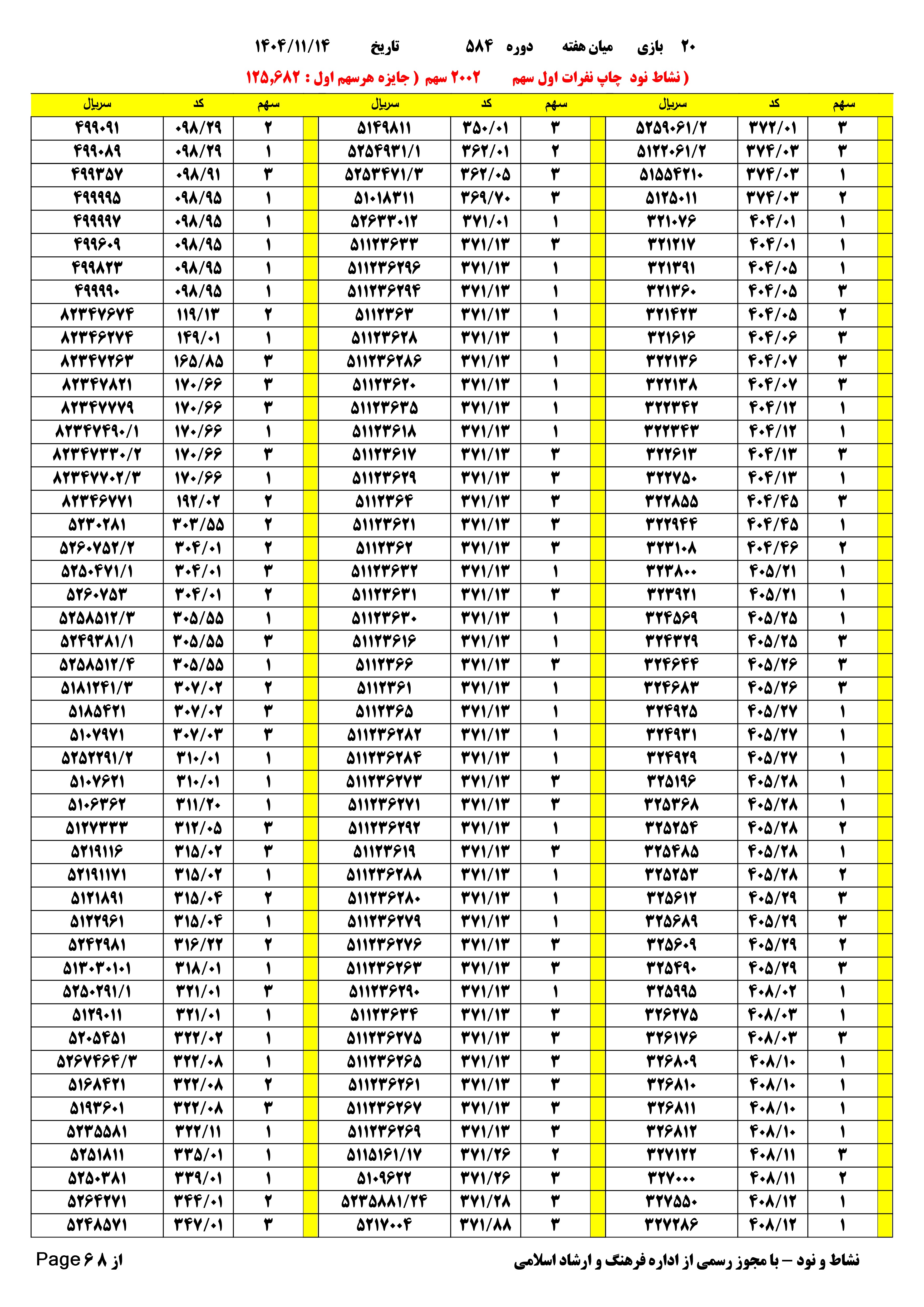 هدایای پرداختی : 0000 تعداد مشارکت : 00