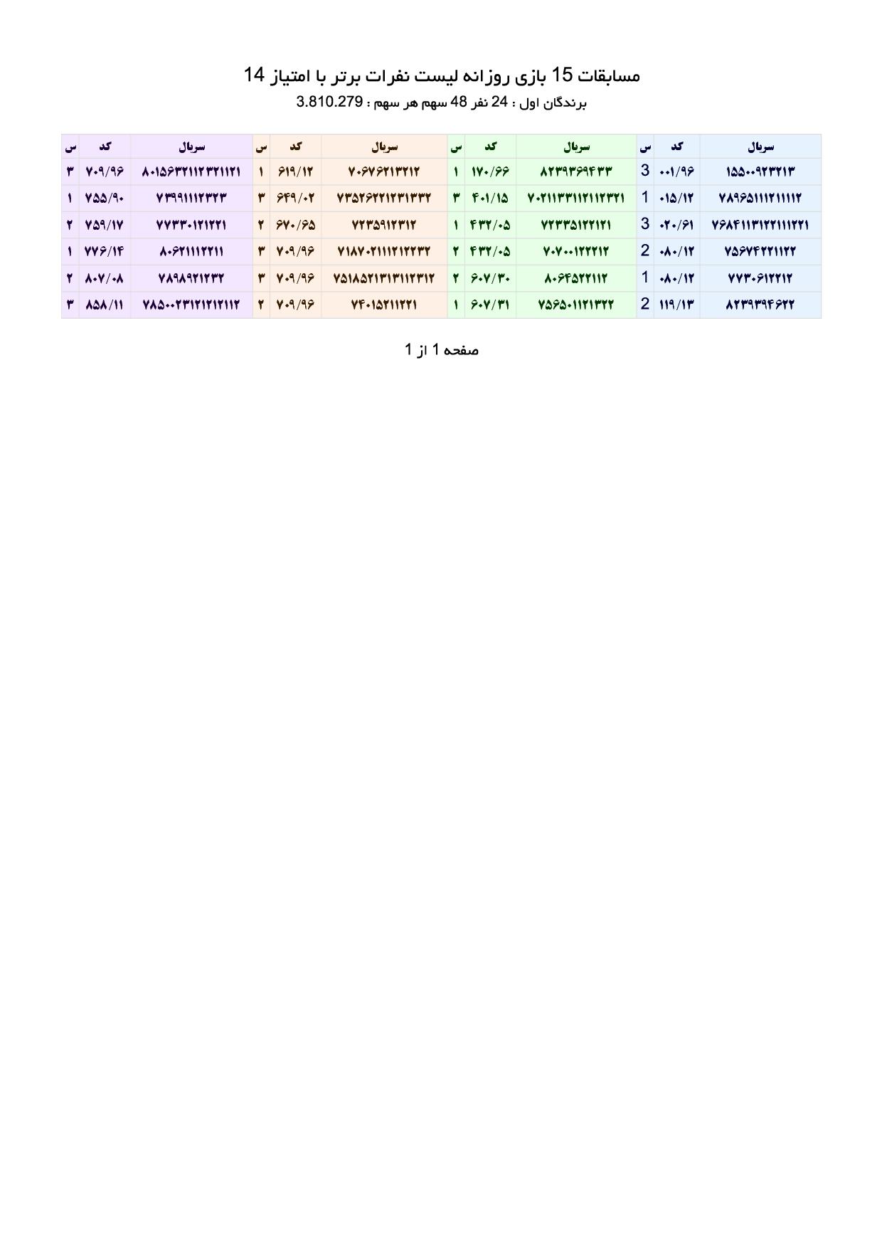 قابل توجه نمایندگان عزیز آخرین مهلت ارسال فایل 16 تایی شماره 20 تا ساعت 15:21 روز جمعه 01 اسفند 1404 می باشد. با سپاس فراوان از همکاری شما آلبوم دیجیتال مسابقه 20 تعداد کل شرکت کنندگان 15769 جمع کل فروش 479.862.247 لینک دانلود آلبوم دیجیتال مسابقه لیست برگشتی جهت دریافت لیست پی دی اف از امکانات آلبوم تعداد بازیهای انجام شده: بازی