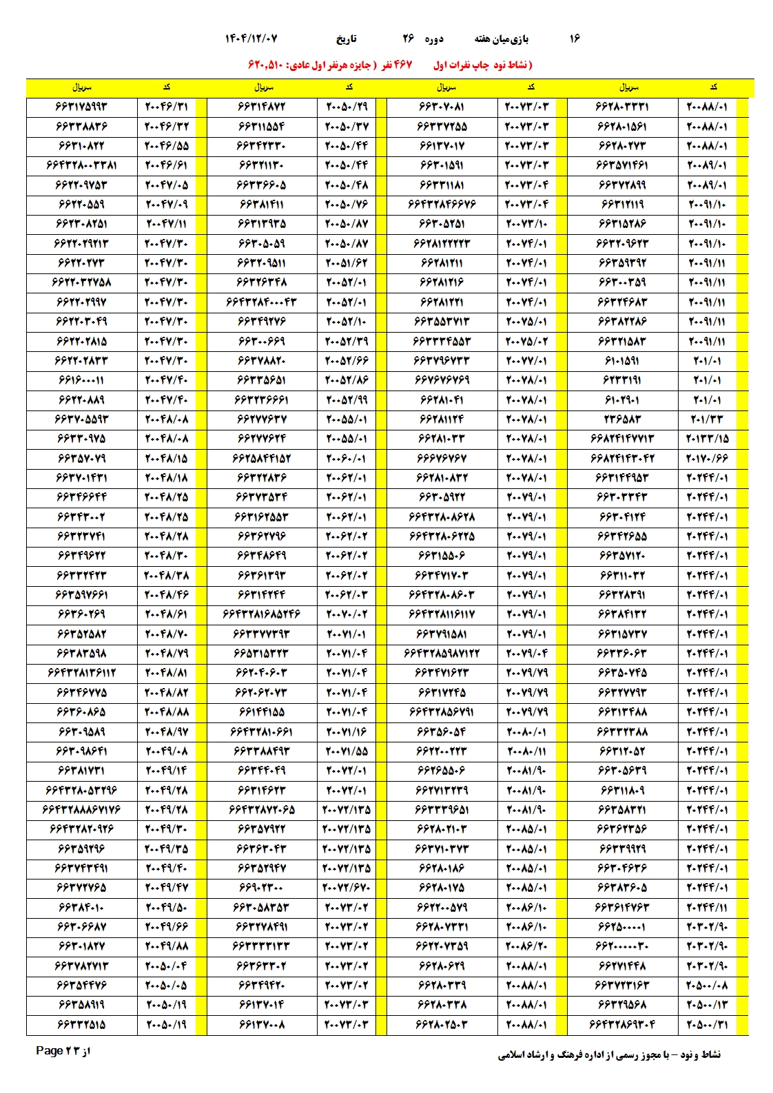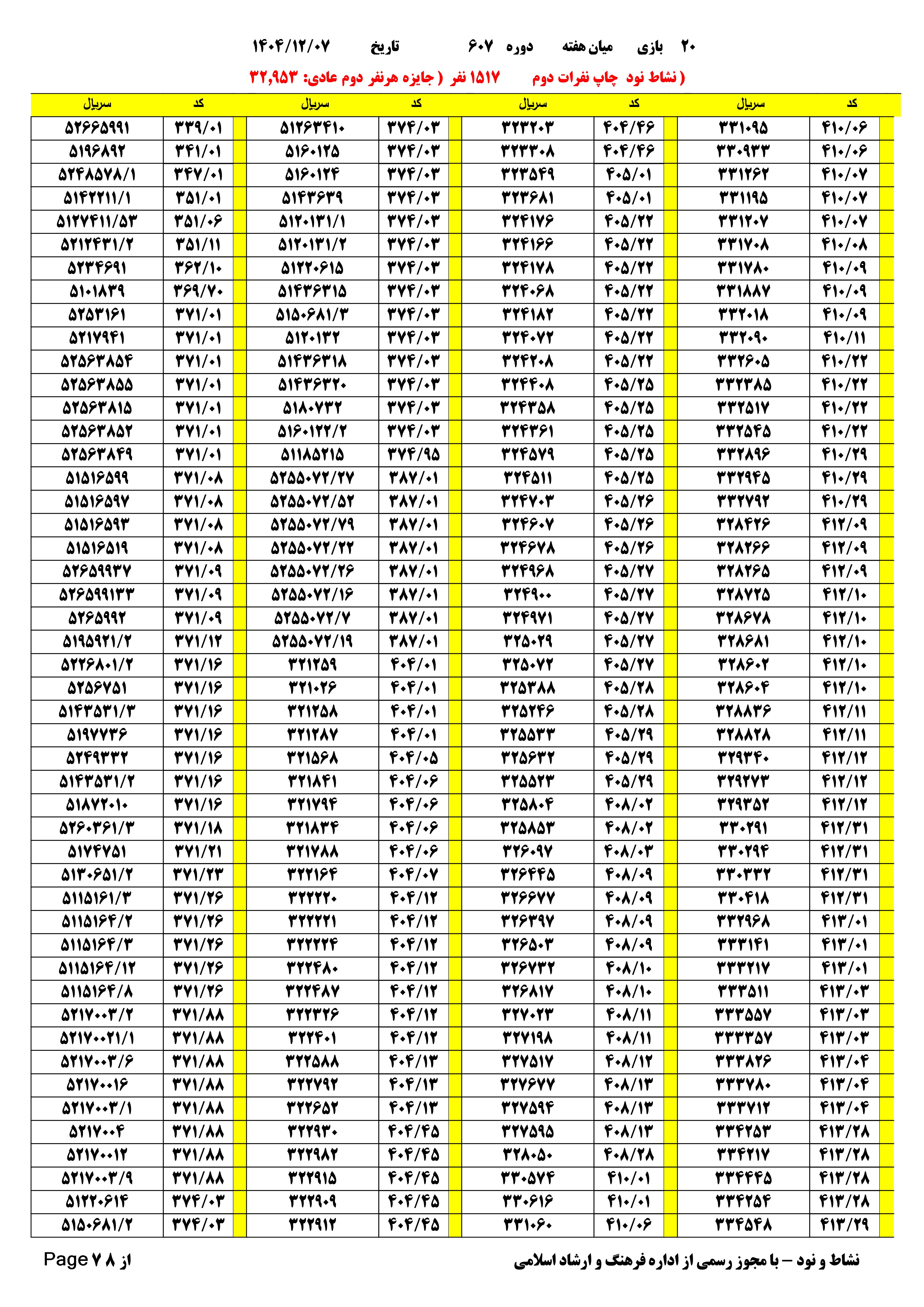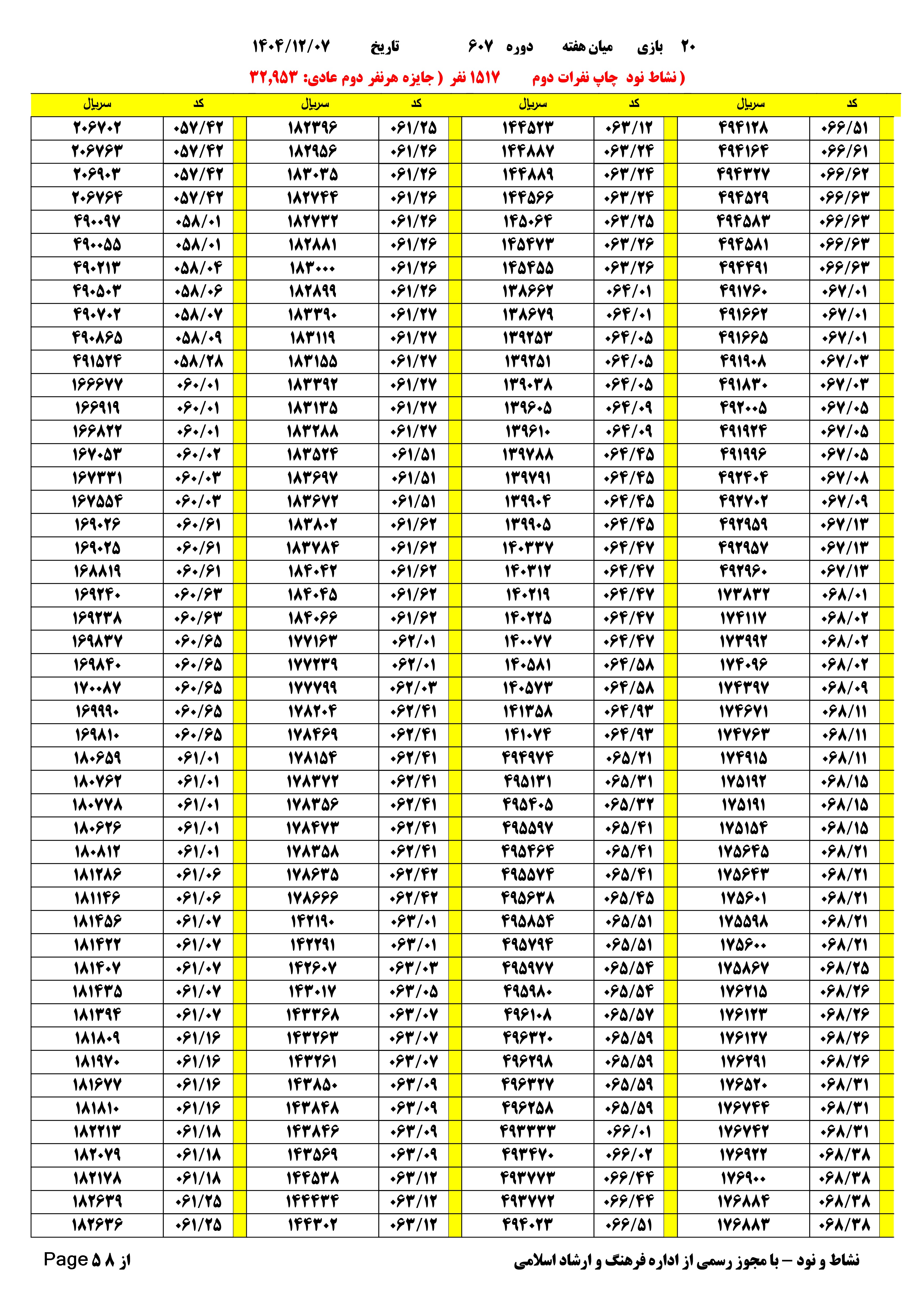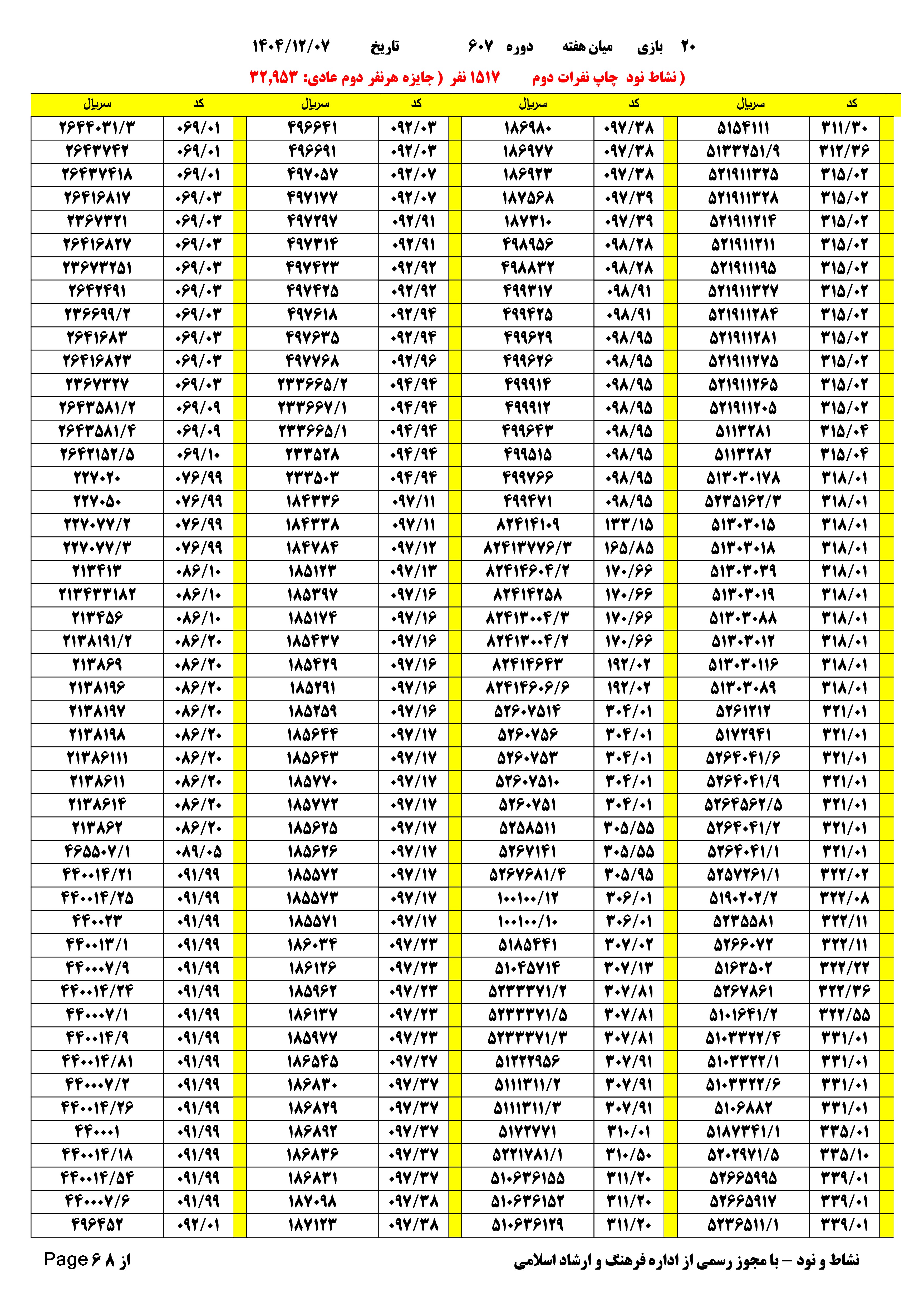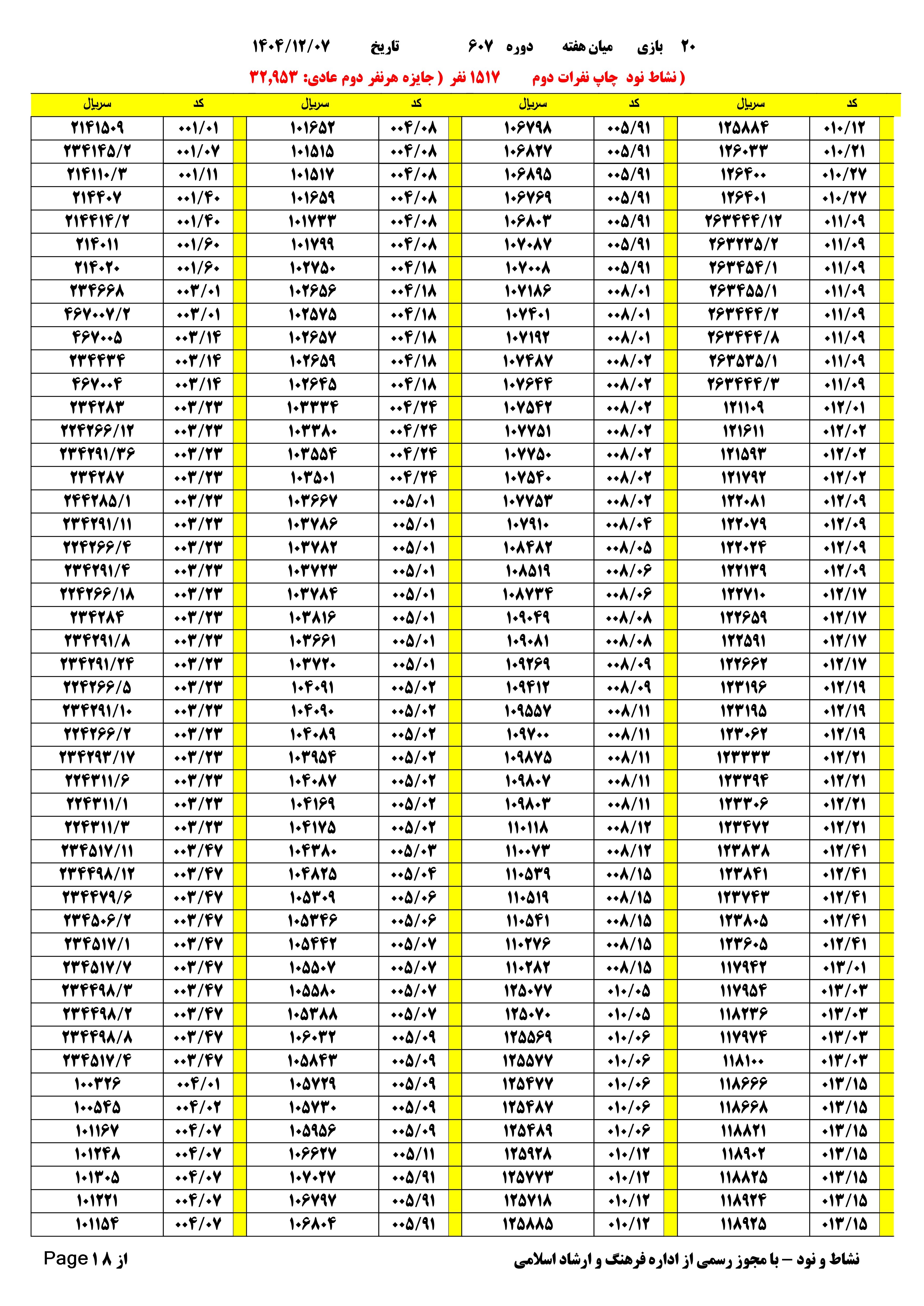 | دانلود فتوکل و نتایج 17 بازی یاس نود شماره (708) |