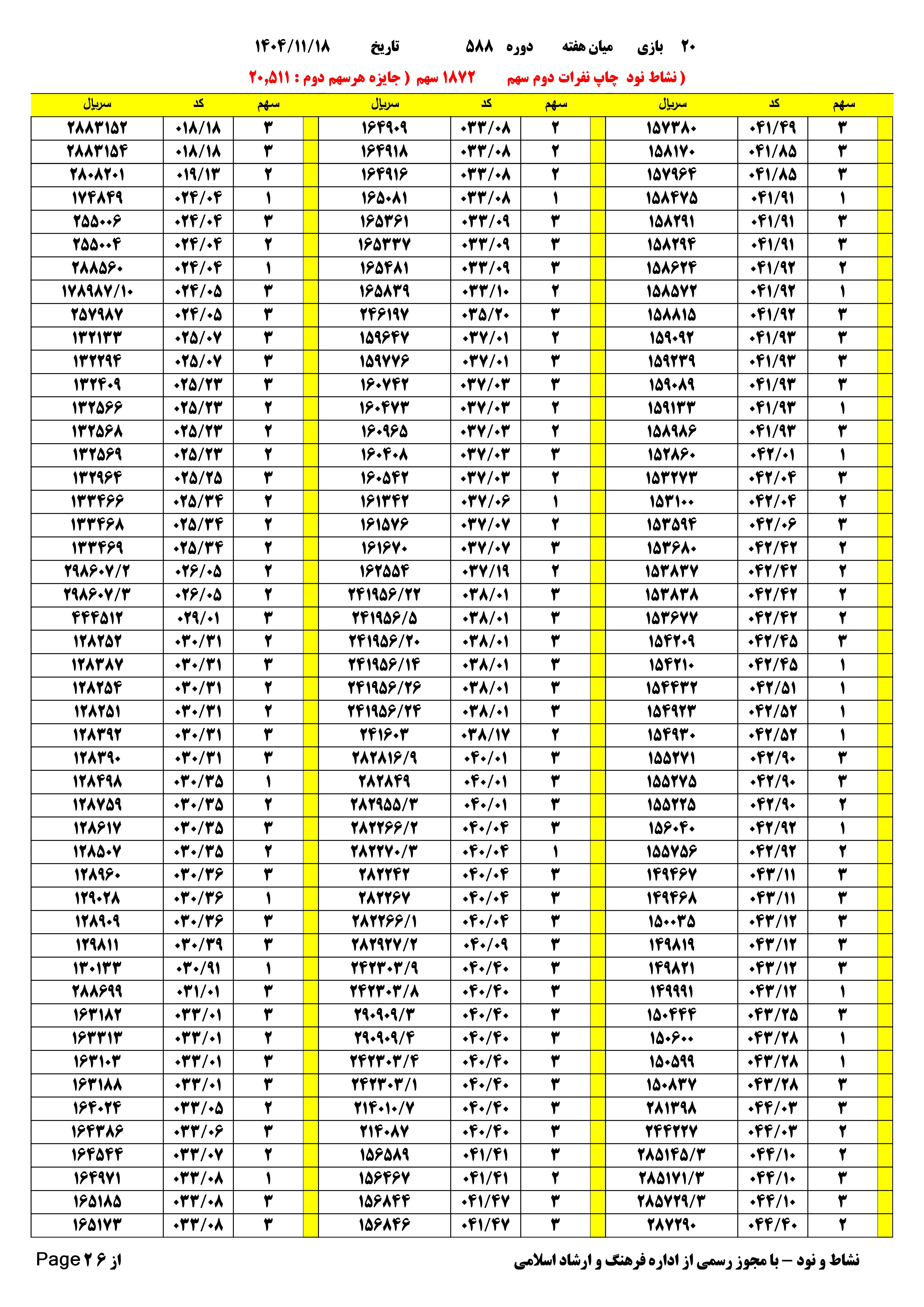 دانلود فتوکل و نتایج 20 بازی یاس نود شماره (589) |