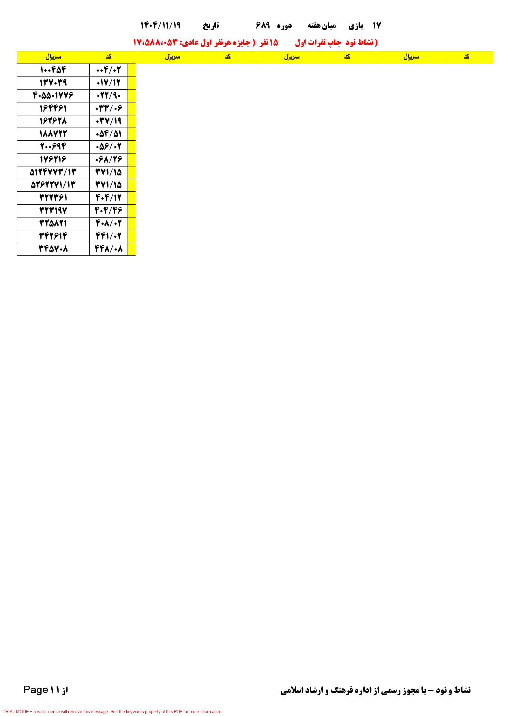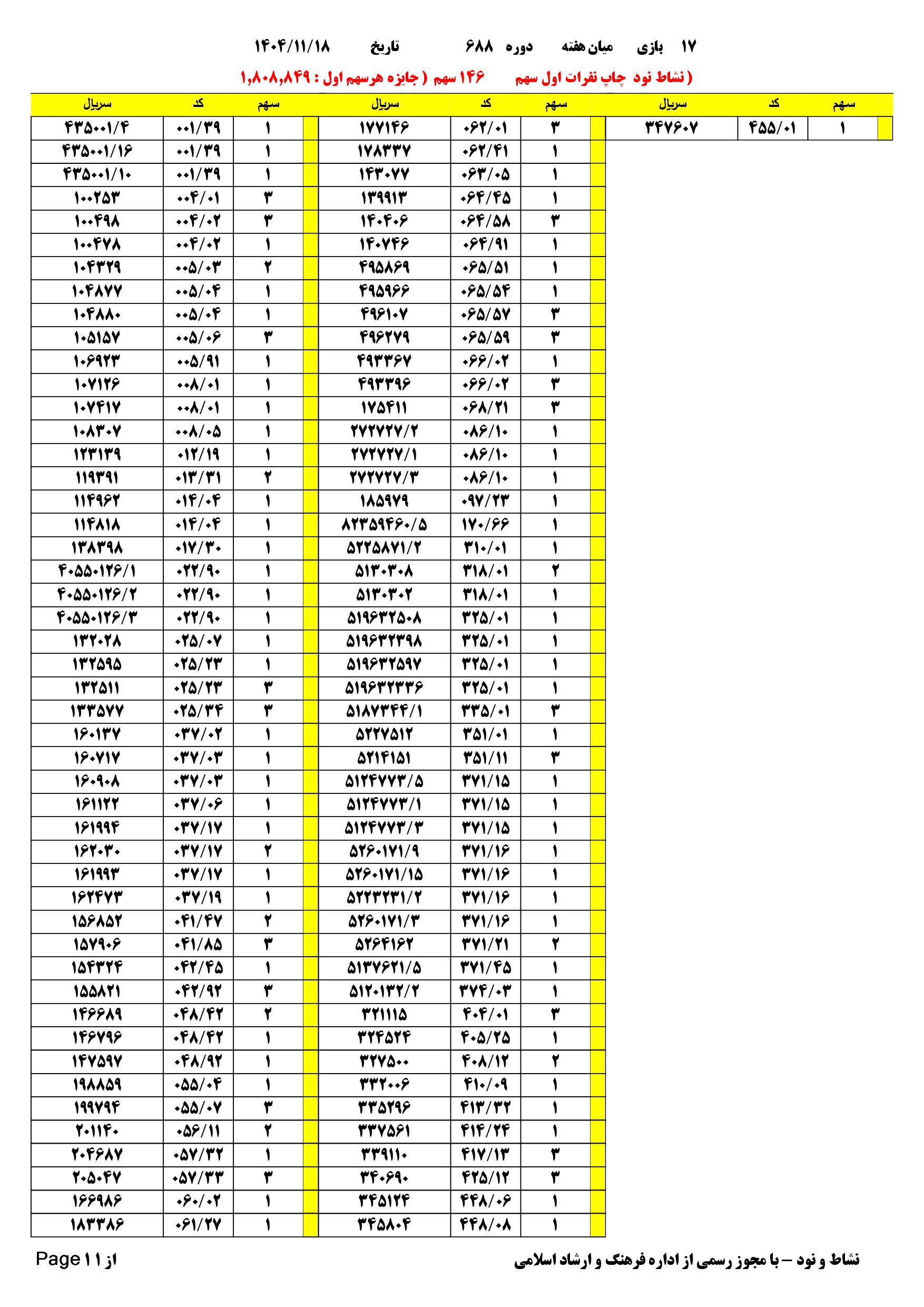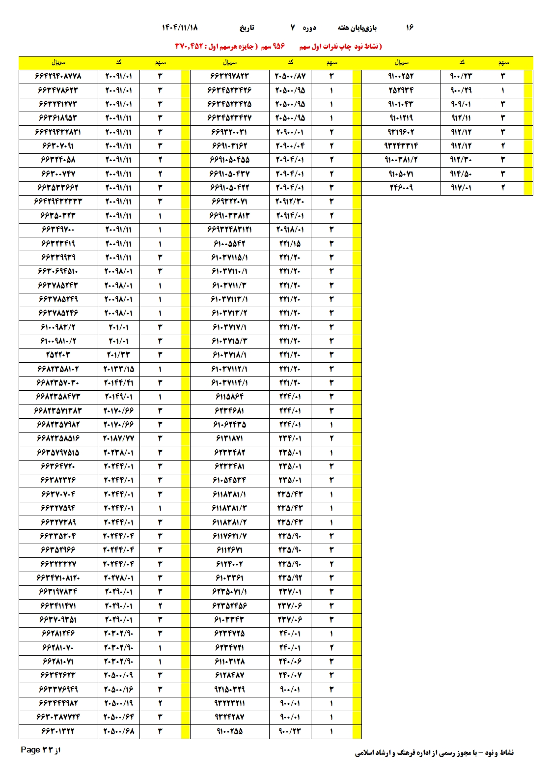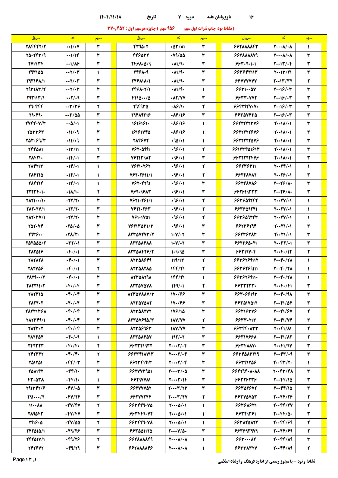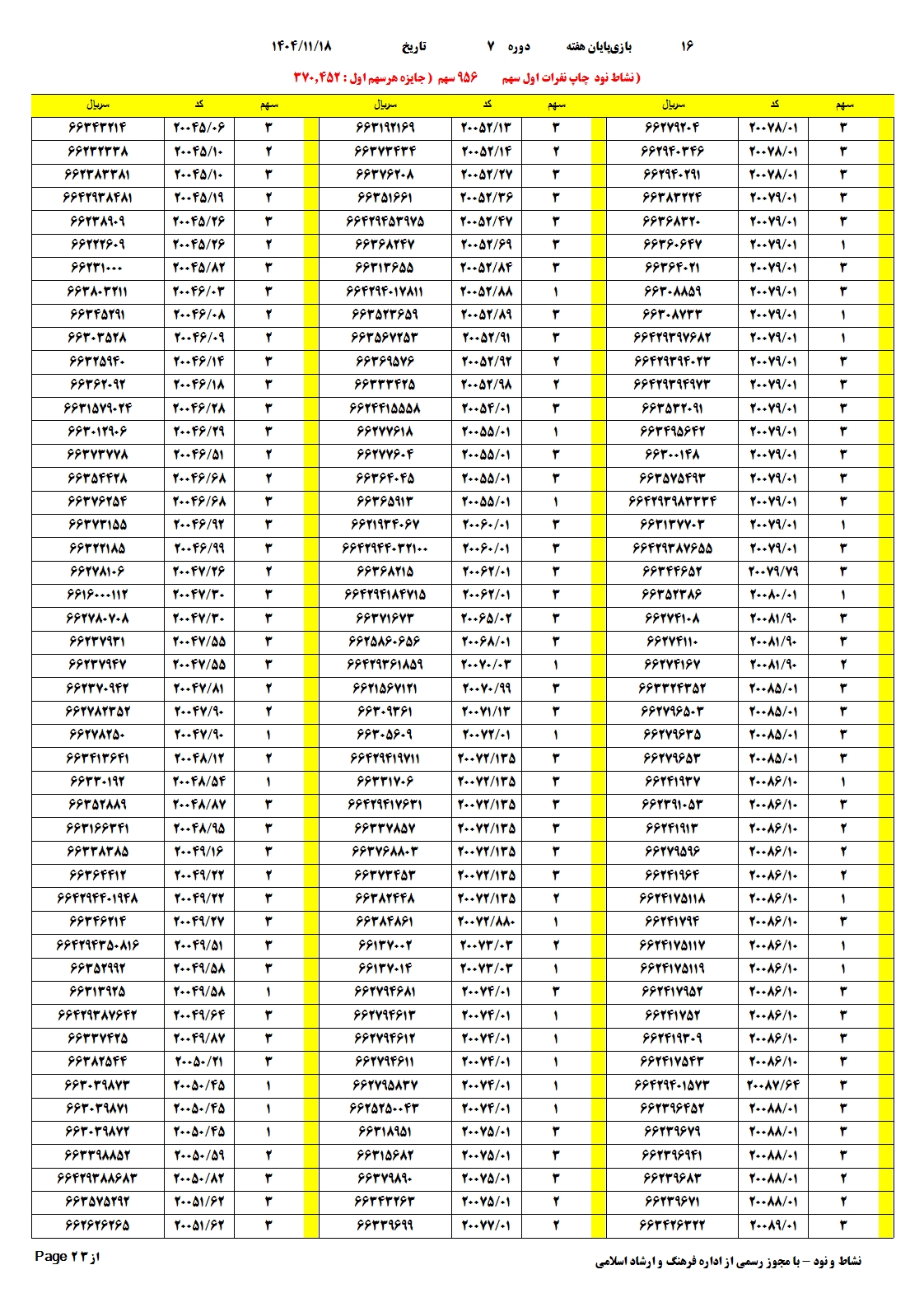 | تعدادبرگه های یک خطا | 7226 | مبلغ.هدیه.نفرات.دوم | 000000 |