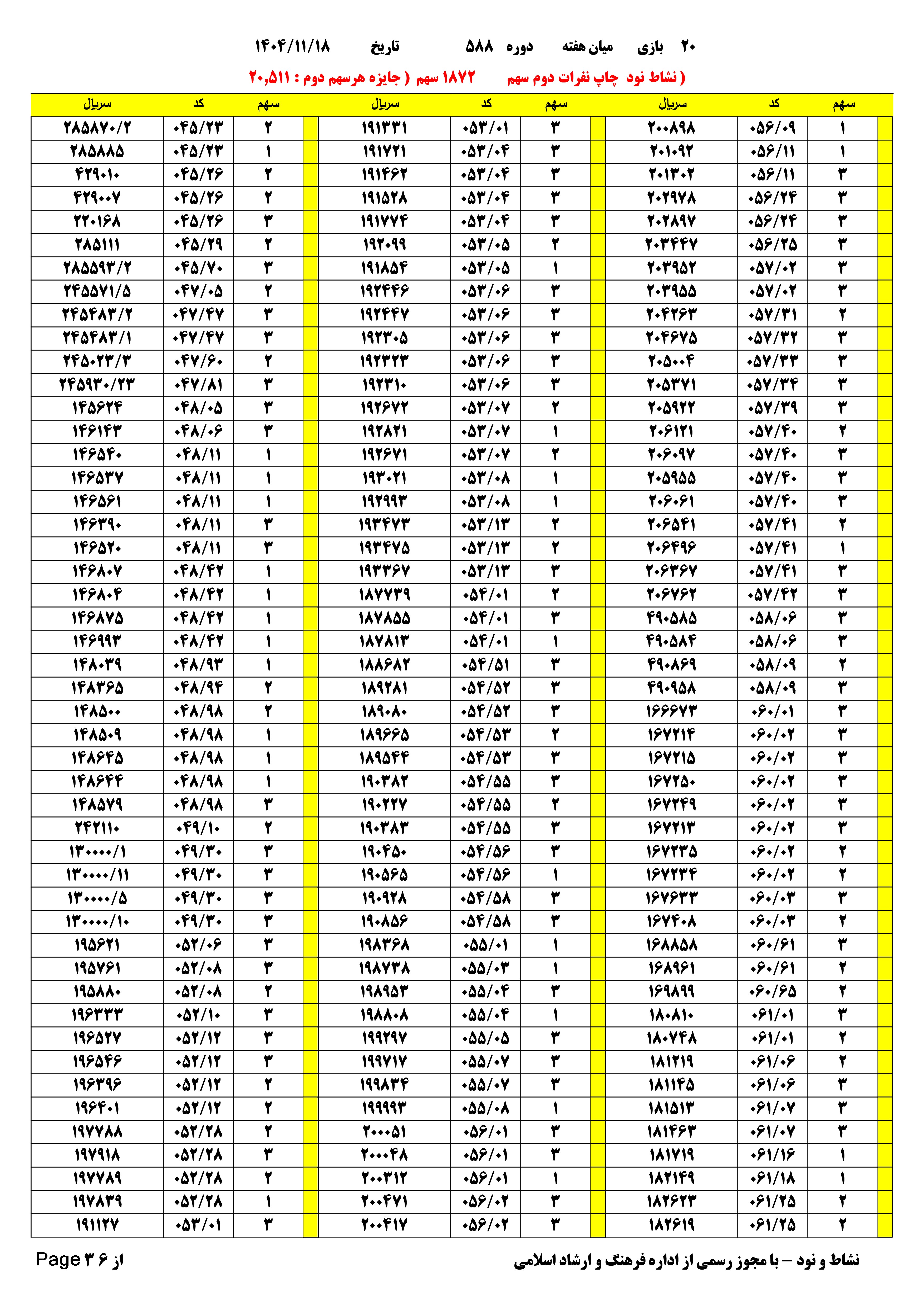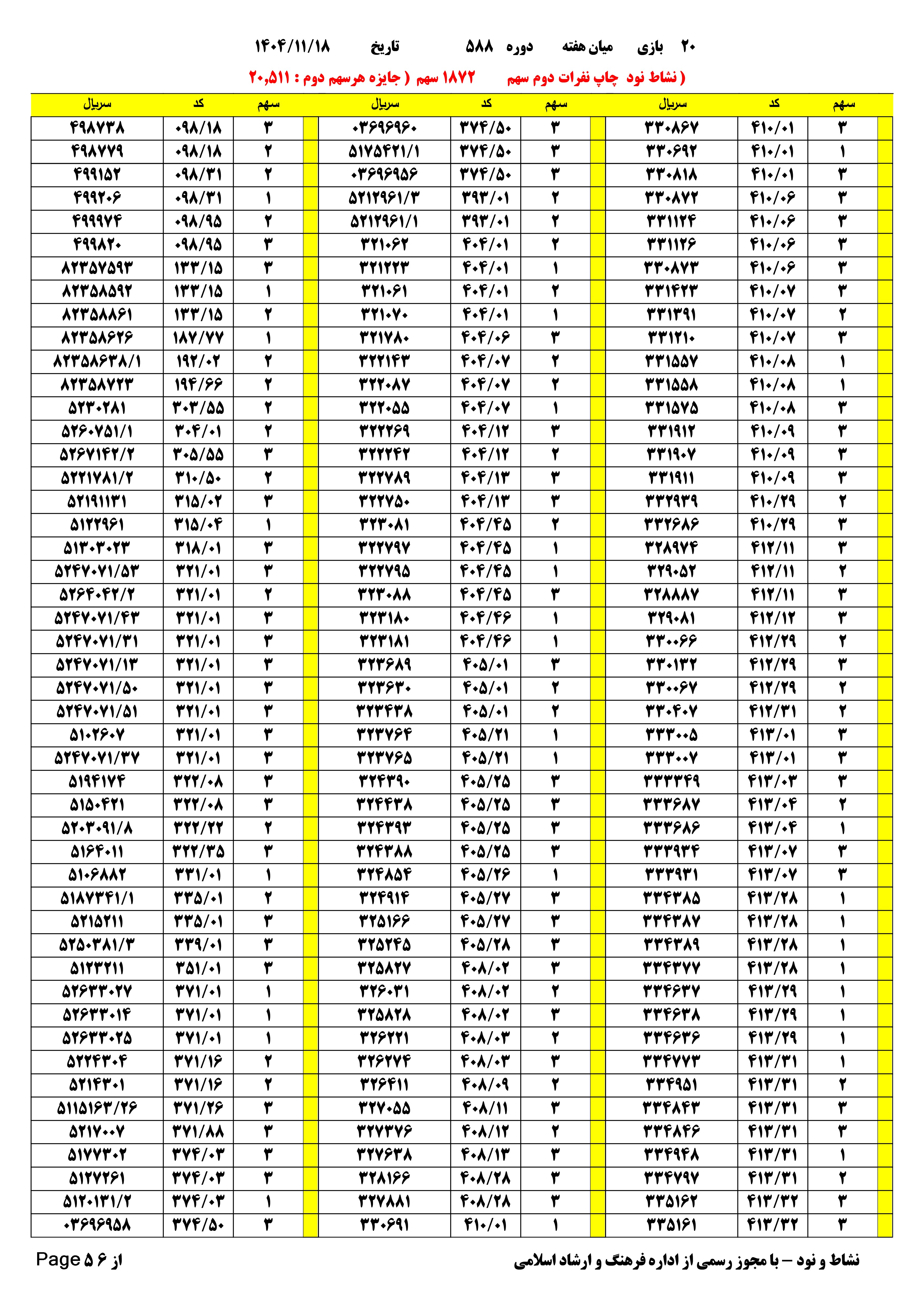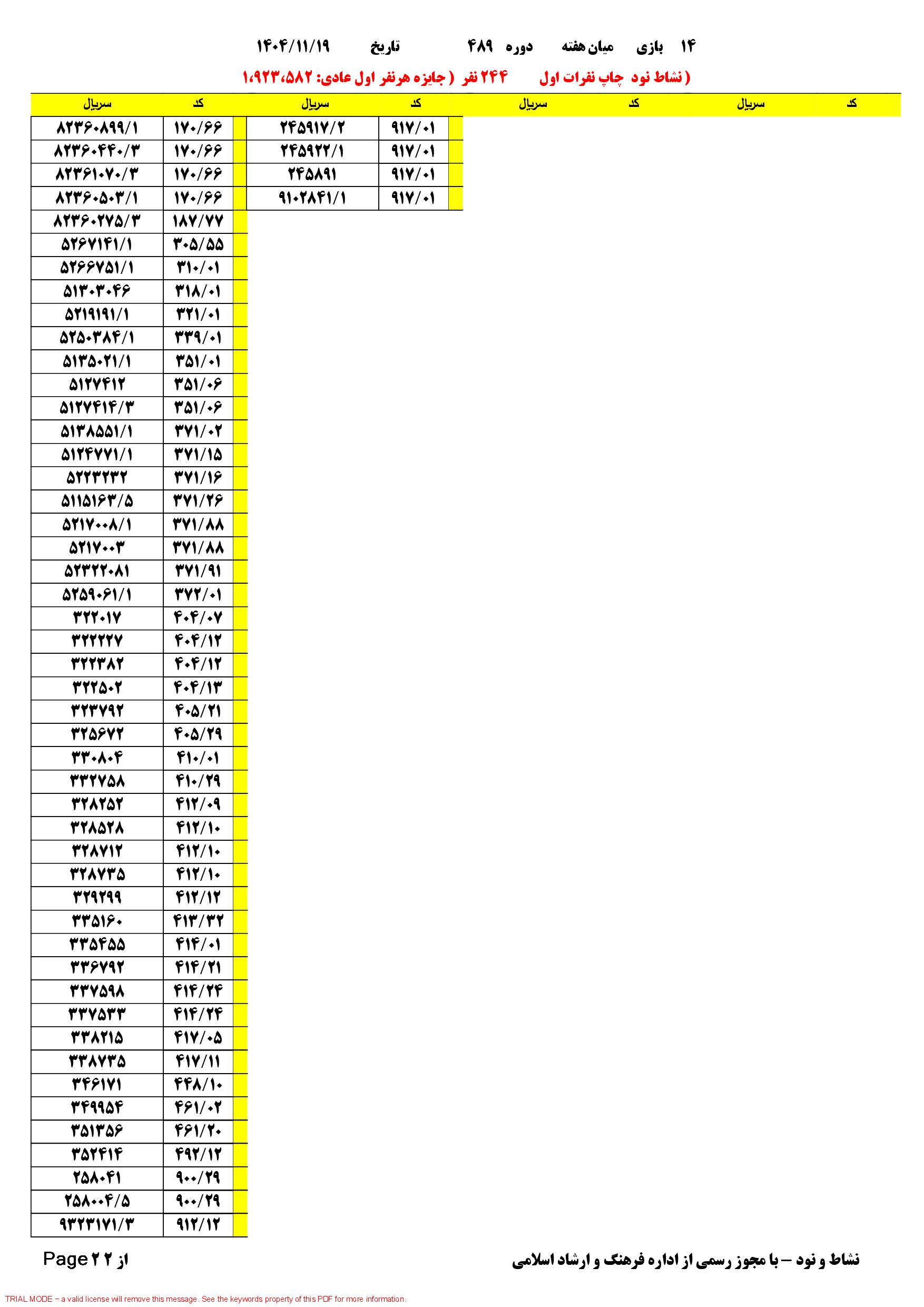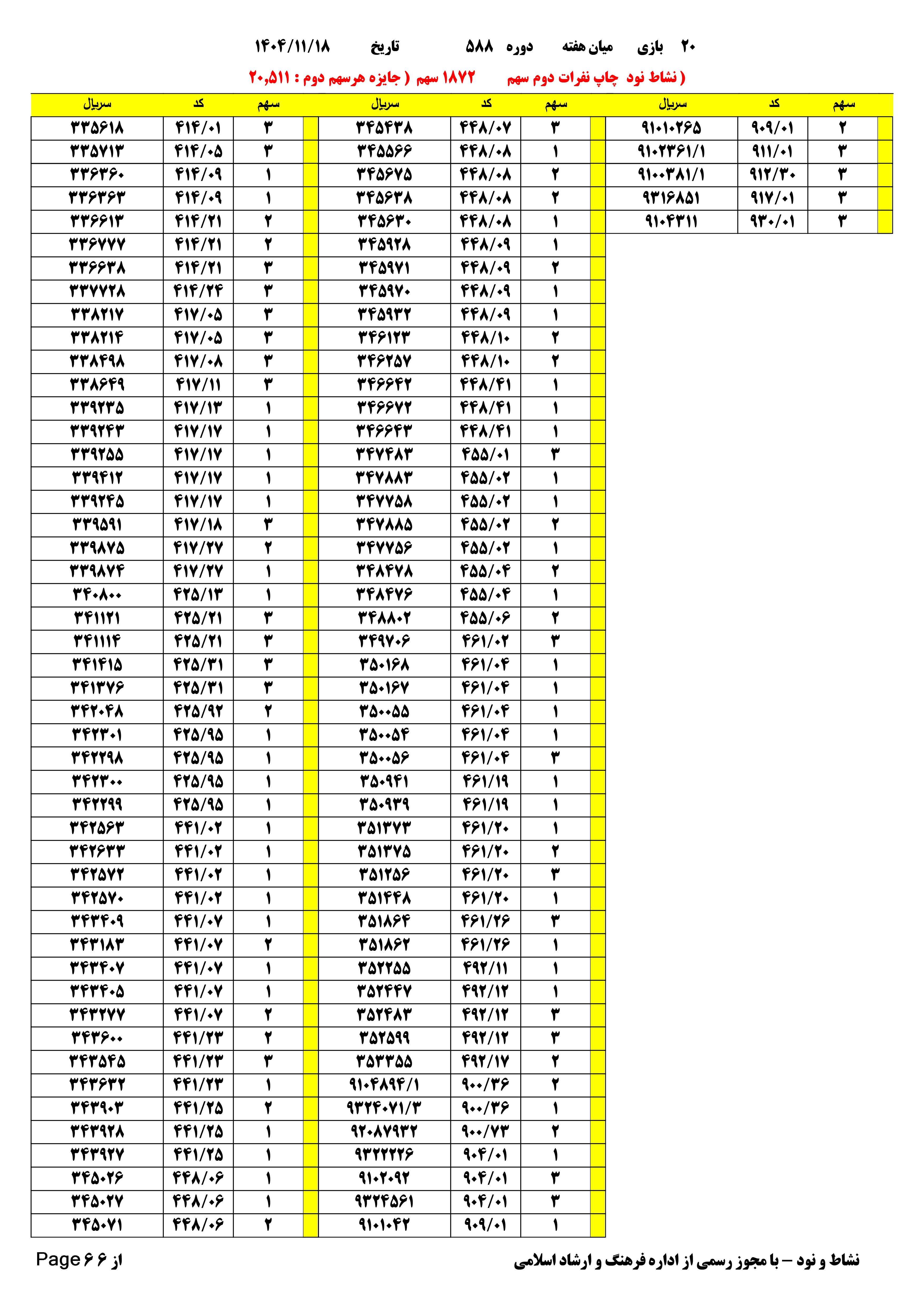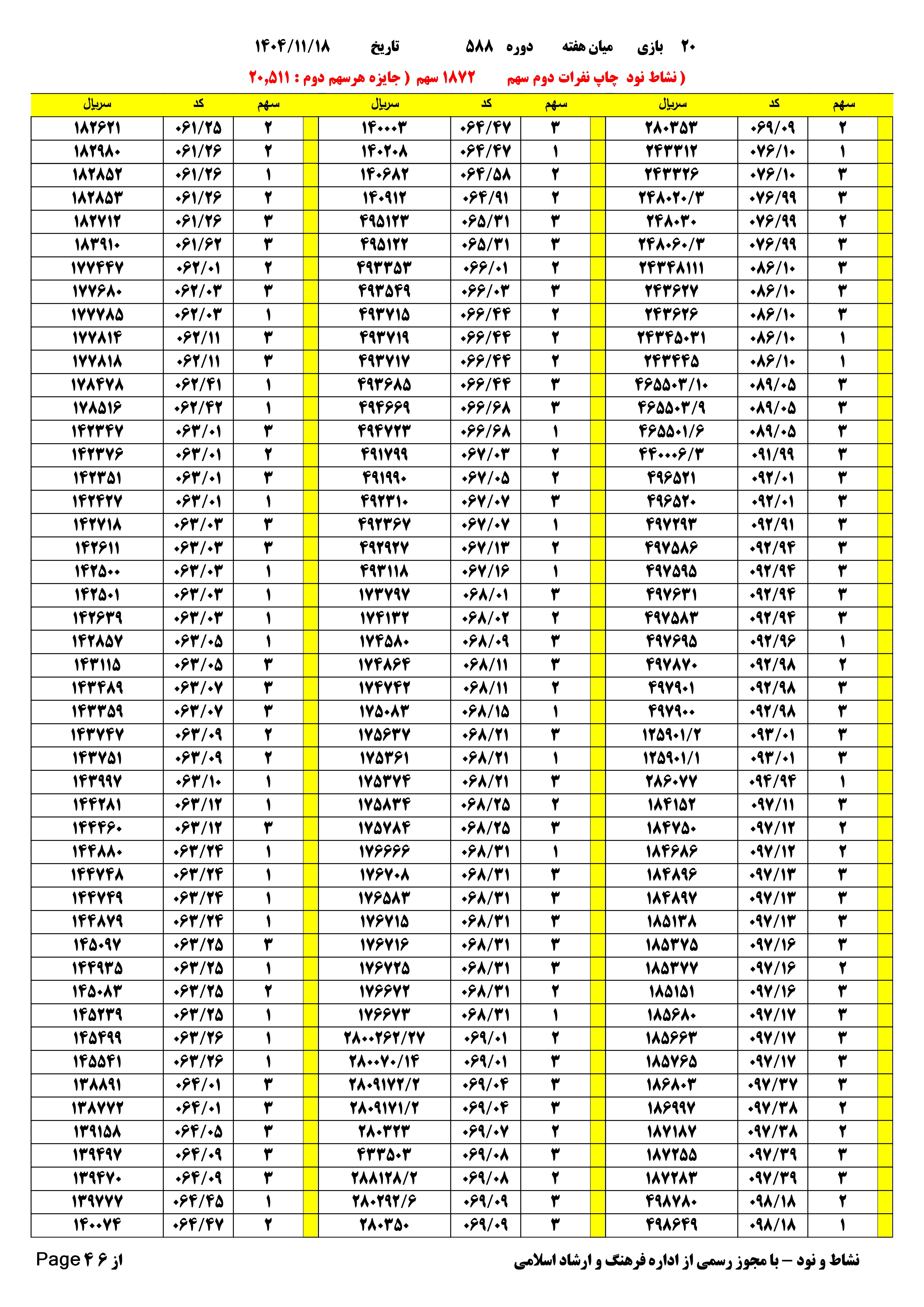 | تعدادبرگه های یک خطا | 7226 | مبلغ.هدیه.نفرات.دوم | 000000 |