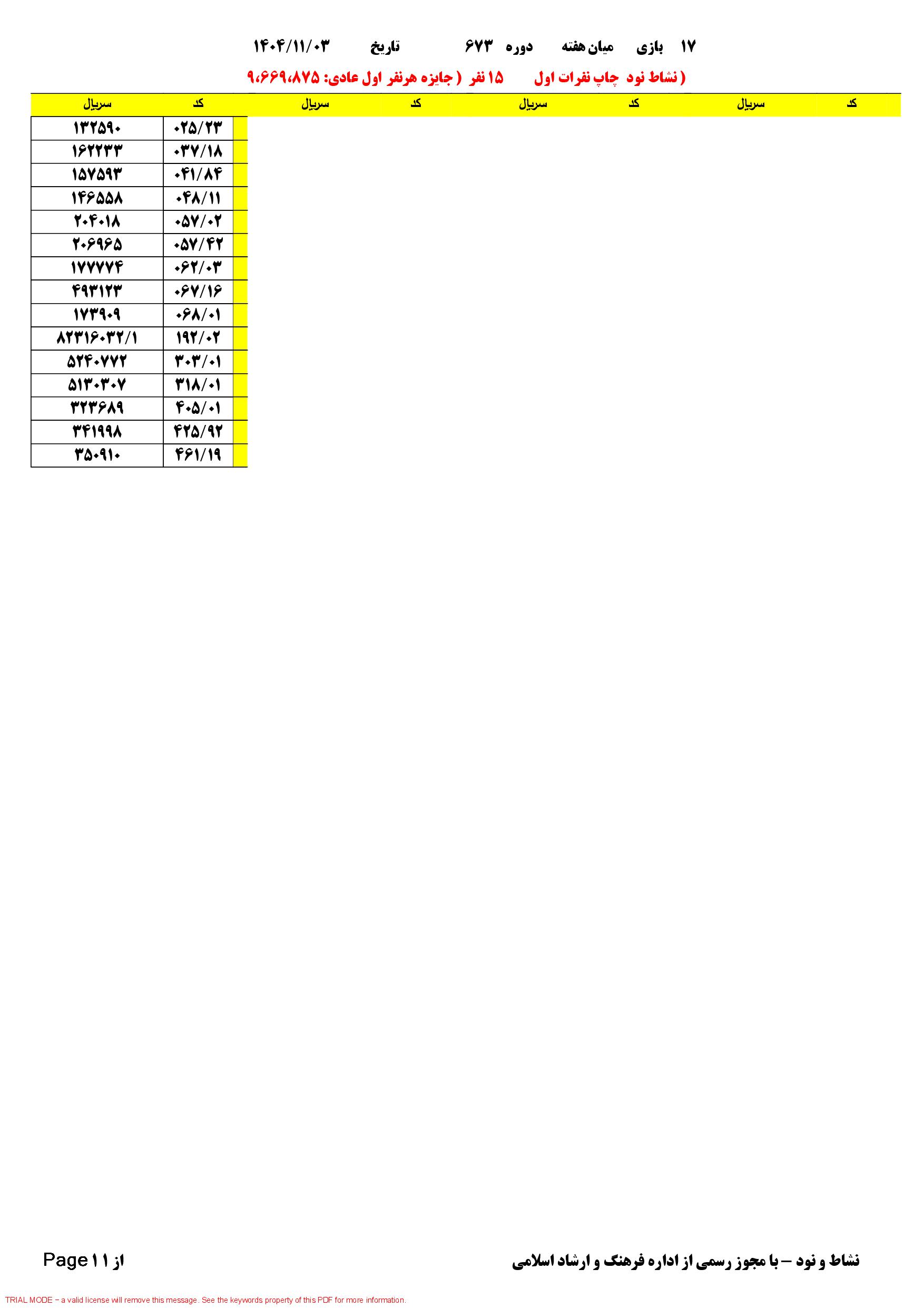| دانلود فتوکل و نتایج 17 بازی یاس نود شماره (674) |