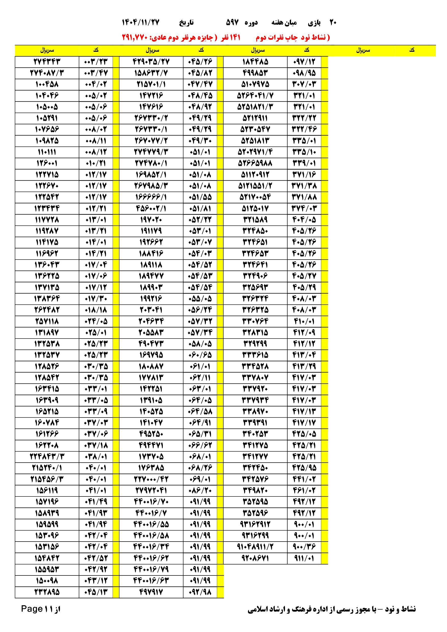 | تعدادبرگه های یک خطا | 141 | مبلغ.هدیه.نفرات.دوم | 291.770 |