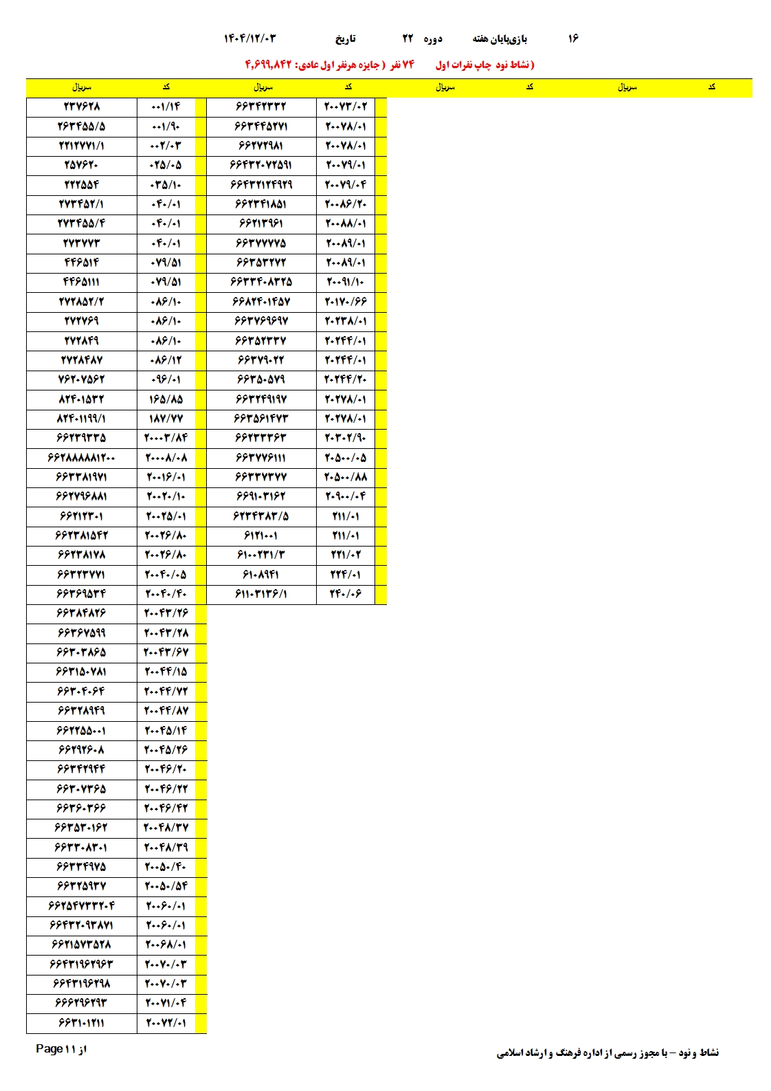 قابل توجه نمایندگان عزیز آخرین مهلت ارسال فایل 16 تایی شماره 22 تا ساعت 15:16 روز یکشنبه با سپاس فراوان از همکاری شما آلبوم دیجیتال مسابقه 22 تعداد کل شرکت کنندگان 14508 جمع کل فروش 599.635.036 لینک دانلود آلبوم دیجیتال مسابقه جهت دریافت لیست پی دی اف از امکانات آلبوم تعداد بازیهای انجام شده: 16 بازی |