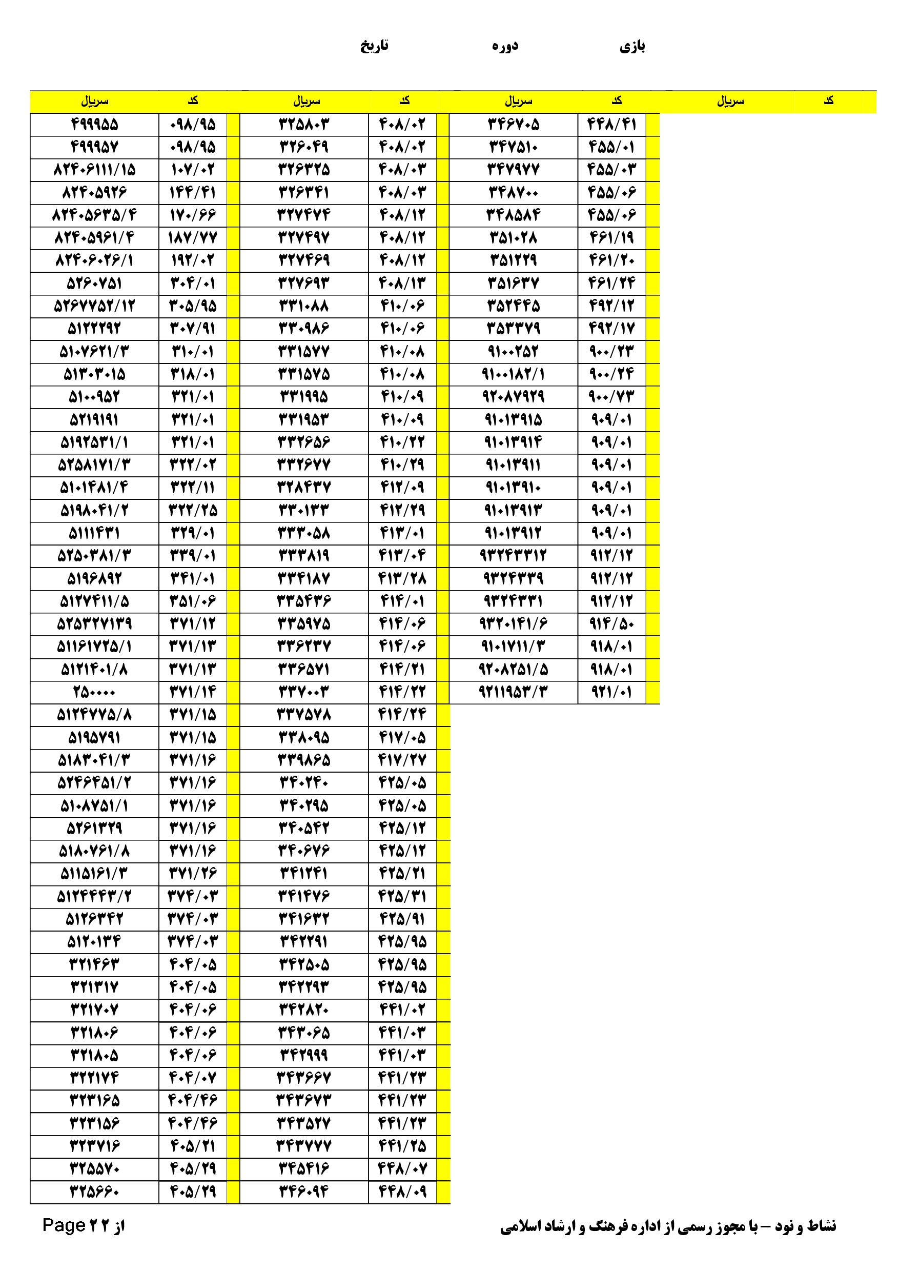 | دانلود فتوکل و نتایج 17 بازی یاس نود شماره (704) |