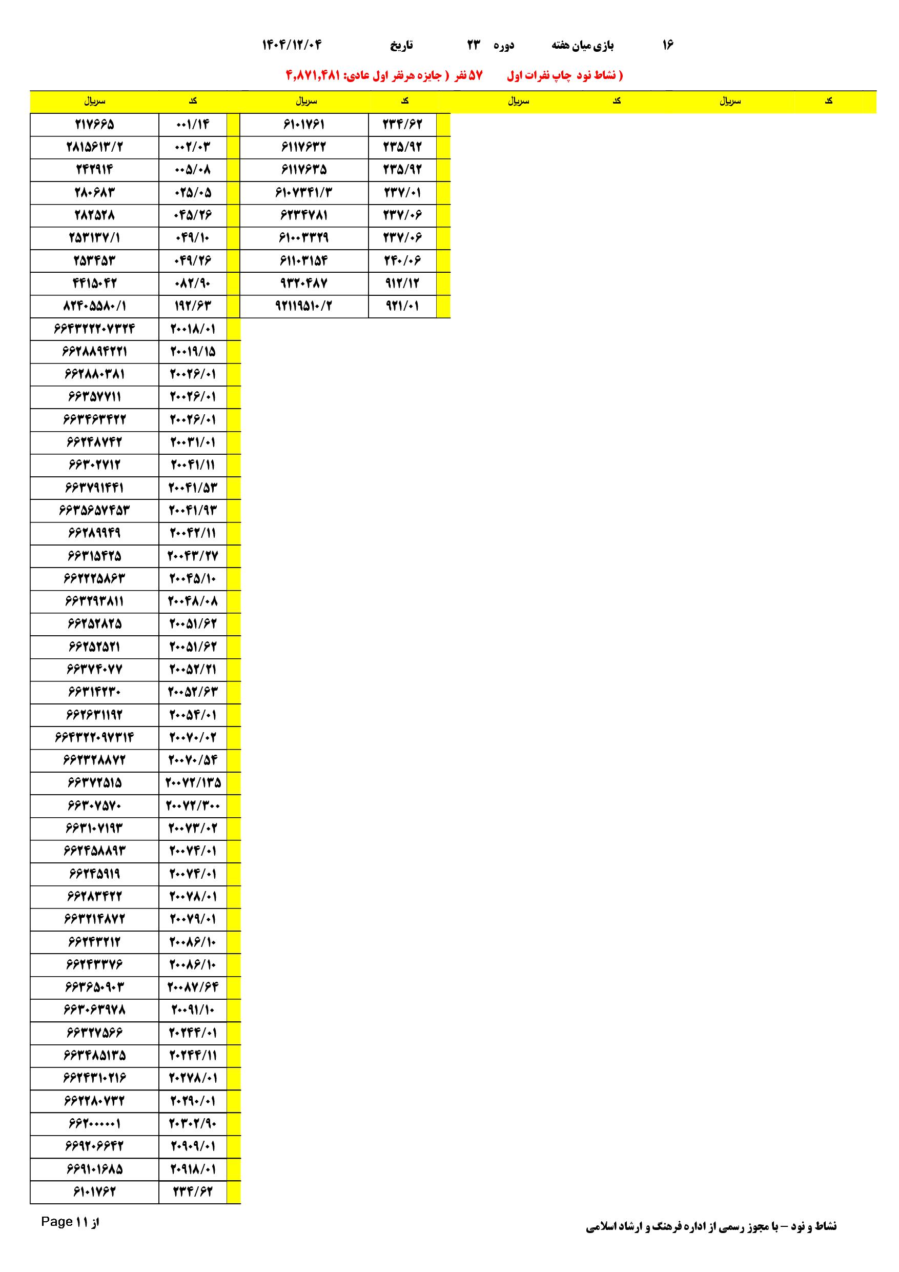 قابل توجه نمایندگان عزیز ! آخرین مهلت ارسال فایل 23 تایی شماره 16 تا ساعت 19:45 روز دوشنبه 04 اسفند 1403 می باشد. با سپاس فراوان از همکاری شما آلبوم دیجیتال مسابقه دوره 23 تعداد کل شرکت کنندگان 15624 جمع کل فروش 478.749.011 لینک دانلود آلبوم دیجیتال مسابقه جهت دریافت لیست پی دی اف از امکانات آلبوم دیجیتال استفاده نمایید. تعداد بازیهای انجام شده: 16 بازی |