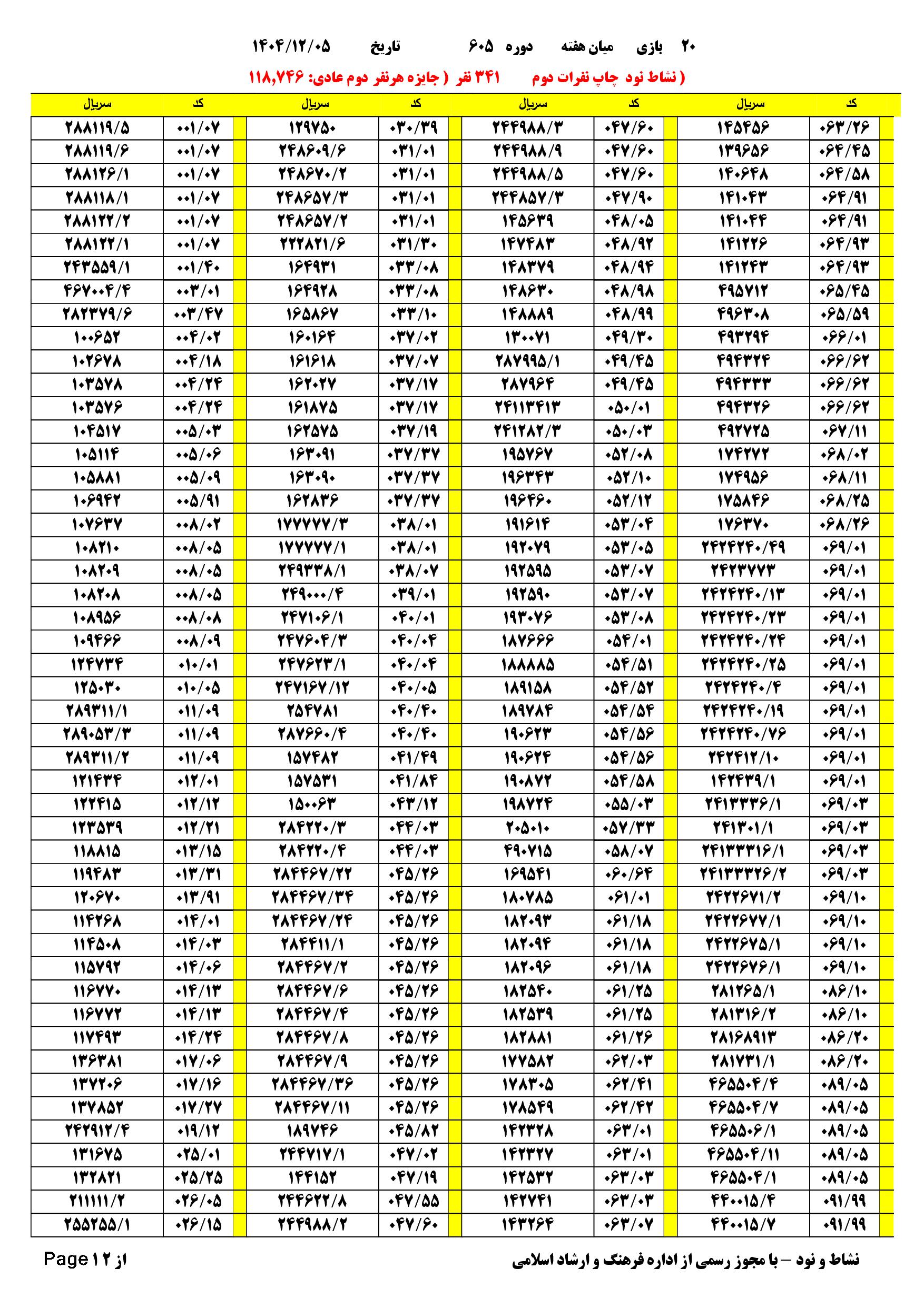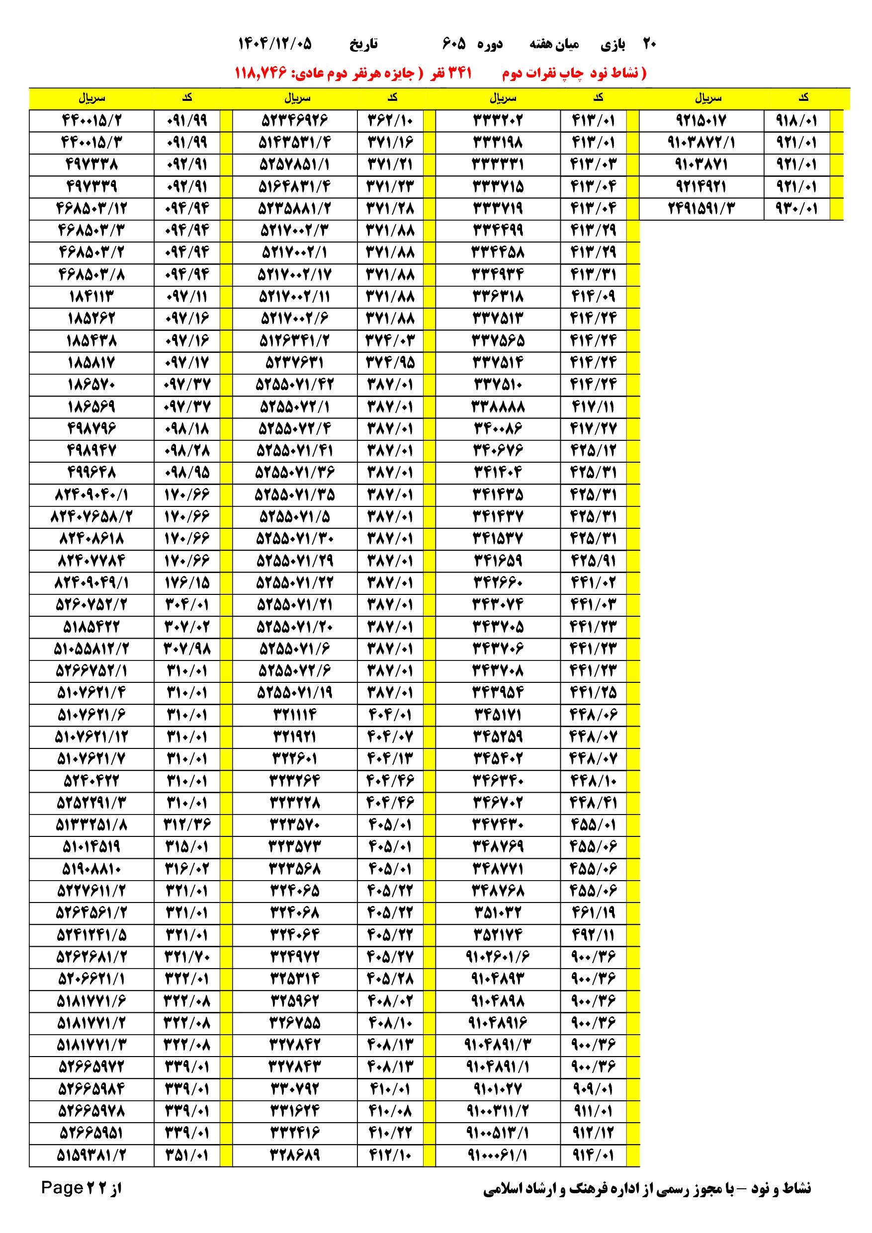 دانلود فتوکل و نتایج 20 بازی یاس نود شماره (605) |