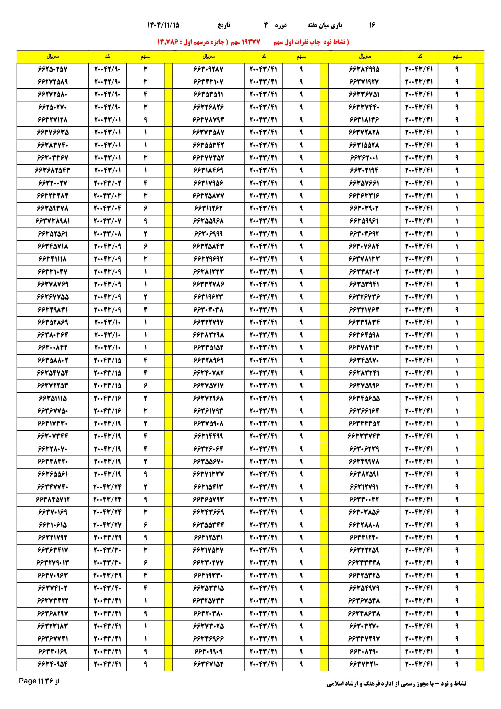 | دانلود فتوکل و نتایج 17 بازی یاس نود شماره (685) |