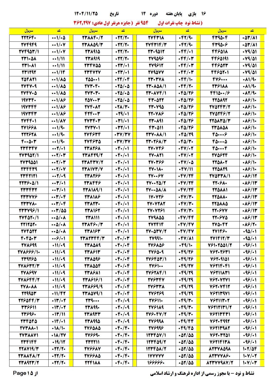 قابل توجه نمایندگان عزیز آخرین مهلت ارسال فایل 16 تایی شماره 13 تا ساعت 15:20 روز جمعه 24 بهمن 1404 می باشد. با سپاس فراوان از همکاری شما آلبوم دیجیتال مسابقه 13 تعداد کل شرکت کنندگان 16005 جمع کل فروش 461.102.085 لینک دانلود آلبوم دیجیتال مسابقه لیست برگشتی جهت دریافت لیست پی دی اف از امکانات آلبوم تعداد بازیهای انجام شده: 16 بازی |
