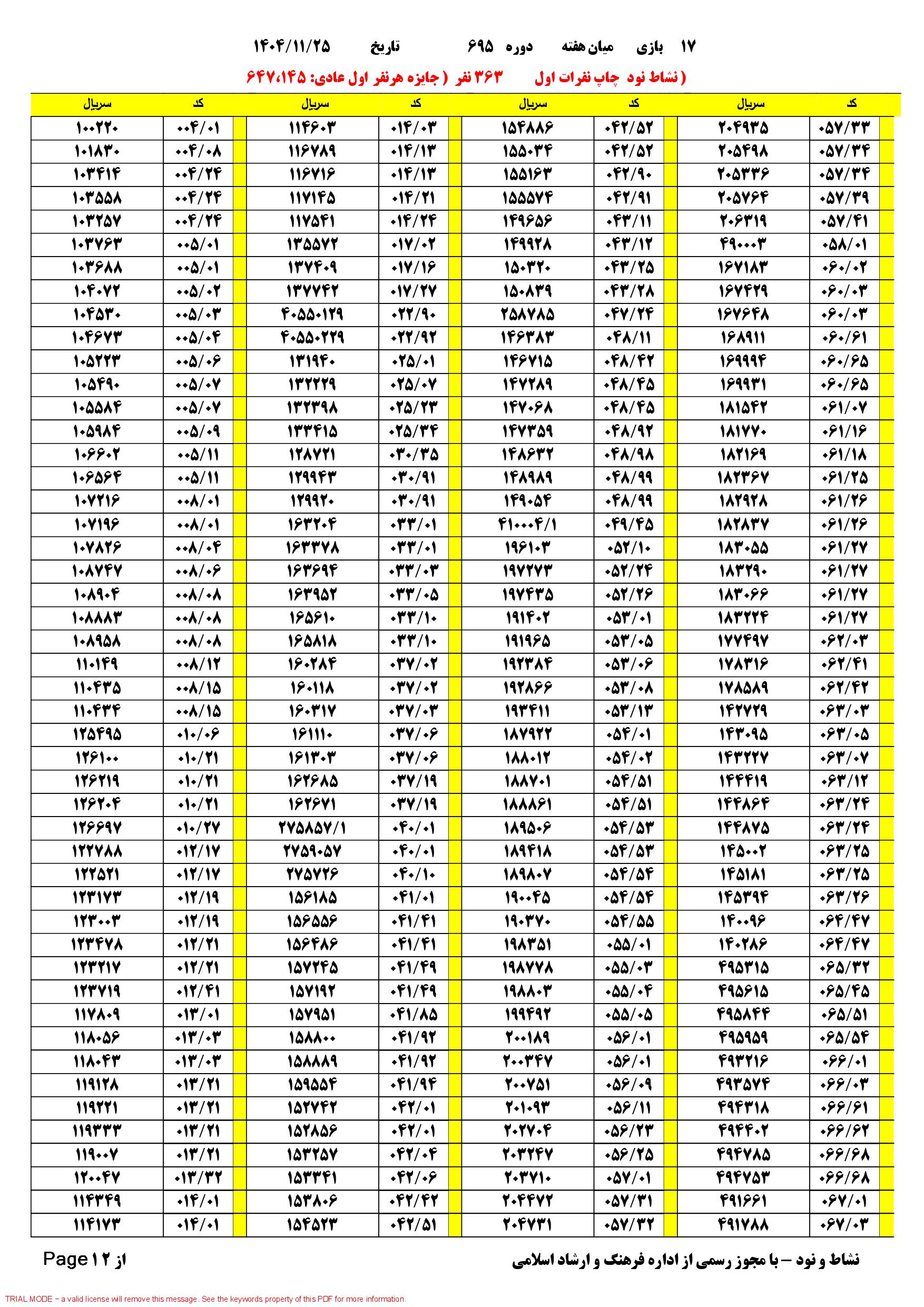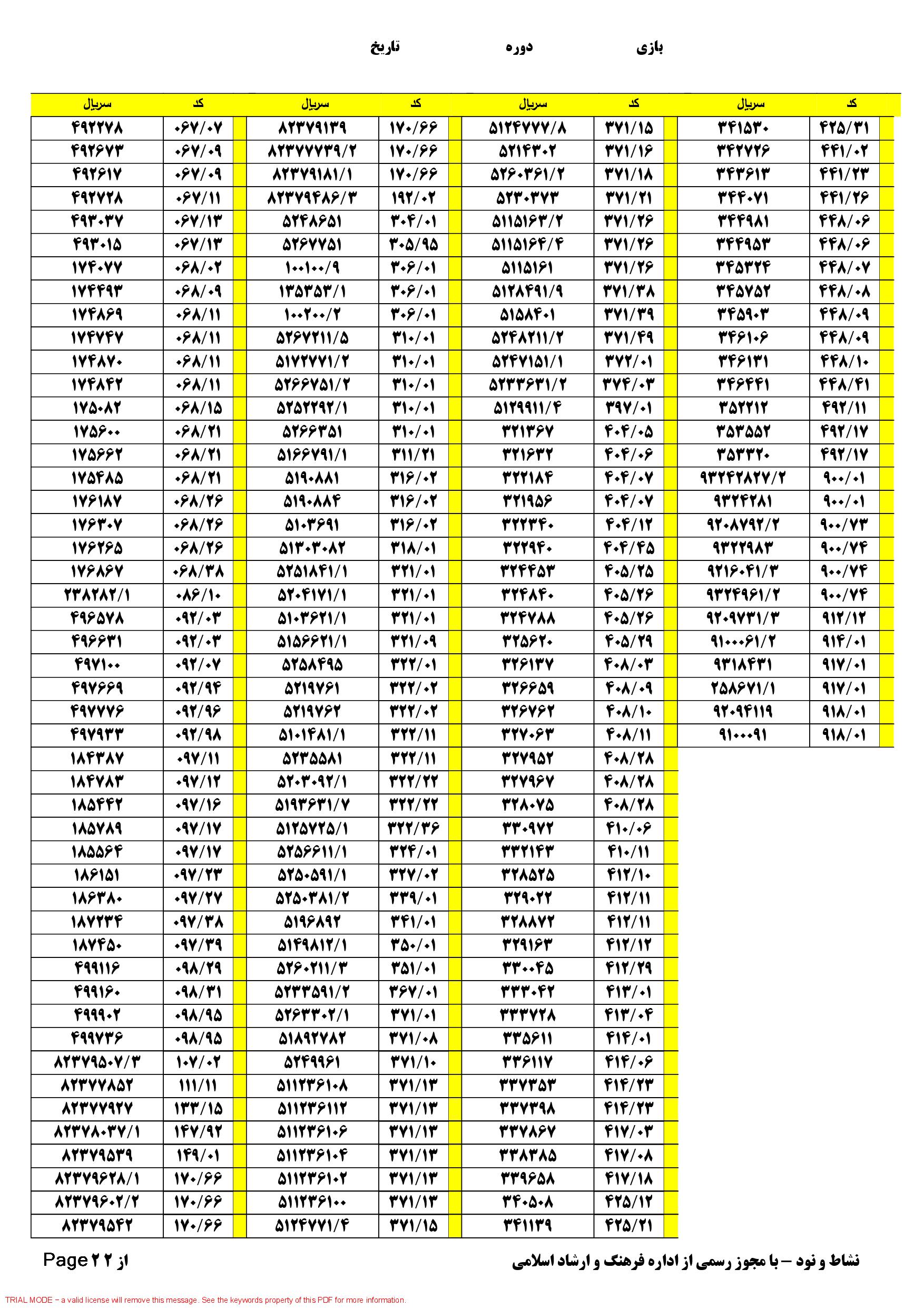 | دانلود فتوکل و نتایج 17 بازی یاس نود شماره (694) |