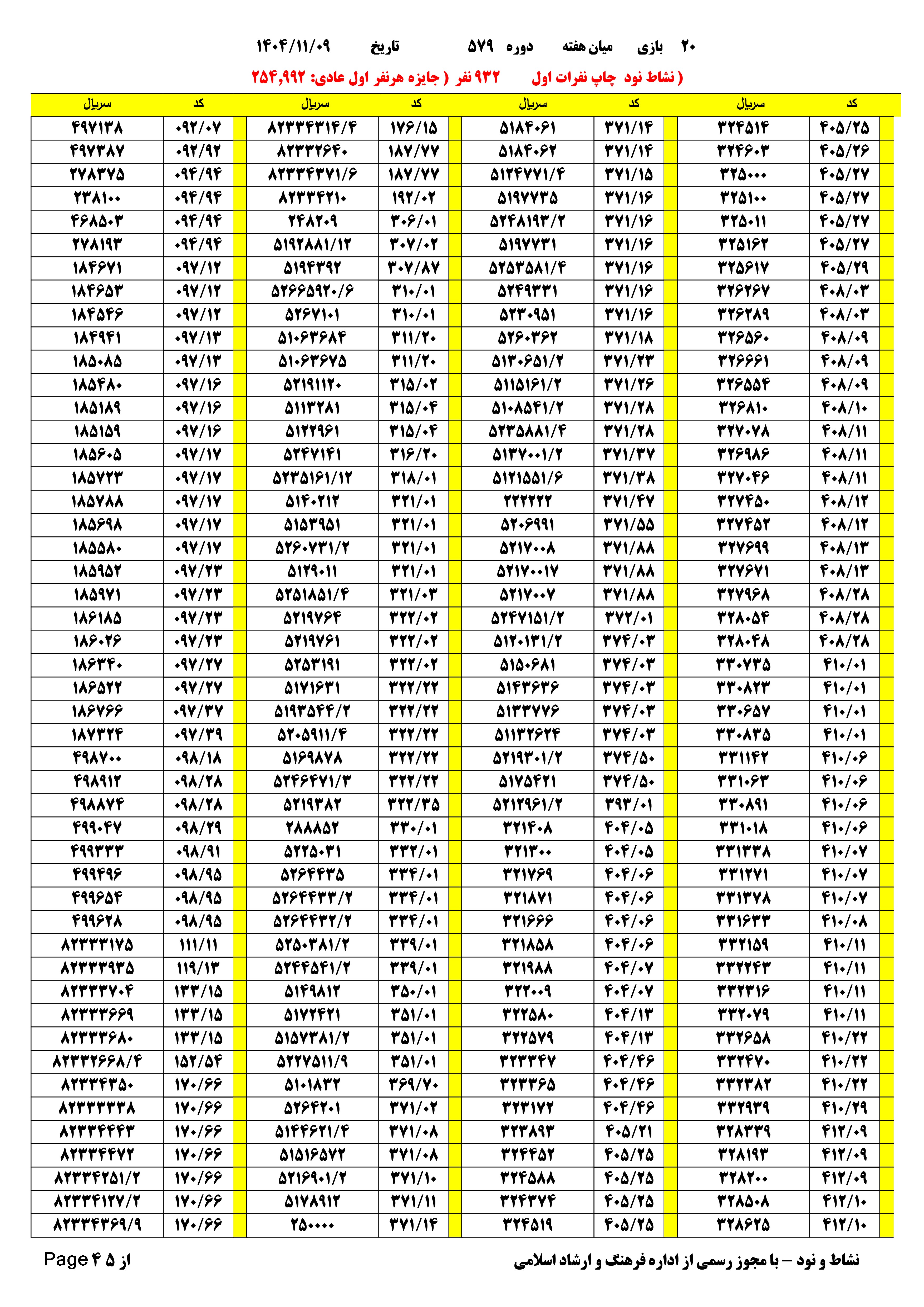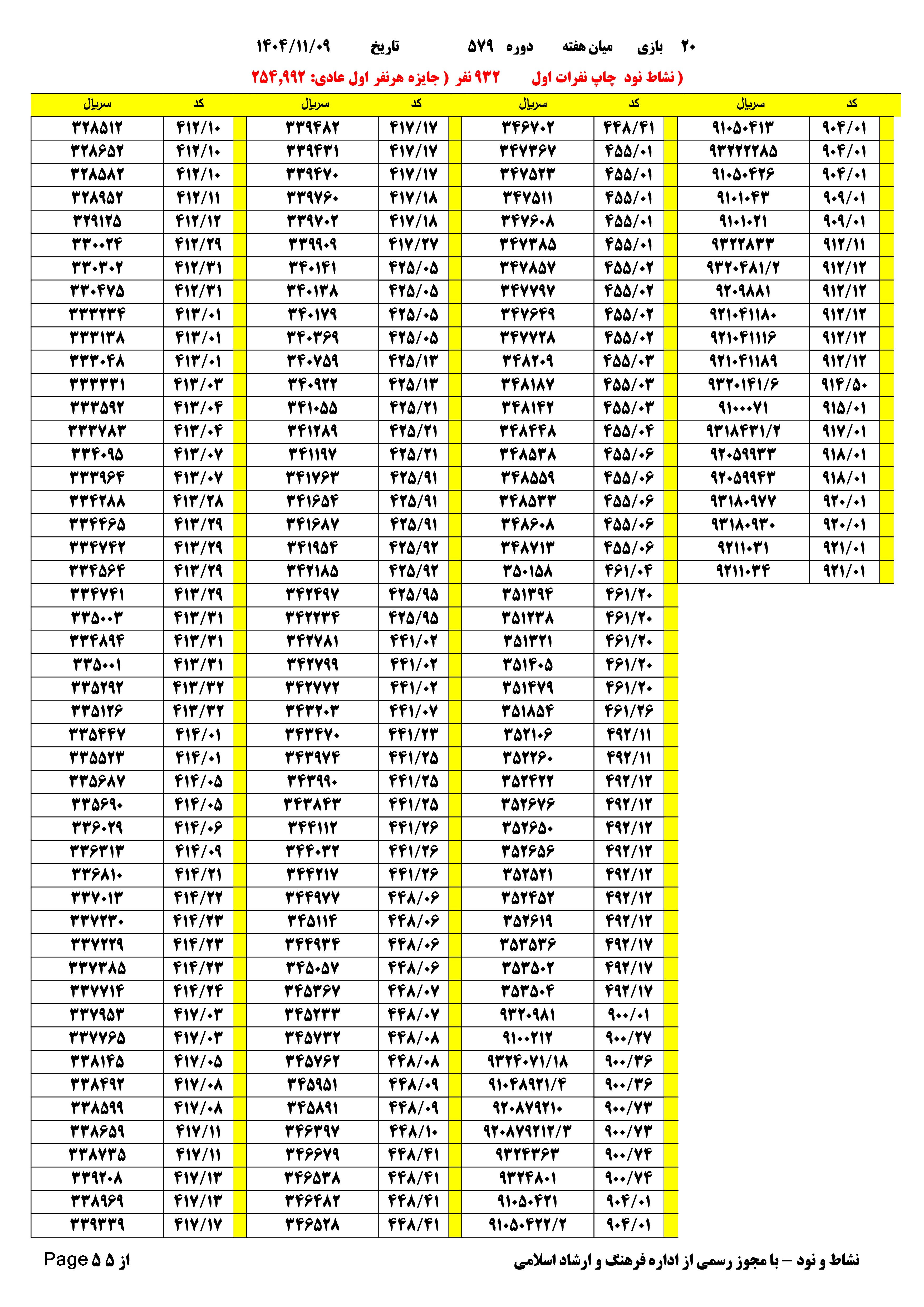 تعدادبرگه.های.بی.خطا 932 مبلغ.هدیه نفرات.اول 254.992