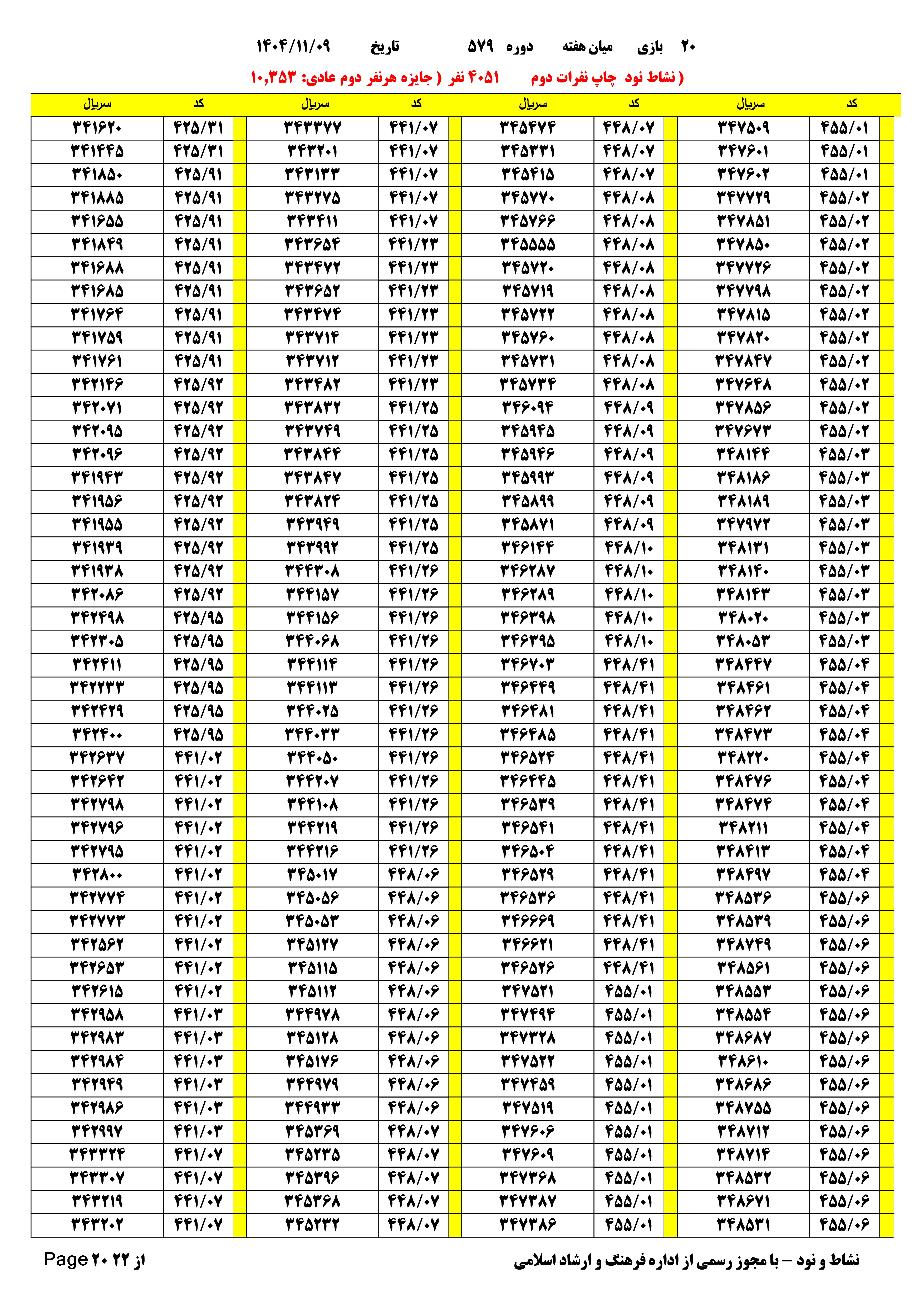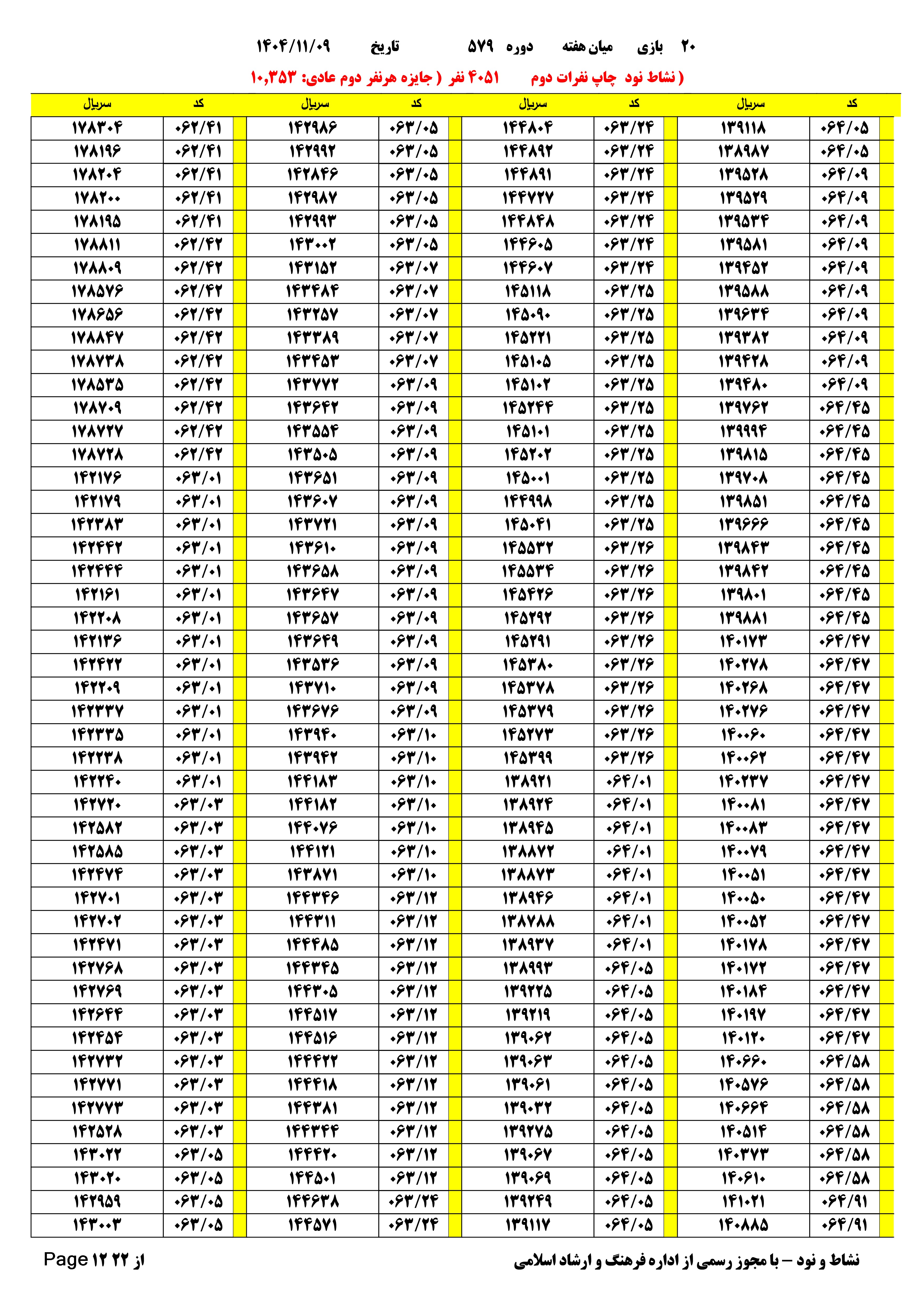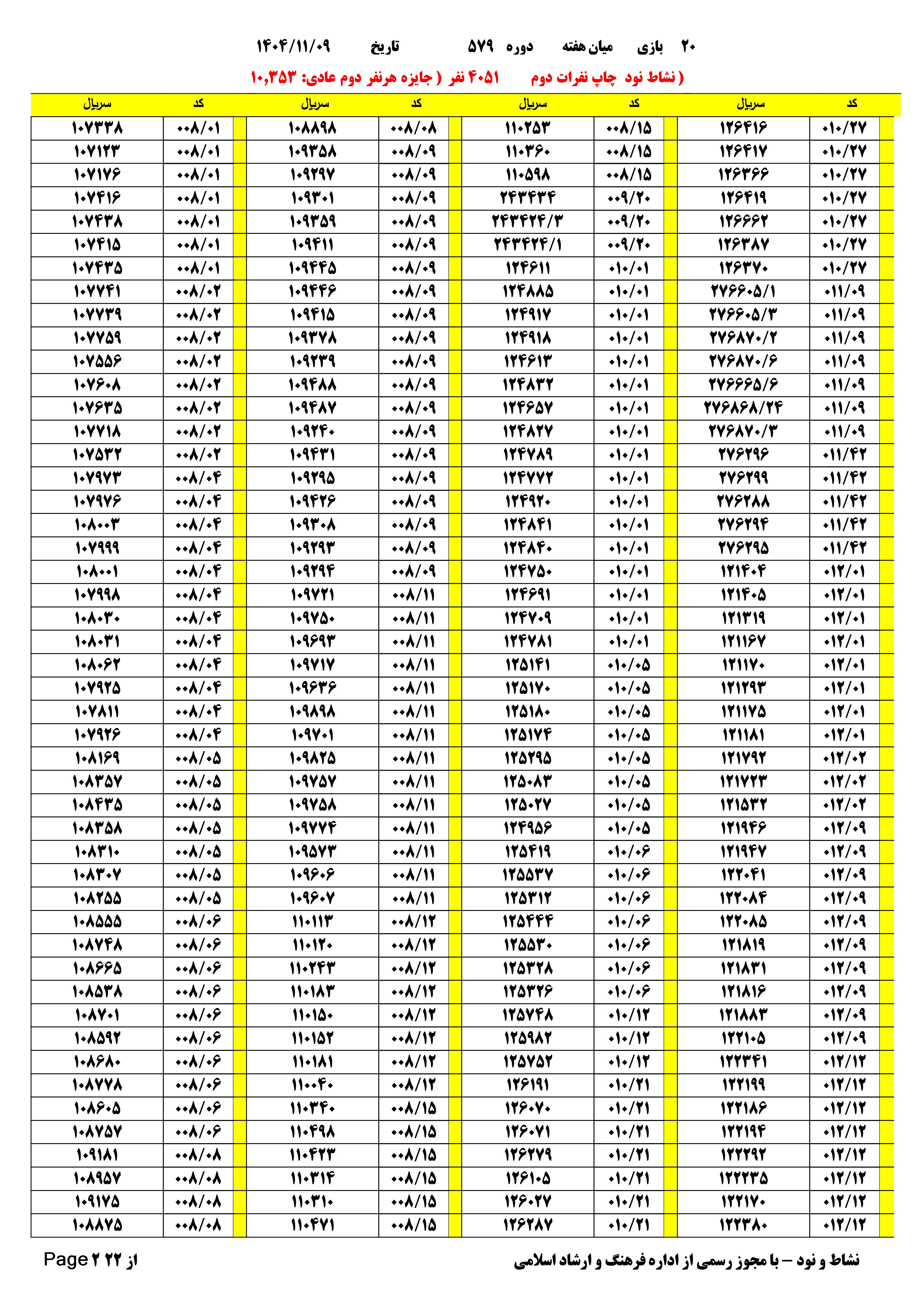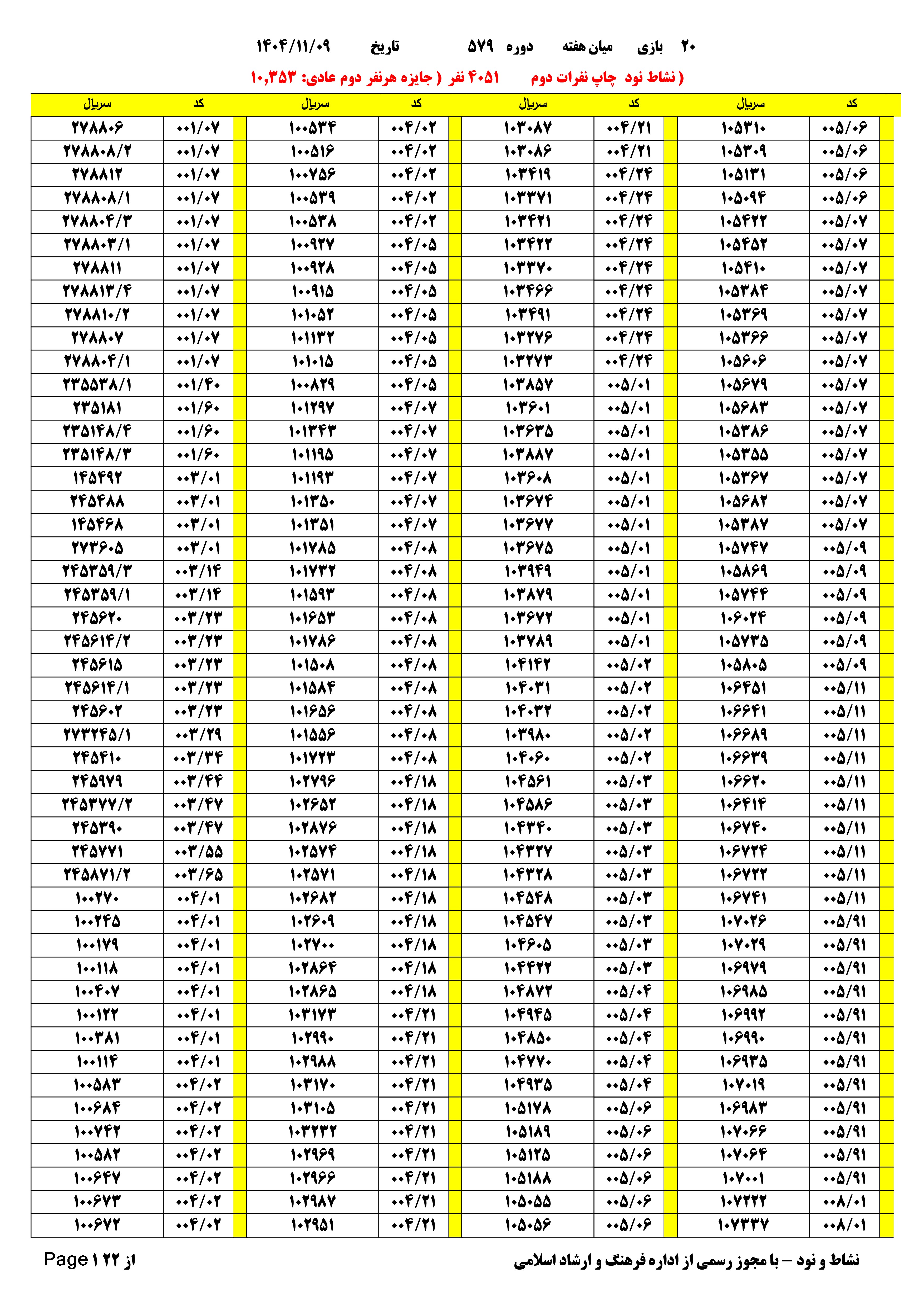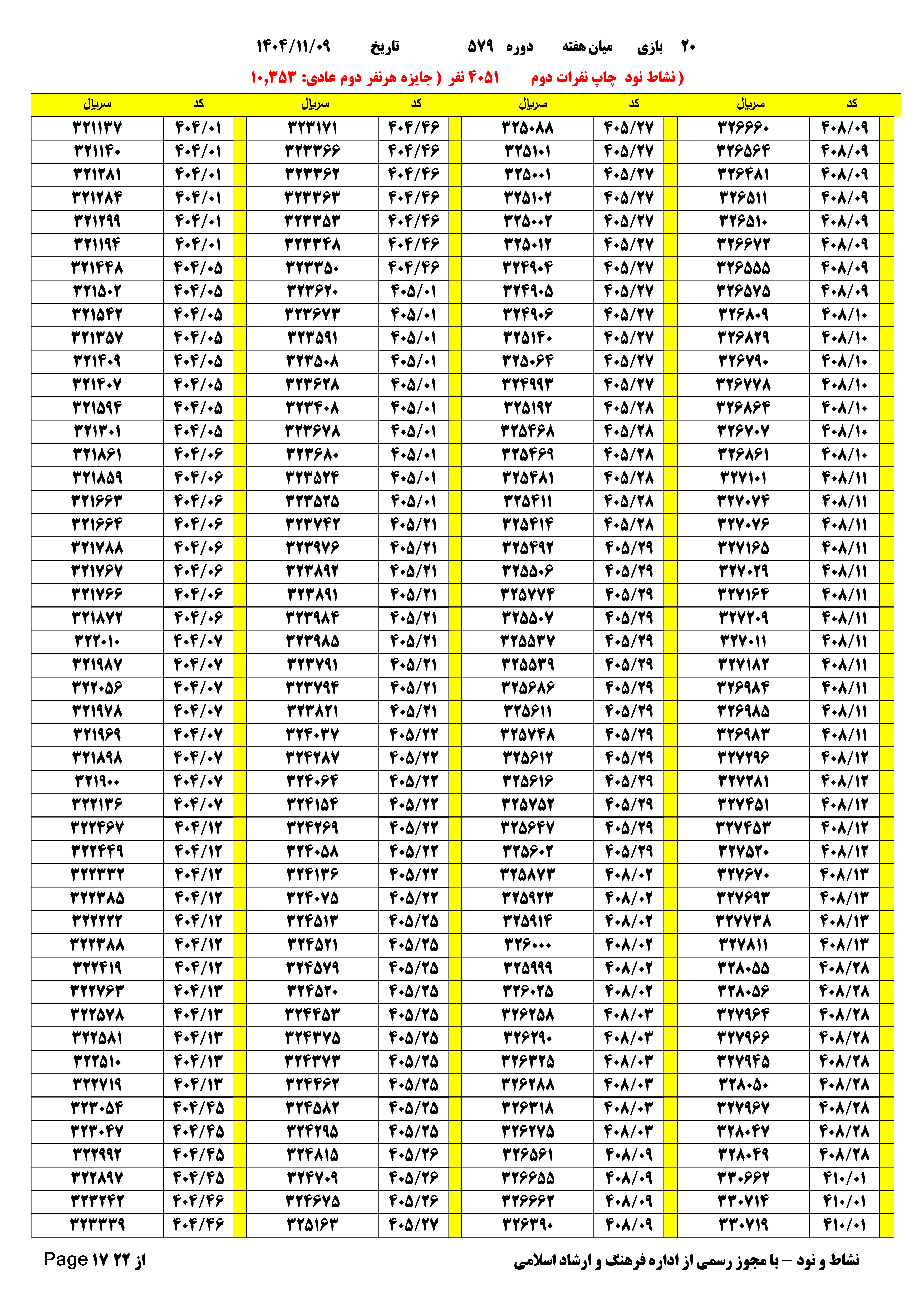 تعدادبرگه های یک خطا 4051 مبلغ.هدیه.نفرات.دوم 10.353