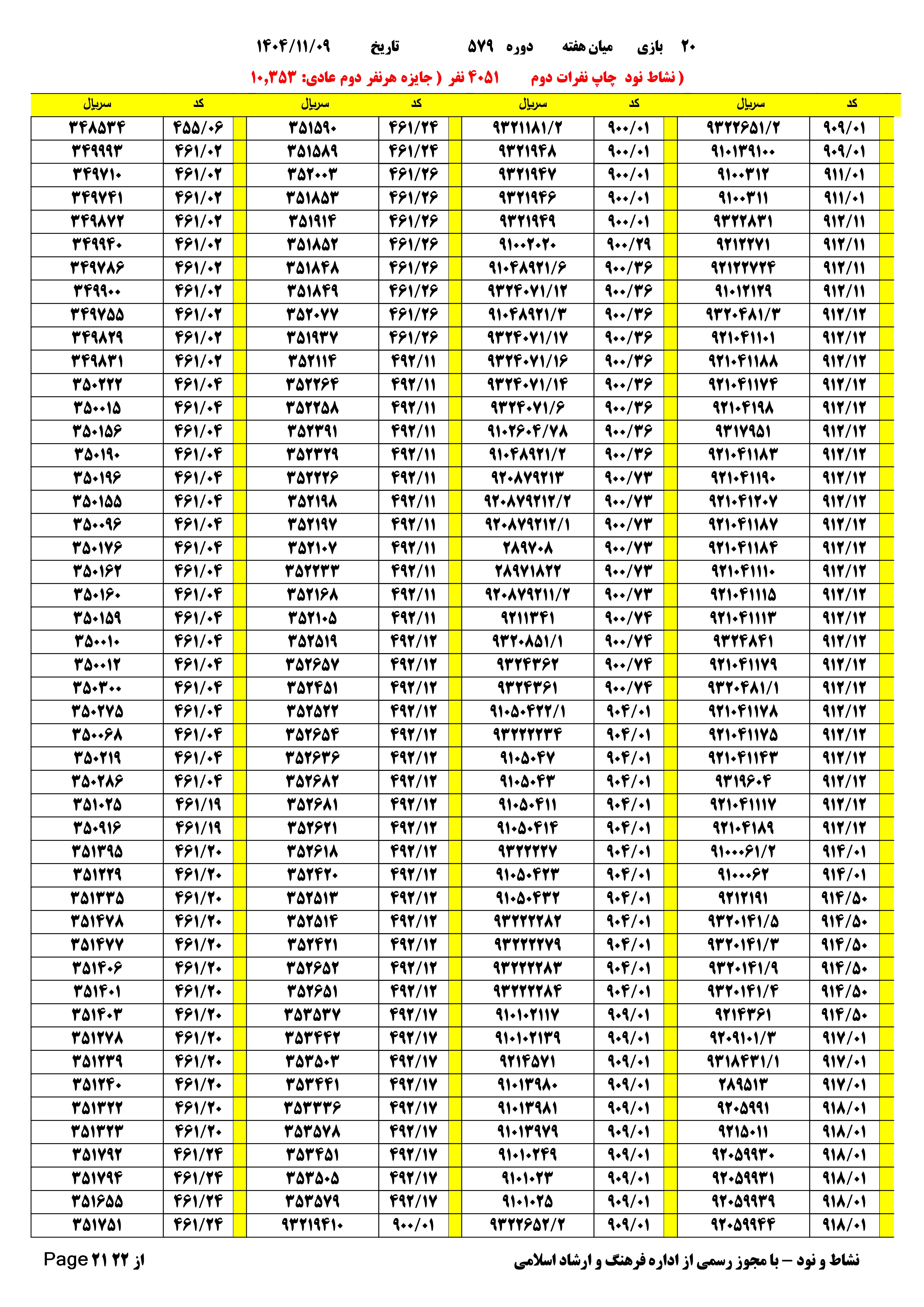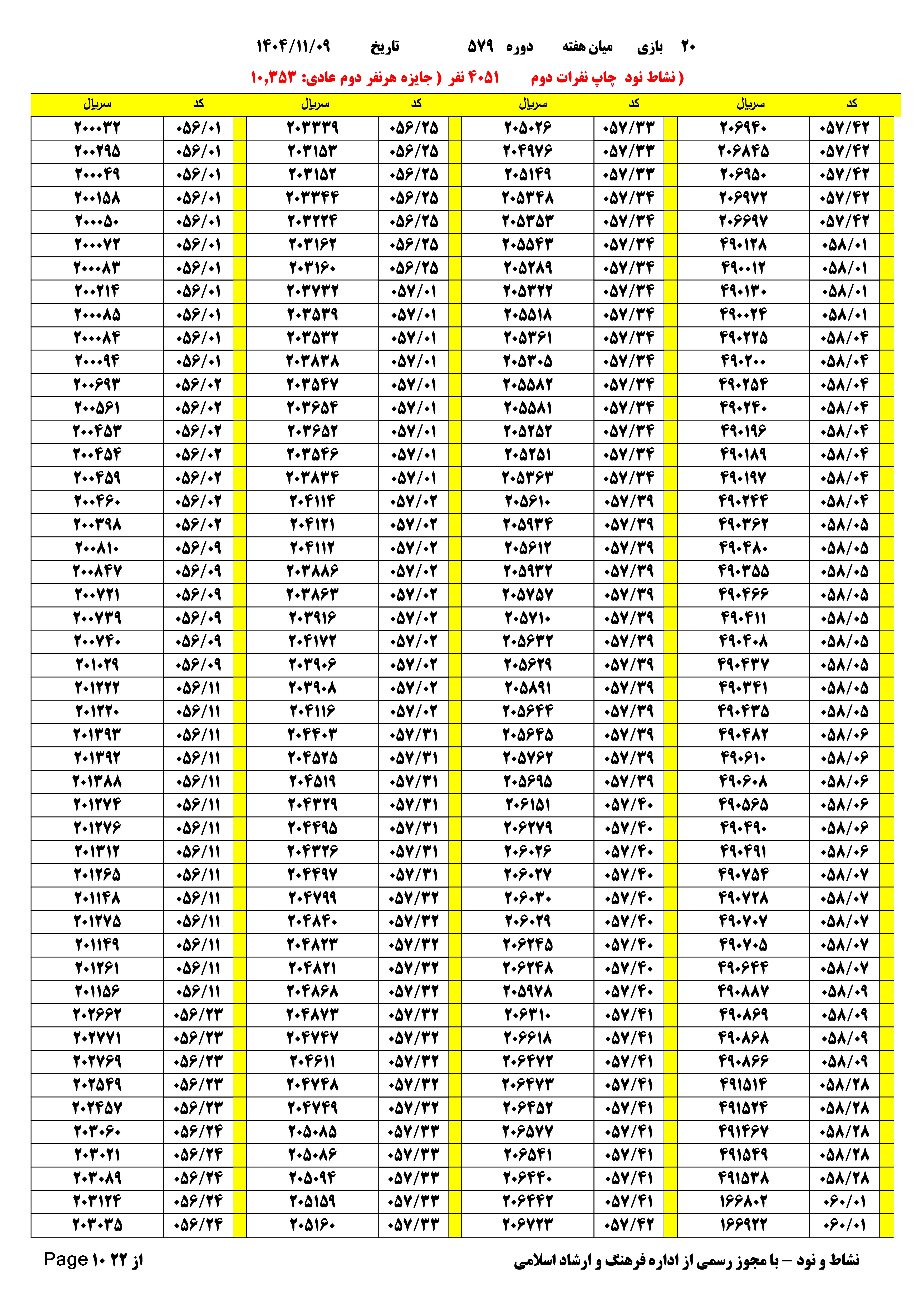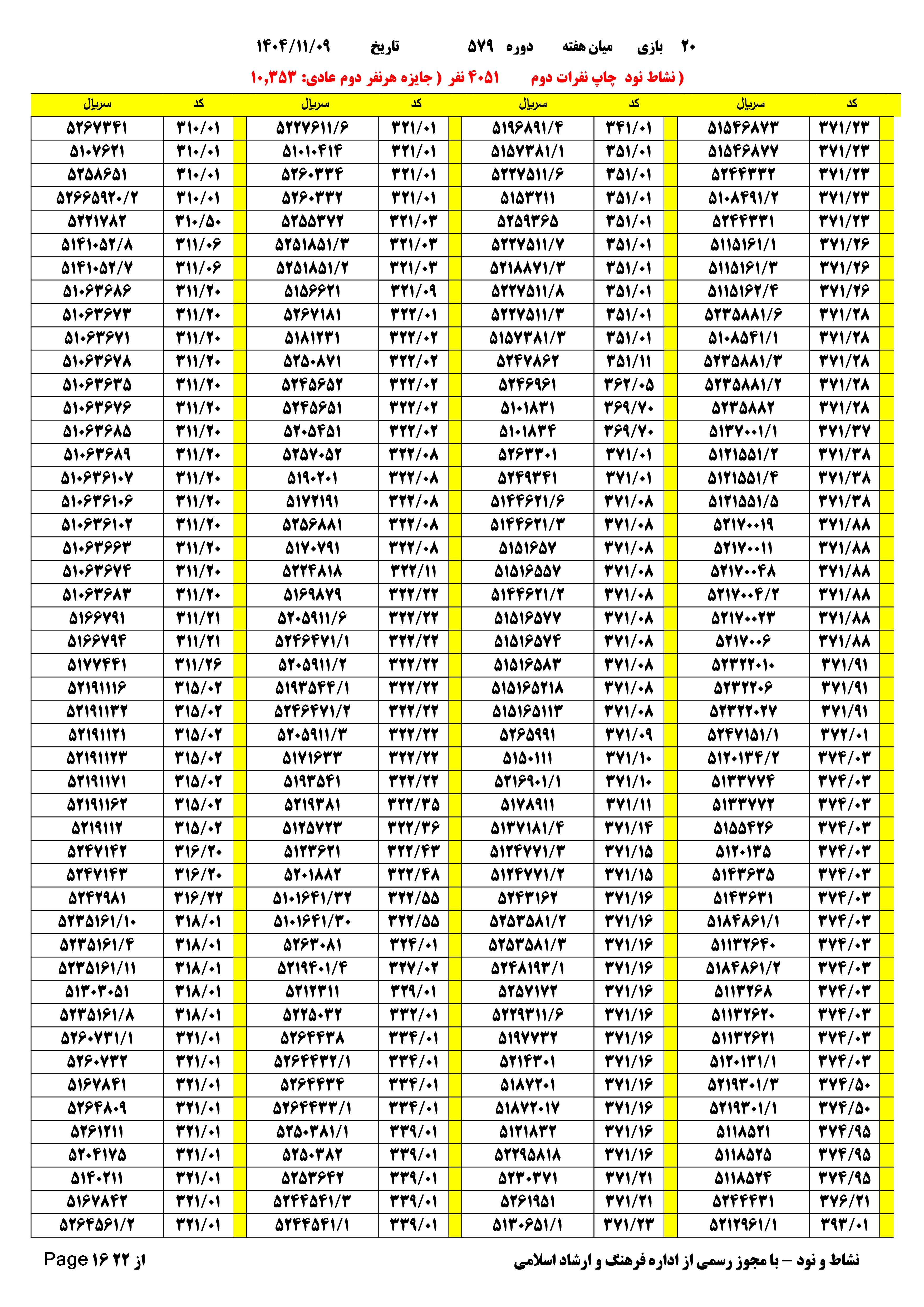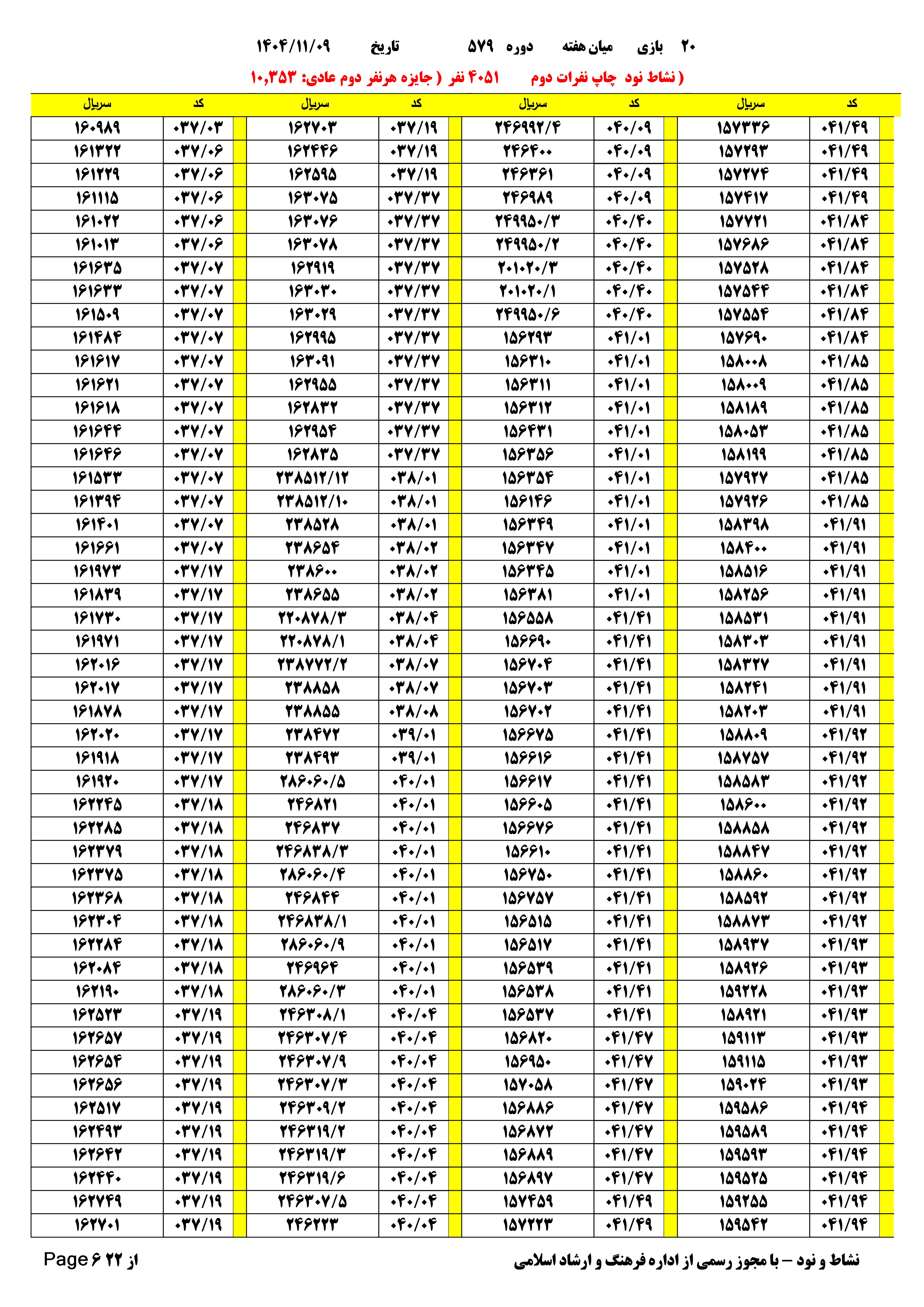 تعدادبرگه های یک خطا 4051 مبلغ.هدیه.نفرات.دوم 10.353