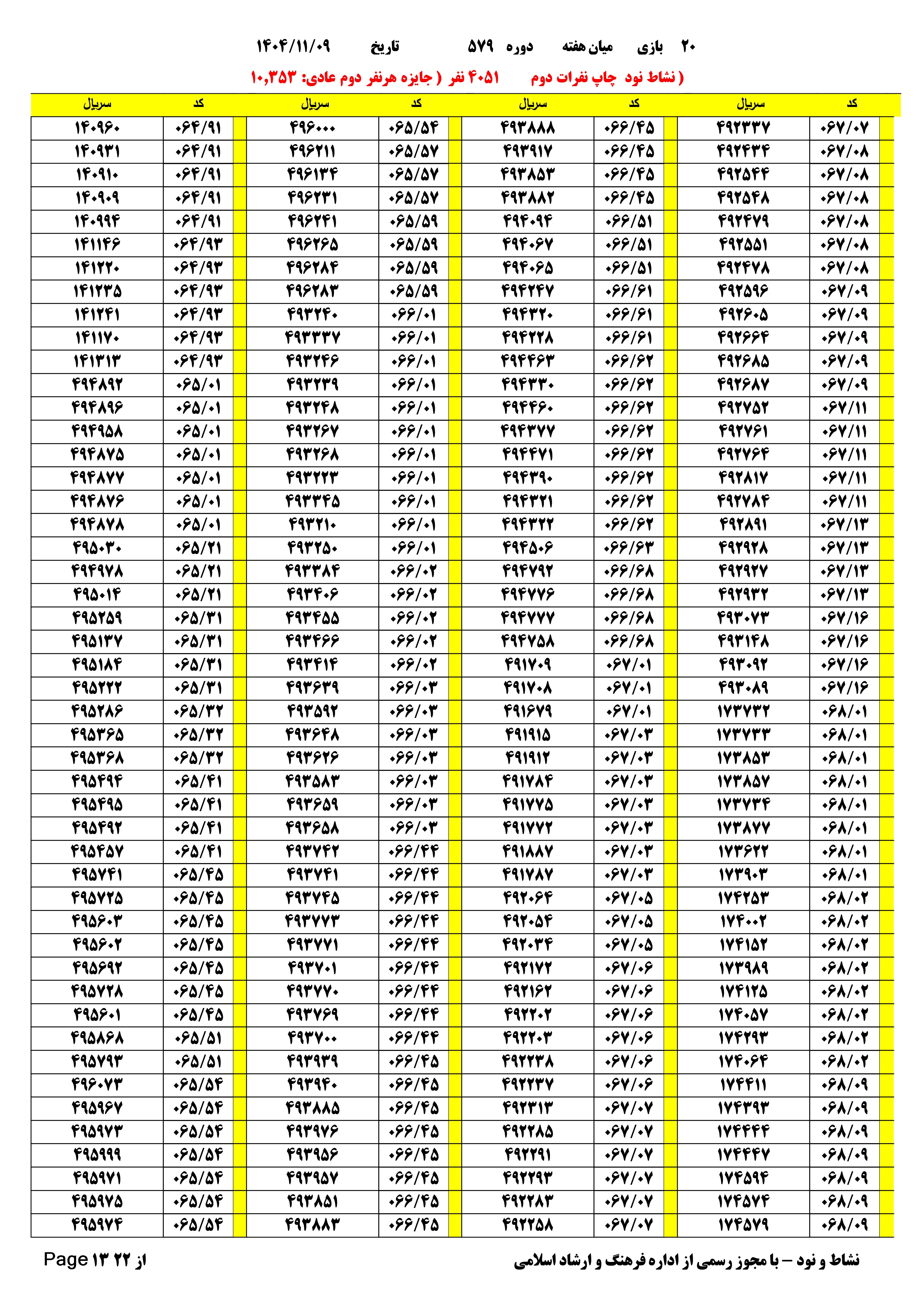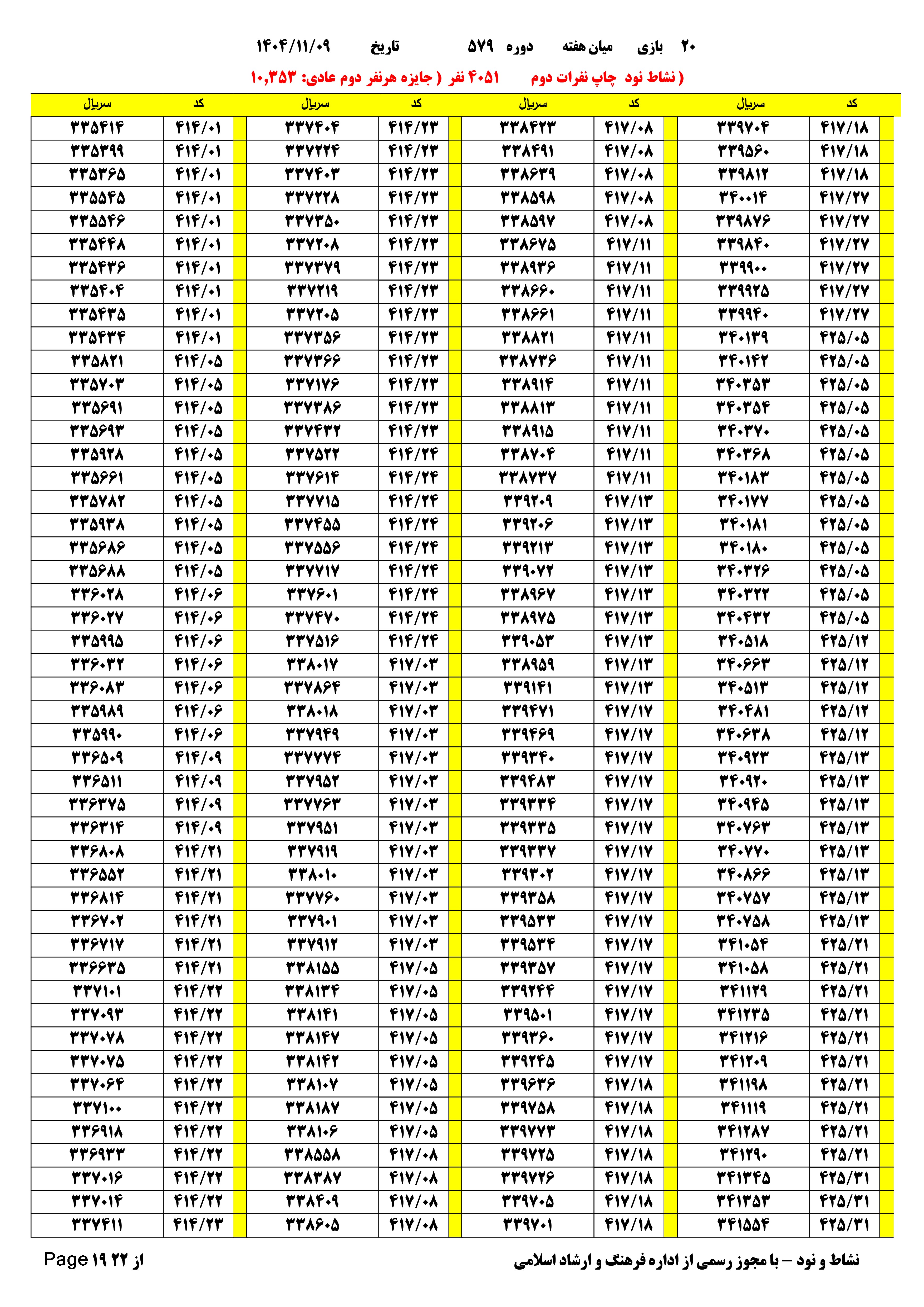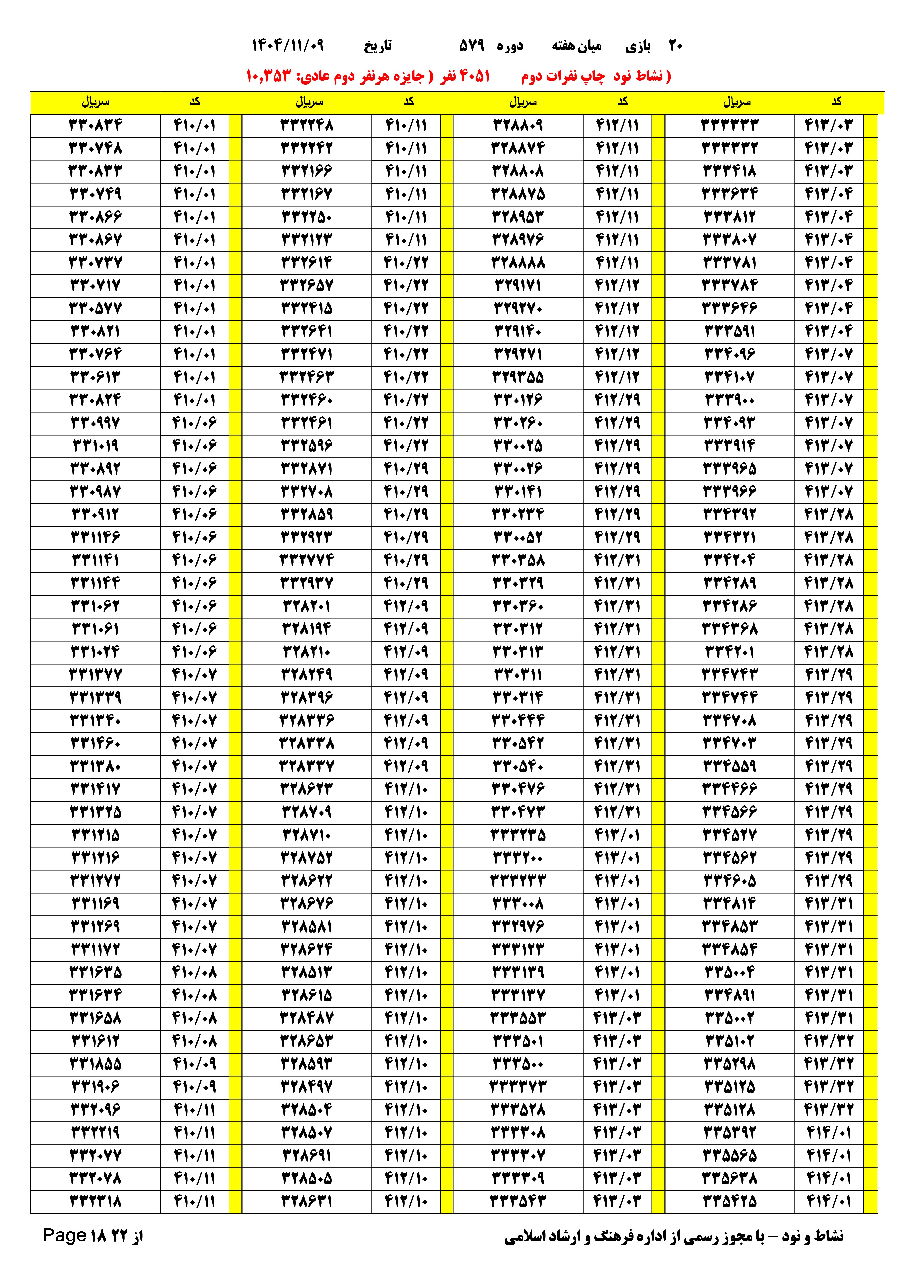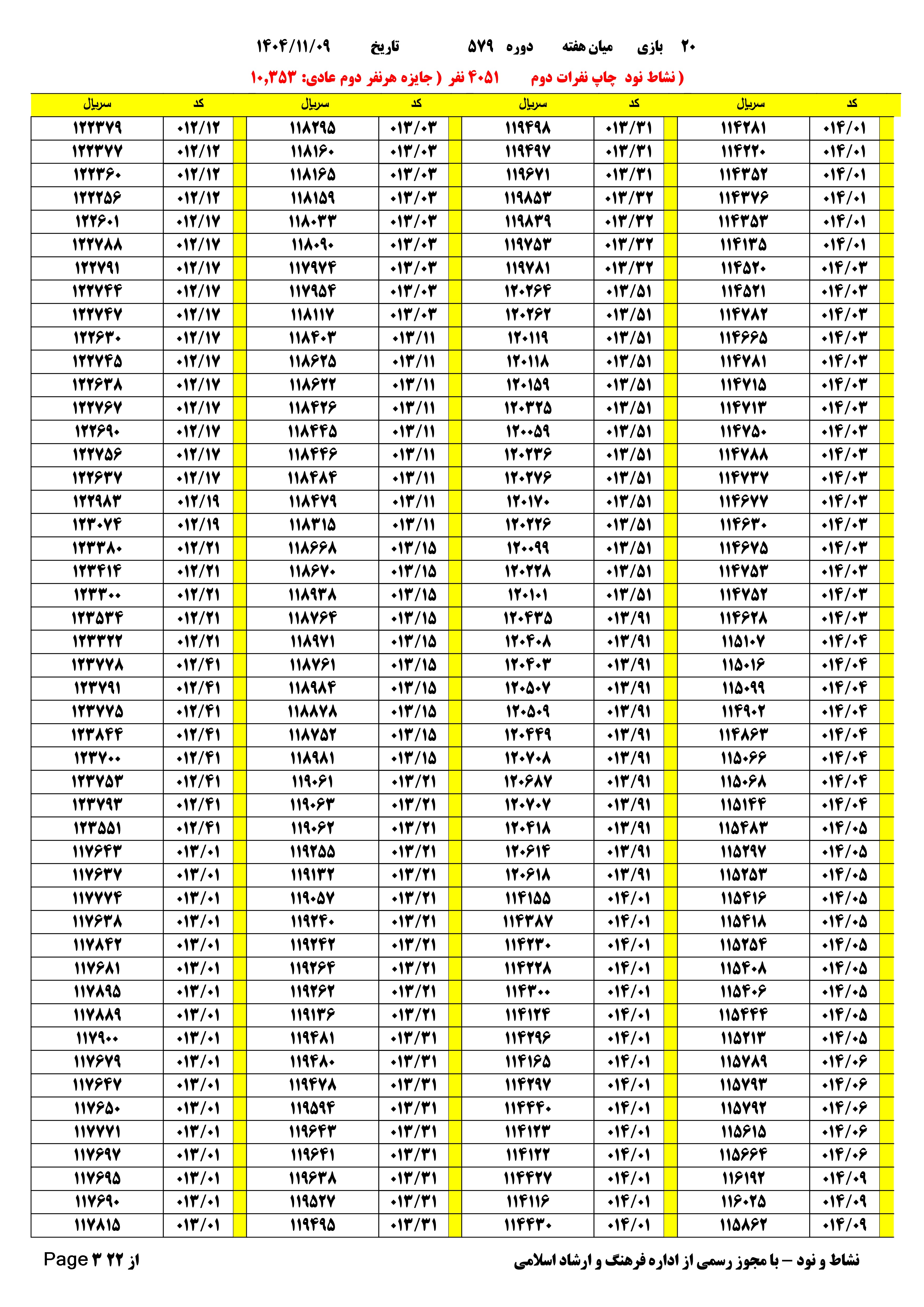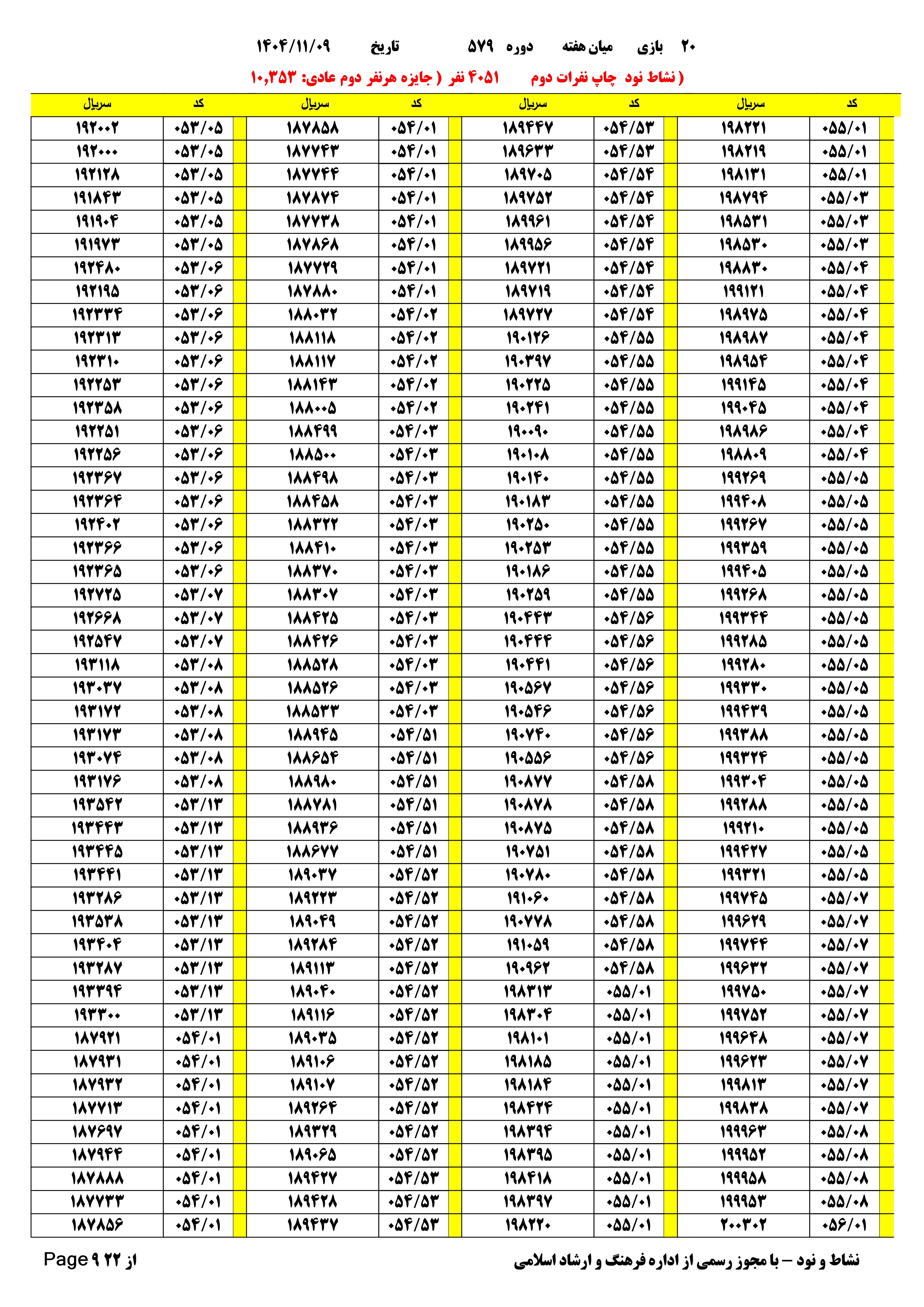 تعدادبرگه های یک خطا 4051 مبلغ.هدیه.نفرات.دوم 10.353