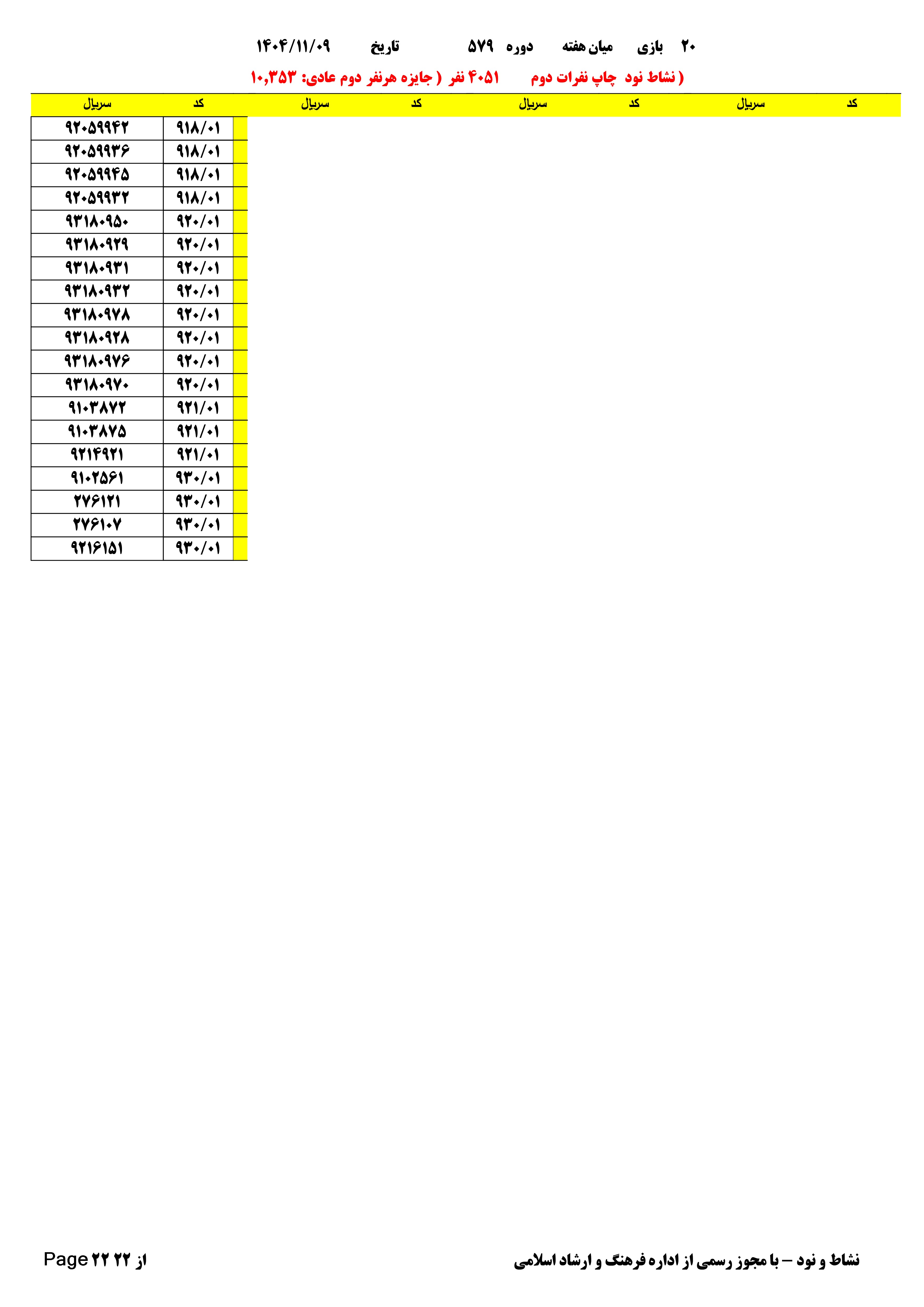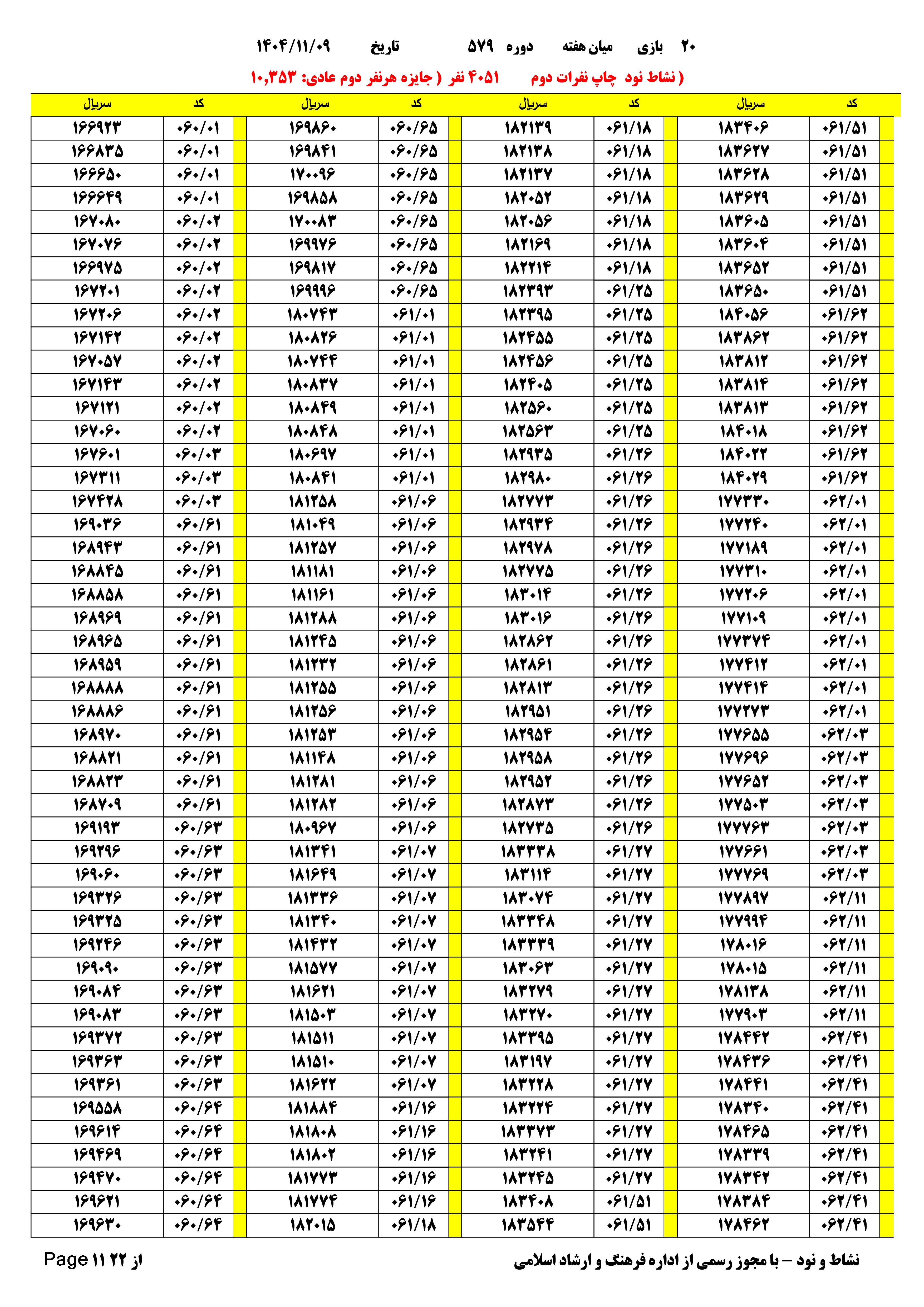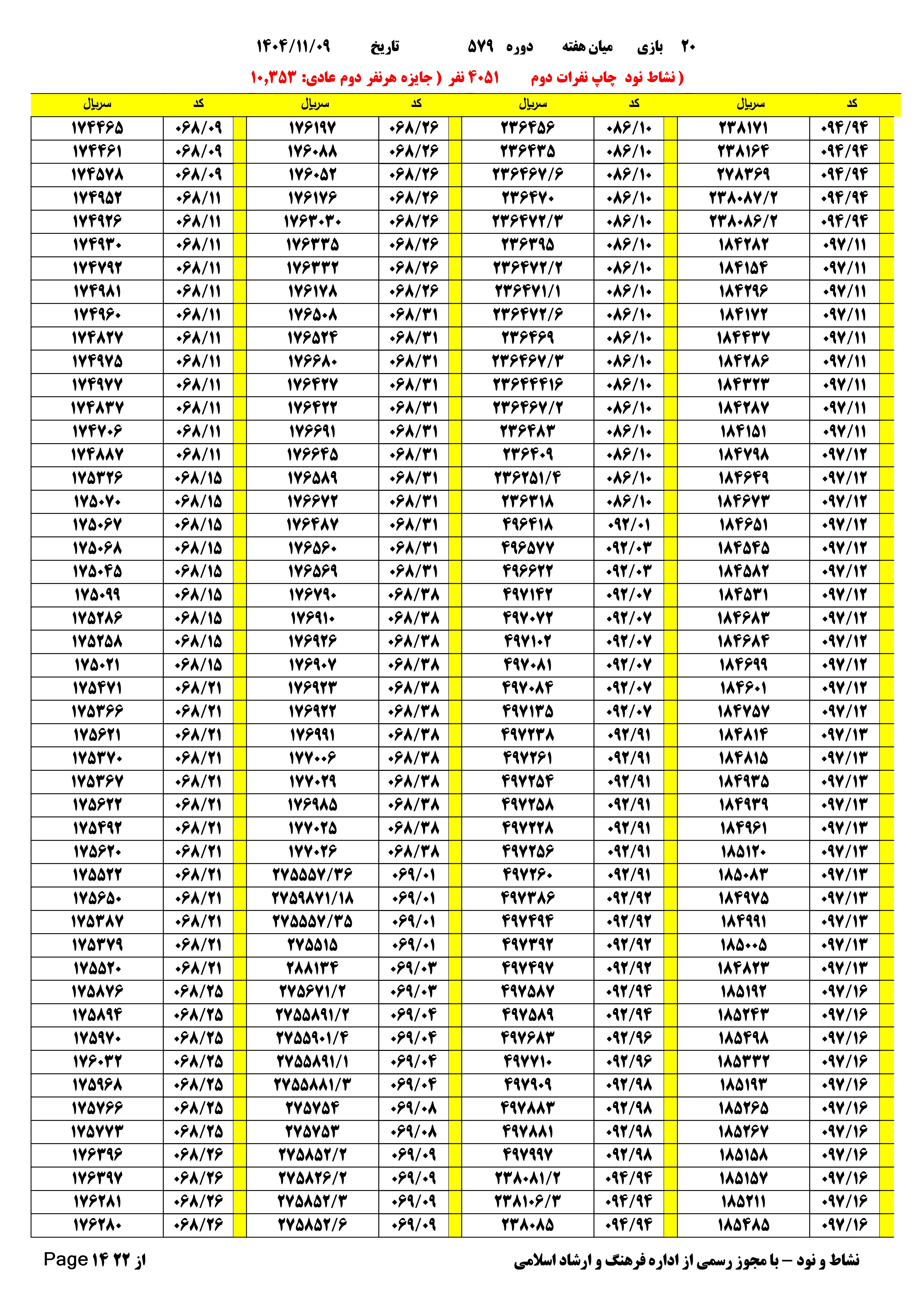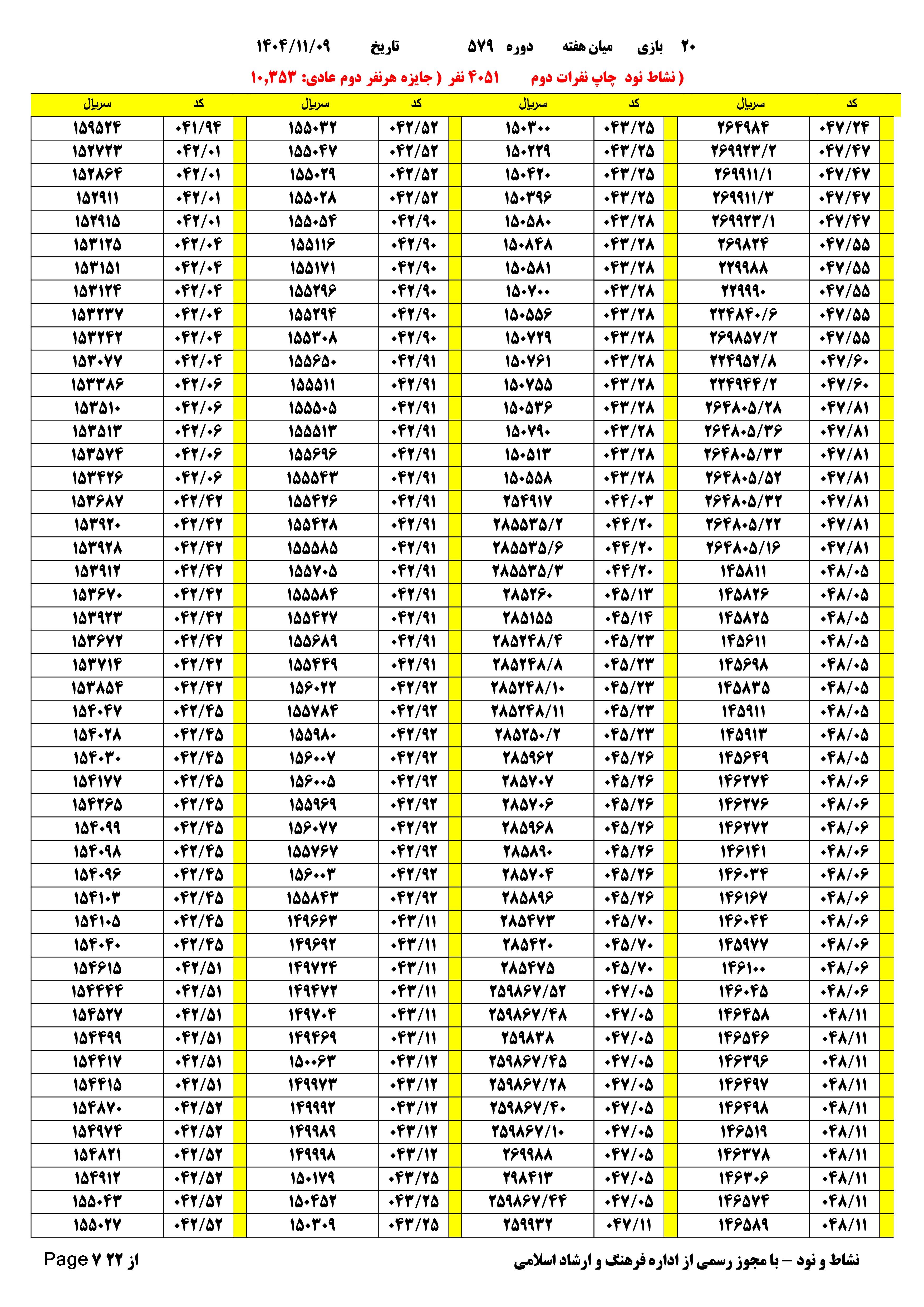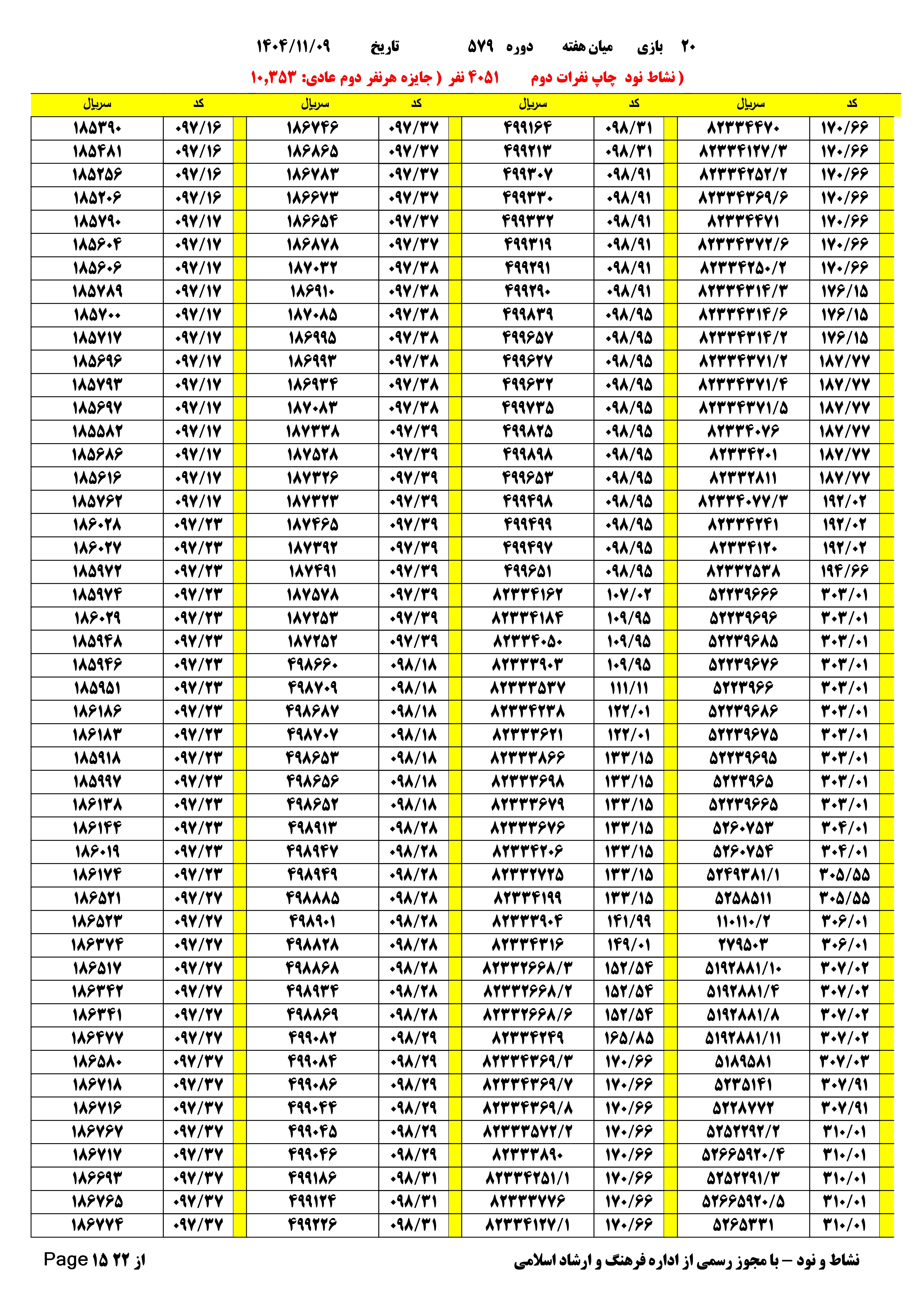 تعدادبرگه های یک خطا 4051 مبلغ.هدیه.نفرات.دوم 10.353