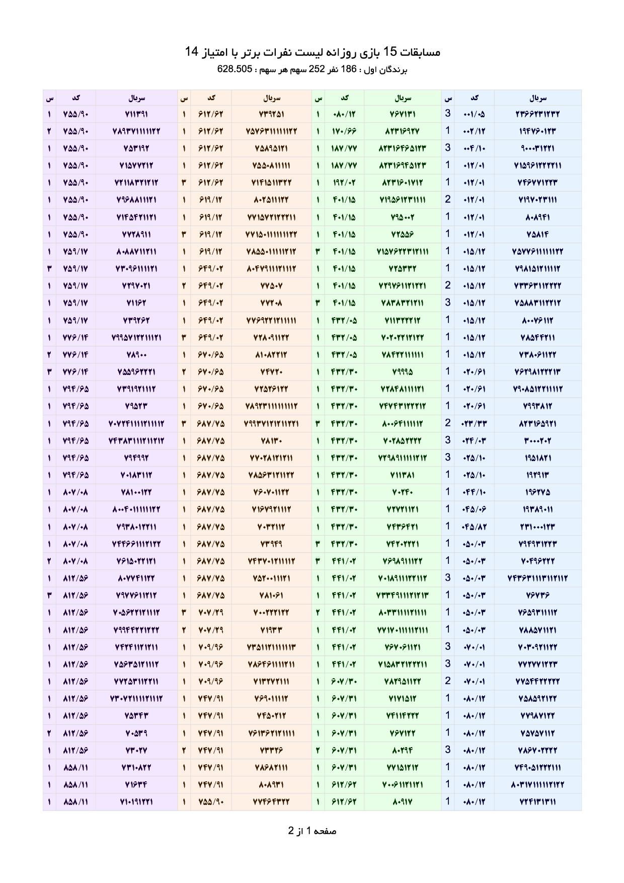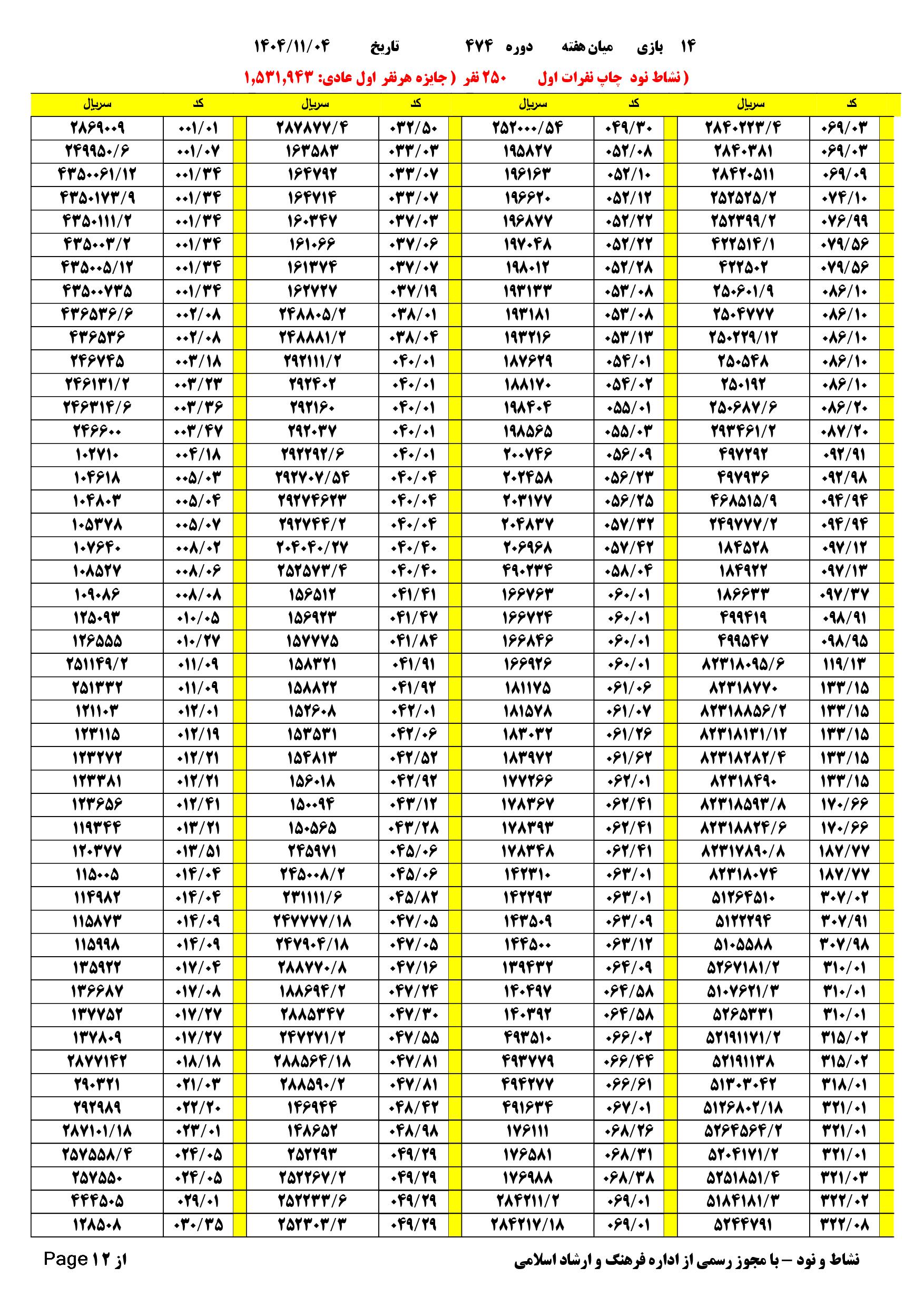 جدول دانلود فتوکل و نتایج 14 بازی روزانه شماره (473)