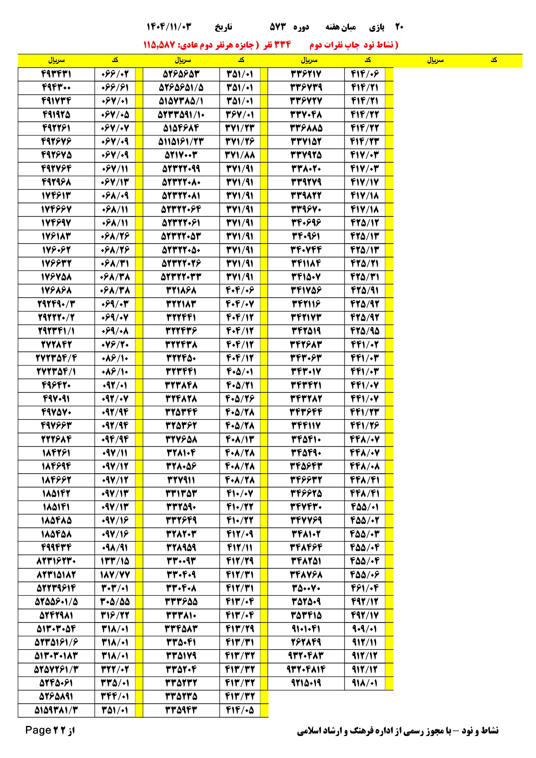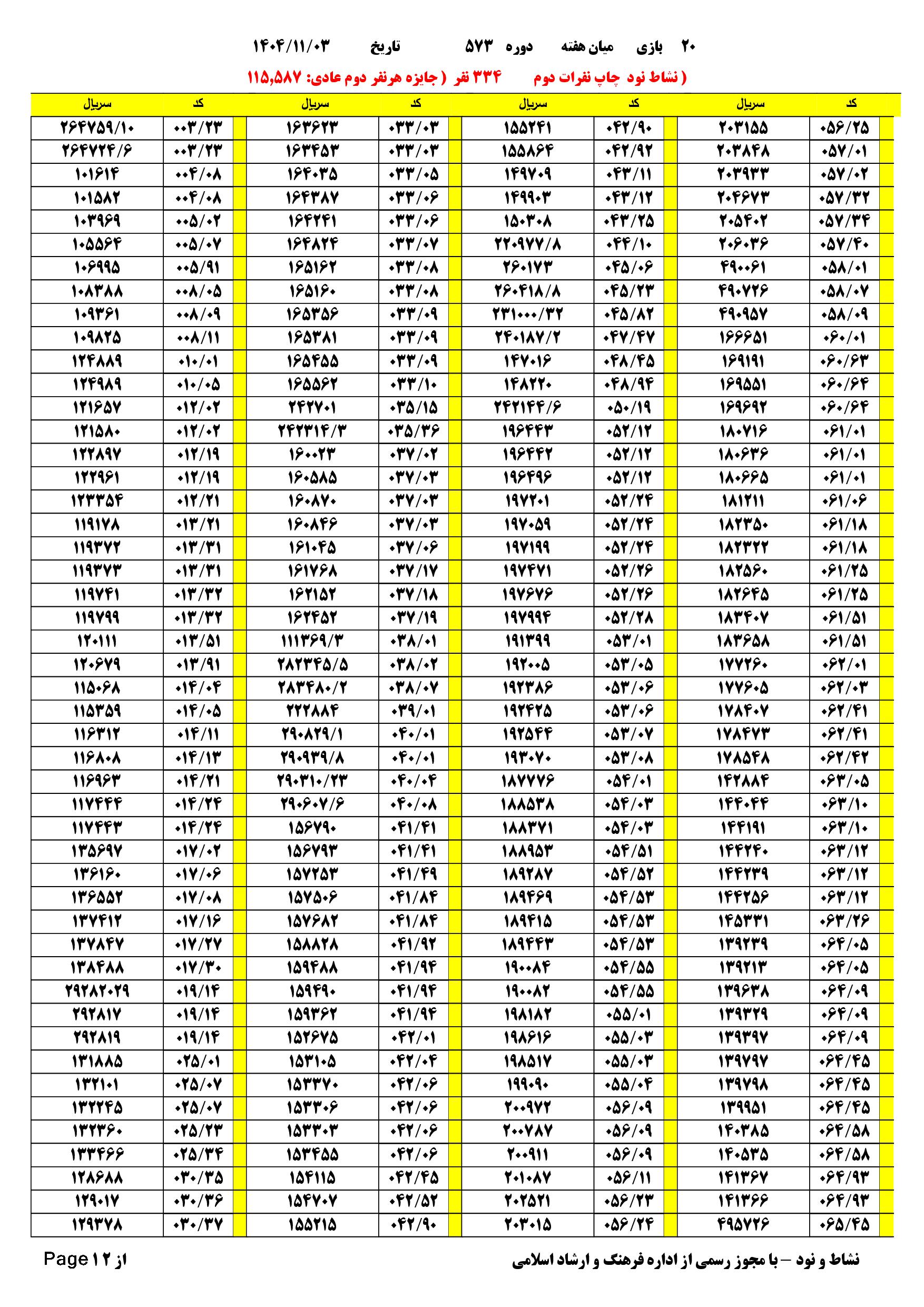 دانلود فتوکل و نتایج 17 بازی یاس نود شماره (673)