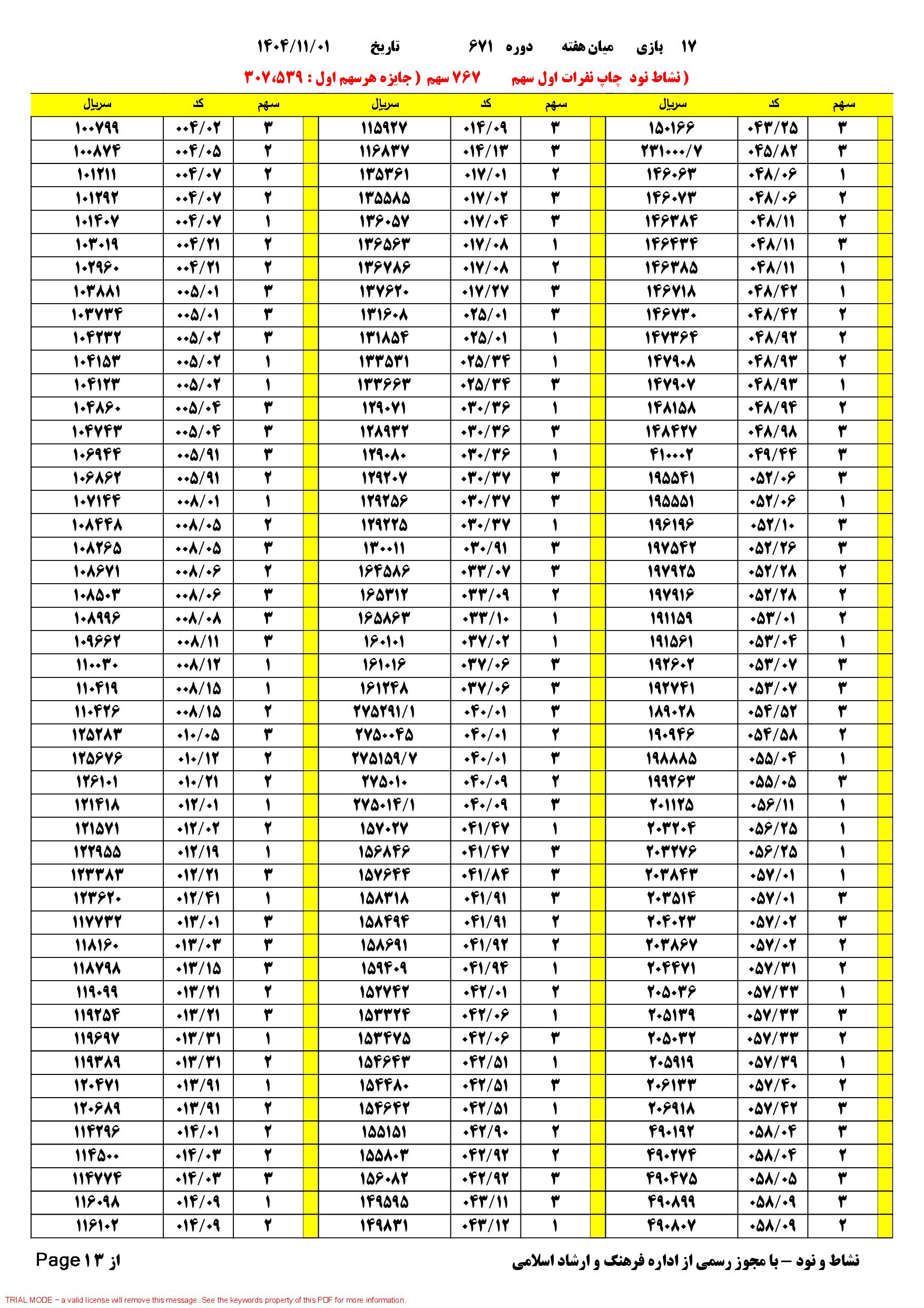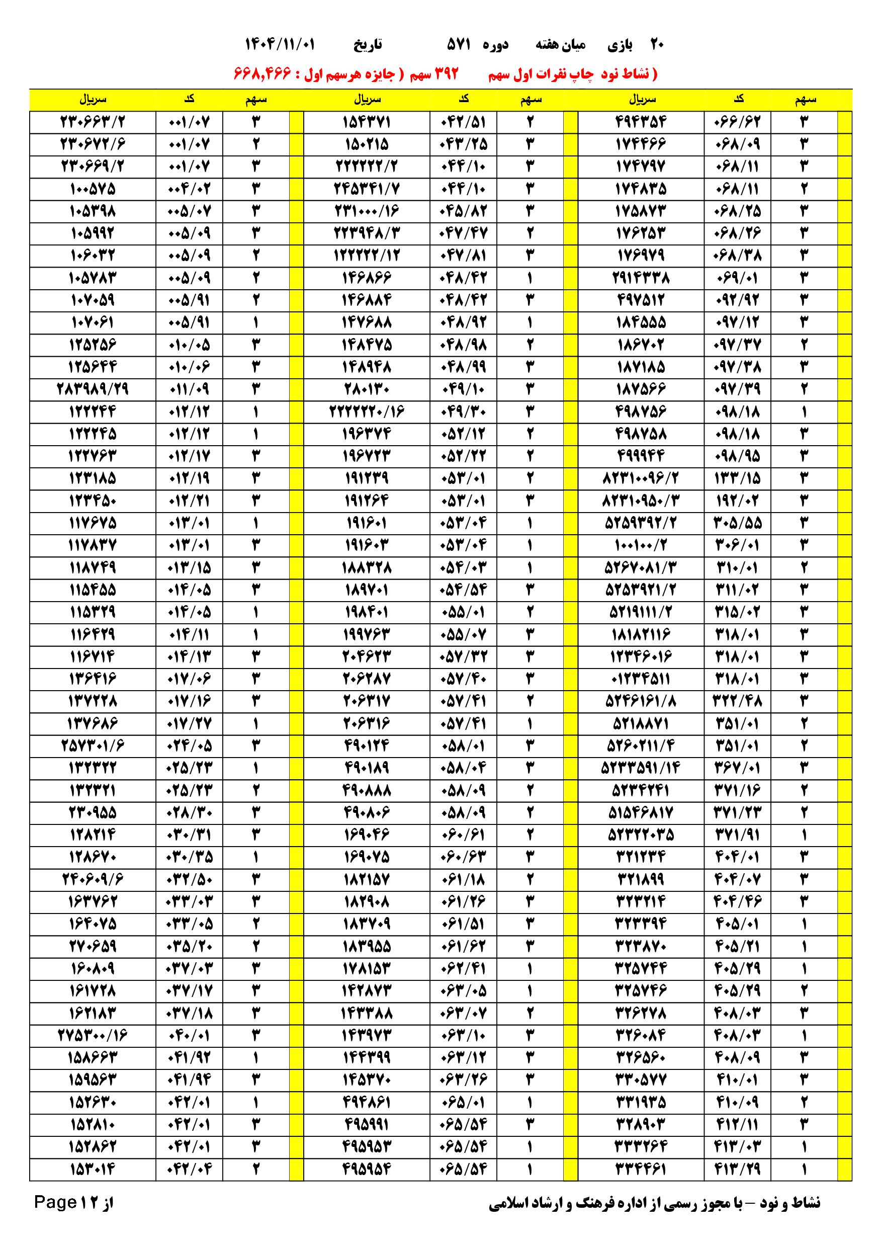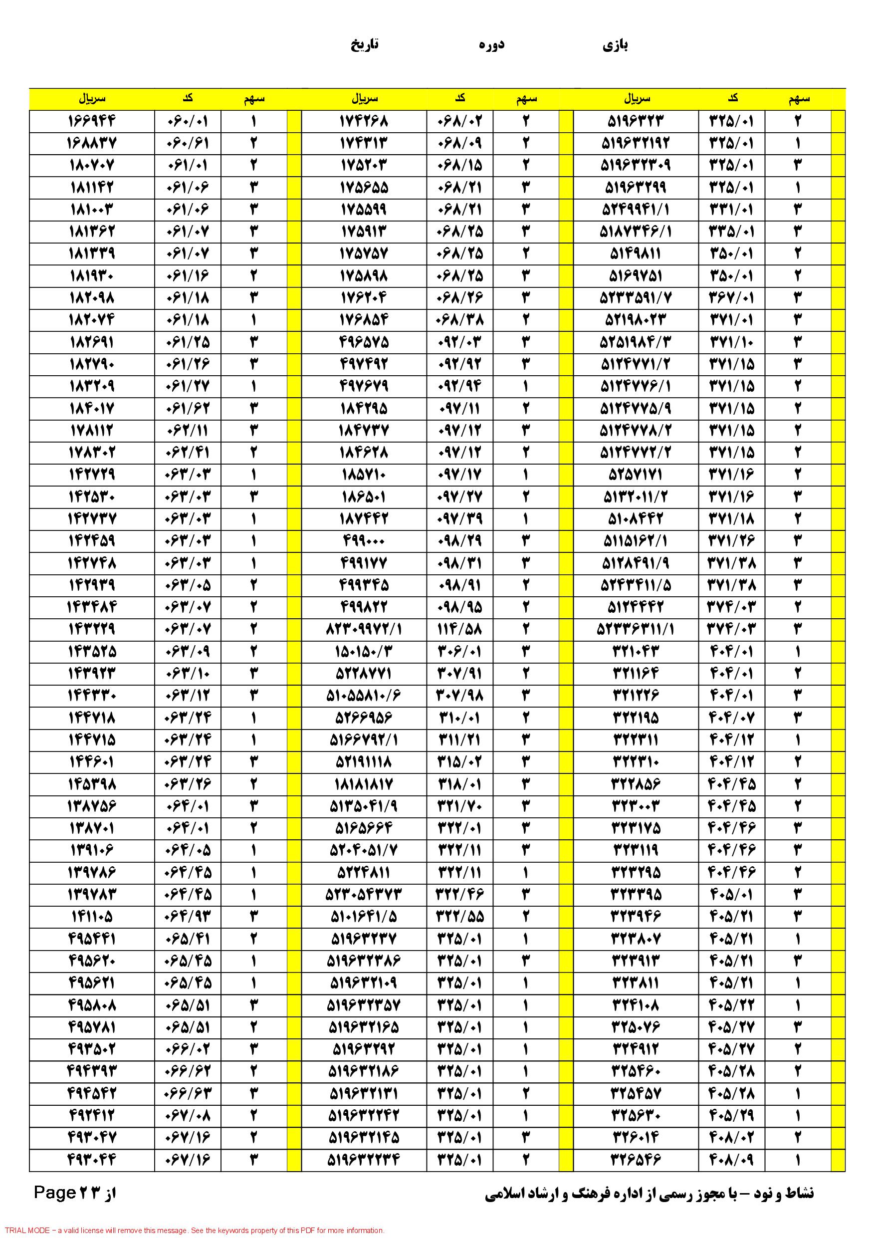 تعدادبرگه.های.بی.خطا 170 فرم 392 سهم مبلغ.هدیه نفرات.اول هر سهم 668.466