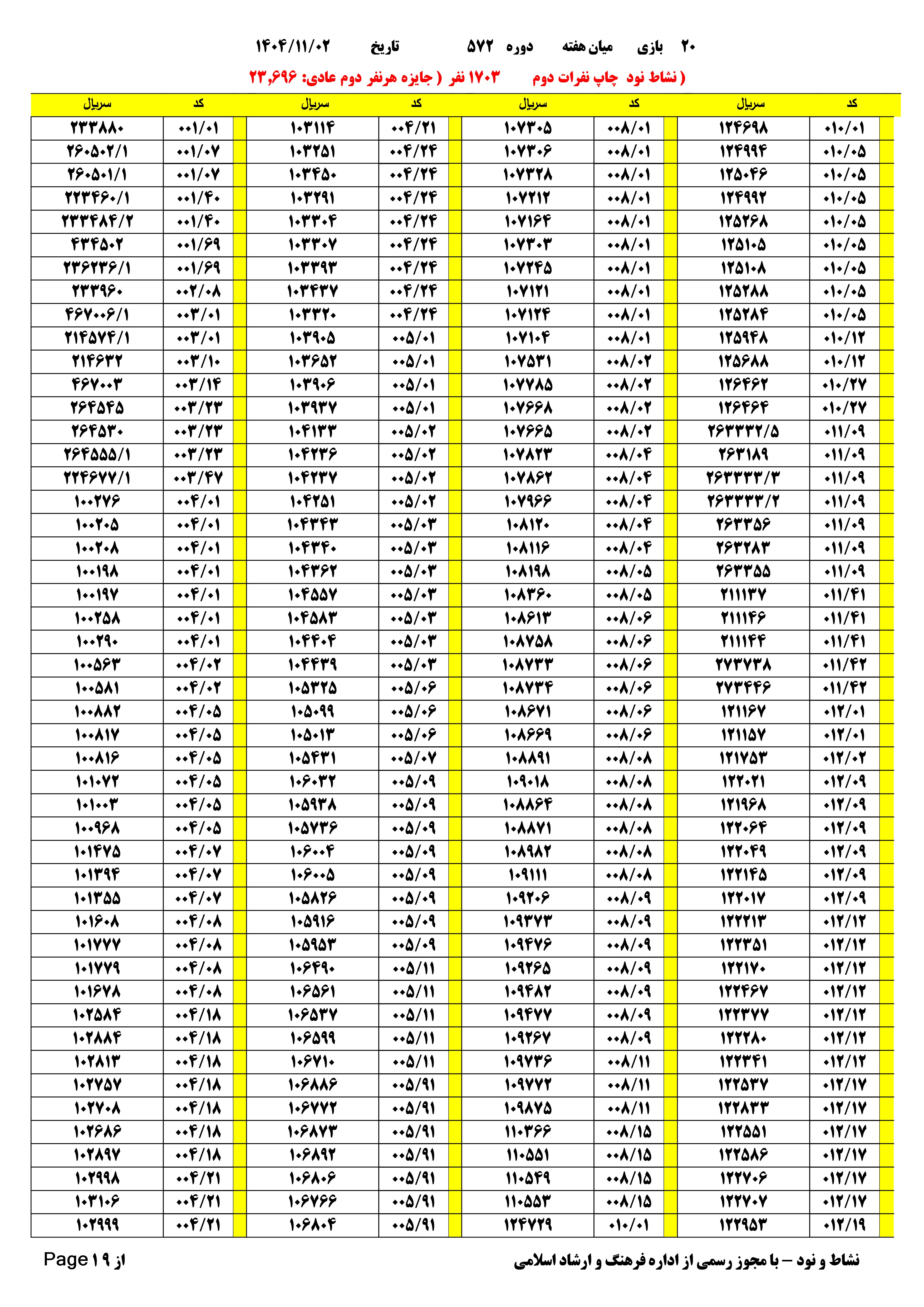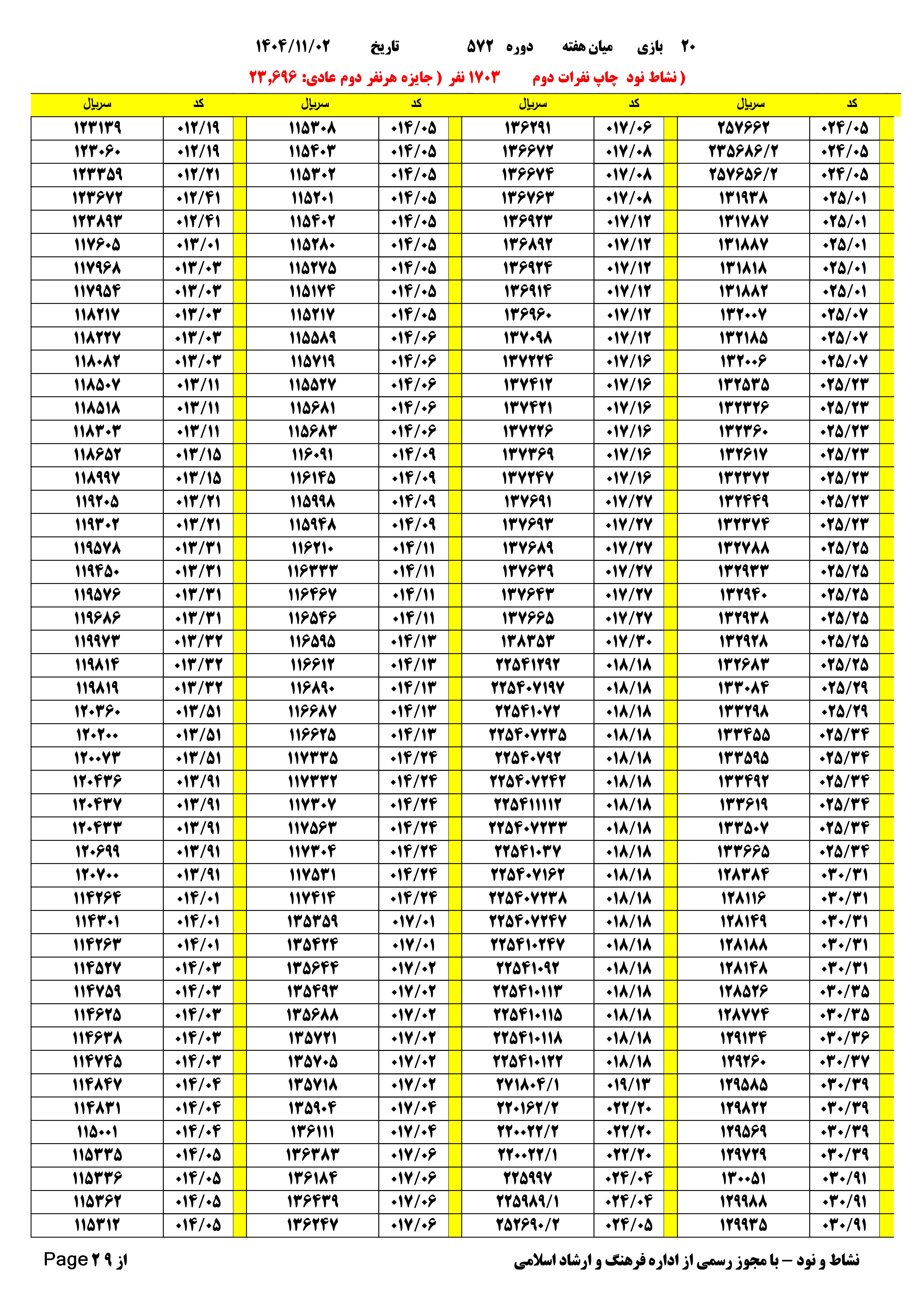 دانلود فتوکل و نتایج 20 بازی یاس نود شماره (571)