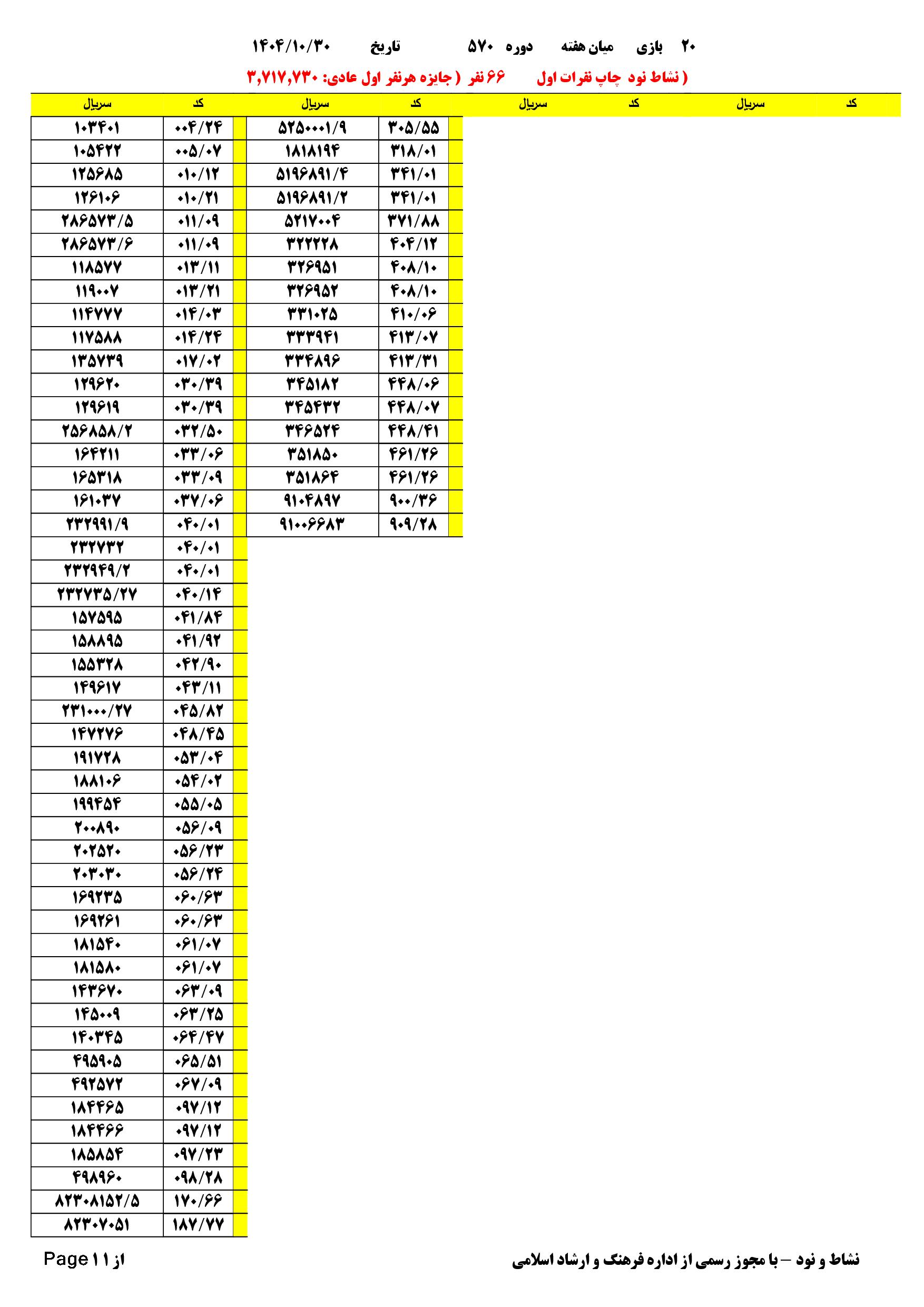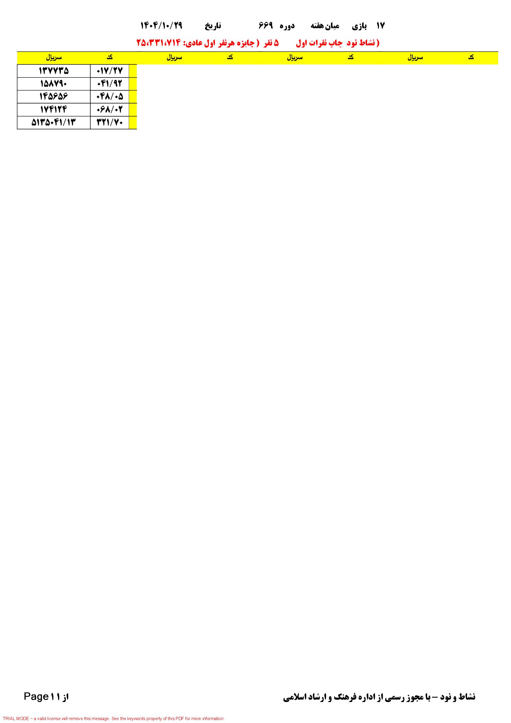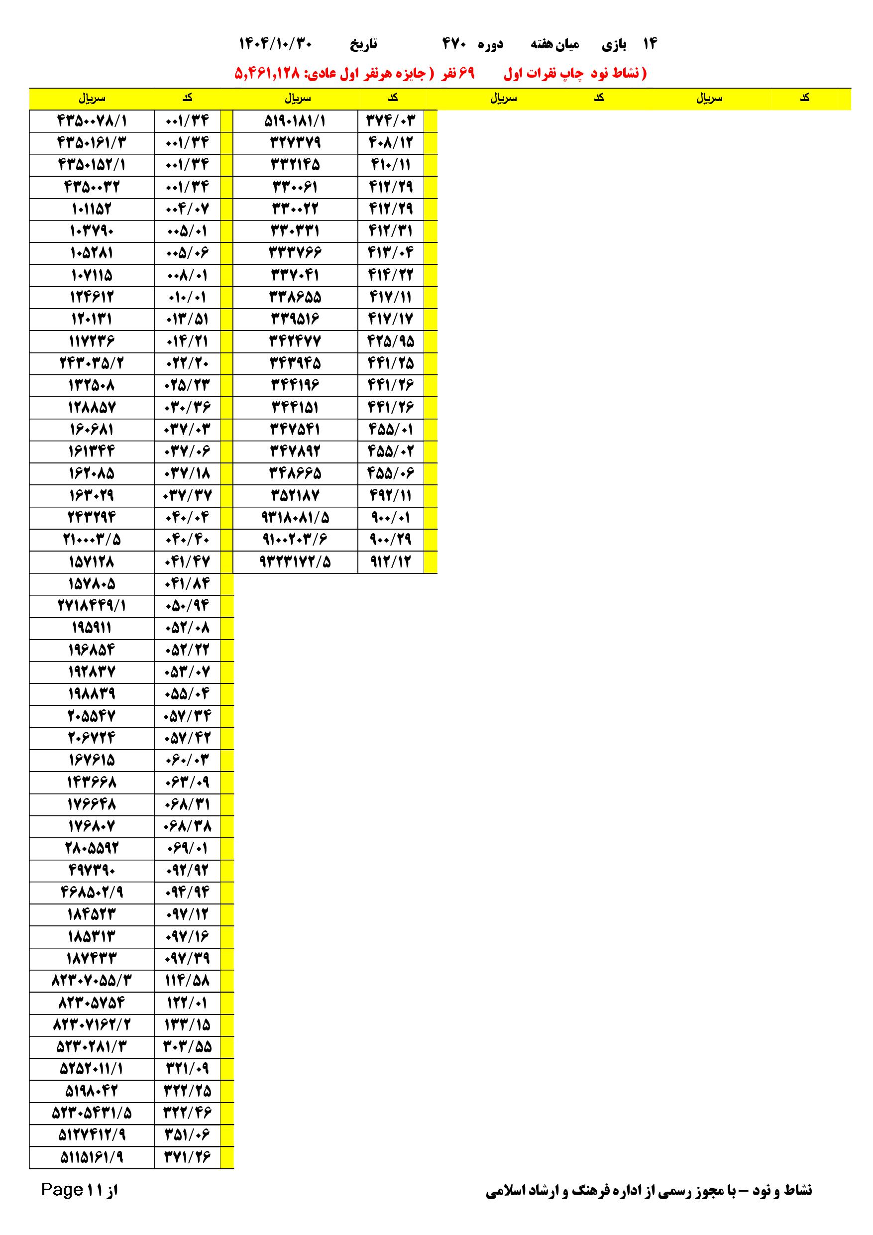 دانلود فتوکل و نتایج 17 بازی یاس نود شماره (2674)