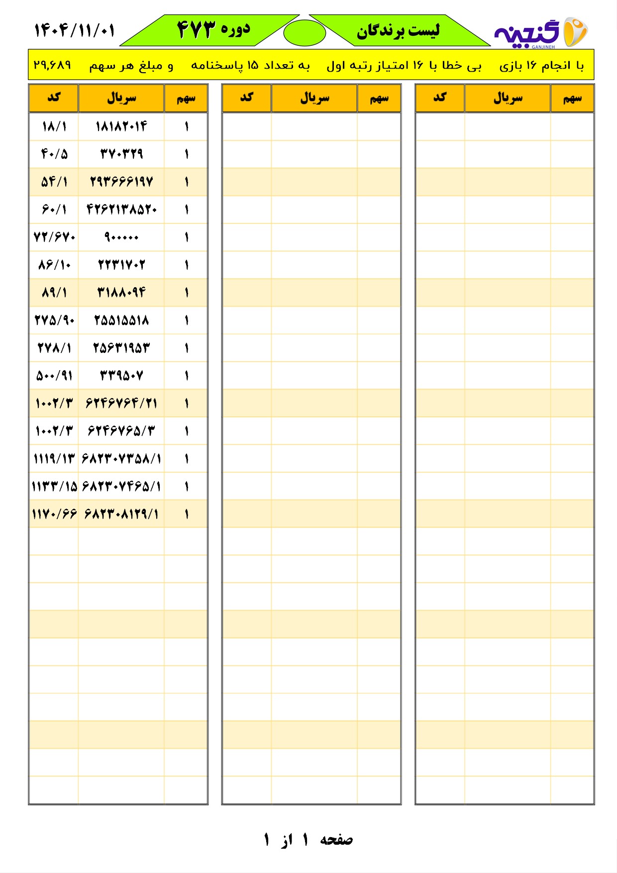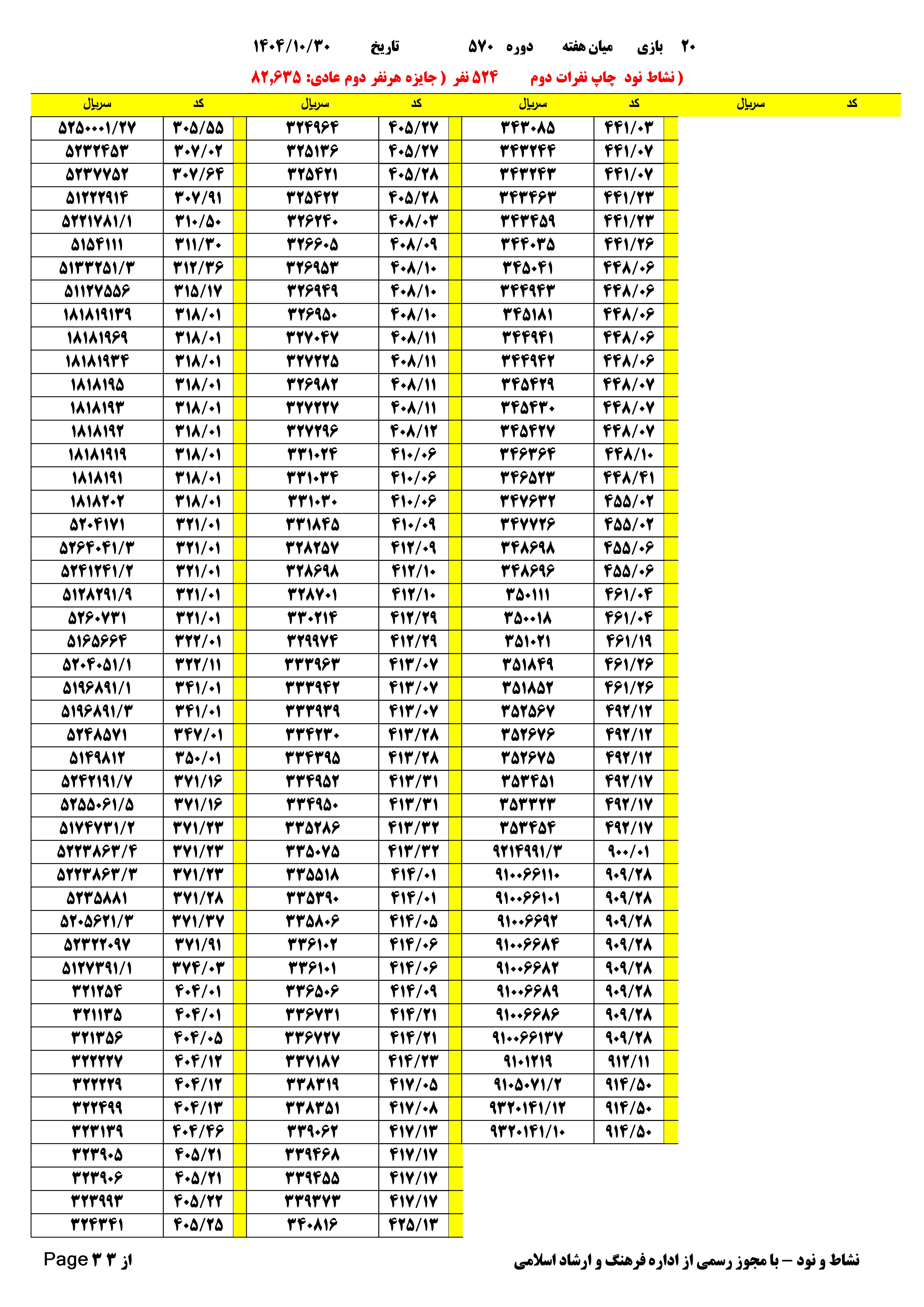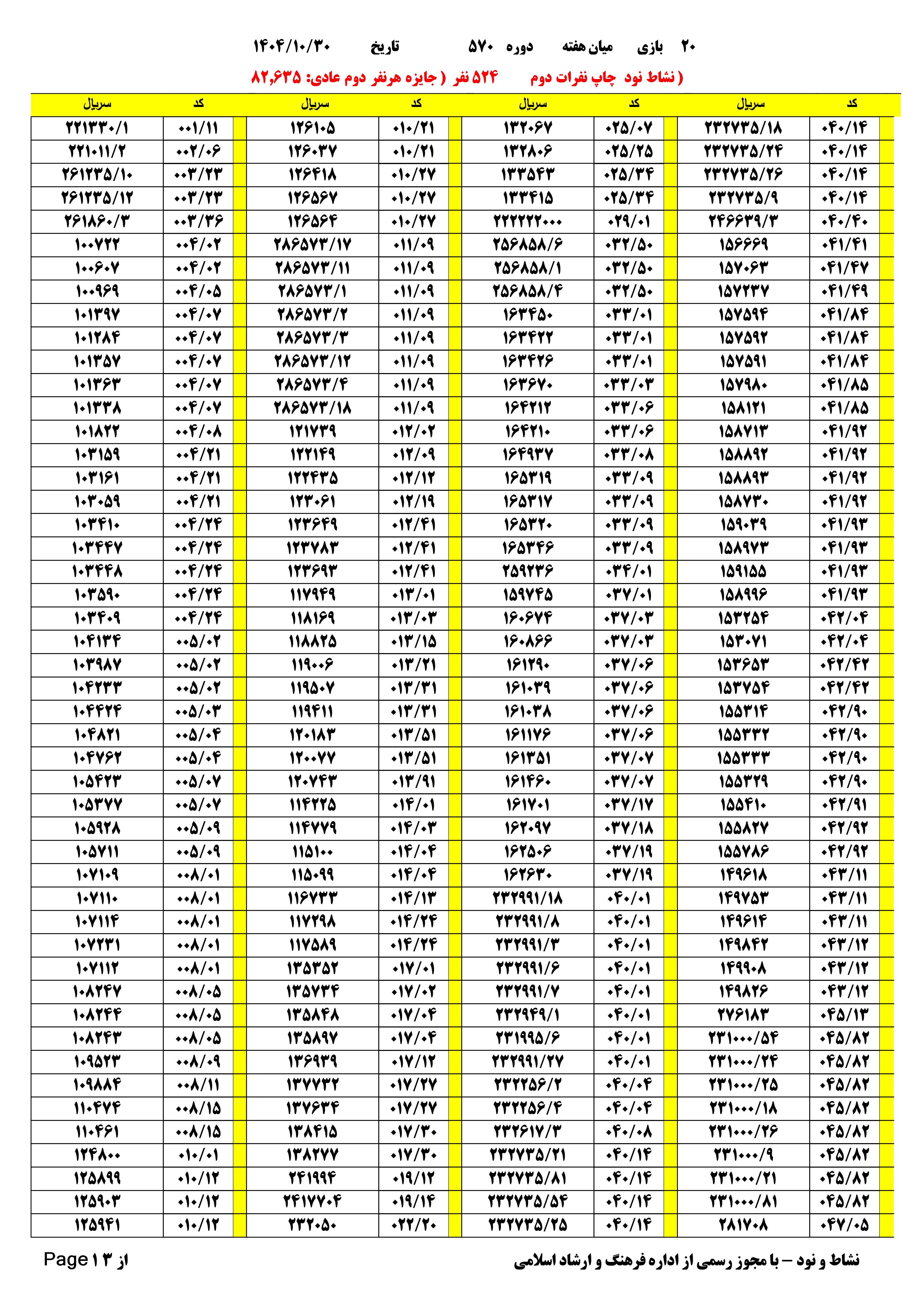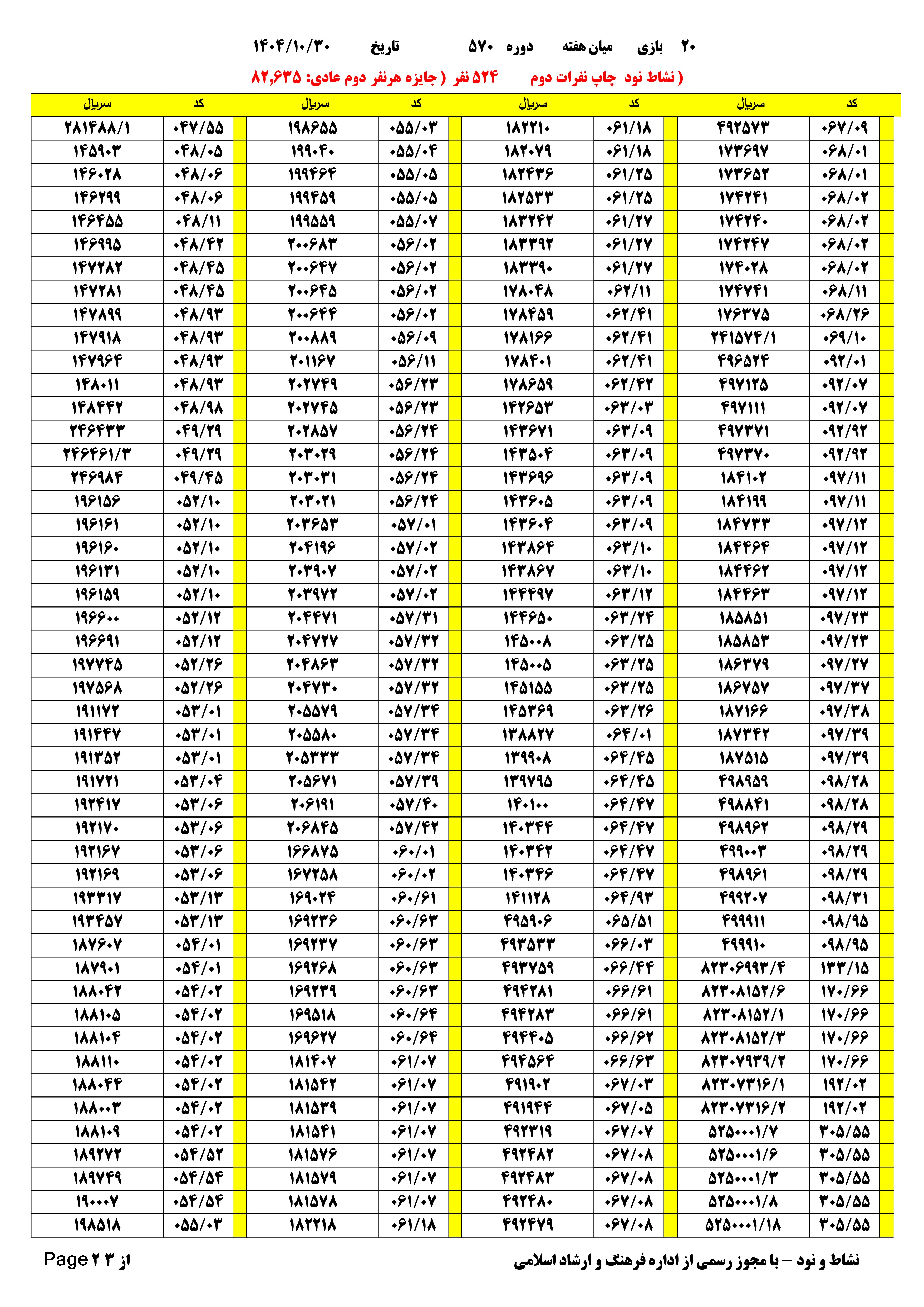 دانلود فتوکل و نتایج 17 بازی یاس نود شماره (2674)
