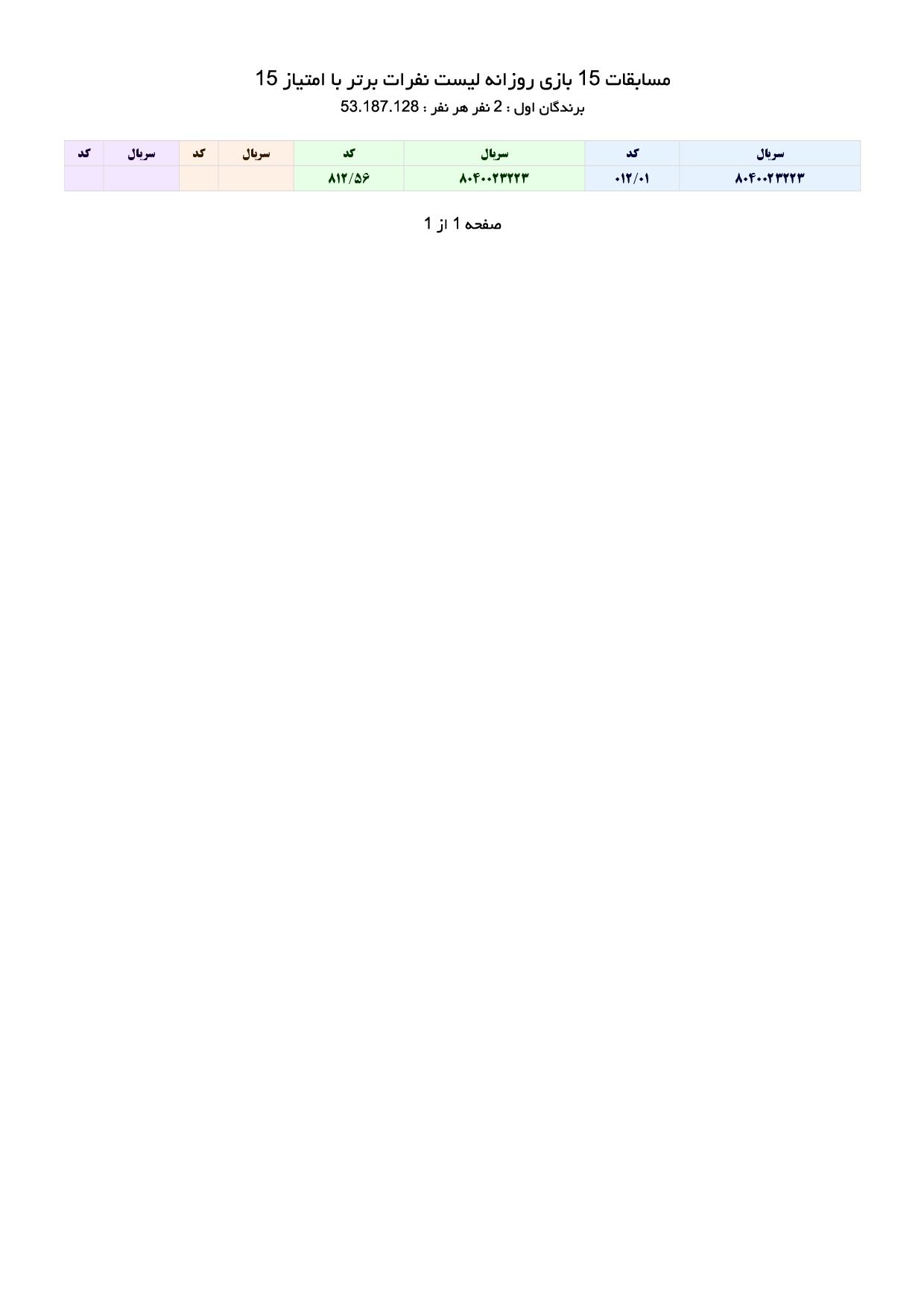 جدول دانلود فتوکل و نتایج 15  بازی روزانه شماره (15748)