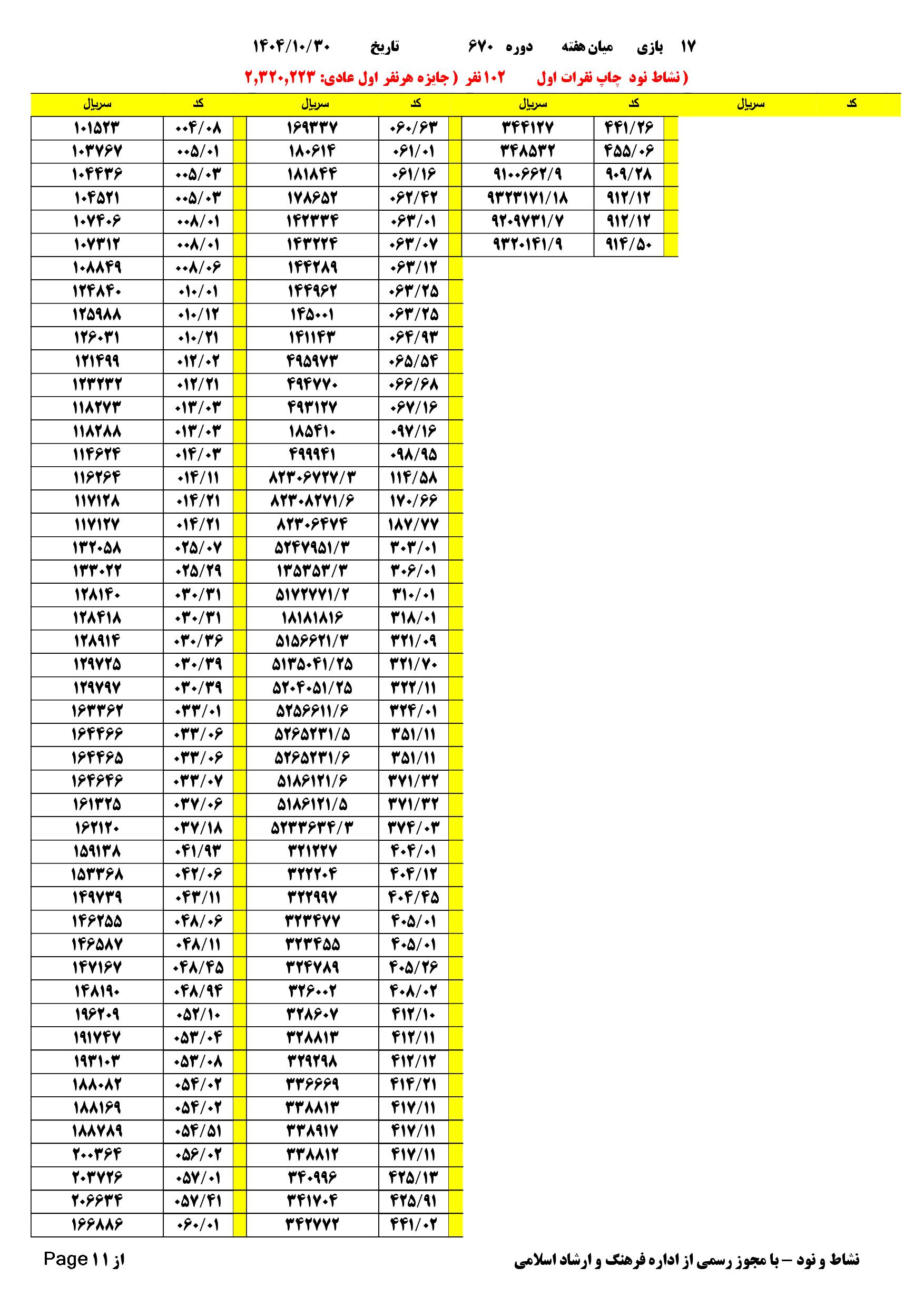 دانلود فتوکل و نتایج 17 بازی یاس نود شماره (670)
