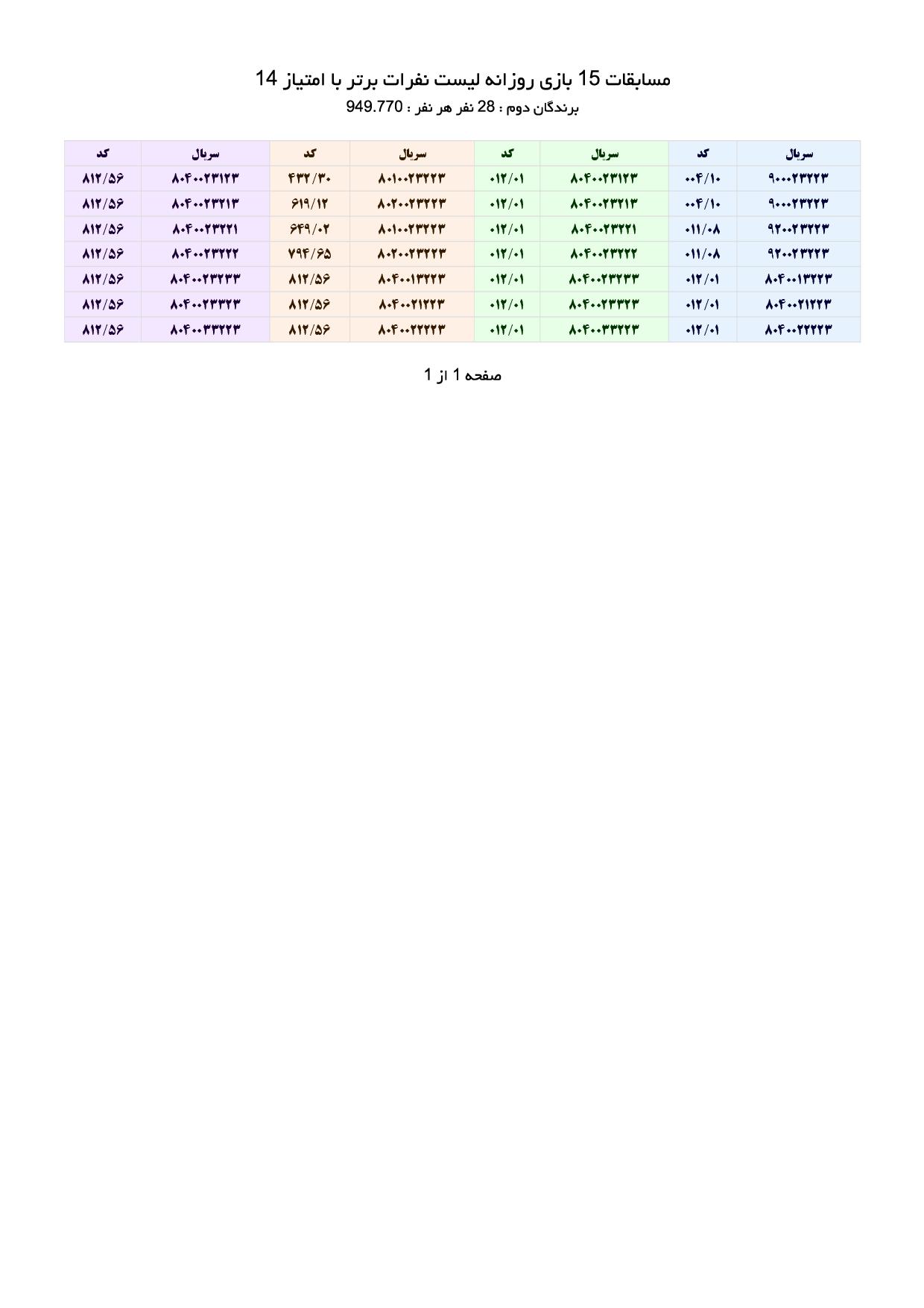 جدول دانلود فتوکل و نتایج 14 بازی روزانه شماره (7155)